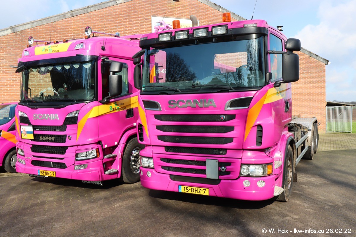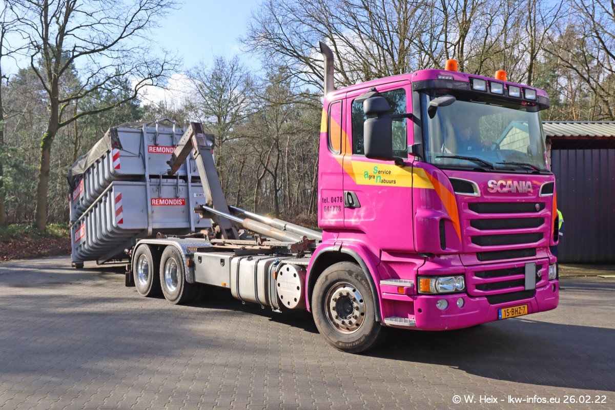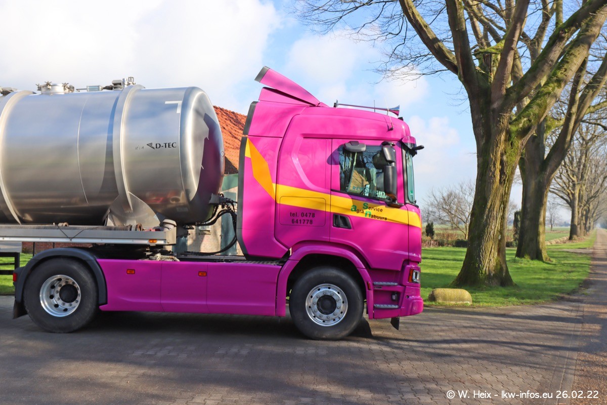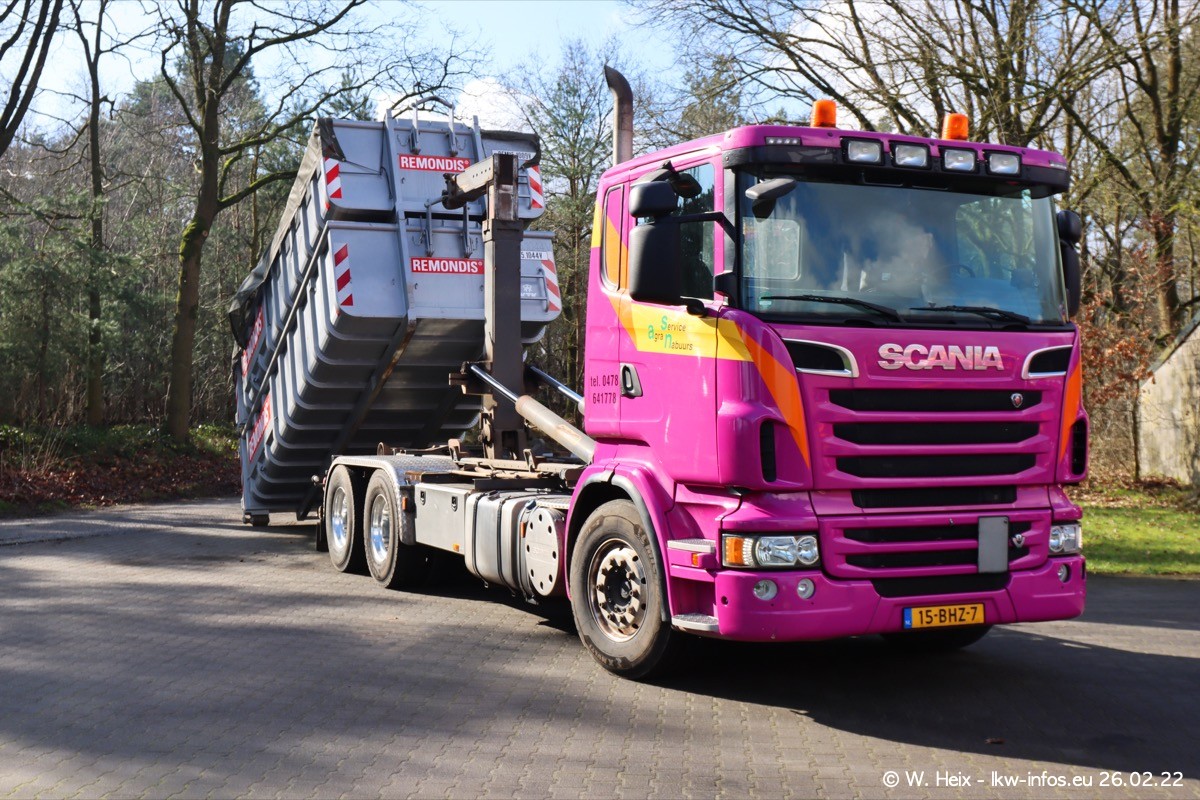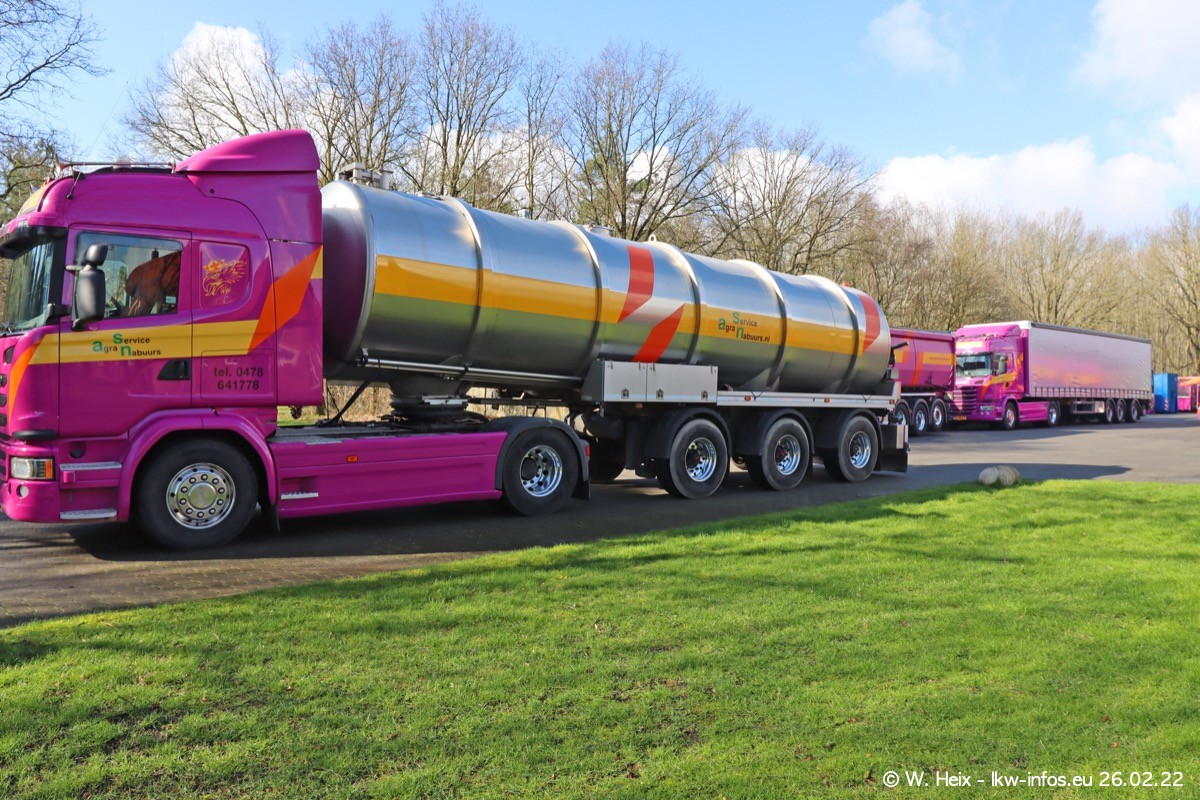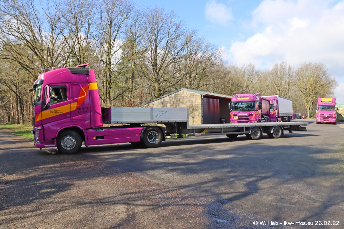 Mein erster Besuch bei der Firma Agra Service Nabuurs in Overloon (in der Nähe von Boxmeer gelegen) begann direkt mit einem schönen Fotoshooting, mit dem ich so nicht gerechnet bzw,. das ich so nicht geplant hatte. Aber gerade so macht das Hobby Spaß! Alle sieben LKW standen frisch gewaschen nebeneinander auf dem Hof. Sechs davon sind im täglichen Einsatz. Der SCANIA T 144 L 460 V8 Hauber wird nur noch als Ersatz und für Hobbyzwecke verwendet und ist inzwischen schon 21 (!) Jahre alt. Das Wetter war fast perfekt, wobei es gegen Ende des Fotoshootings leider wieder grau wurde, der Nebel kam langsam zurück.