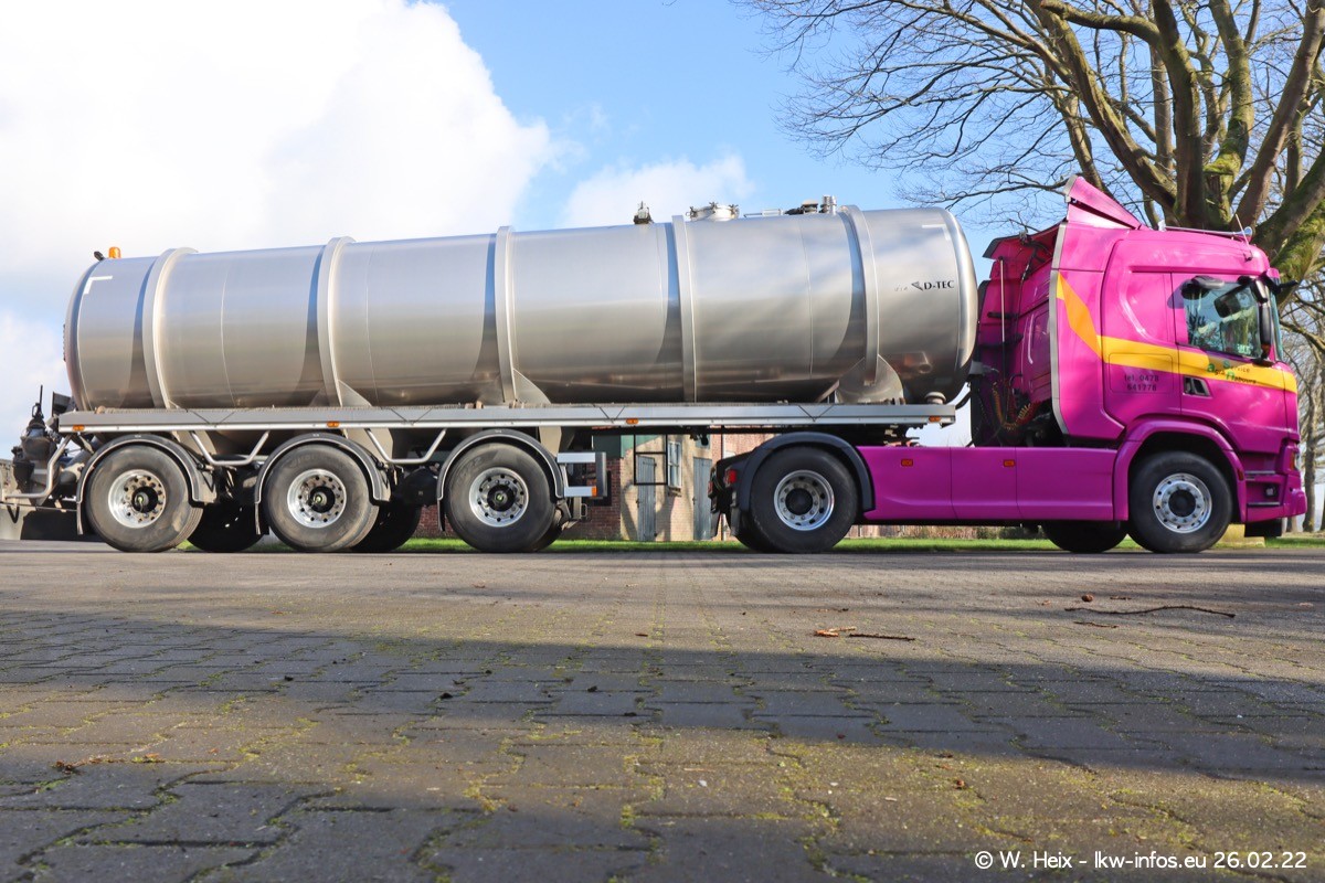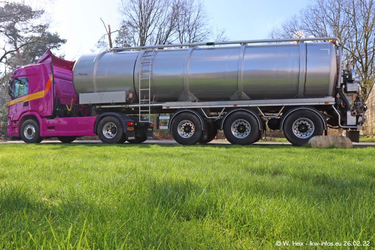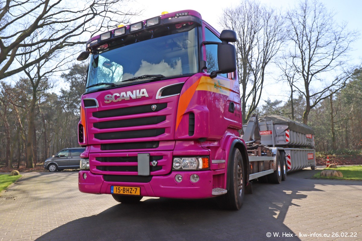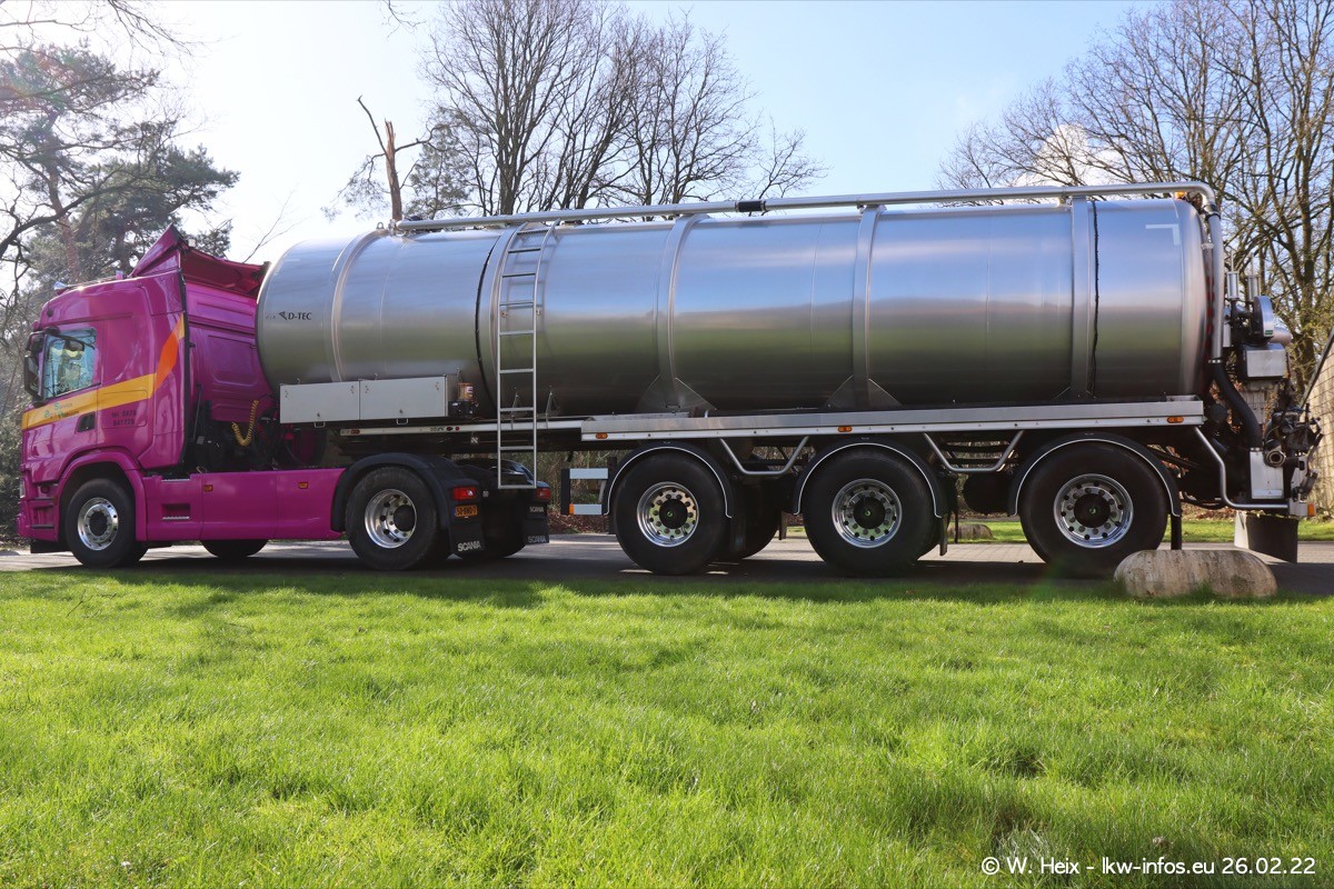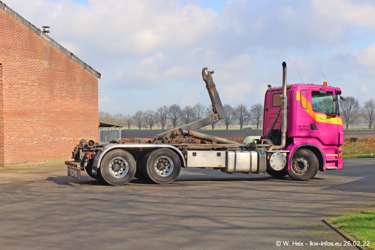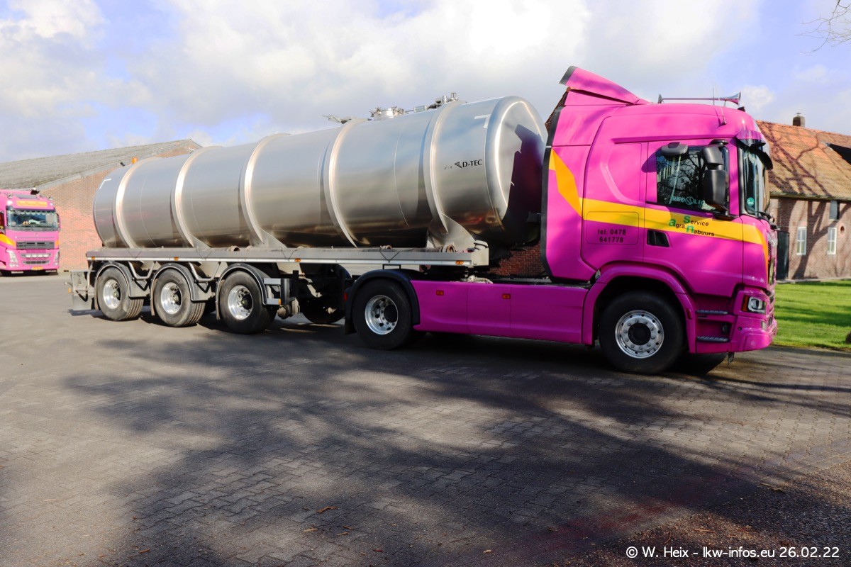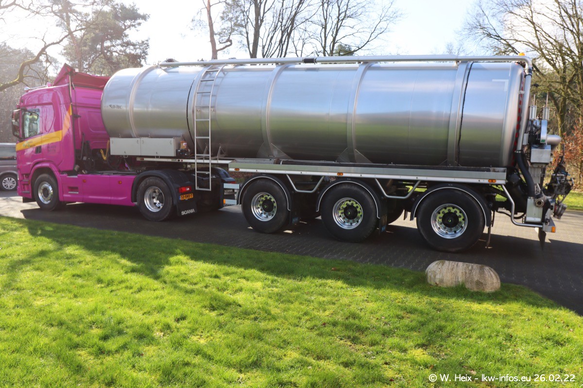 Mein erster Besuch bei der Firma Agra Service Nabuurs in Overloon (in der Nähe von Boxmeer gelegen) begann direkt mit einem schönen Fotoshooting, mit dem ich so nicht gerechnet bzw,. das ich so nicht geplant hatte. Aber gerade so macht das Hobby Spaß! Alle sieben LKW standen frisch gewaschen nebeneinander auf dem Hof. Sechs davon sind im täglichen Einsatz. Der SCANIA T 144 L 460 V8 Hauber wird nur noch als Ersatz und für Hobbyzwecke verwendet und ist inzwischen schon 21 (!) Jahre alt. Das Wetter war fast perfekt, wobei es gegen Ende des Fotoshootings leider wieder grau wurde, der Nebel kam langsam zurück.