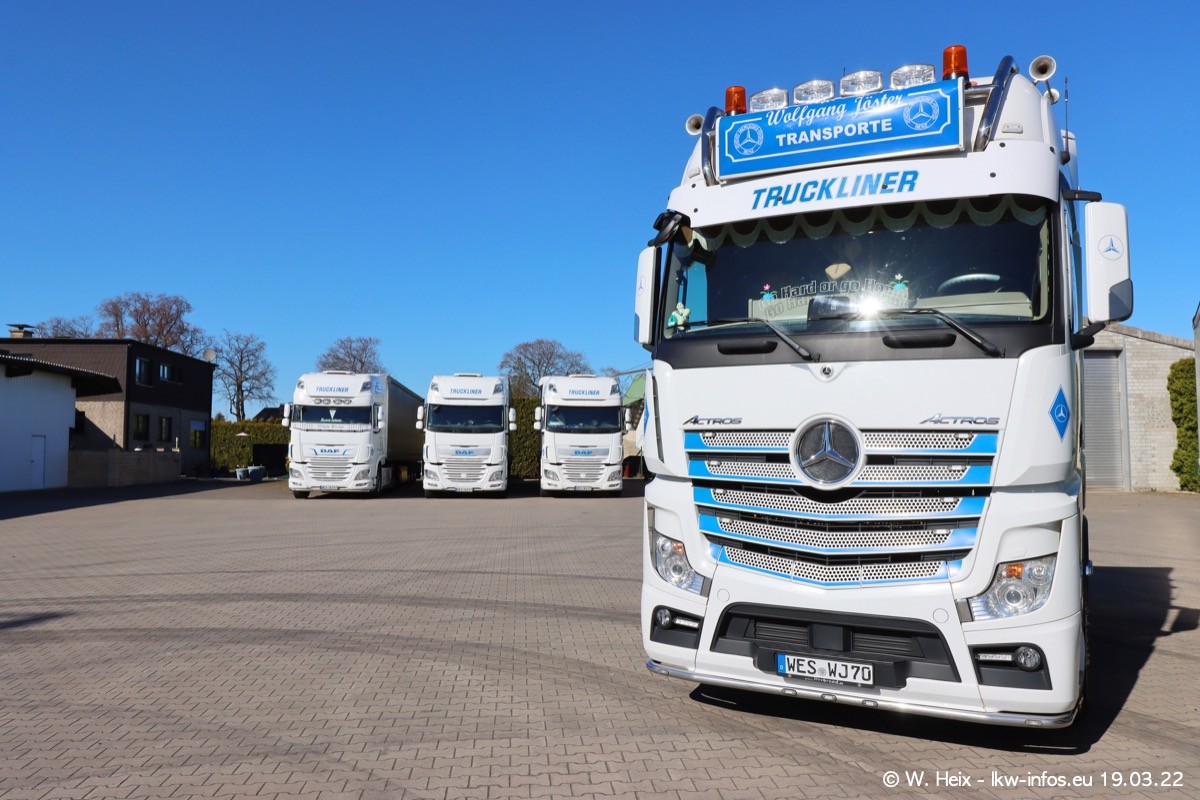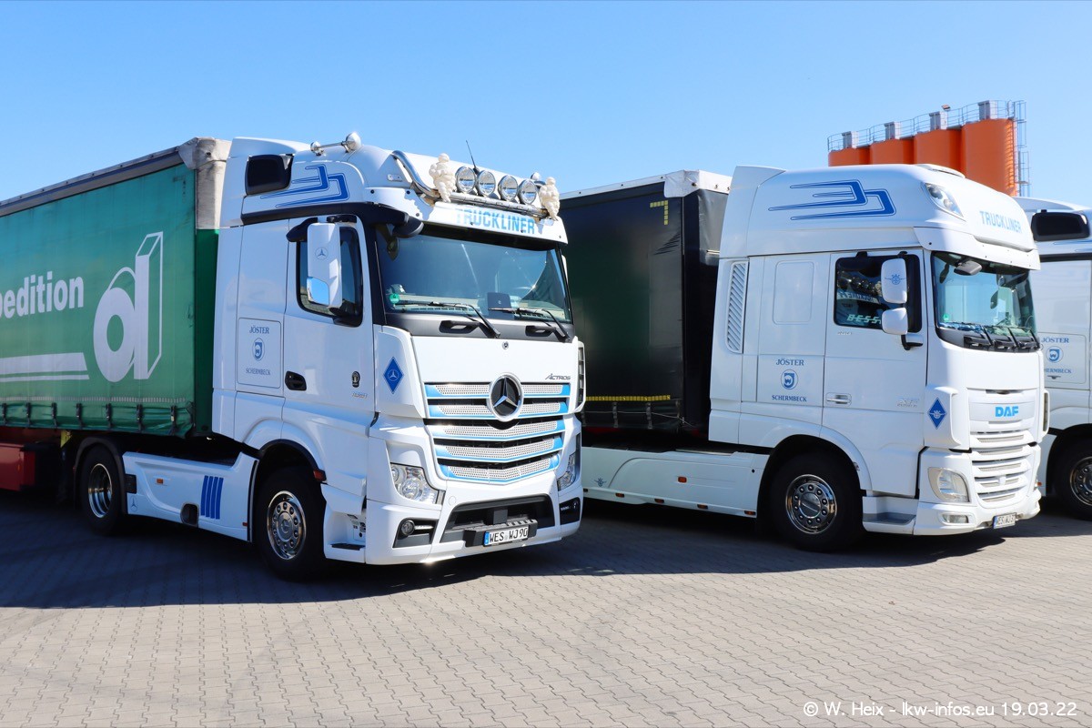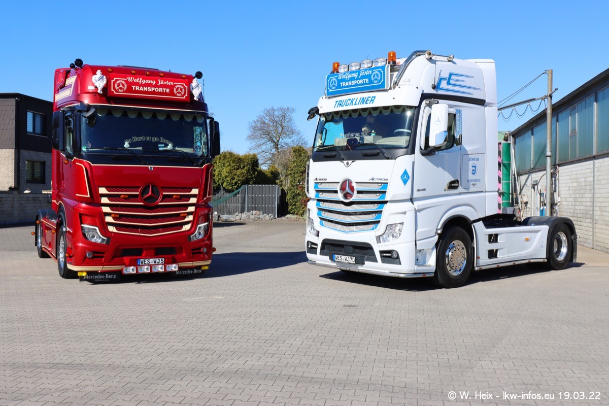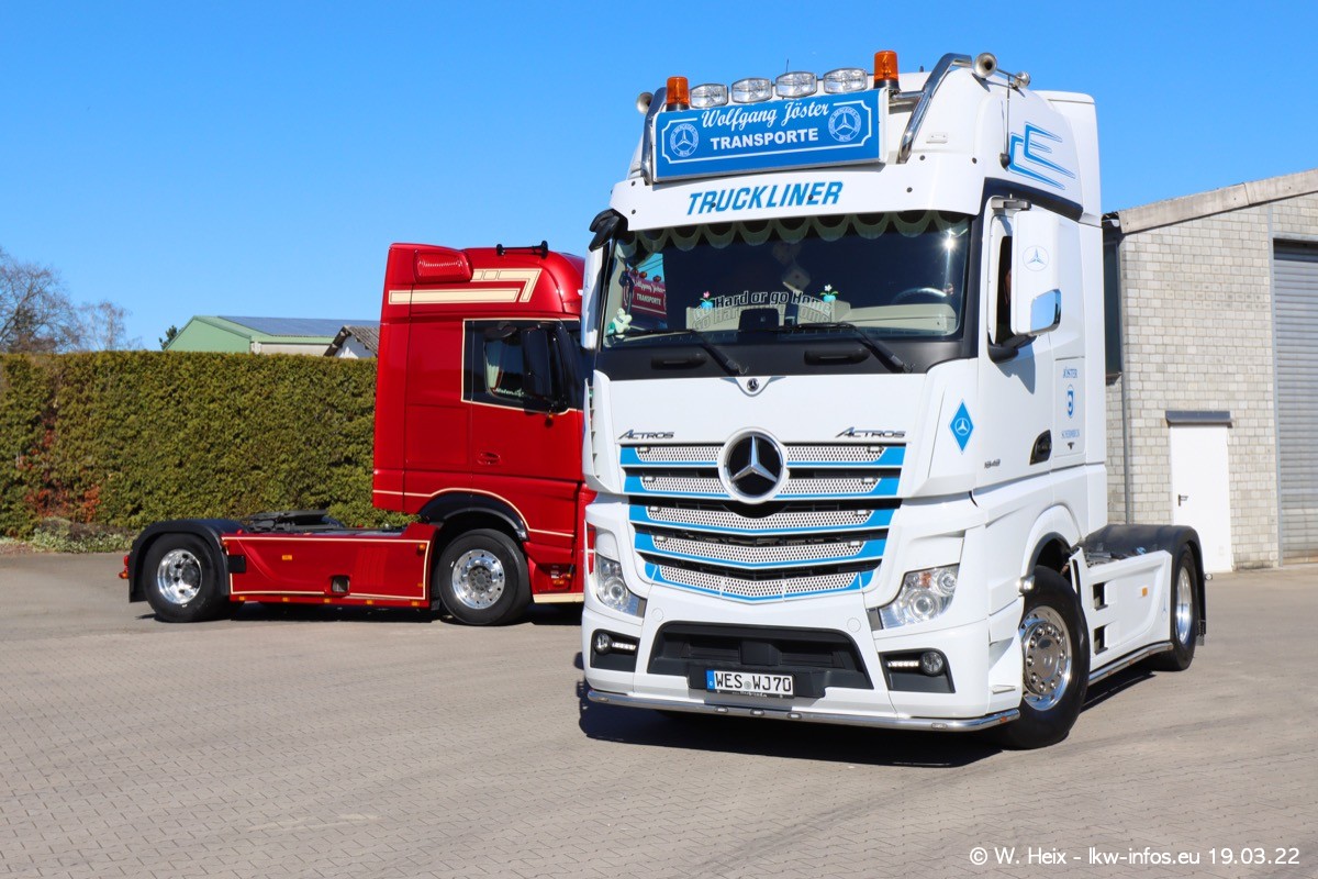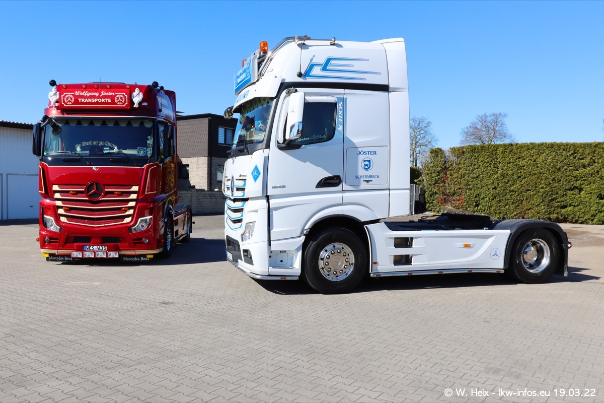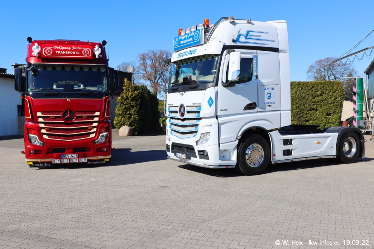 Die Firma Jöster Transporte hatte mich zu einen kleinen Fotoshooting eingeladen. Der Furpark besteht aus sieben LKW, das sind 3 DAF XF und vier Mercedes-Benz Actros. bis auf eine Zugmaschine sind alle weiß lackiert. Der rote Mercedes Benz Actros 4 ist rund einen Monat alt und das Highlight im Fuhrpark. Den gräßten Teil der Bilder habe ich auf den eigenen Hof gemacht und den roten und den weißen Mercedes-Benz Actros haben wir auf dem Gelände des Nachbarn, der Firma Potthoff, gemacht, die das Gelände für das Fotoshooting zur Verfügung gestellt hat. Das war ein schöner Platz für schöne Fotos..... Danke an die Firma Jöster für das tolle Fotoshooting!