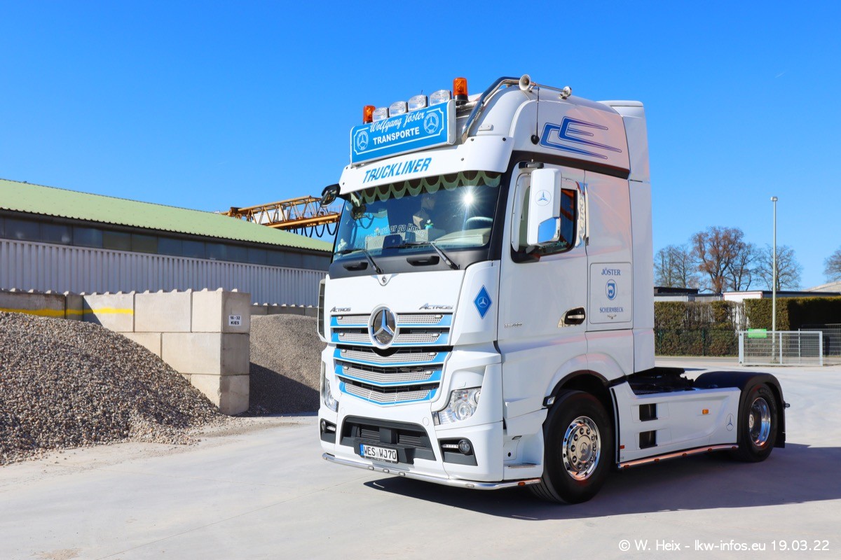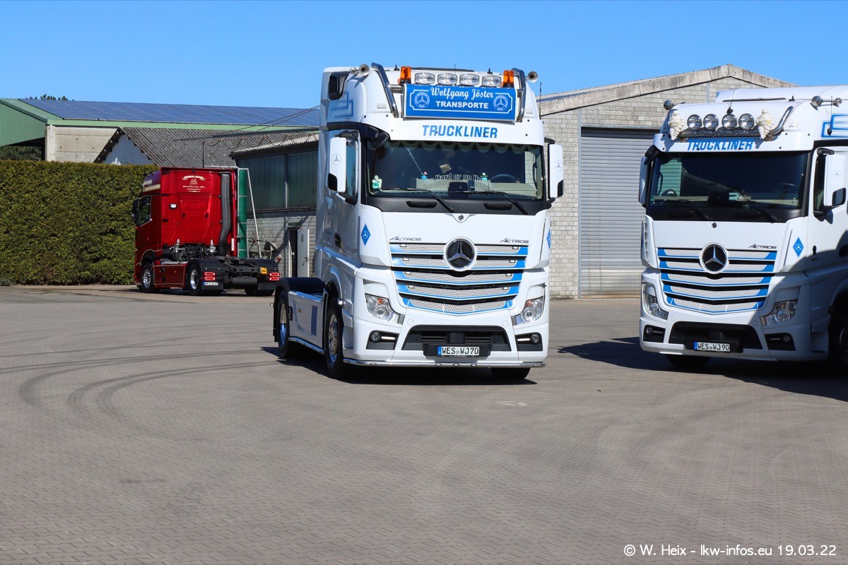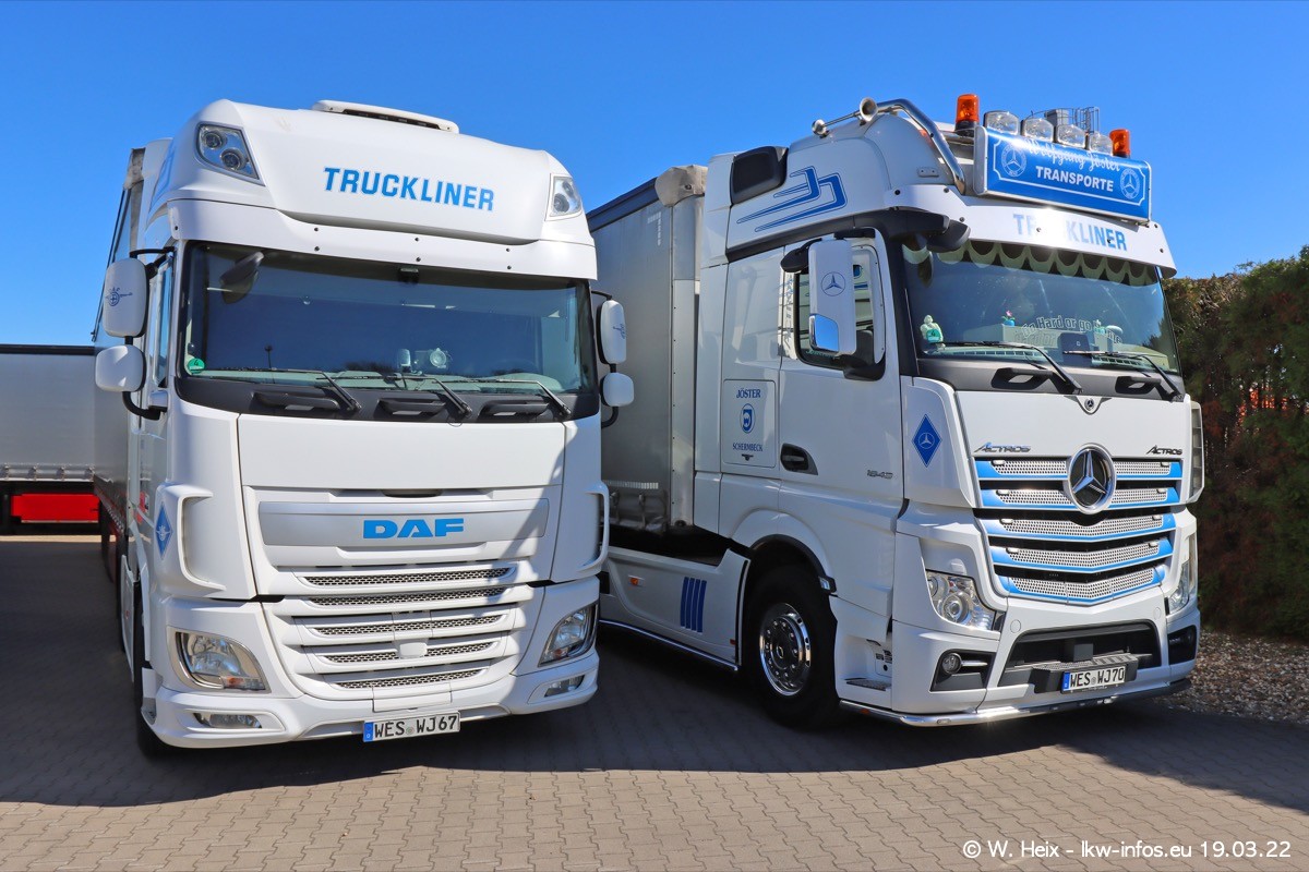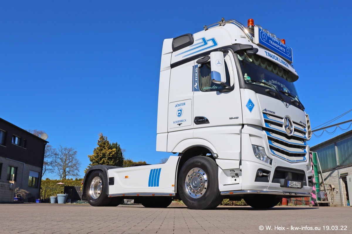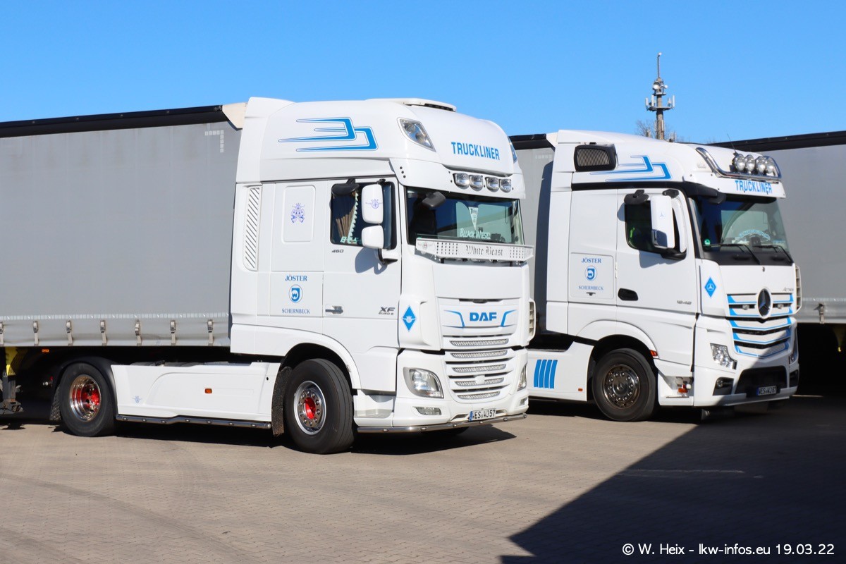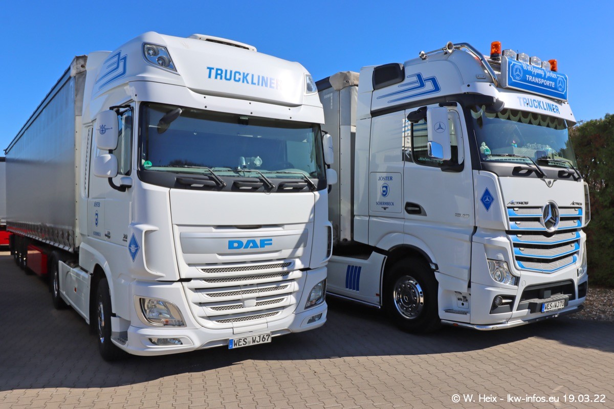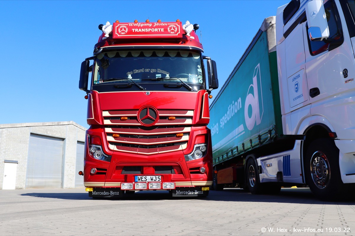 Die Firma Jöster Transporte hatte mich zu einen kleinen Fotoshooting eingeladen. Der Furpark besteht aus sieben LKW, das sind 3 DAF XF und vier Mercedes-Benz Actros. bis auf eine Zugmaschine sind alle weiß lackiert. Der rote Mercedes Benz Actros 4 ist rund einen Monat alt und das Highlight im Fuhrpark. Den gräßten Teil der Bilder habe ich auf den eigenen Hof gemacht und den roten und den weißen Mercedes-Benz Actros haben wir auf dem Gelände des Nachbarn, der Firma Potthoff, gemacht, die das Gelände für das Fotoshooting zur Verfügung gestellt hat. Das war ein schöner Platz für schöne Fotos..... Danke an die Firma Jöster für das tolle Fotoshooting!