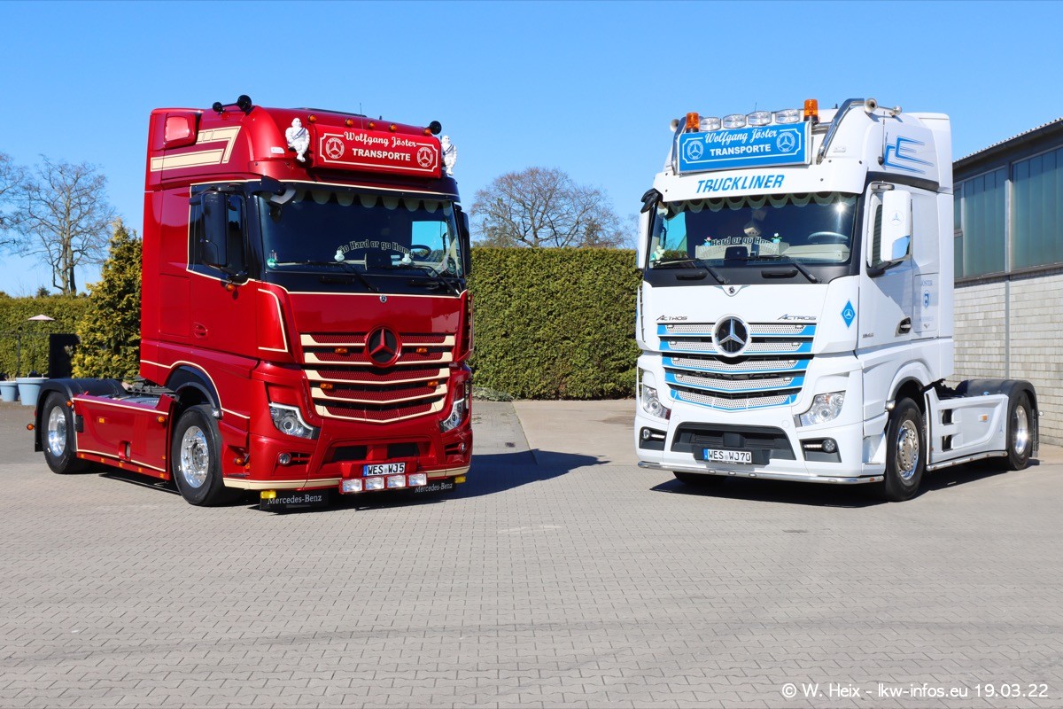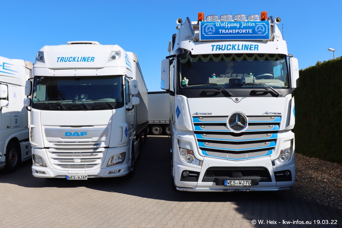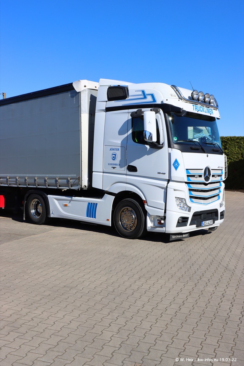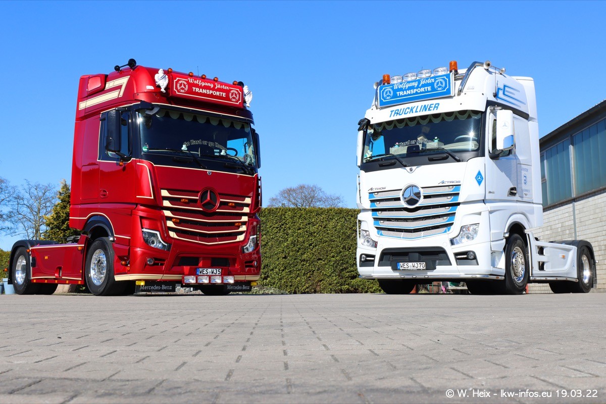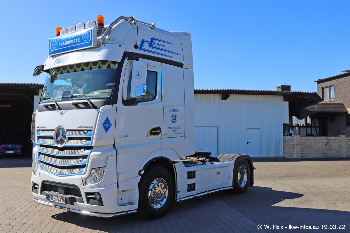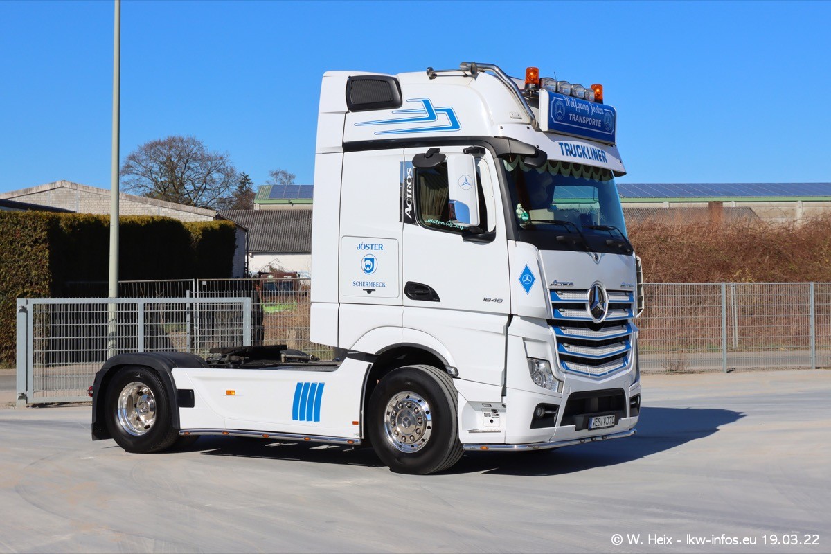 Die Firma Jöster Transporte hatte mich zu einen kleinen Fotoshooting eingeladen. Der Furpark besteht aus sieben LKW, das sind 3 DAF XF und vier Mercedes-Benz Actros. bis auf eine Zugmaschine sind alle weiß lackiert. Der rote Mercedes Benz Actros 4 ist rund einen Monat alt und das Highlight im Fuhrpark. Den gräßten Teil der Bilder habe ich auf den eigenen Hof gemacht und den roten und den weißen Mercedes-Benz Actros haben wir auf dem Gelände des Nachbarn, der Firma Potthoff, gemacht, die das Gelände für das Fotoshooting zur Verfügung gestellt hat. Das war ein schöner Platz für schöne Fotos..... Danke an die Firma Jöster für das tolle Fotoshooting!