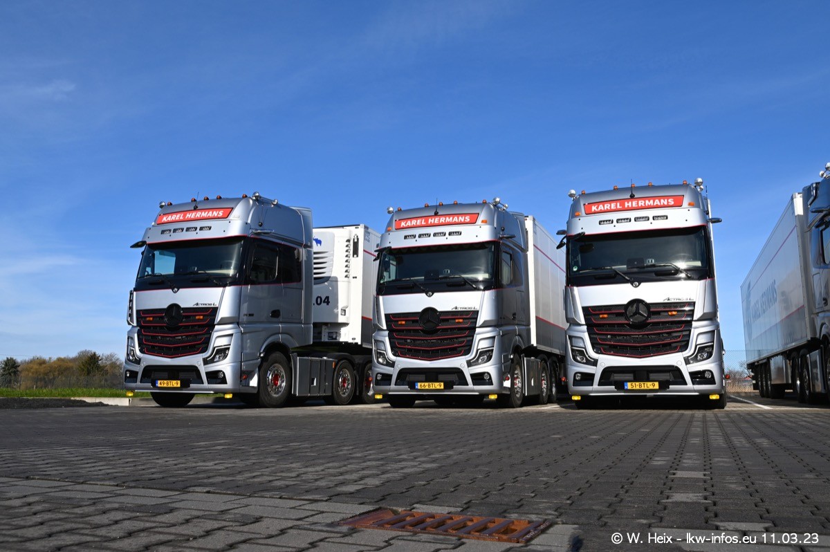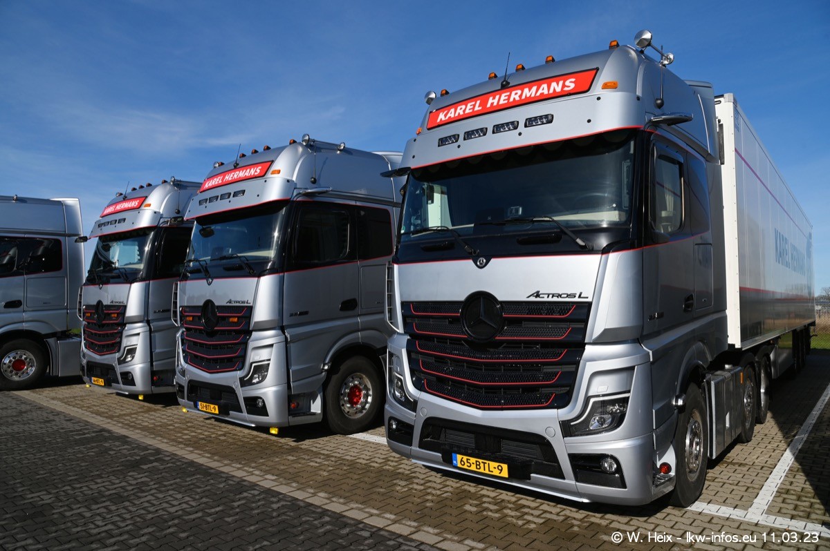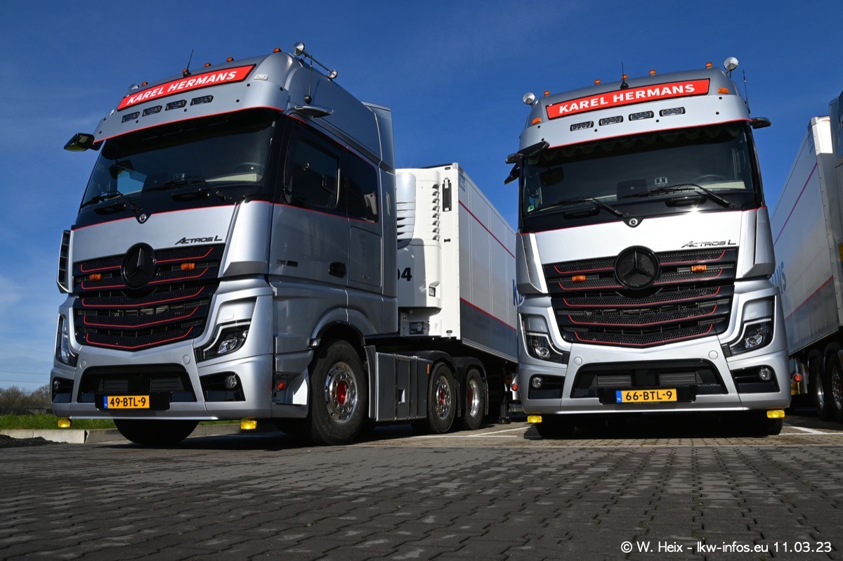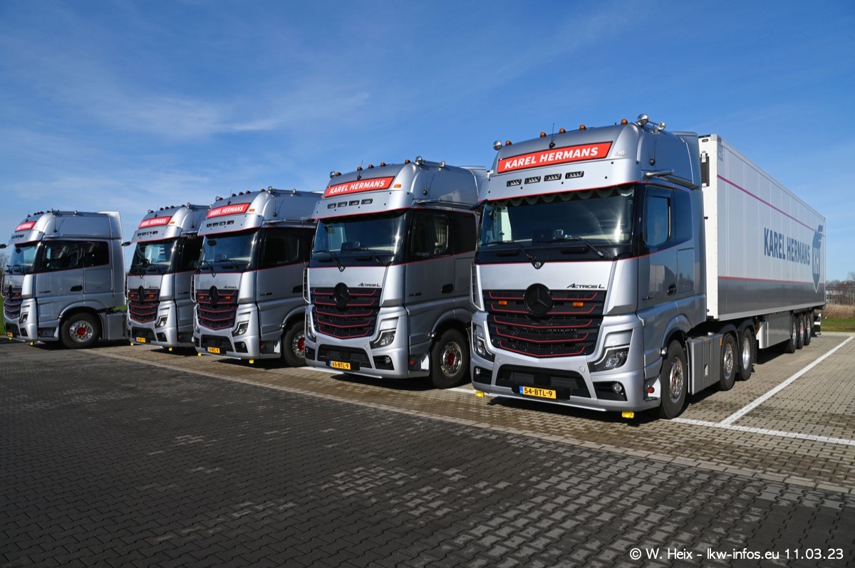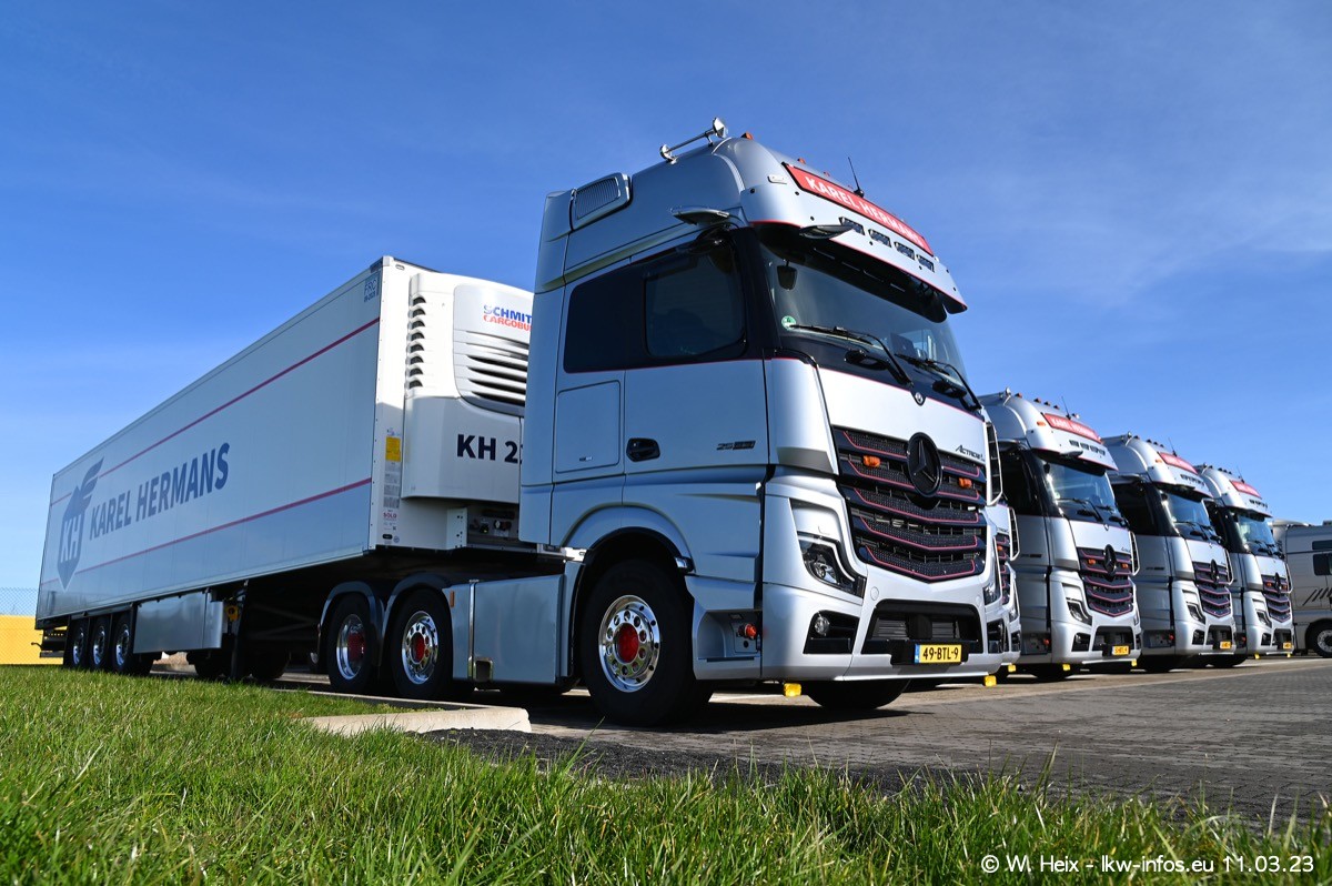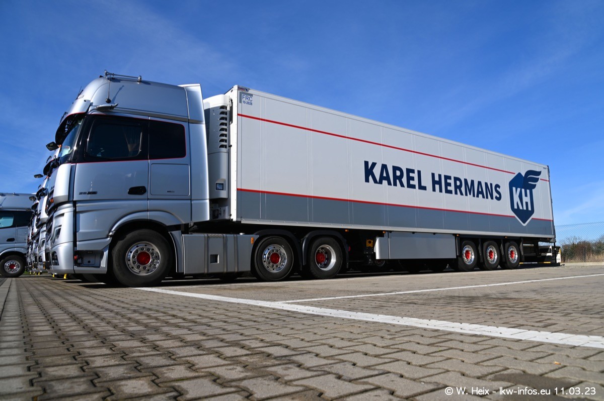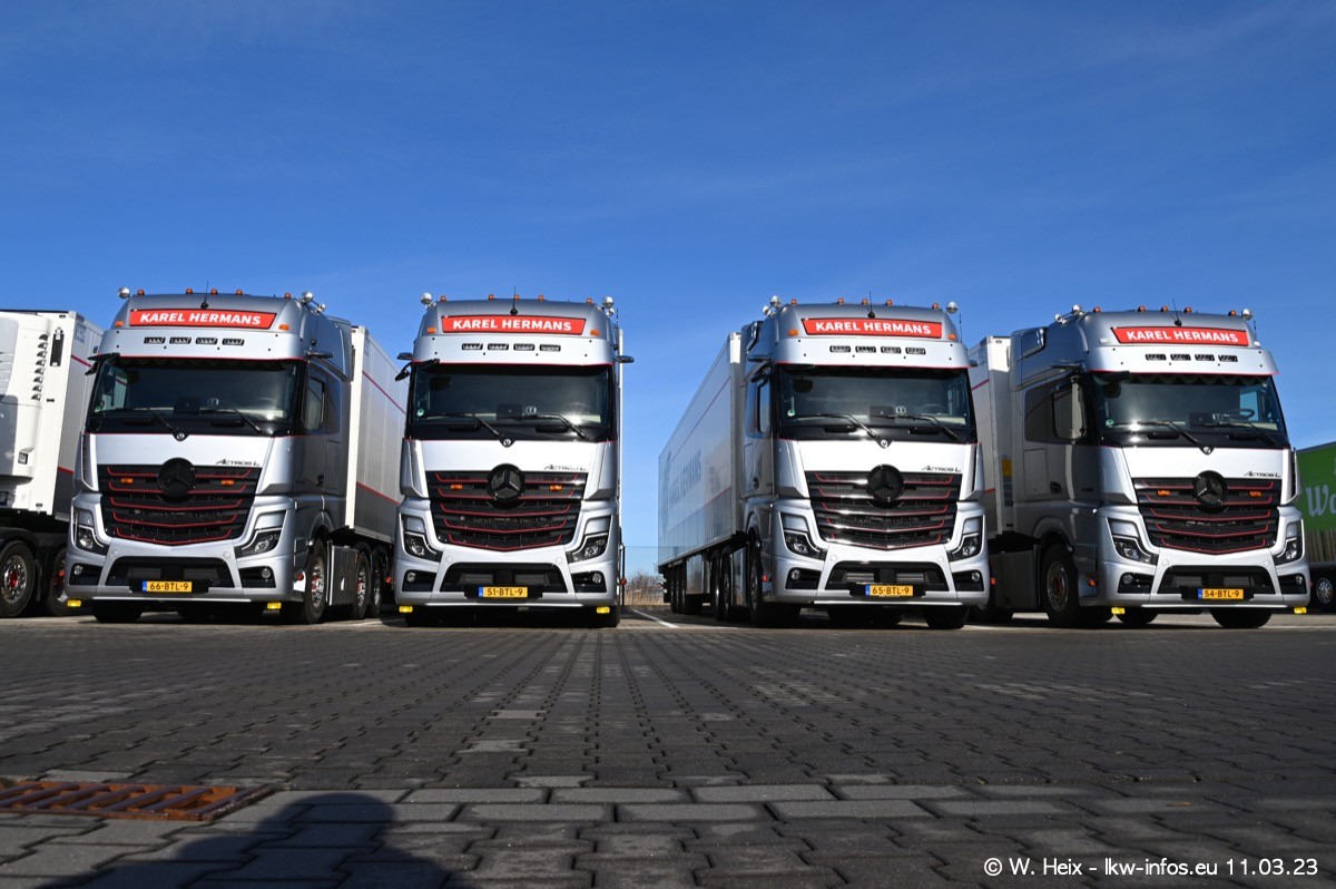 Karel Hermans ist eine neue Firma/Spedition, die in Venlo (NL) zuhause ist. Die lKW stehen allerdings bei der Spedition Klümpen in Straelen (D). Inzwischen gibt es sechs Mercedes-Benz Actros L, fünf davon konnte ich bei schönstem Wetter fotografieren. 🙂