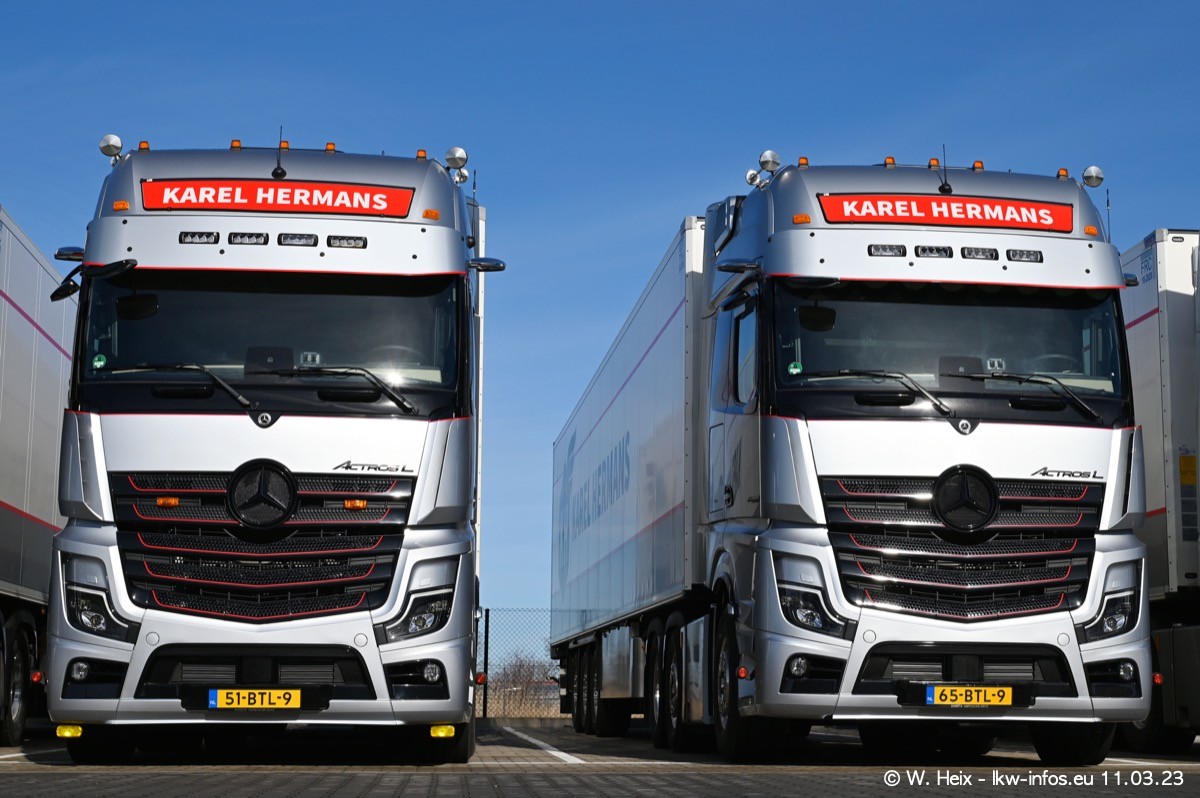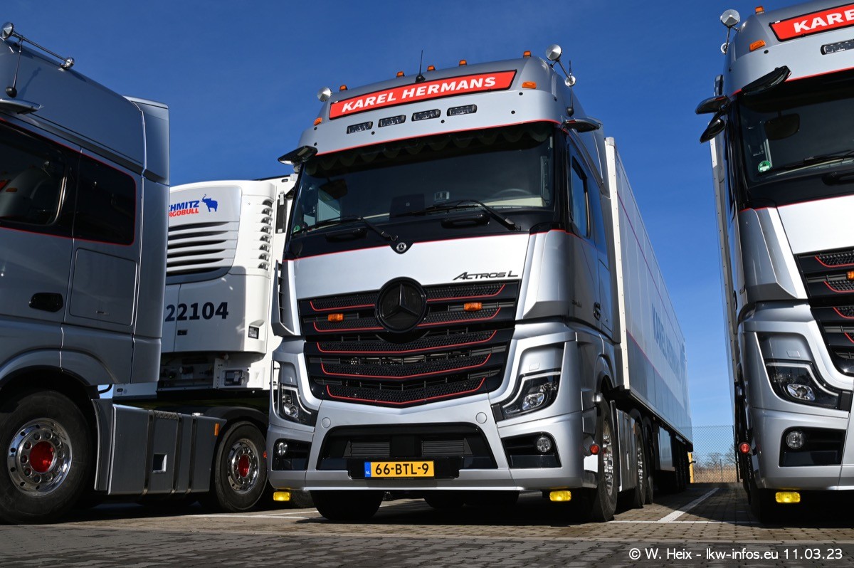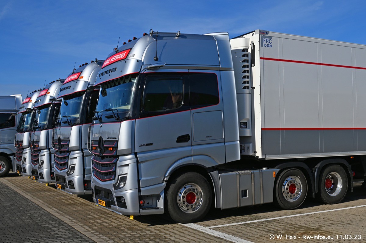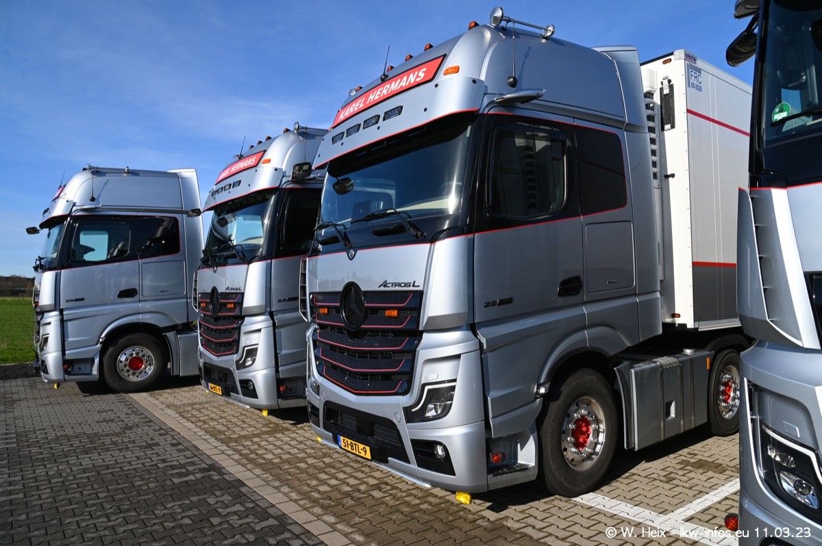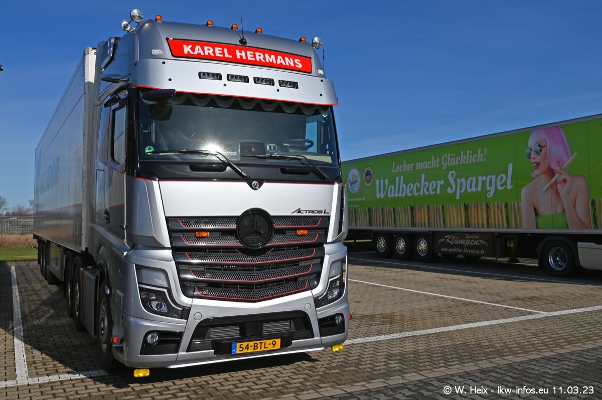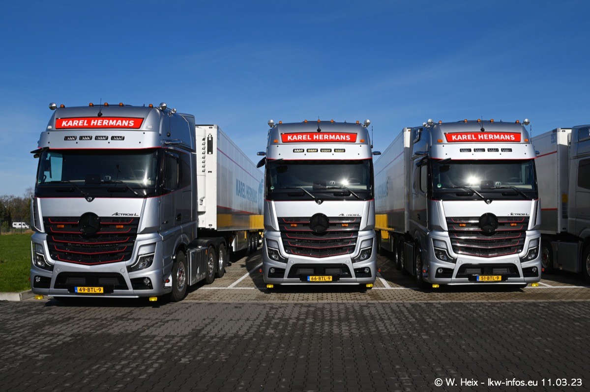 Karel Hermans ist eine neue Firma/Spedition, die in Venlo (NL) zuhause ist. Die lKW stehen allerdings bei der Spedition Klümpen in Straelen (D). Inzwischen gibt es sechs Mercedes-Benz Actros L, fünf davon konnte ich bei schönstem Wetter fotografieren. 🙂