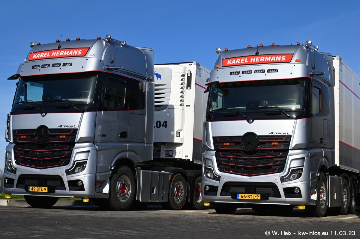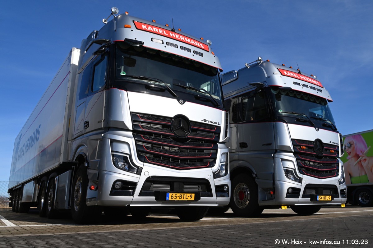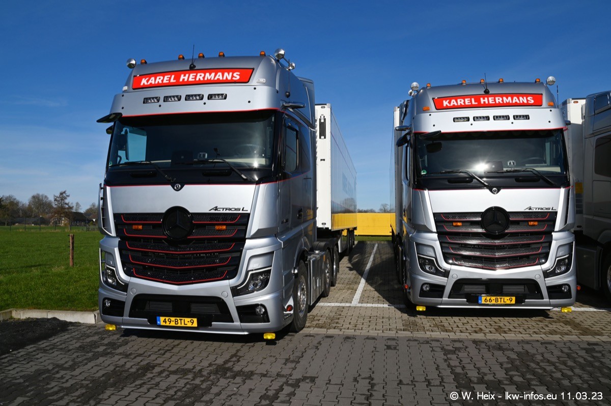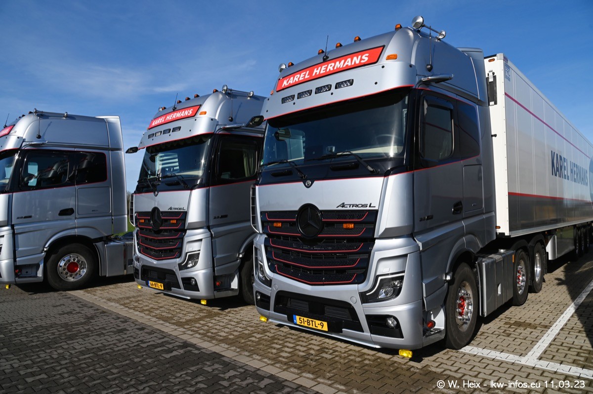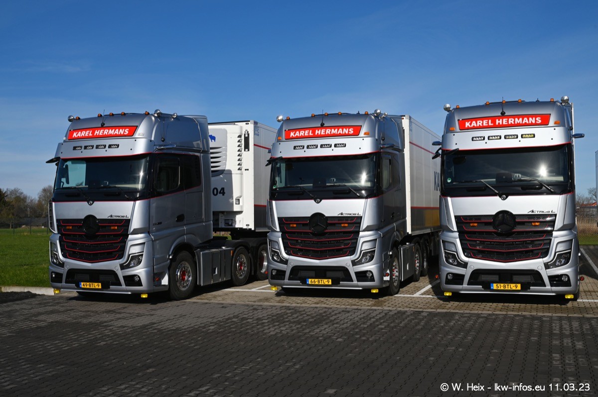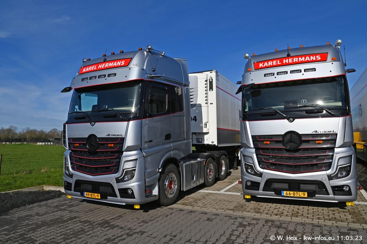 Karel Hermans ist eine neue Firma/Spedition, die in Venlo (NL) zuhause ist. Die lKW stehen allerdings bei der Spedition Klümpen in Straelen (D). Inzwischen gibt es sechs Mercedes-Benz Actros L, fünf davon konnte ich bei schönstem Wetter fotografieren. 🙂