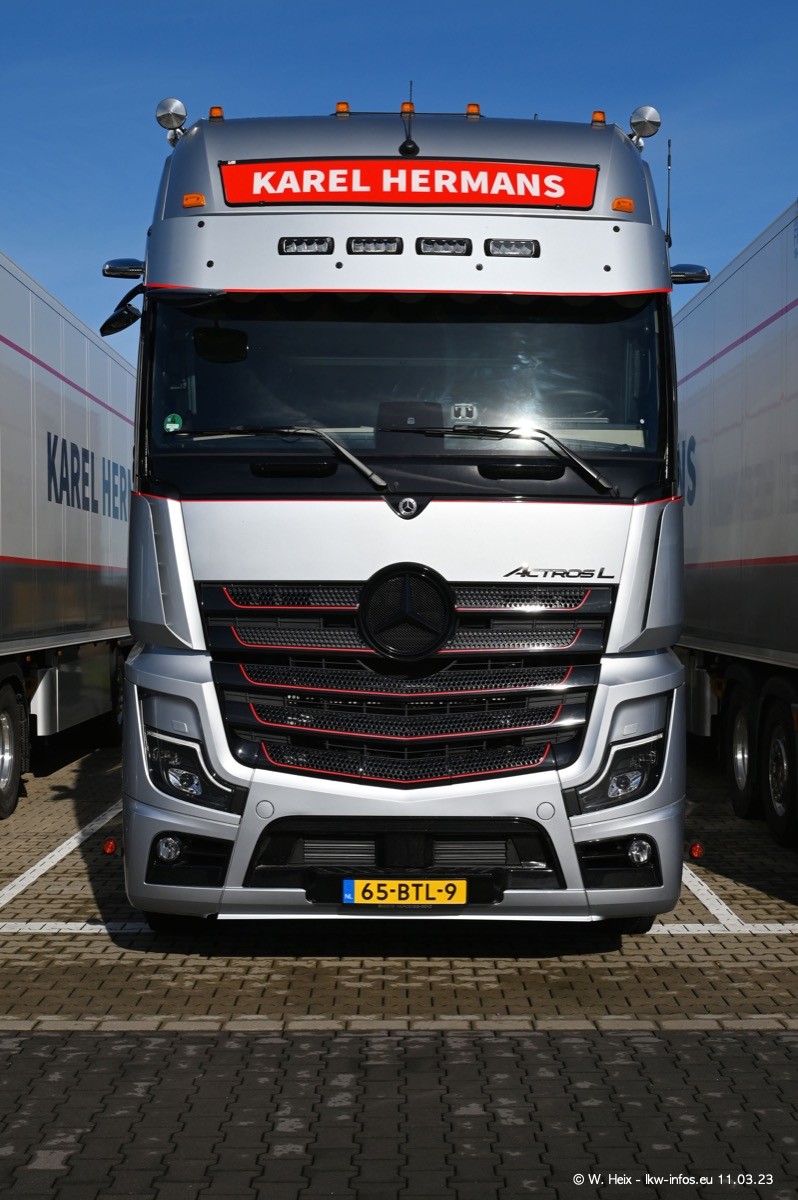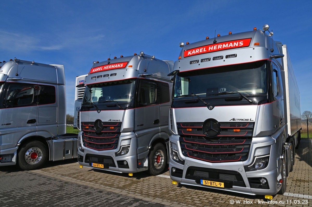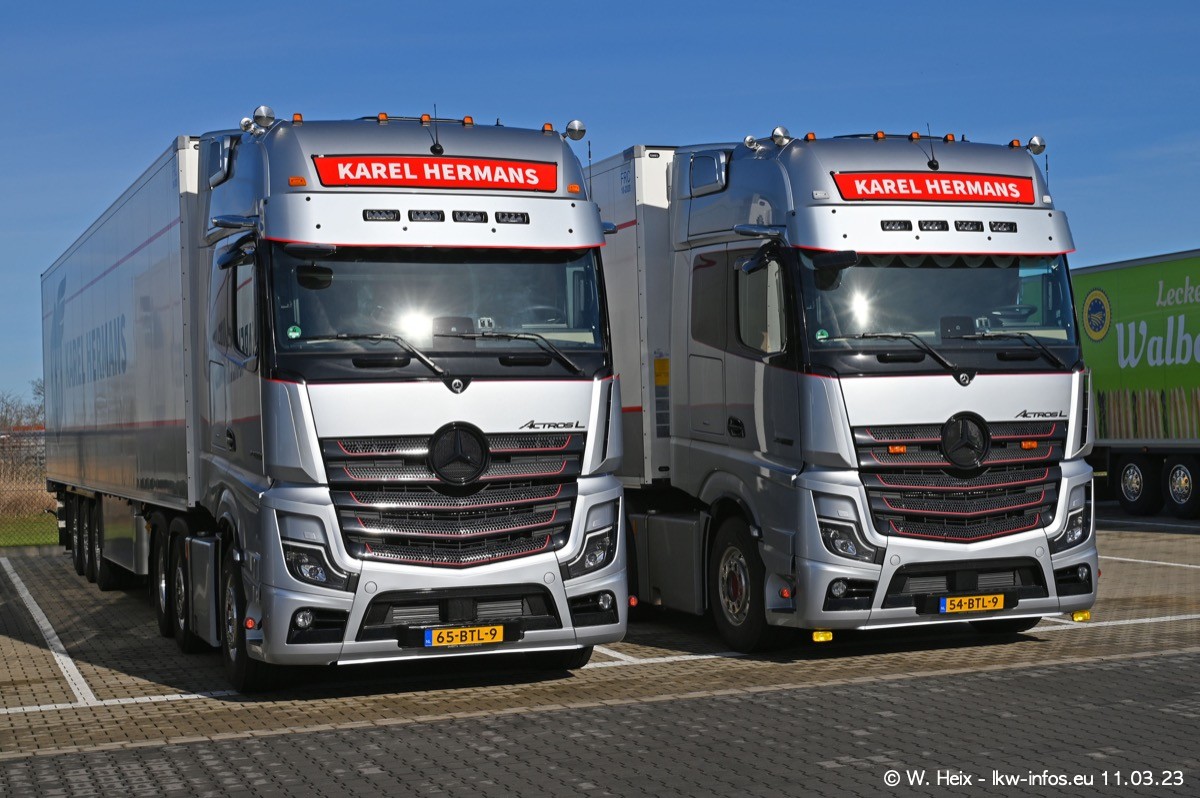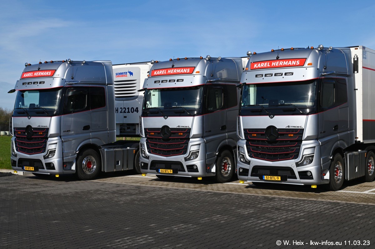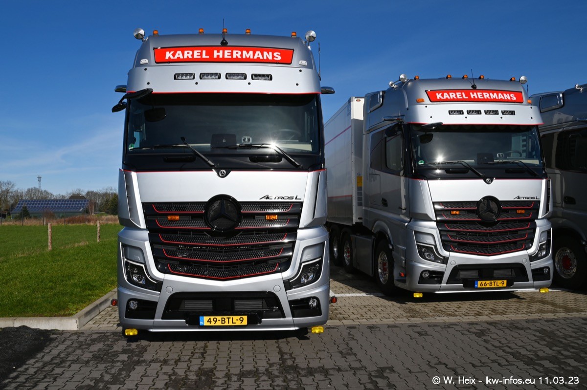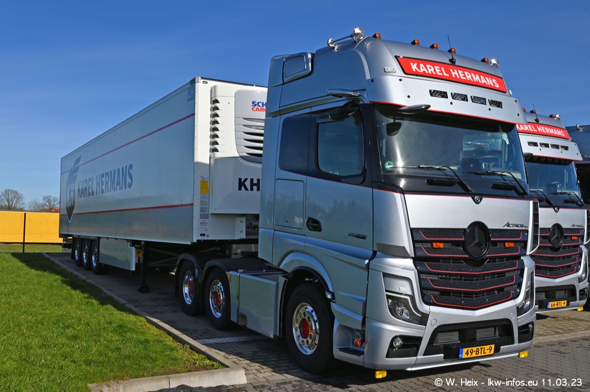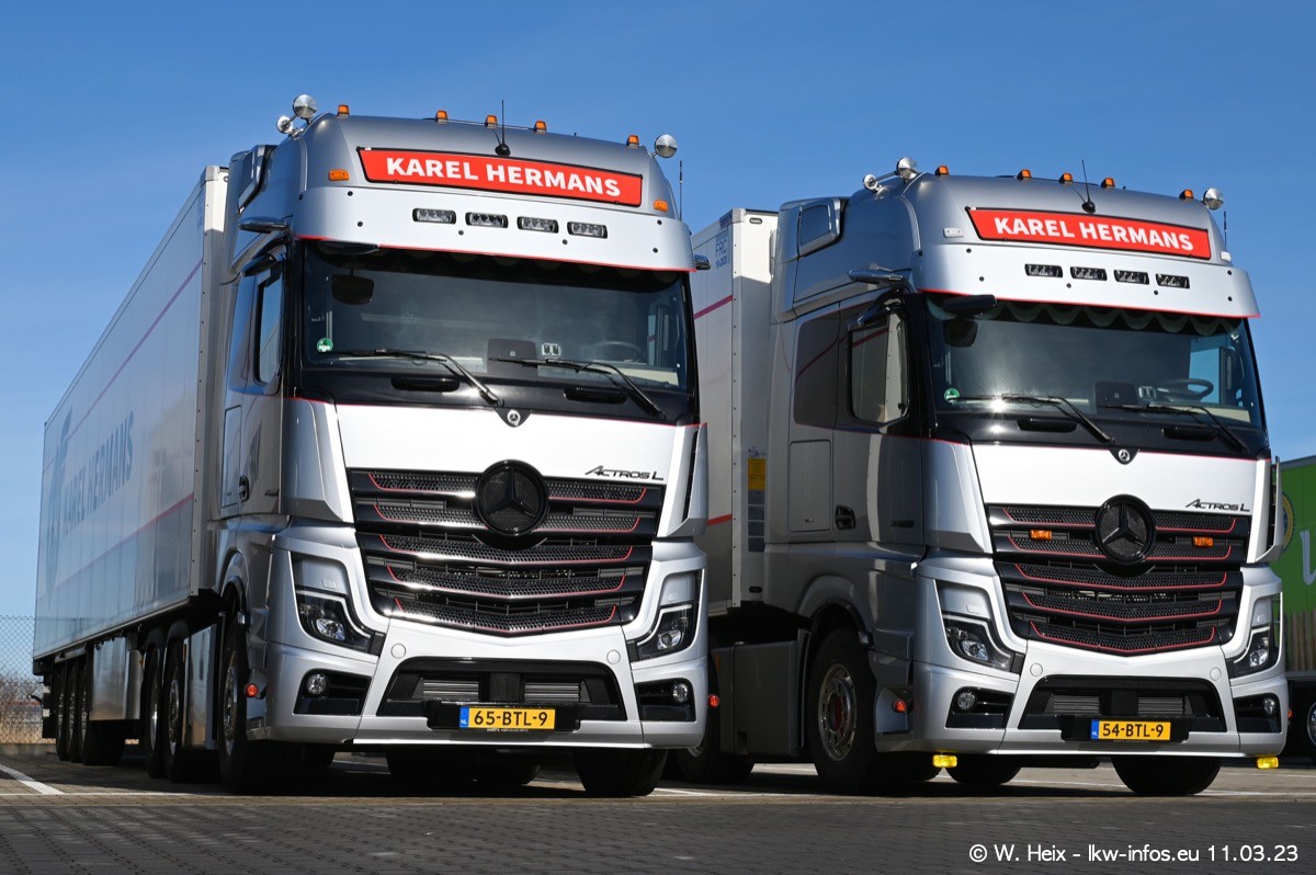 Karel Hermans ist eine neue Firma/Spedition, die in Venlo (NL) zuhause ist. Die lKW stehen allerdings bei der Spedition Klümpen in Straelen (D). Inzwischen gibt es sechs Mercedes-Benz Actros L, fünf davon konnte ich bei schönstem Wetter fotografieren. 🙂
