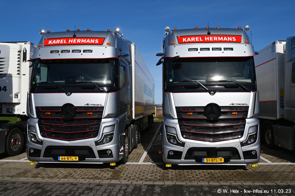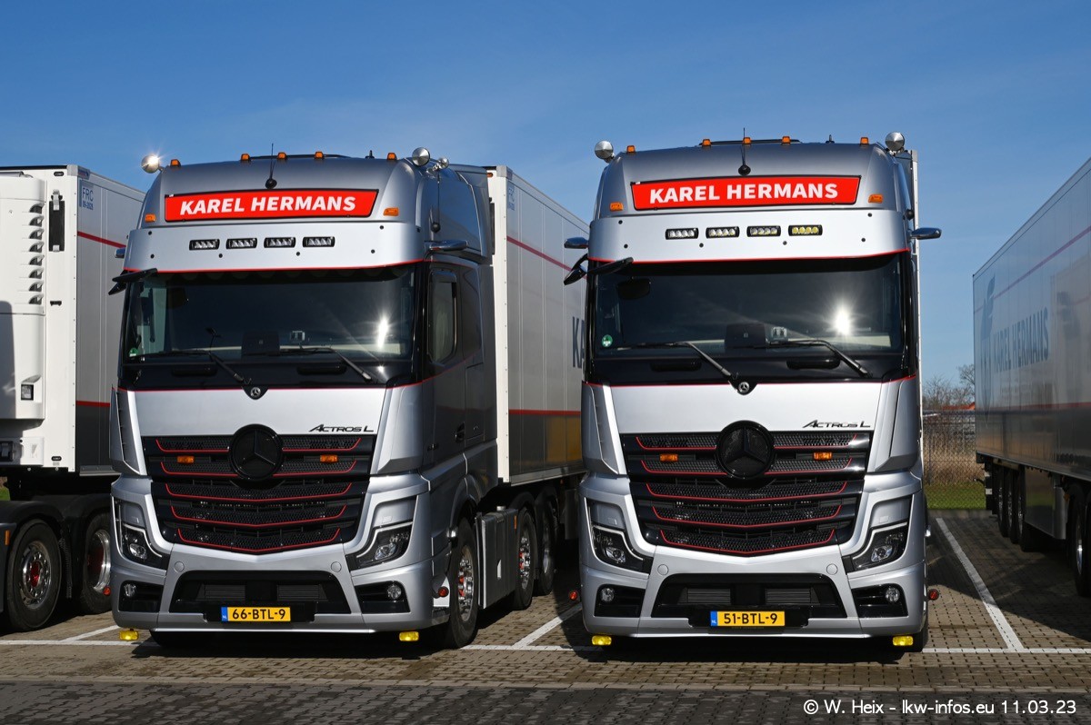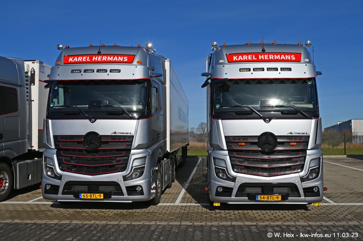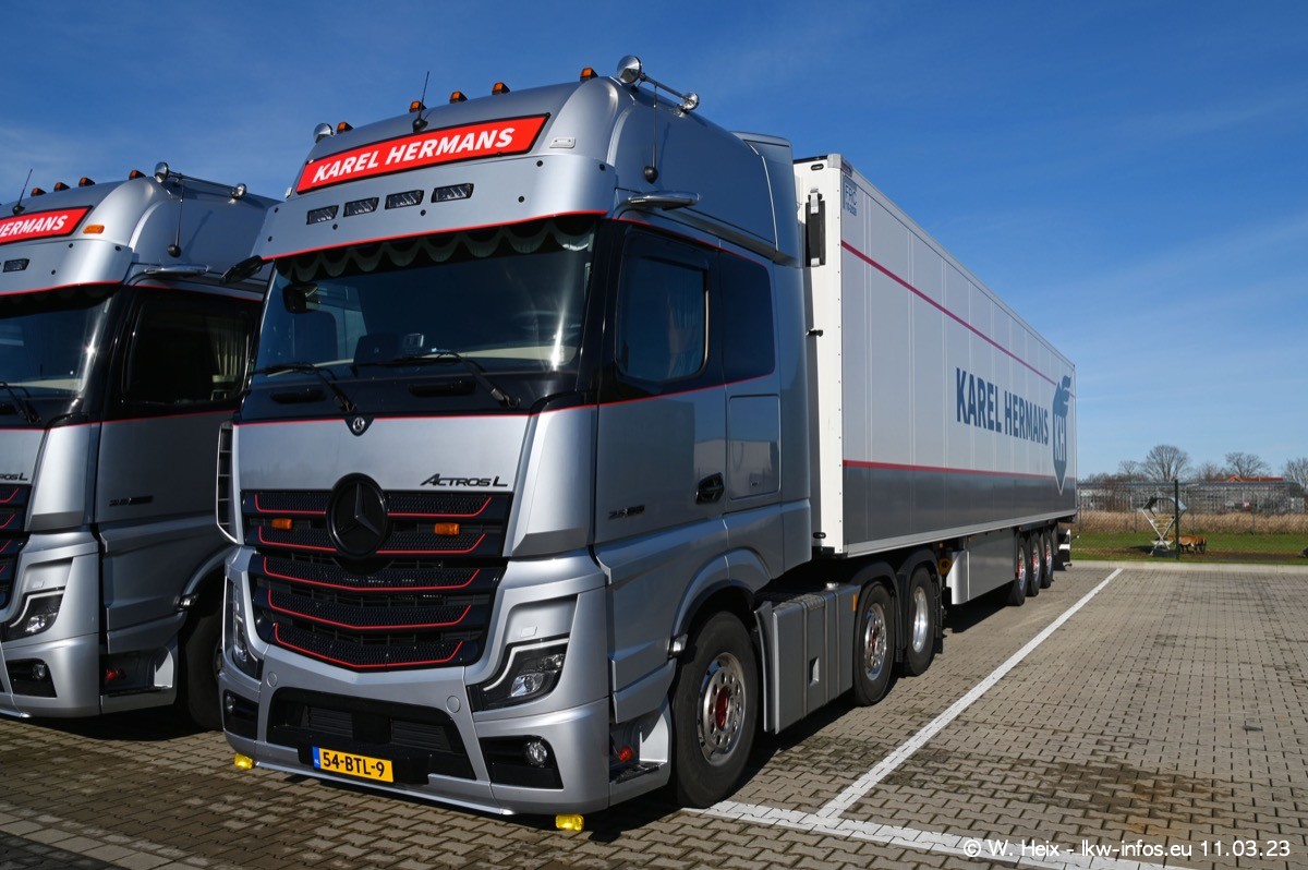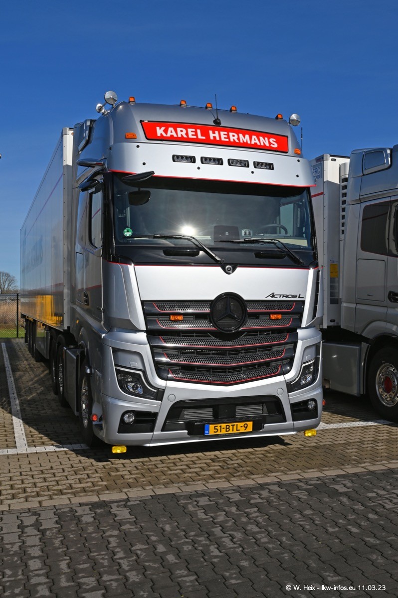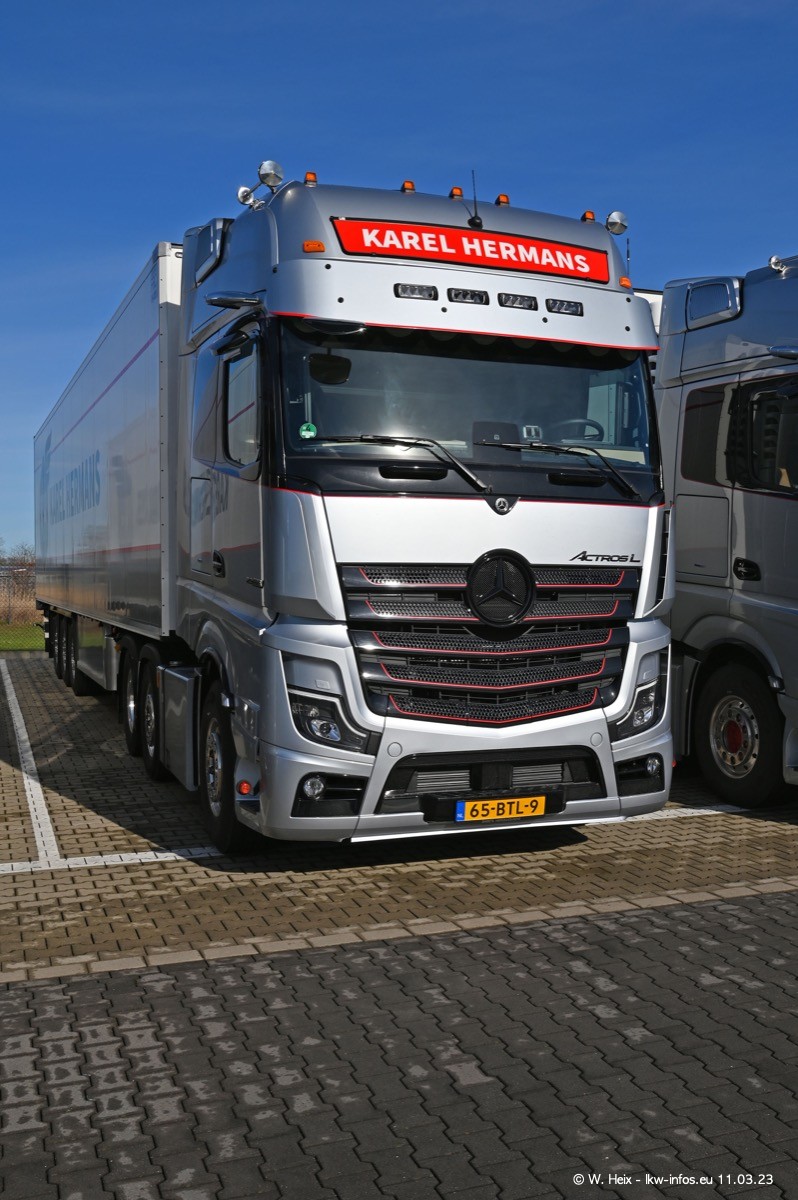 Karel Hermans ist eine neue Firma/Spedition, die in Venlo (NL) zuhause ist. Die lKW stehen allerdings bei der Spedition Klümpen in Straelen (D). Inzwischen gibt es sechs Mercedes-Benz Actros L, fünf davon konnte ich bei schönstem Wetter fotografieren. 🙂