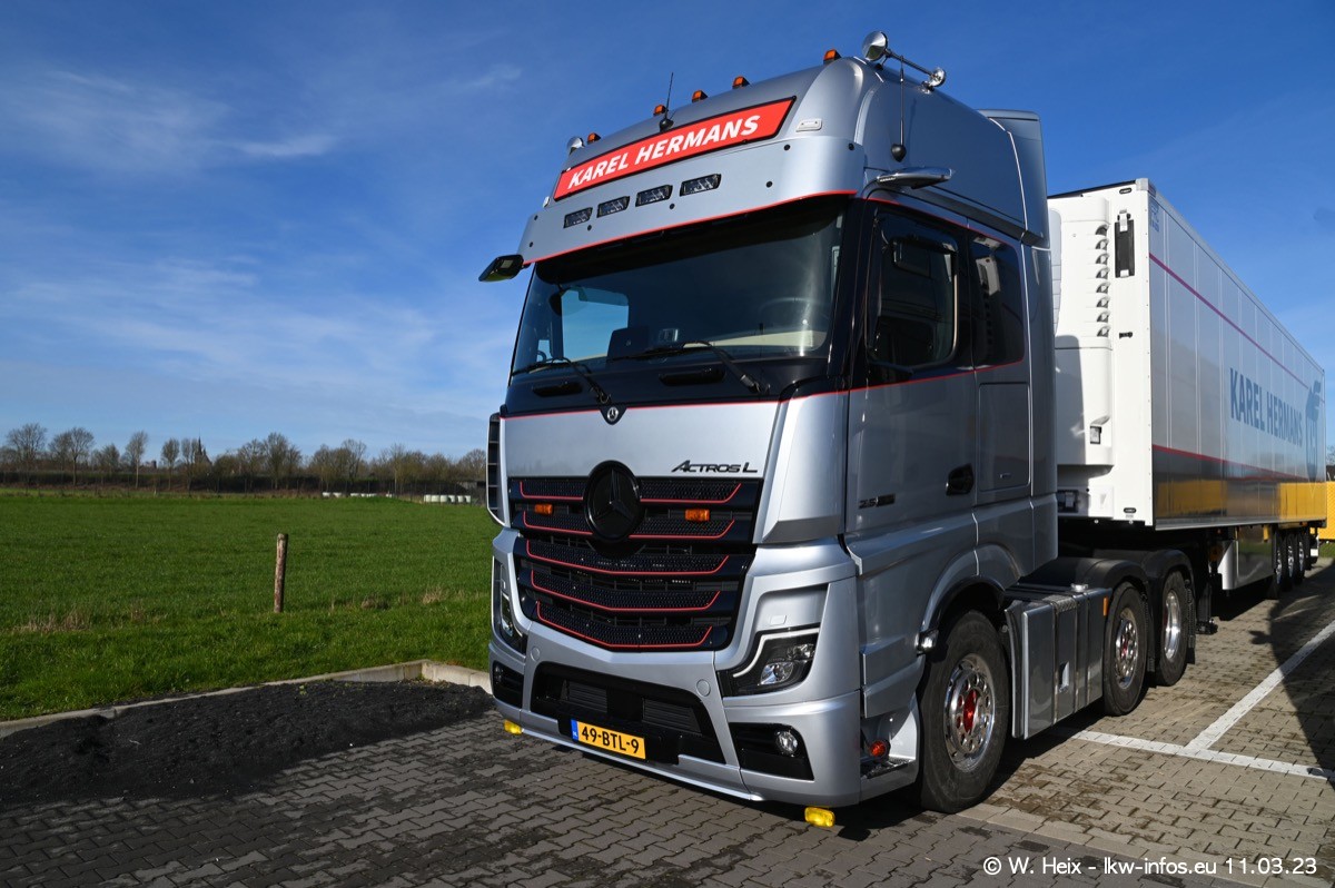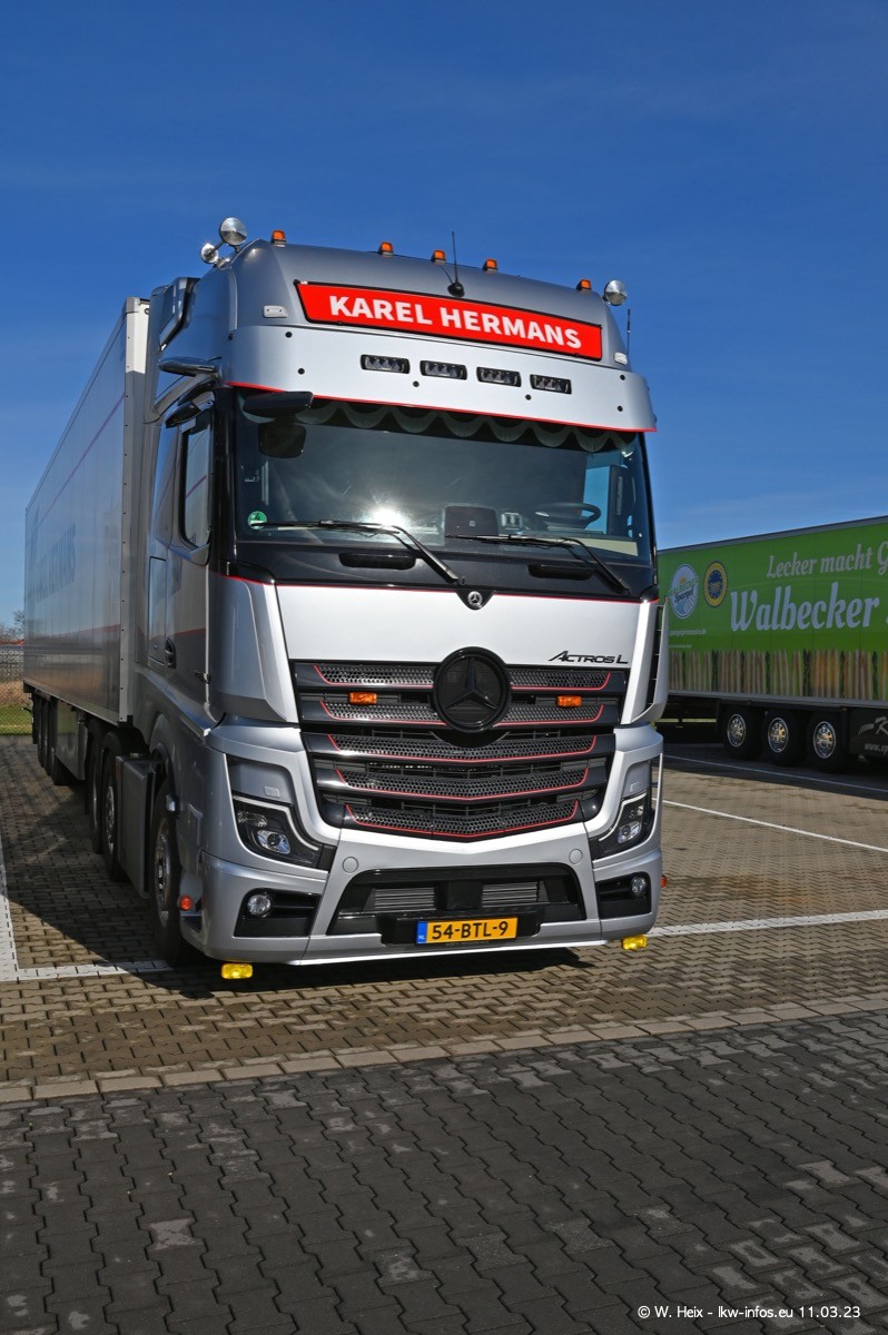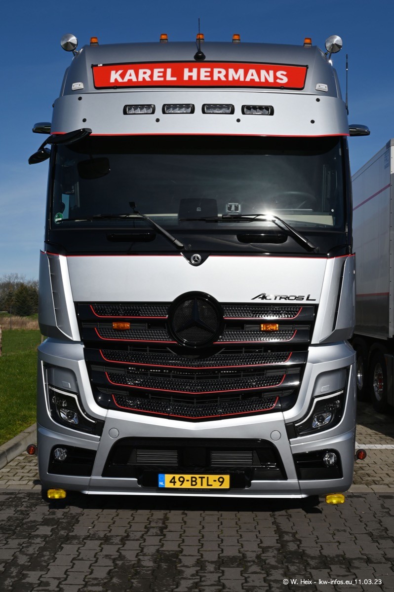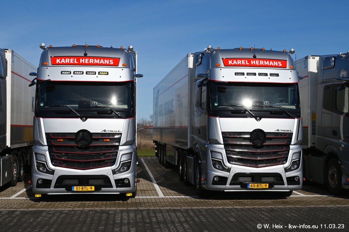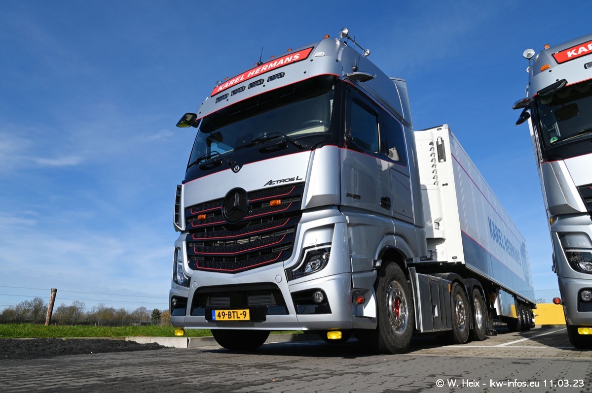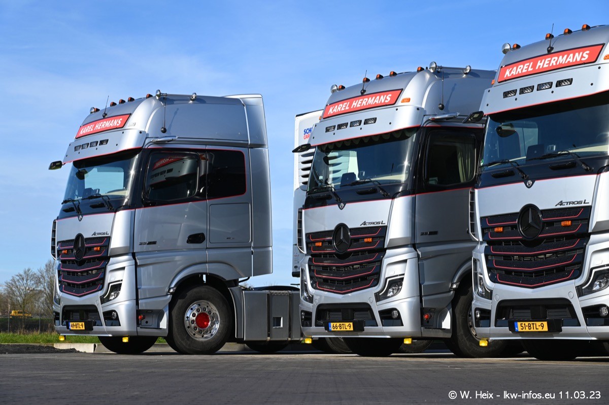 Karel Hermans ist eine neue Firma/Spedition, die in Venlo (NL) zuhause ist. Die lKW stehen allerdings bei der Spedition Klümpen in Straelen (D). Inzwischen gibt es sechs Mercedes-Benz Actros L, fünf davon konnte ich bei schönstem Wetter fotografieren. 🙂