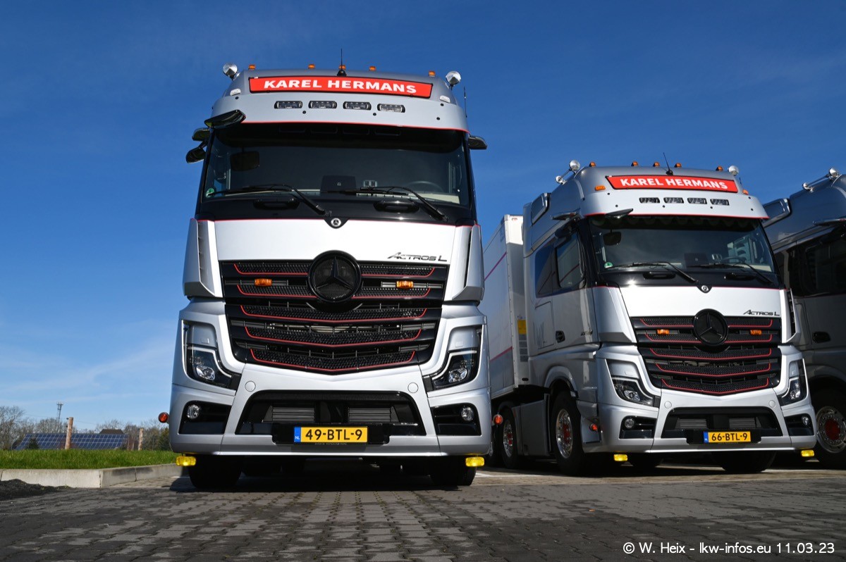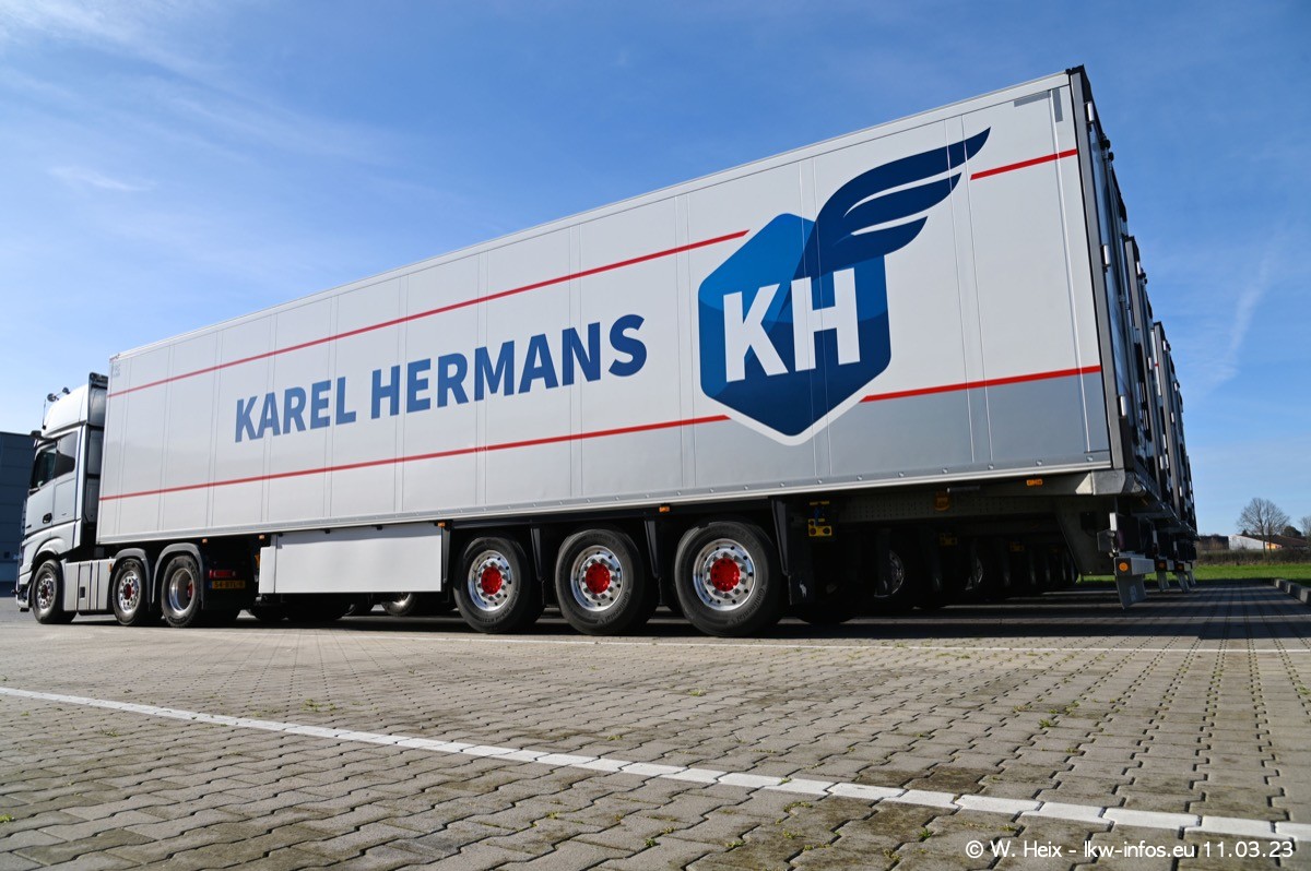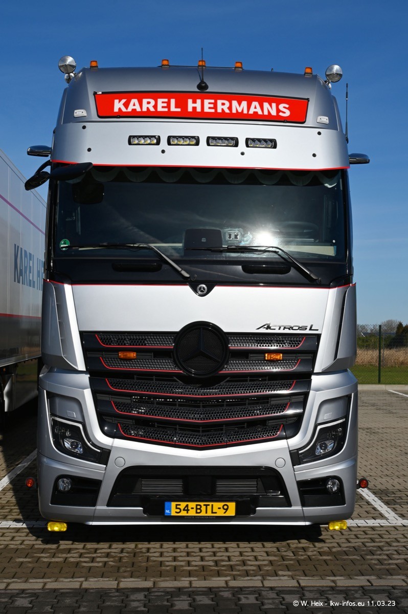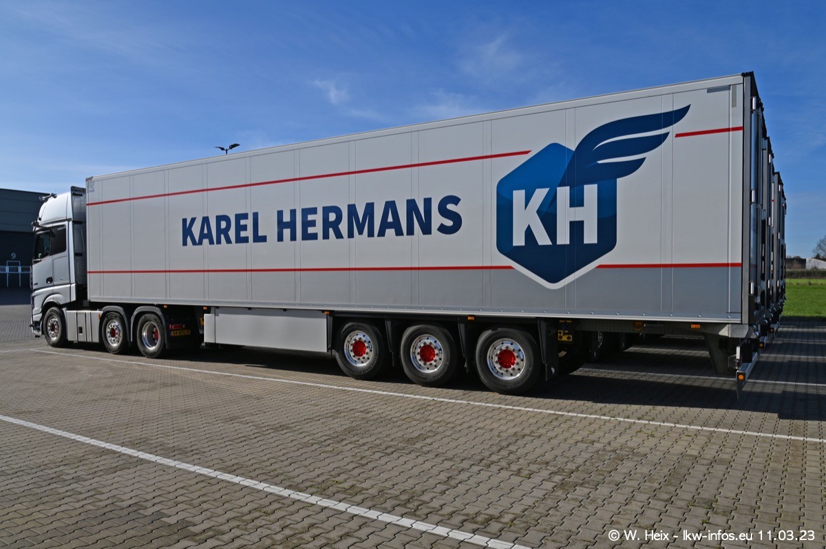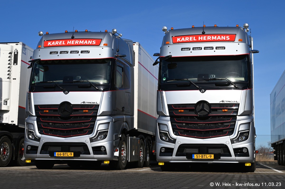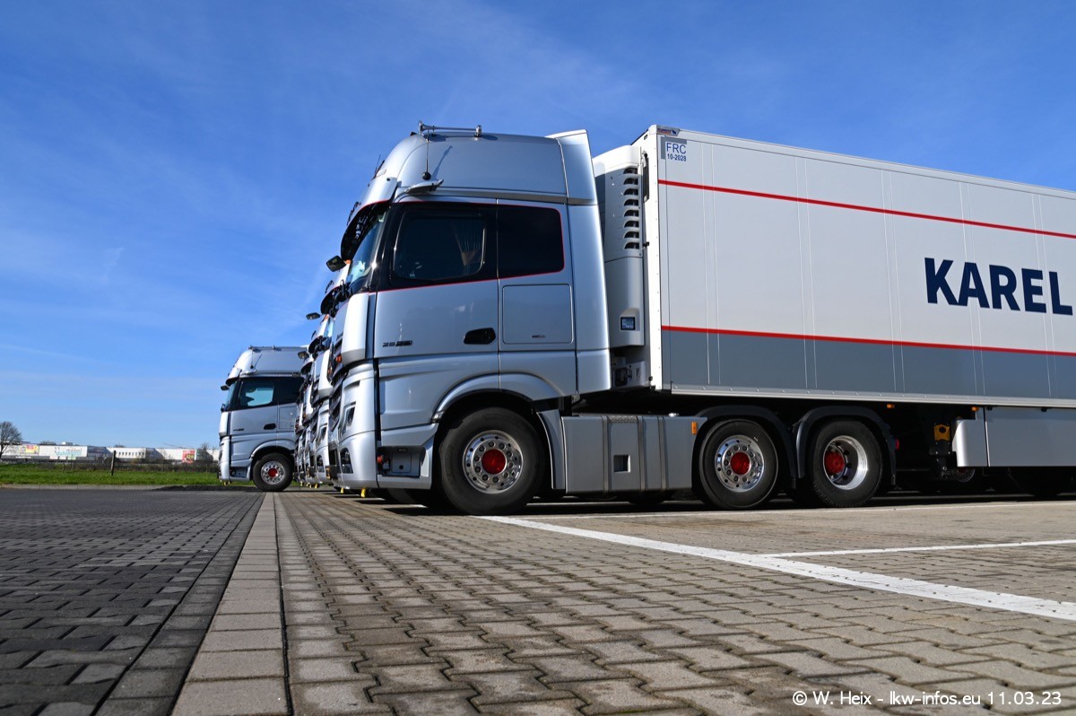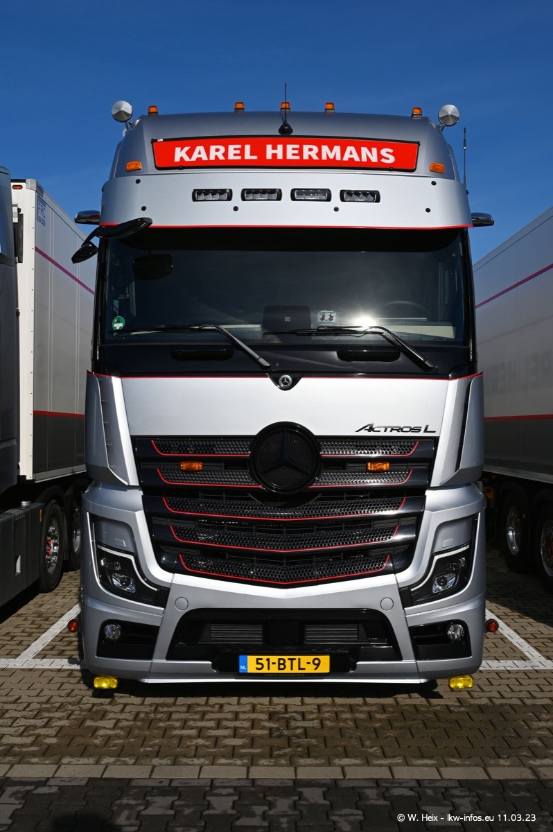 Karel Hermans ist eine neue Firma/Spedition, die in Venlo (NL) zuhause ist. Die lKW stehen allerdings bei der Spedition Klümpen in Straelen (D). Inzwischen gibt es sechs Mercedes-Benz Actros L, fünf davon konnte ich bei schönstem Wetter fotografieren. 🙂