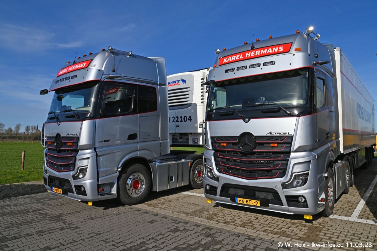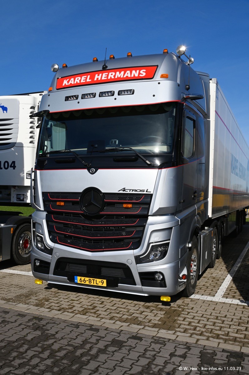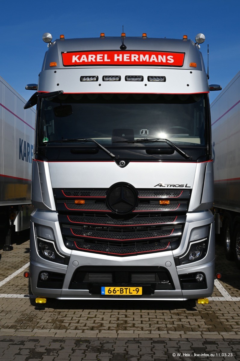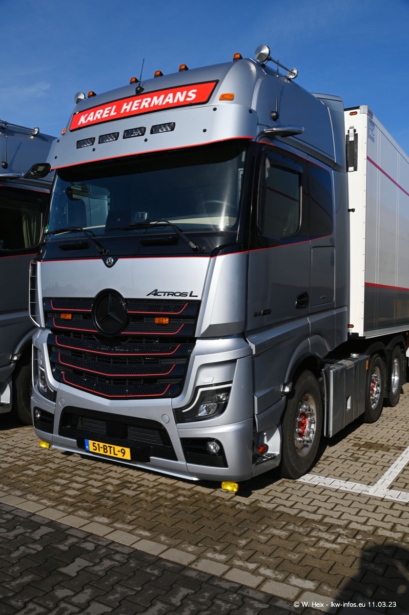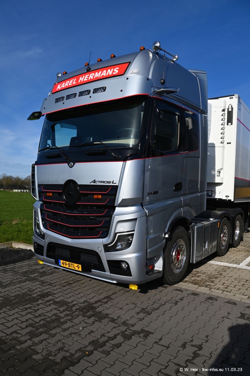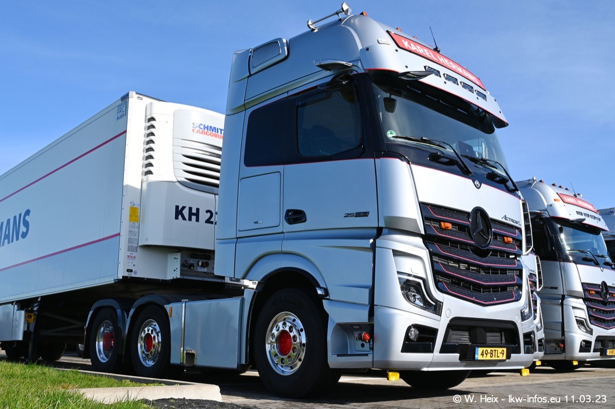 Karel Hermans ist eine neue Firma/Spedition, die in Venlo (NL) zuhause ist. Die lKW stehen allerdings bei der Spedition Klümpen in Straelen (D). Inzwischen gibt es sechs Mercedes-Benz Actros L, fünf davon konnte ich bei schönstem Wetter fotografieren. 🙂