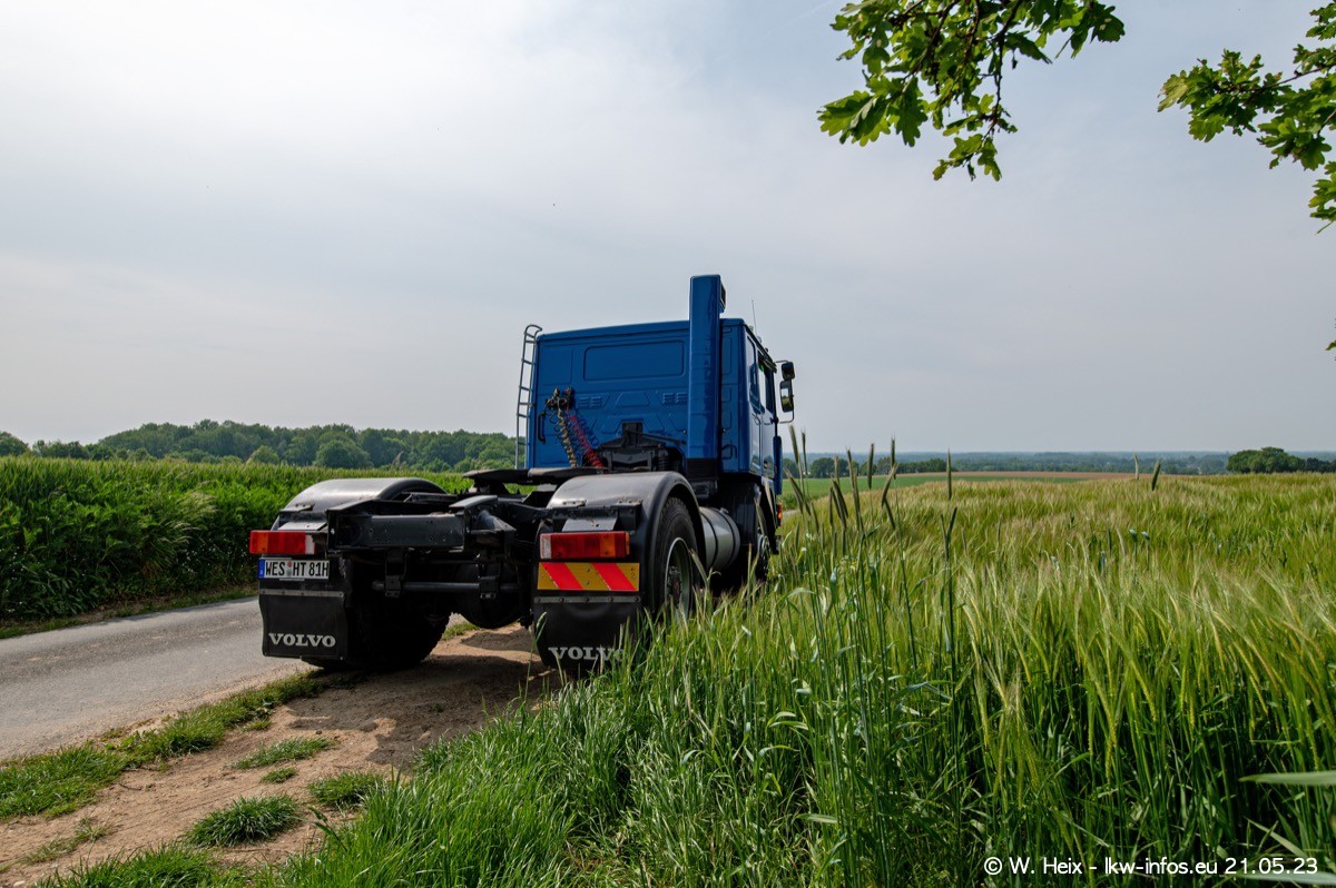 Jürgen Lanitz ist ein Mitarbeiter/Fahrer der Firma Hegmann Transit aus Sonsbeck (D). 2022 hat er sich einen Traum erfüllt und einen VOLVO F1220 gekauft und teilweise restauriert. Viel Arbeit war da nicht nötig. Der VOLVO ist Baujahr 1981 und hat einen 330 PS Sechszylinder Dieselmotor. Das Fahrzeug ist im vergangenen Jahr über einen niederländischen Nutzfahrzeughändler (Tom Holding B.V.) von Griechenland in die Niederlande importiert worden und dann zurück nach Deutschland gekommen. Die Original-Papiere sind erhalten und daraus geht hervor, dass dieser VOLVO sogar ganz in der Nähe mal zuhause war. Fahrerhaus und Stoßstange wurden neu lackiert in den Farben von Hegmann Transit, die Kabine wurde von innen etwas überholt, ist aber weitgehend orignial wie auch der Rest des Fahrzeugs. Der VOLVO ist noch nicht ganz fertig, aber wir haben schon mal ein schönens Fotoshooting in der Umgebung von Sonsbeck gemacht.