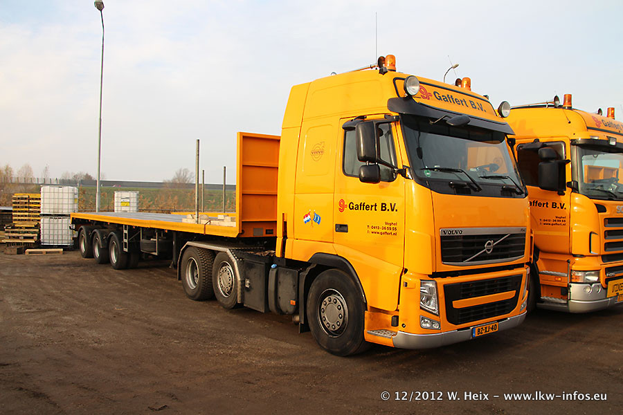 Seit meinem letzten Besuch bei Gaffert im Mai 2010 sind zwei Volvo FH Zugmaschinen neu in den Fuhrpark gekommen. Im nächsten Jahr wird der Fuhrpark mit weiteren LKW modernisiert.