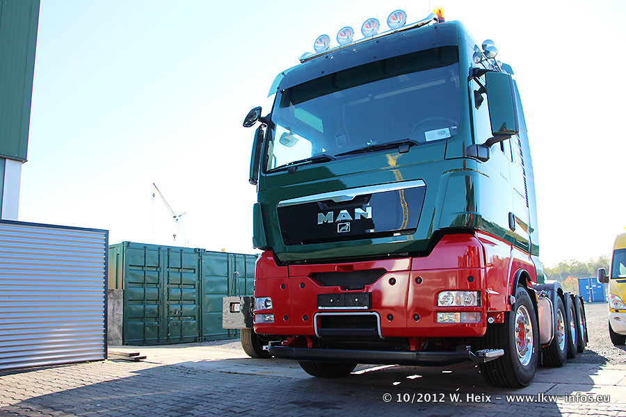 Neu im Fuhrpark sind ein MAN TGX 41.540 (noch ohne Kennzeichen und Beschriftung) und ein Mercedes.-Benz Actros 3.