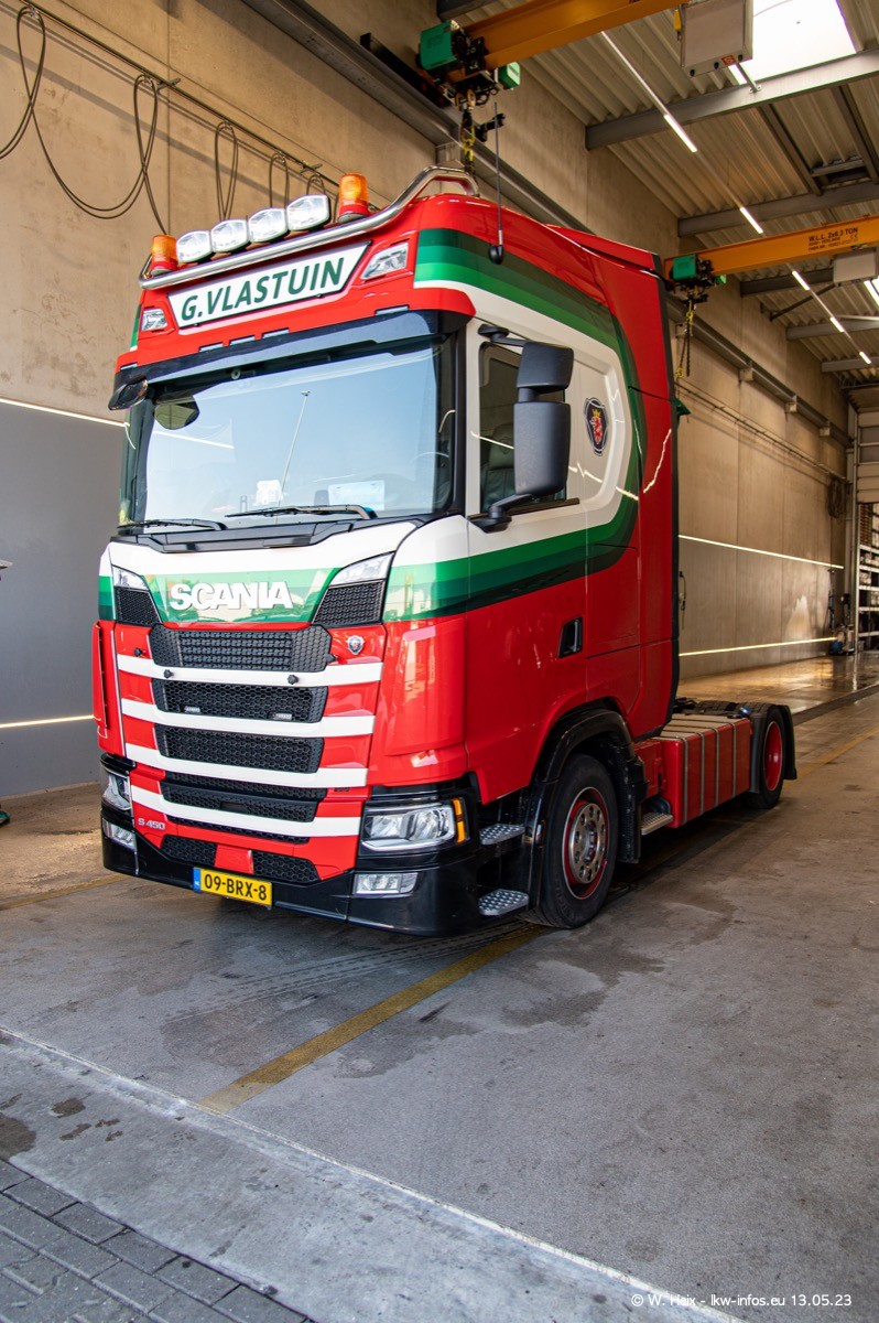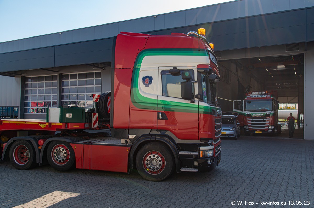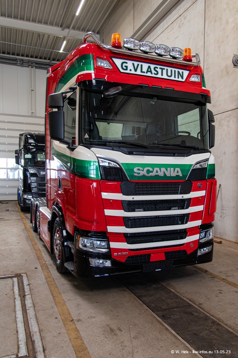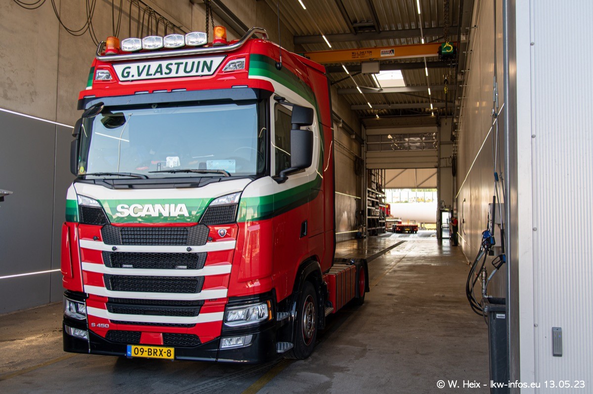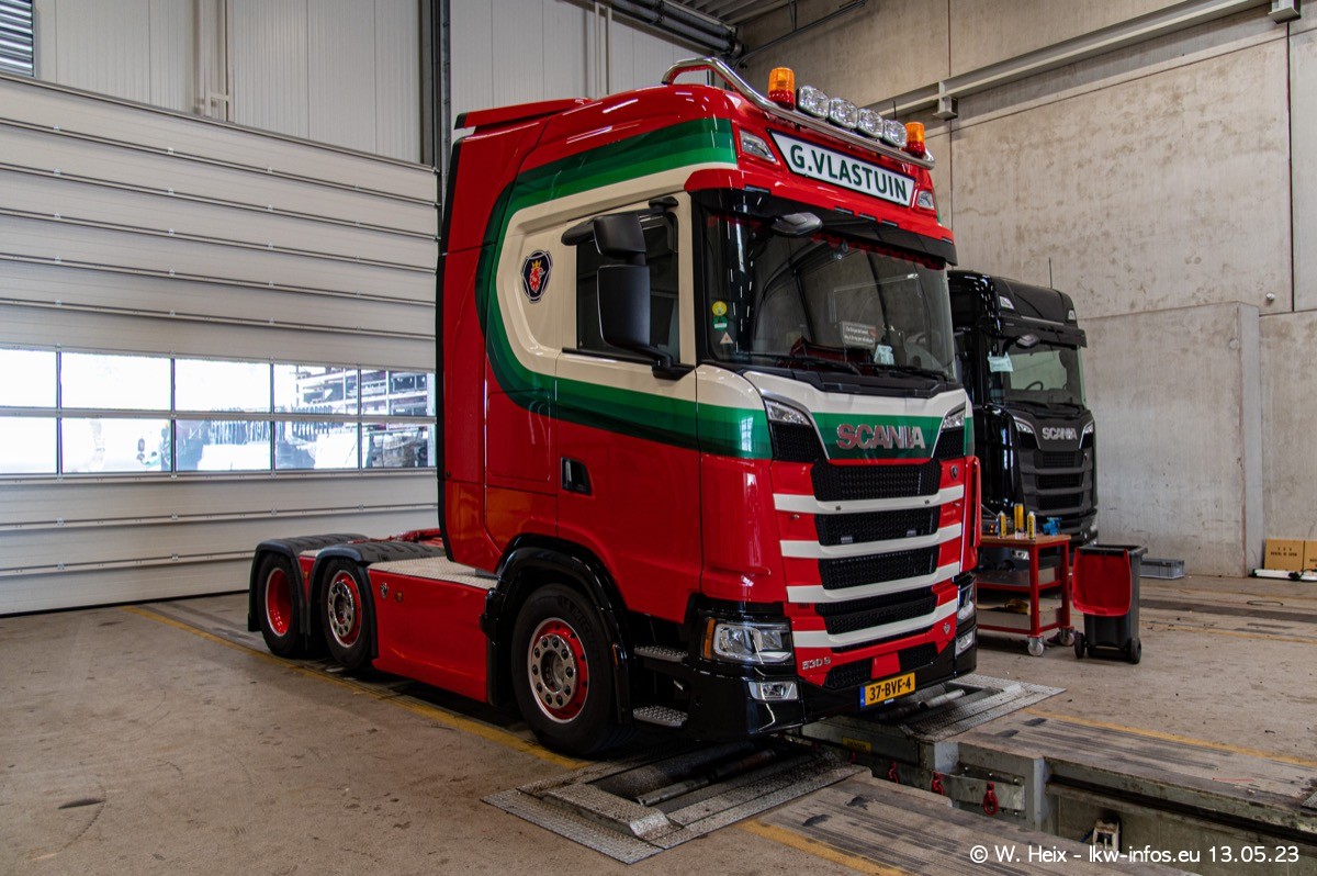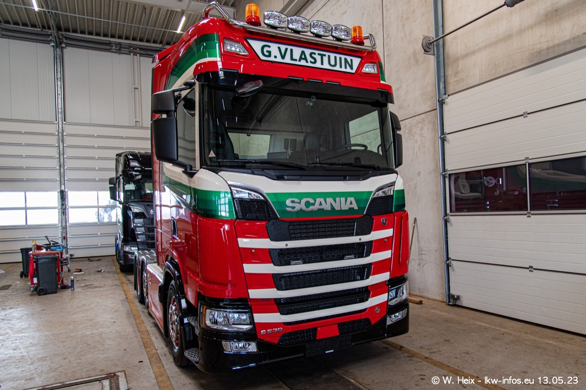 Im verganenen Jahr hat Vlastuin die Firma W. P. de Koning aus Vuren übernommnen. Zwei Fahrzeuge konnte ich heute fotografieren. Ganz neu sind zwei SCANIA 530 S V8, die ich in der Werkstatt fotografiert habe, zu sehen auf den ersten Bildern. Inzwischen sind fast alle älteren SCANIA ausgemustert bzw. durch aktuelle der Baureihen S und R ersetzt worden.