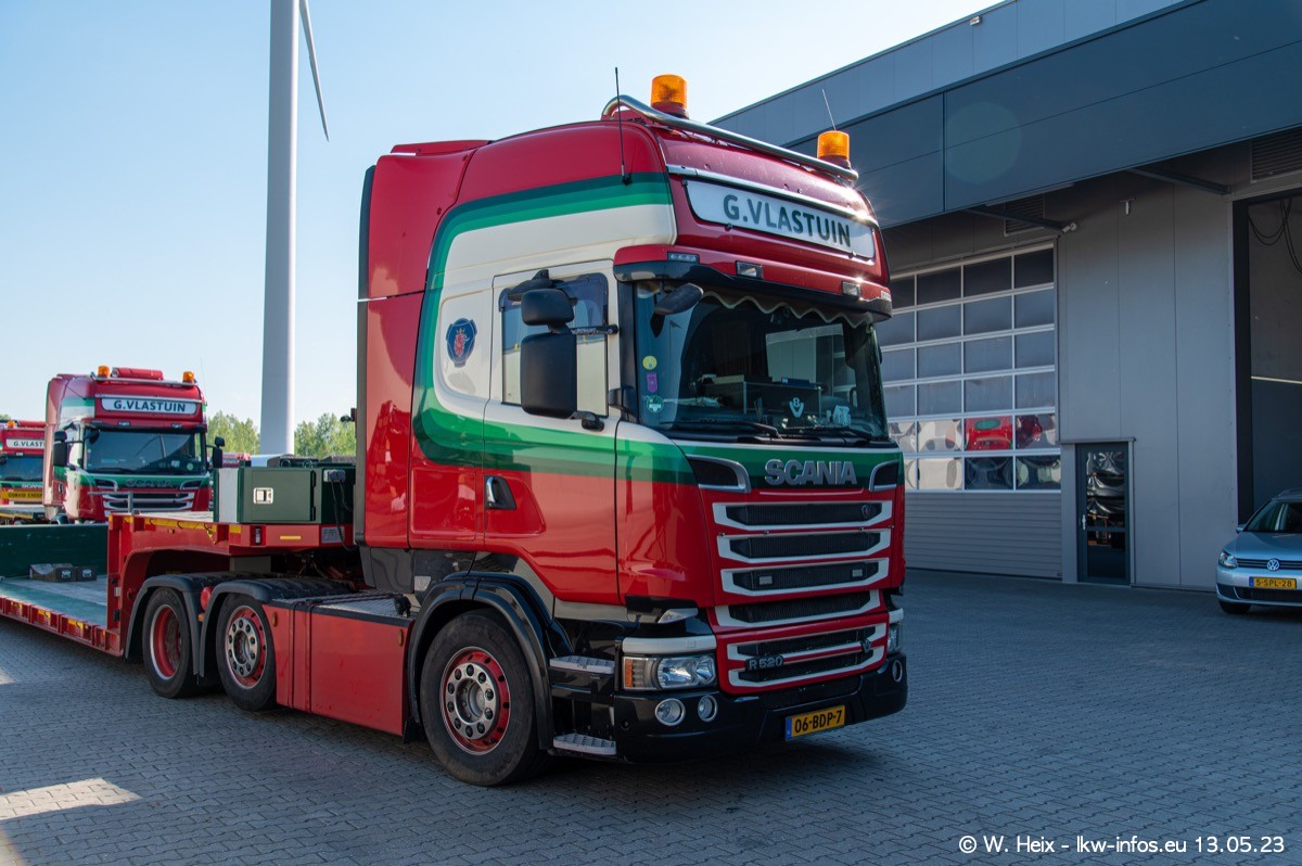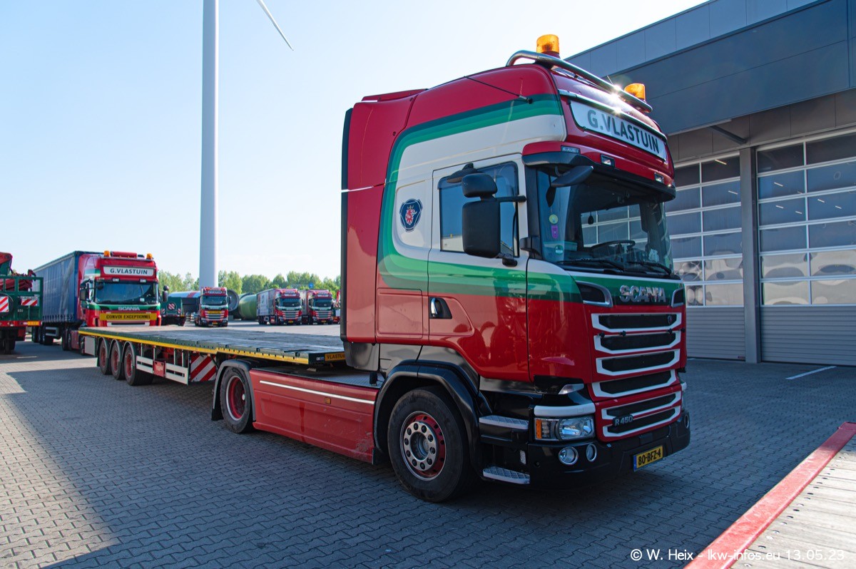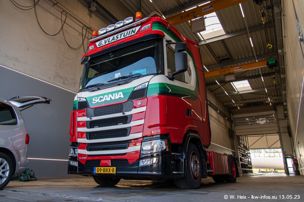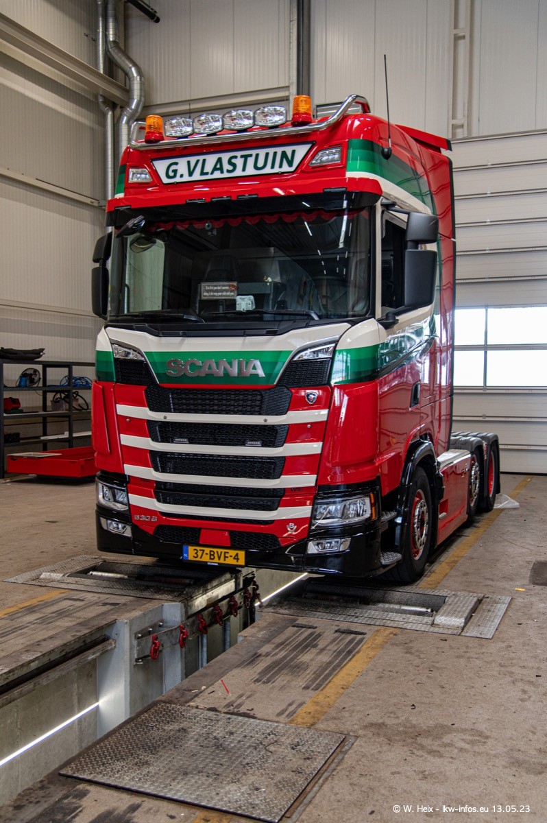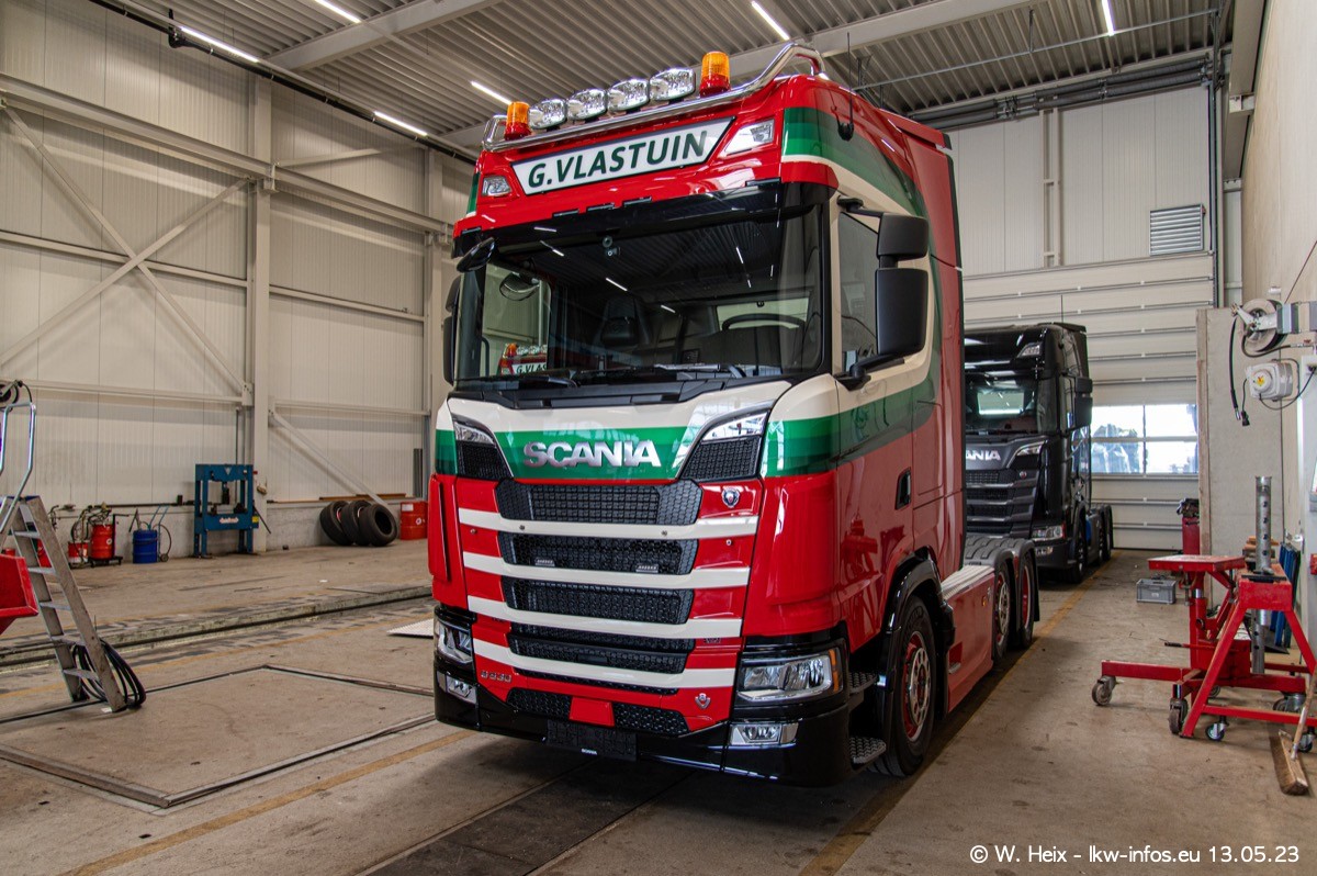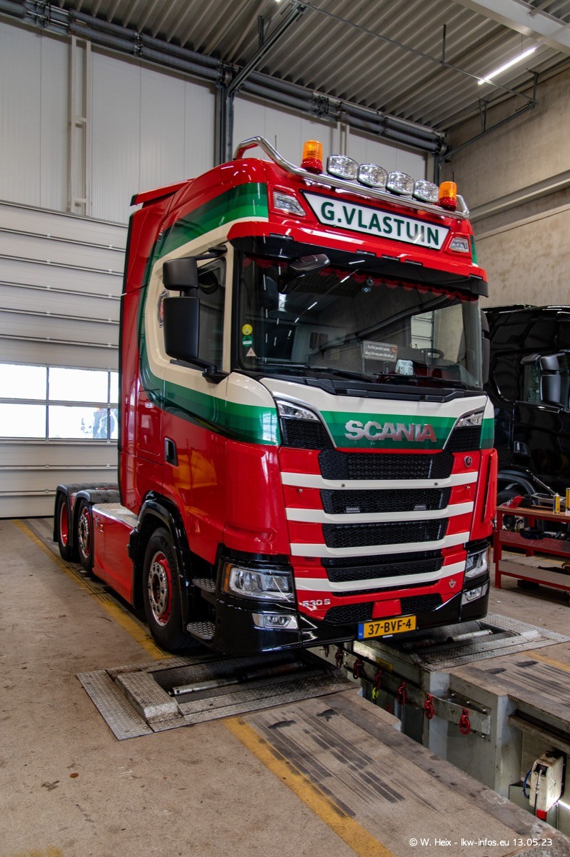 Im verganenen Jahr hat Vlastuin die Firma W. P. de Koning aus Vuren übernommnen. Zwei Fahrzeuge konnte ich heute fotografieren. Ganz neu sind zwei SCANIA 530 S V8, die ich in der Werkstatt fotografiert habe, zu sehen auf den ersten Bildern. Inzwischen sind fast alle älteren SCANIA ausgemustert bzw. durch aktuelle der Baureihen S und R ersetzt worden.