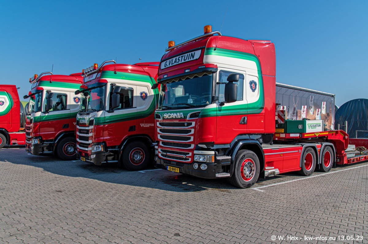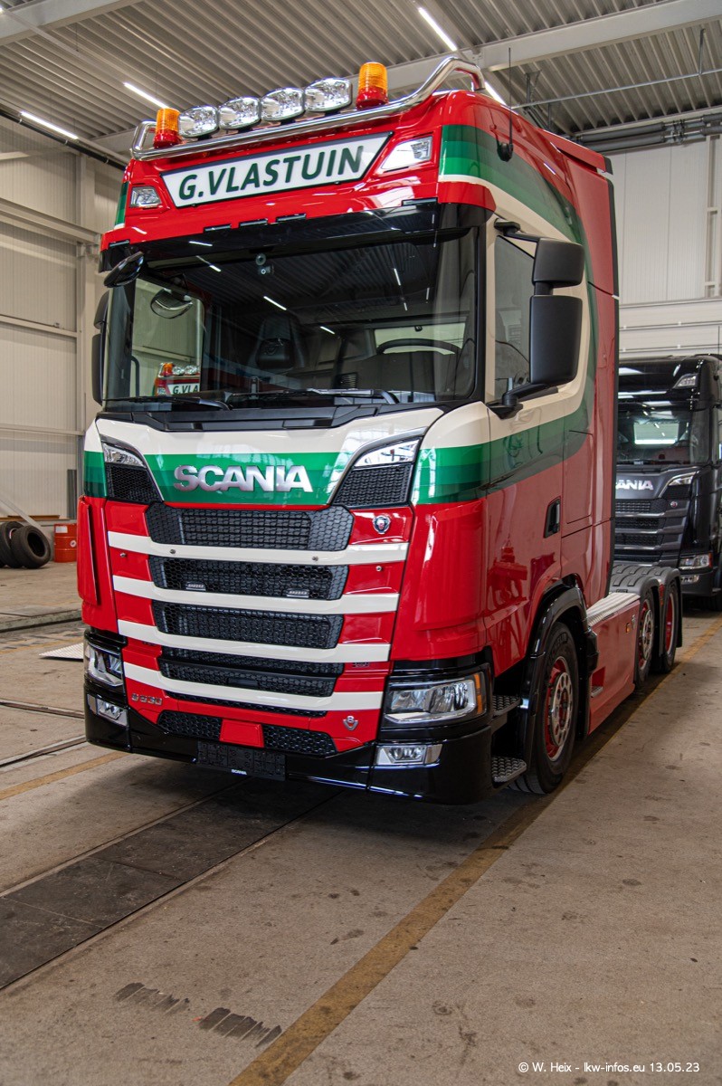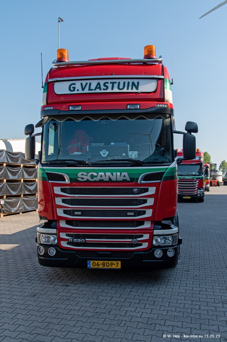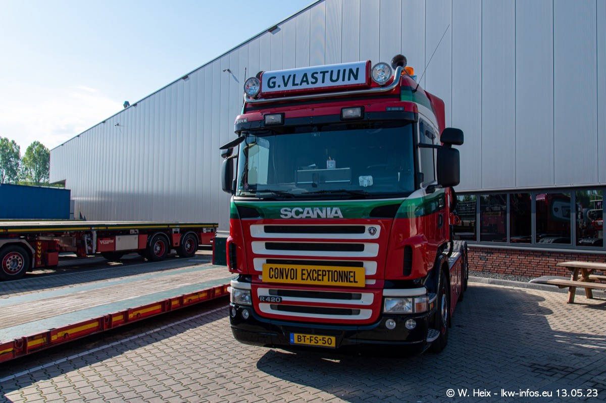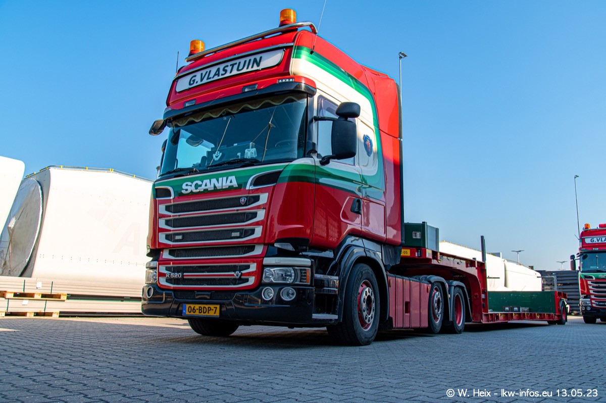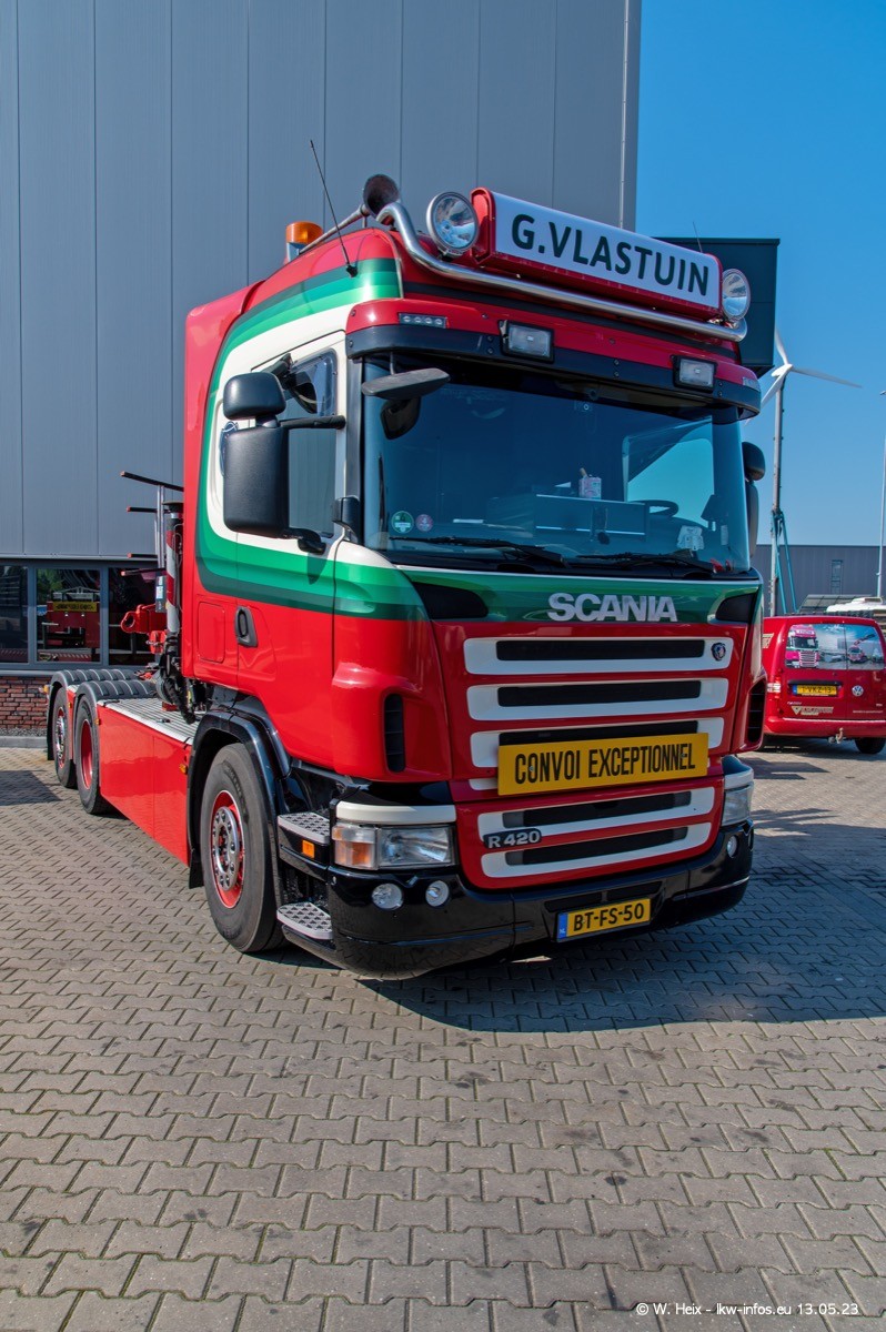 Im verganenen Jahr hat Vlastuin die Firma W. P. de Koning aus Vuren übernommnen. Zwei Fahrzeuge konnte ich heute fotografieren. Ganz neu sind zwei SCANIA 530 S V8, die ich in der Werkstatt fotografiert habe, zu sehen auf den ersten Bildern. Inzwischen sind fast alle älteren SCANIA ausgemustert bzw. durch aktuelle der Baureihen S und R ersetzt worden.