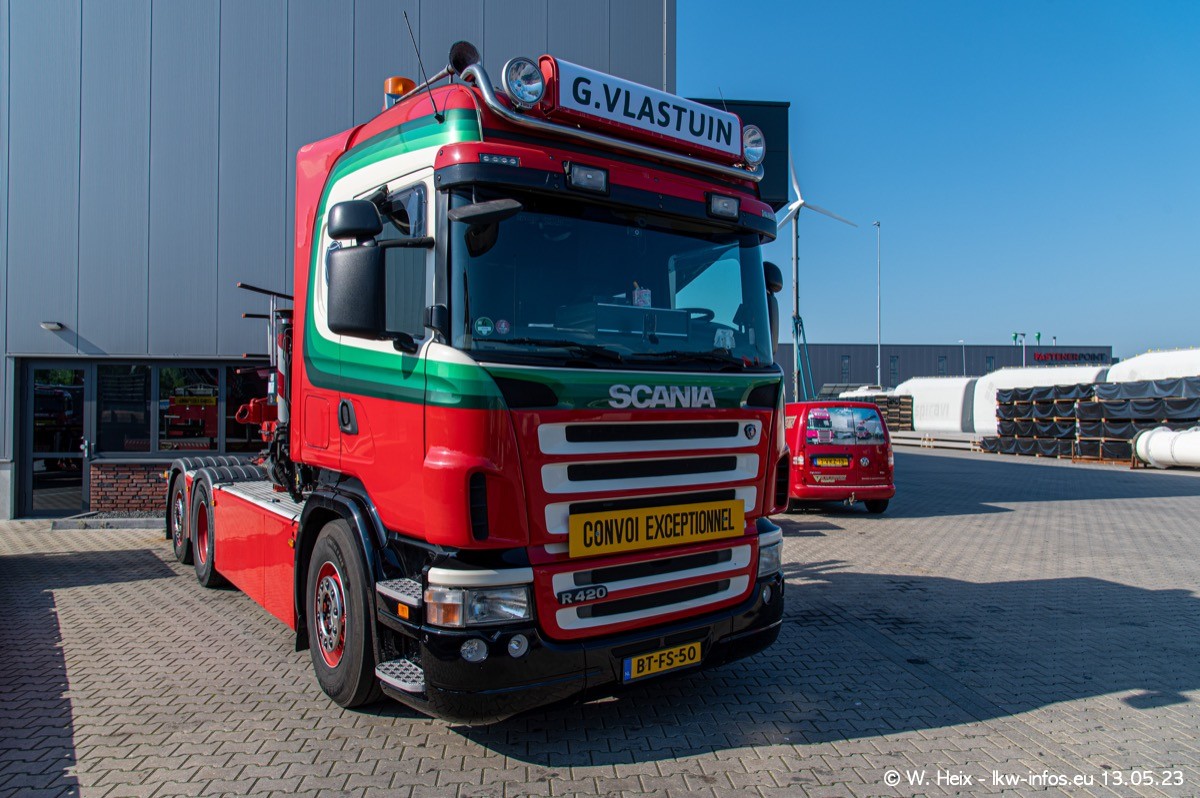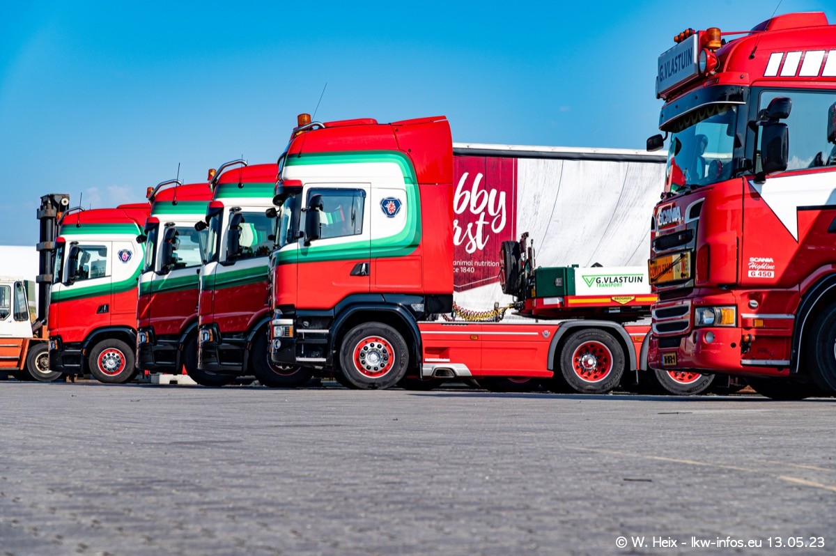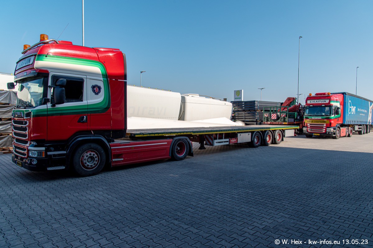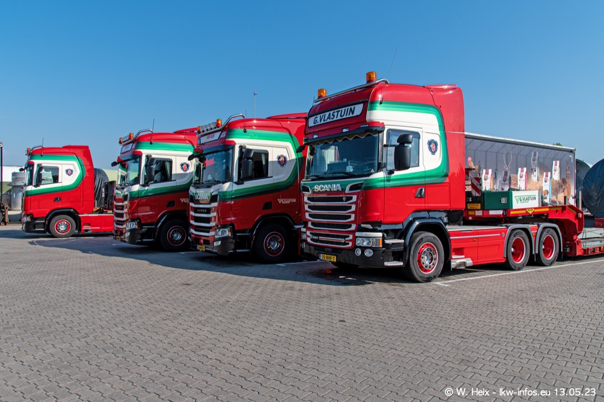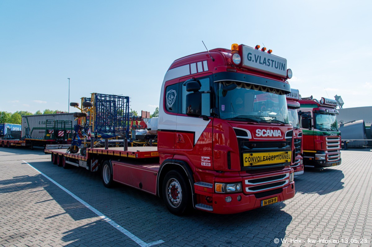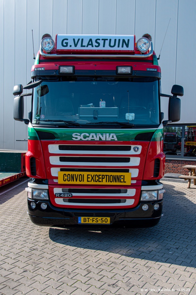Im verganenen Jahr hat Vlastuin die Firma W. P. de Koning aus Vuren übernommnen. Zwei Fahrzeuge konnte ich heute fotografieren. Ganz neu sind zwei SCANIA 530 S V8, die ich in der Werkstatt fotografiert habe, zu sehen auf den ersten Bildern. Inzwischen sind fast alle älteren SCANIA ausgemustert bzw. durch aktuelle der Baureihen S und R ersetzt worden.