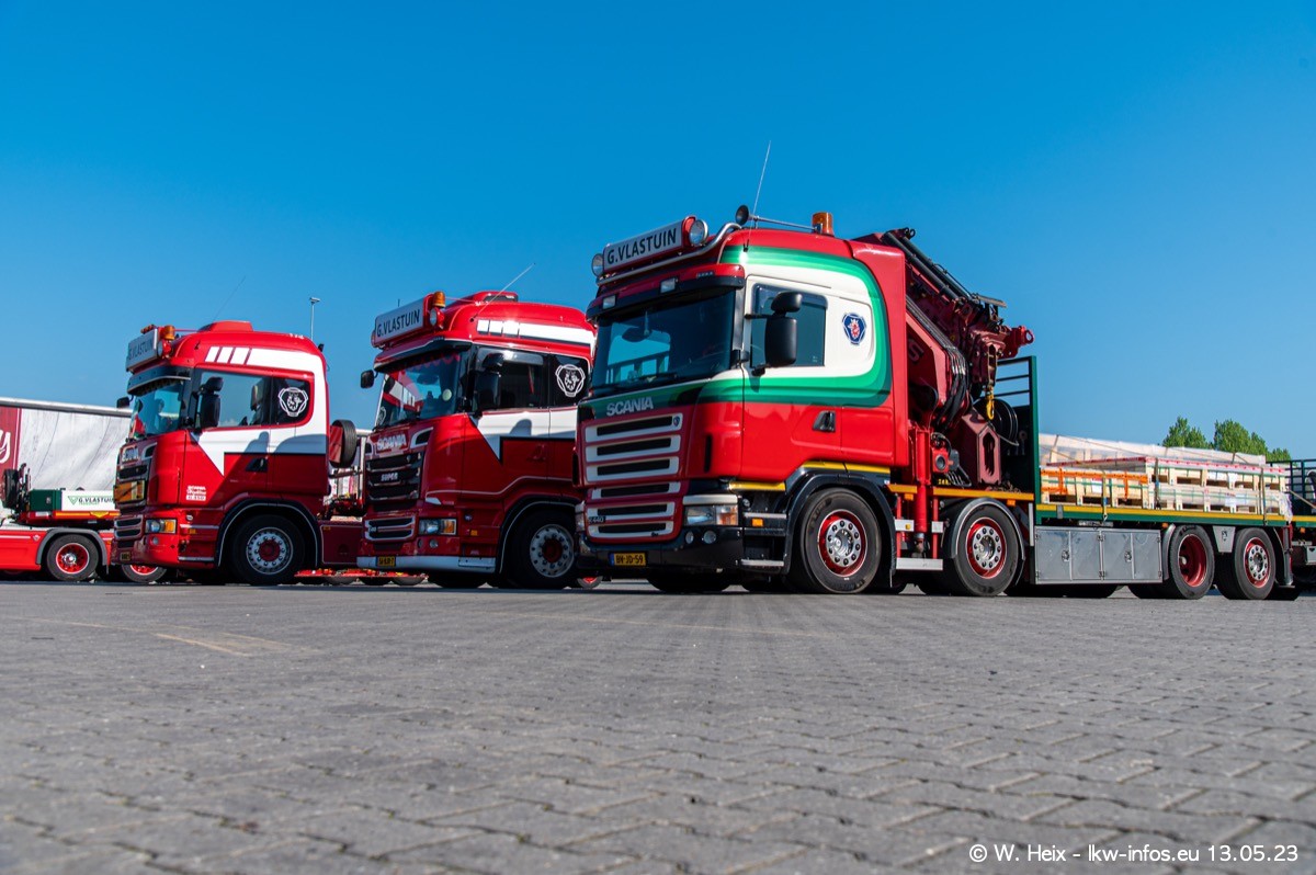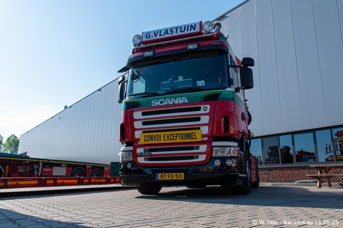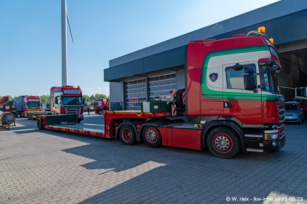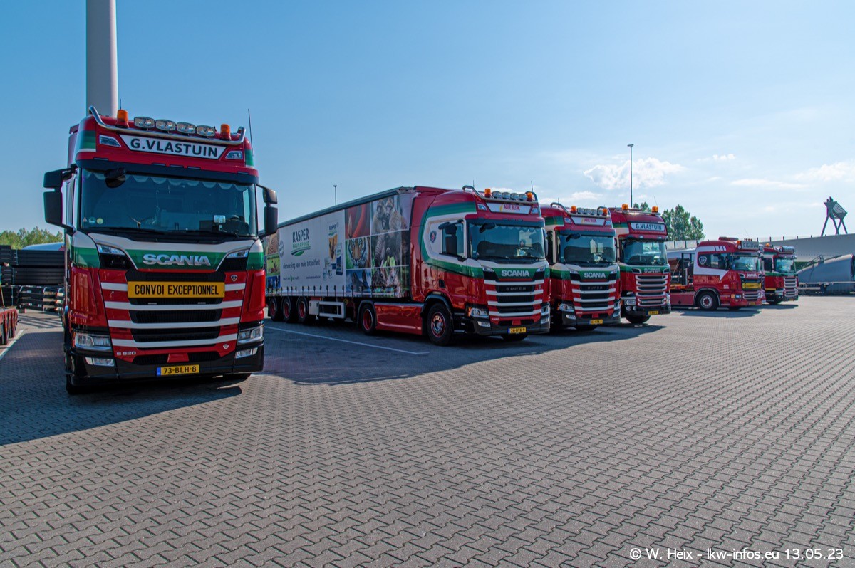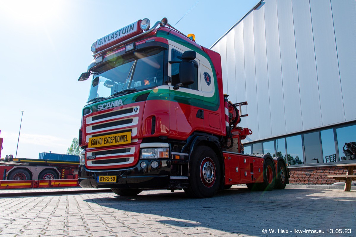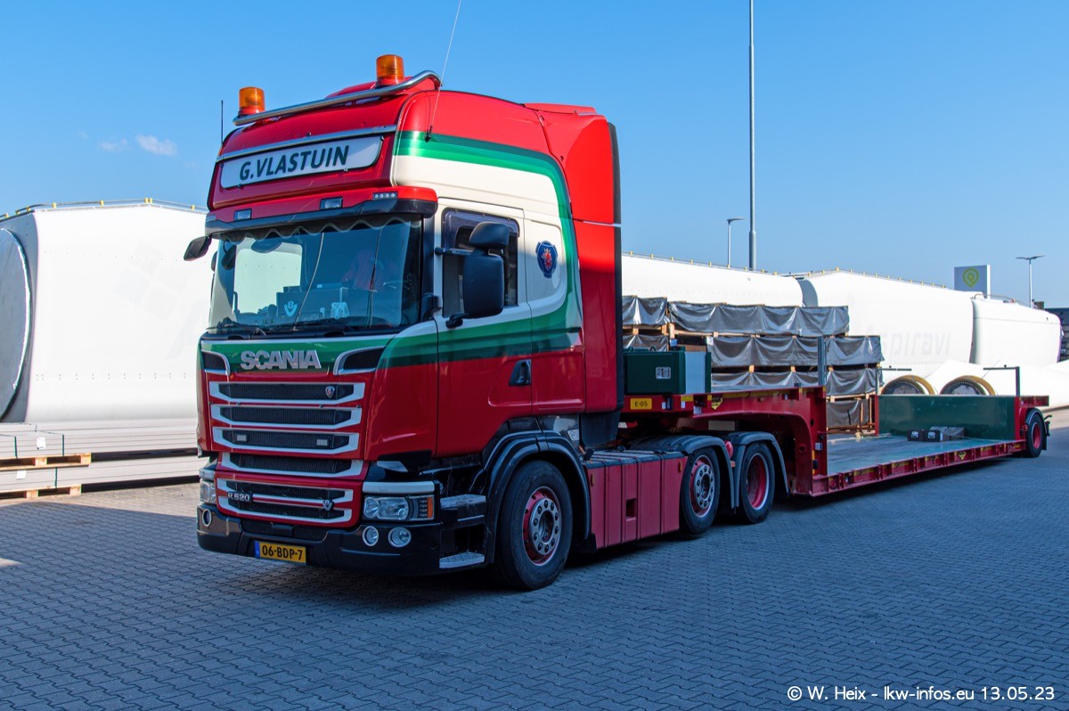 Im verganenen Jahr hat Vlastuin die Firma W. P. de Koning aus Vuren übernommnen. Zwei Fahrzeuge konnte ich heute fotografieren. Ganz neu sind zwei SCANIA 530 S V8, die ich in der Werkstatt fotografiert habe, zu sehen auf den ersten Bildern. Inzwischen sind fast alle älteren SCANIA ausgemustert bzw. durch aktuelle der Baureihen S und R ersetzt worden.