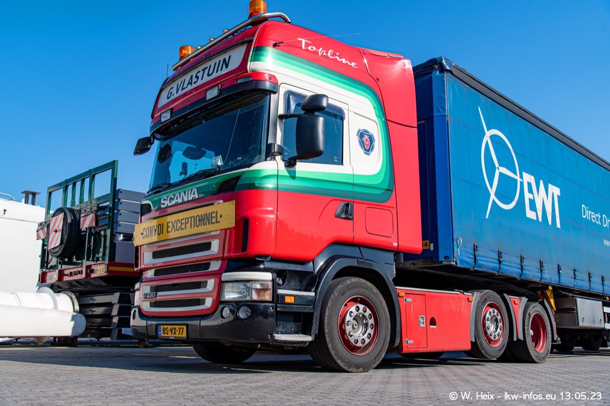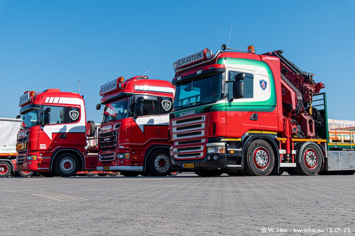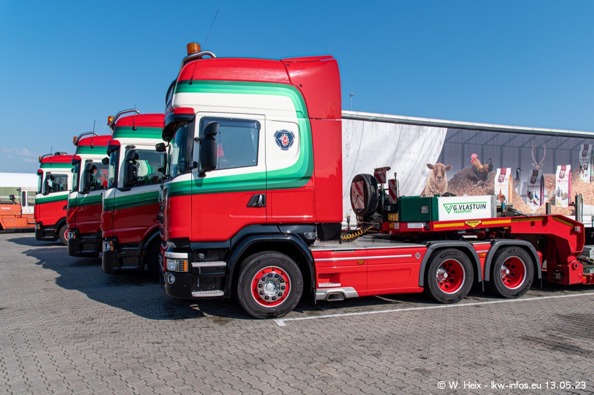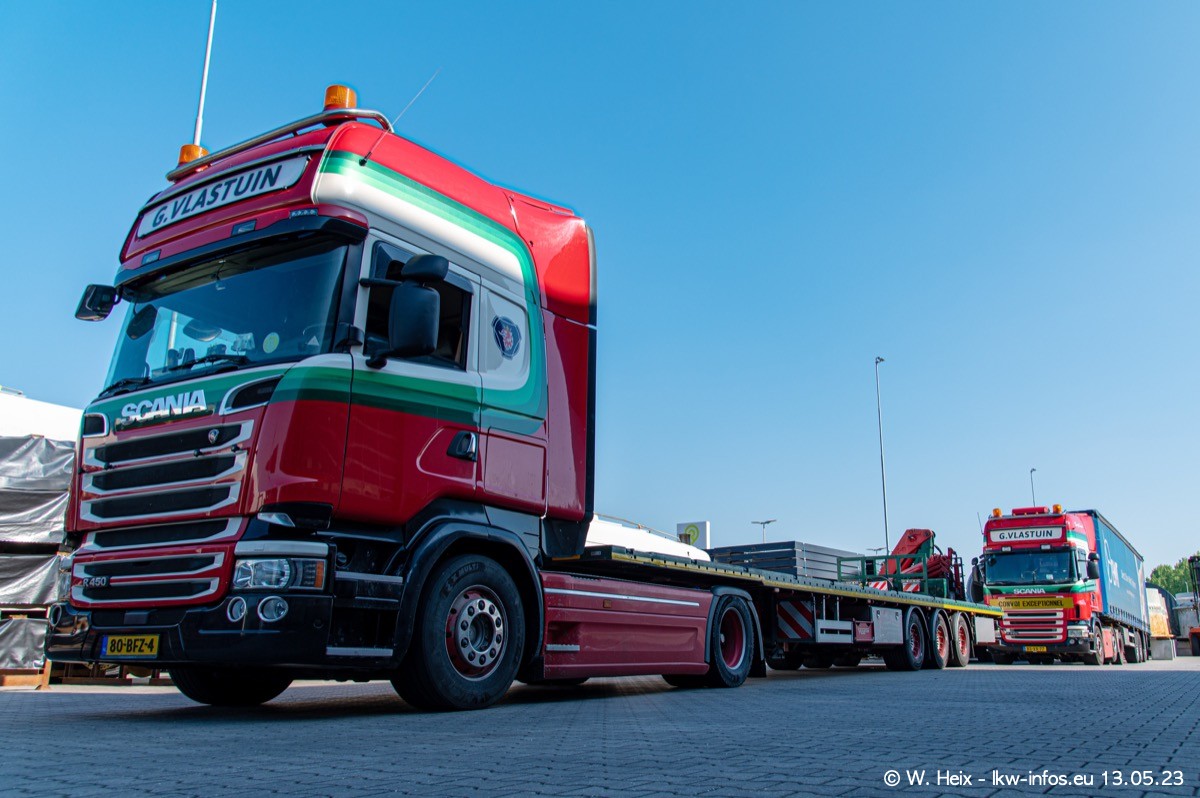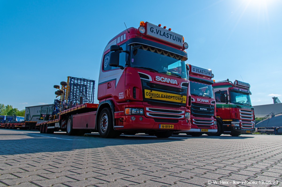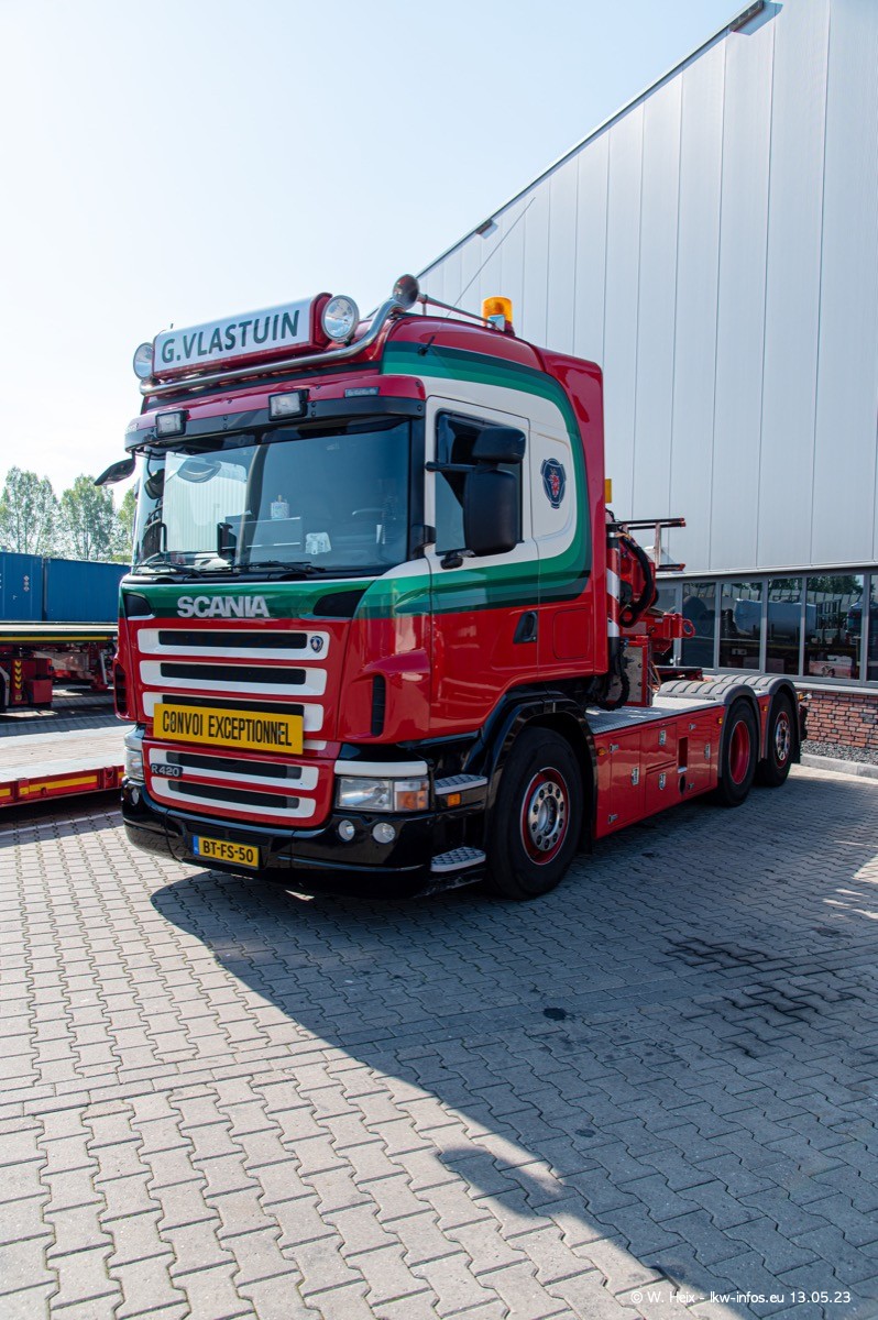 Im verganenen Jahr hat Vlastuin die Firma W. P. de Koning aus Vuren übernommnen. Zwei Fahrzeuge konnte ich heute fotografieren. Ganz neu sind zwei SCANIA 530 S V8, die ich in der Werkstatt fotografiert habe, zu sehen auf den ersten Bildern. Inzwischen sind fast alle älteren SCANIA ausgemustert bzw. durch aktuelle der Baureihen S und R ersetzt worden.
