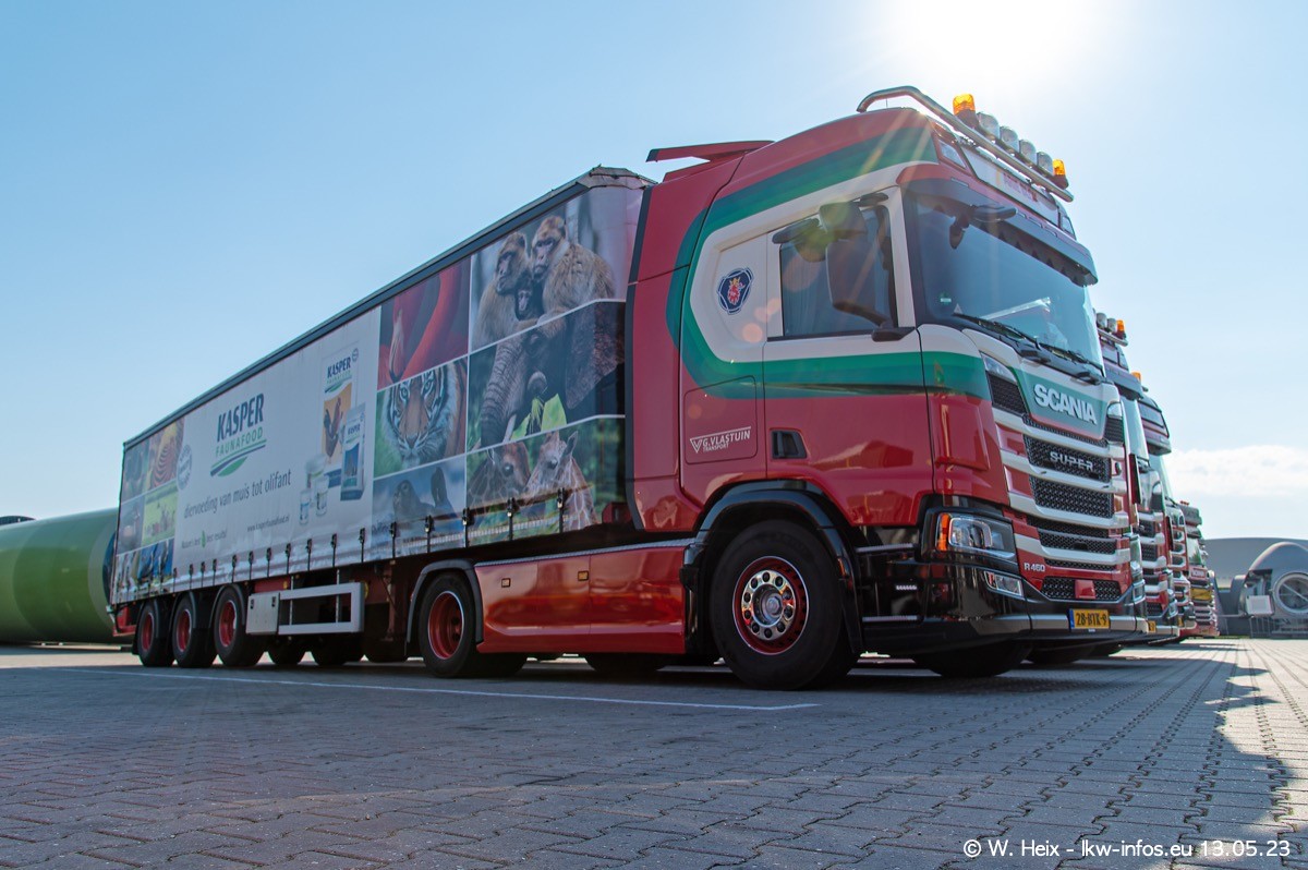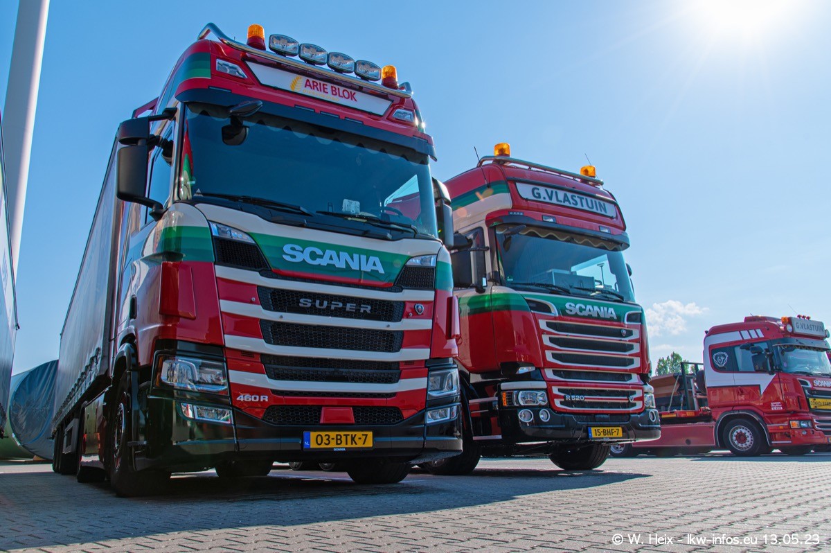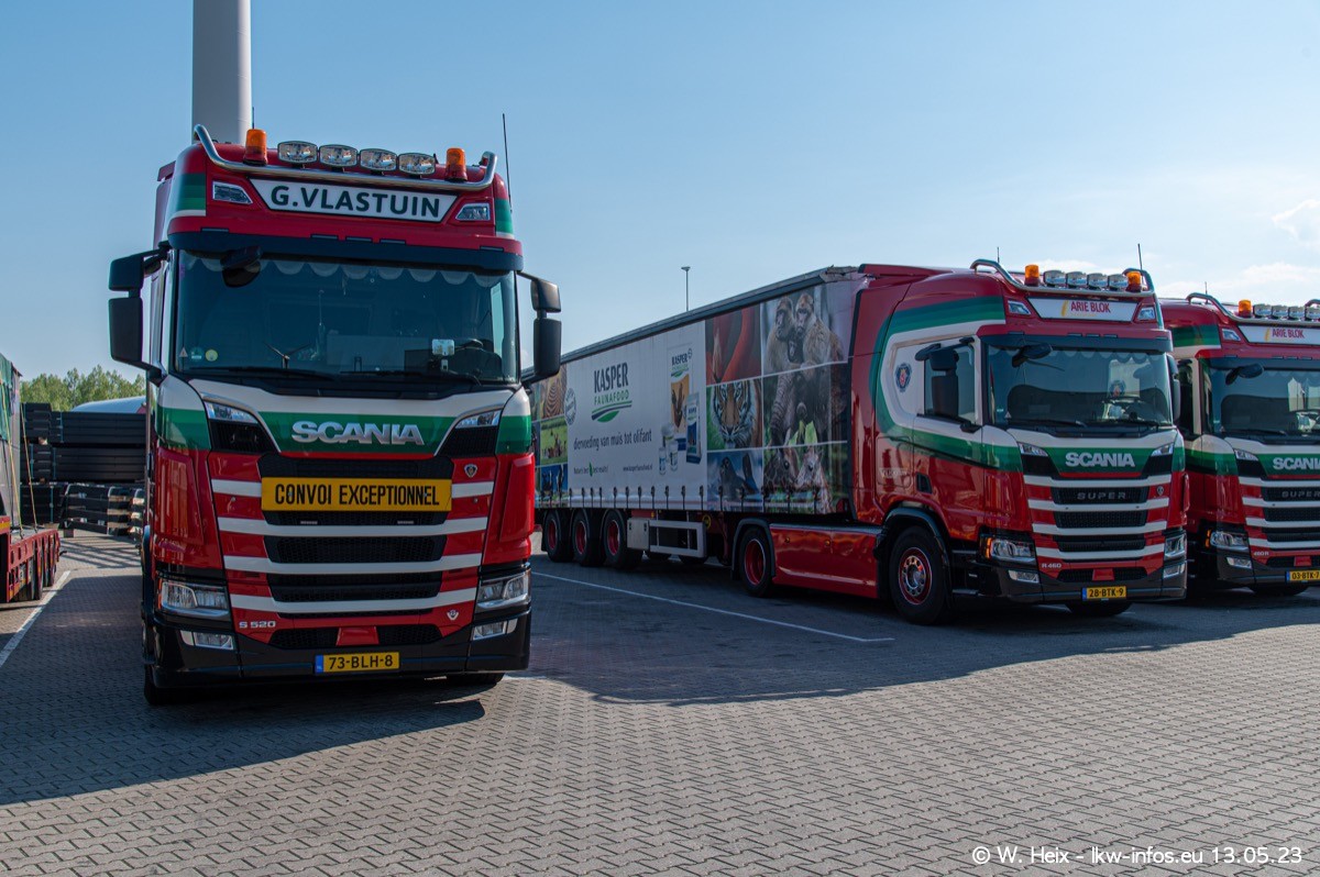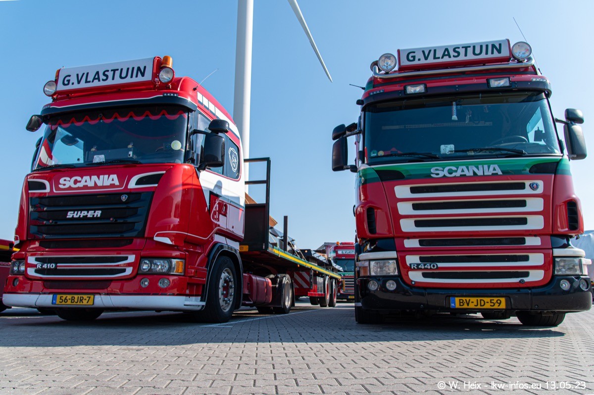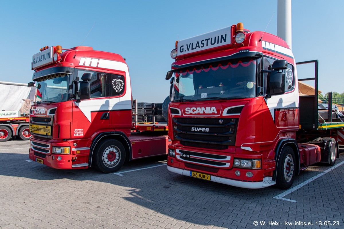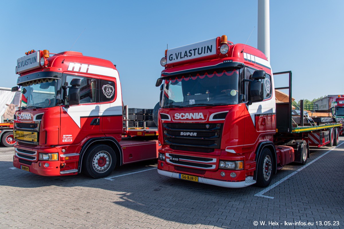 Im verganenen Jahr hat Vlastuin die Firma W. P. de Koning aus Vuren übernommnen. Zwei Fahrzeuge konnte ich heute fotografieren. Ganz neu sind zwei SCANIA 530 S V8, die ich in der Werkstatt fotografiert habe, zu sehen auf den ersten Bildern. Inzwischen sind fast alle älteren SCANIA ausgemustert bzw. durch aktuelle der Baureihen S und R ersetzt worden.
