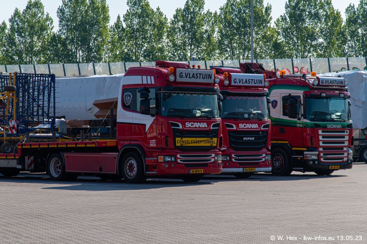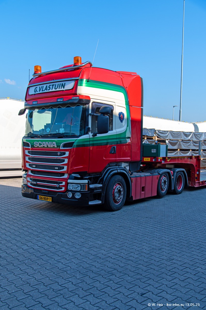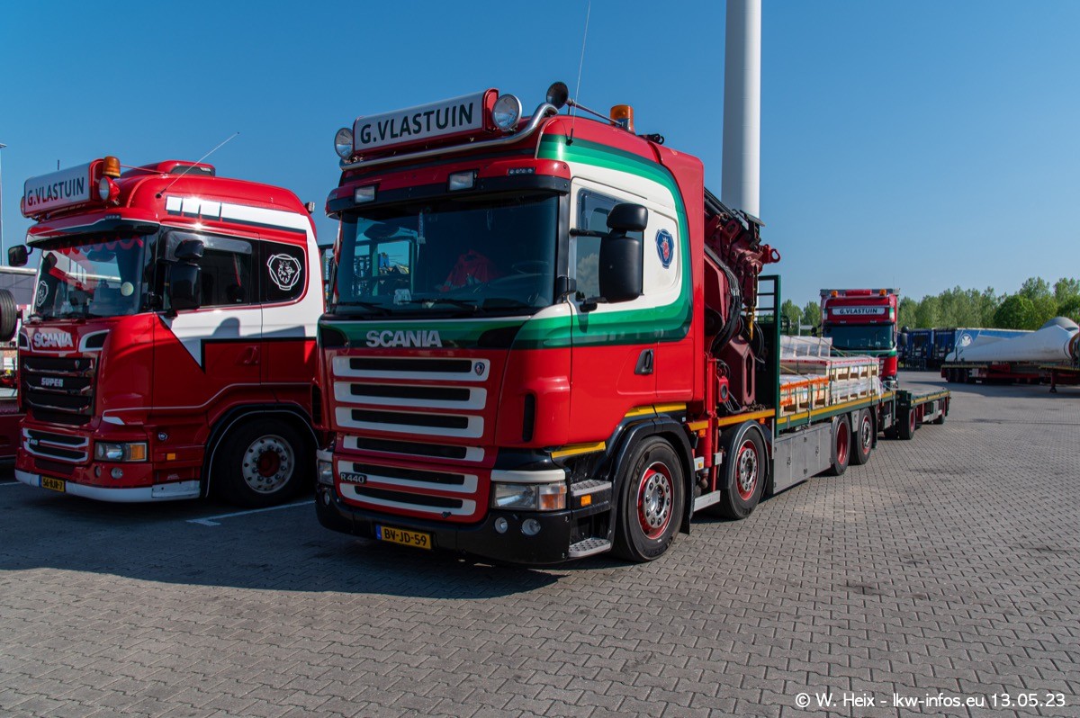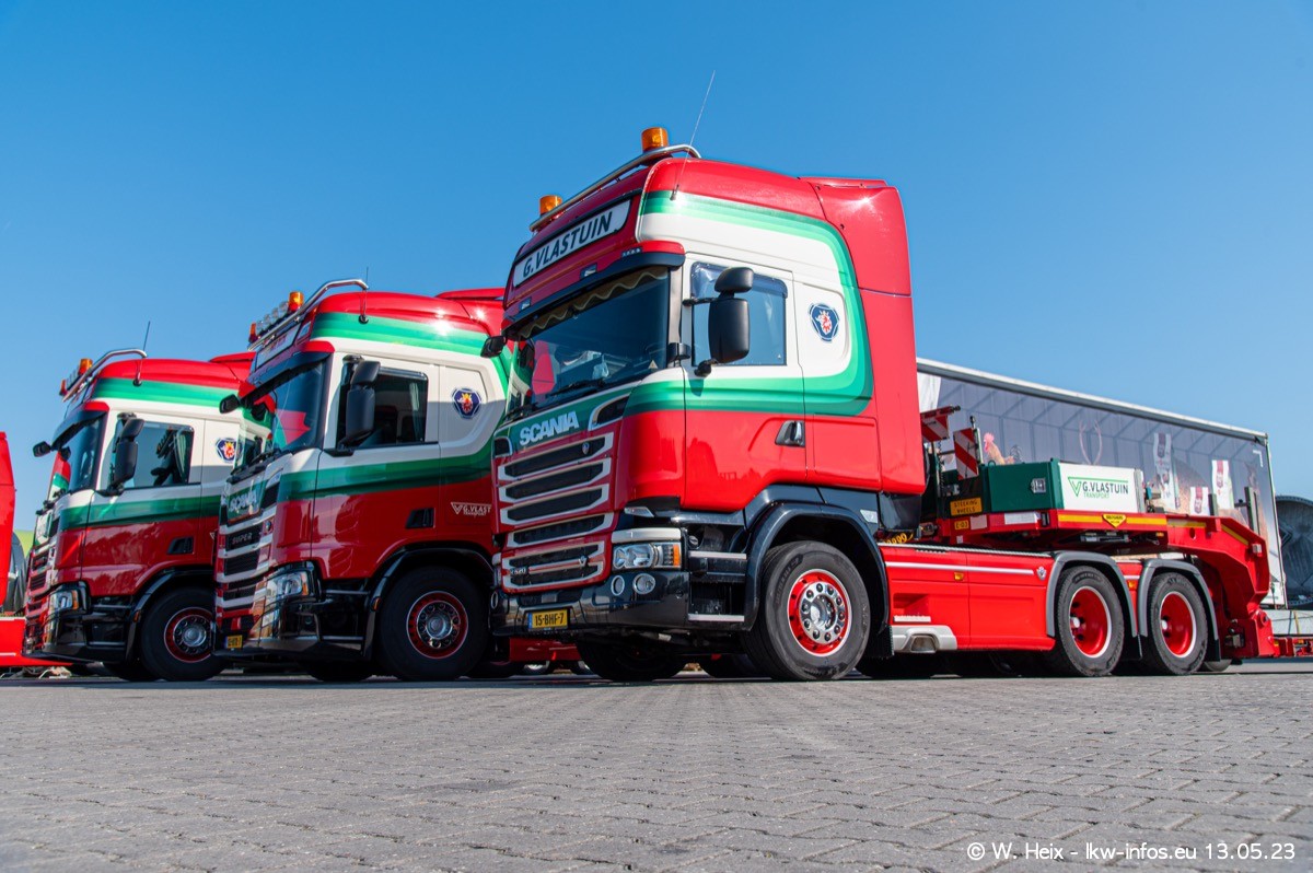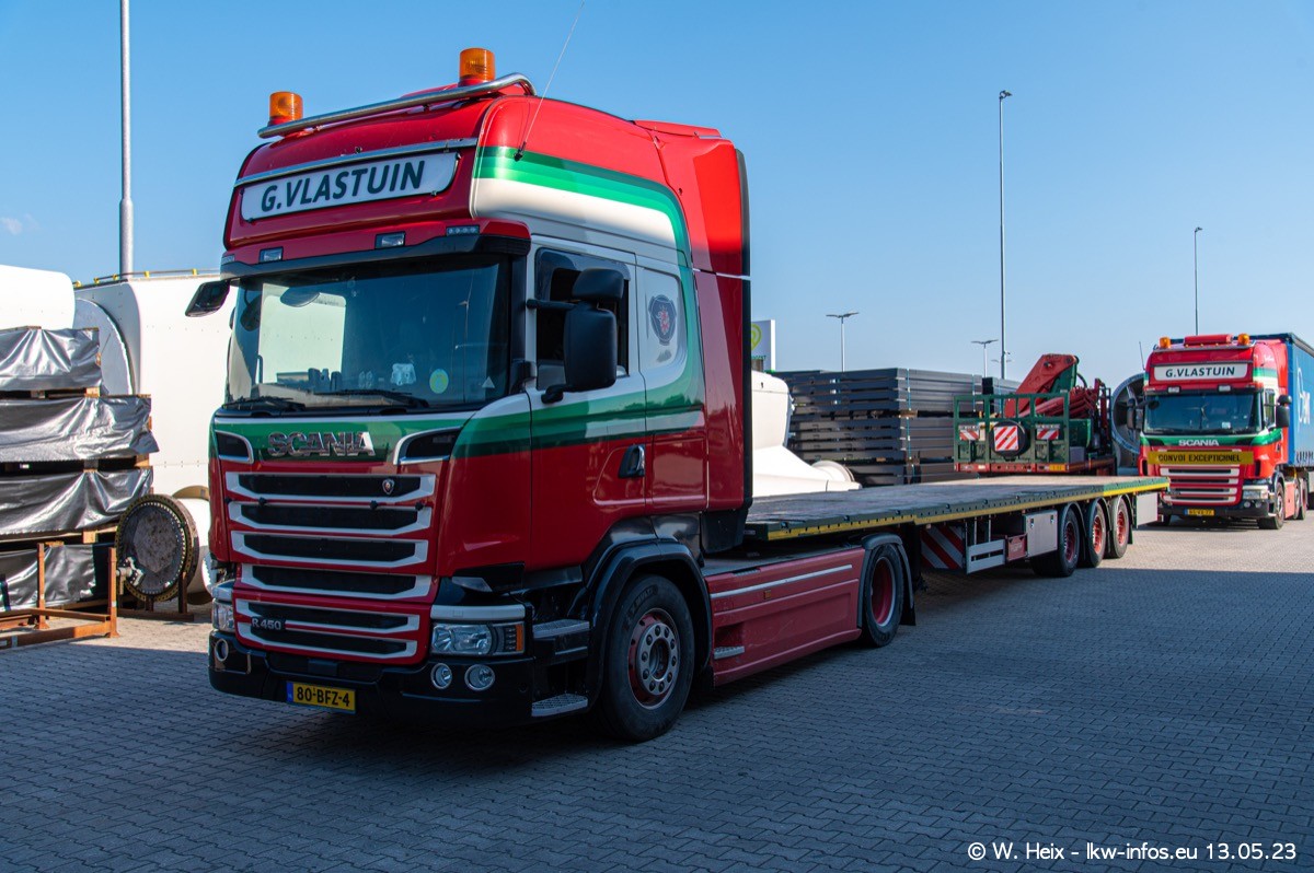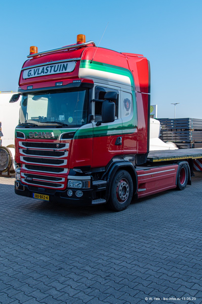 Im verganenen Jahr hat Vlastuin die Firma W. P. de Koning aus Vuren übernommnen. Zwei Fahrzeuge konnte ich heute fotografieren. Ganz neu sind zwei SCANIA 530 S V8, die ich in der Werkstatt fotografiert habe, zu sehen auf den ersten Bildern. Inzwischen sind fast alle älteren SCANIA ausgemustert bzw. durch aktuelle der Baureihen S und R ersetzt worden.