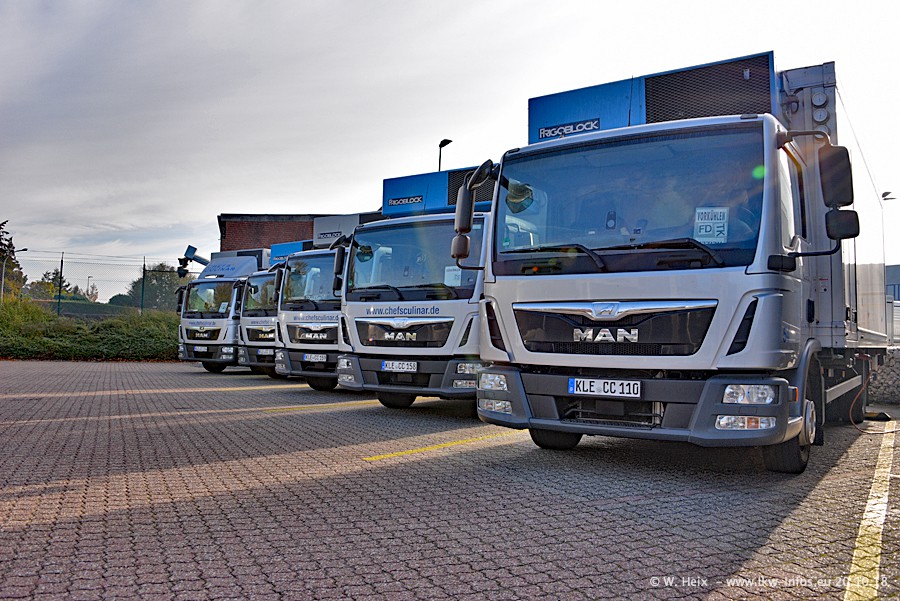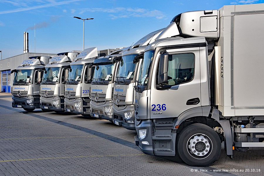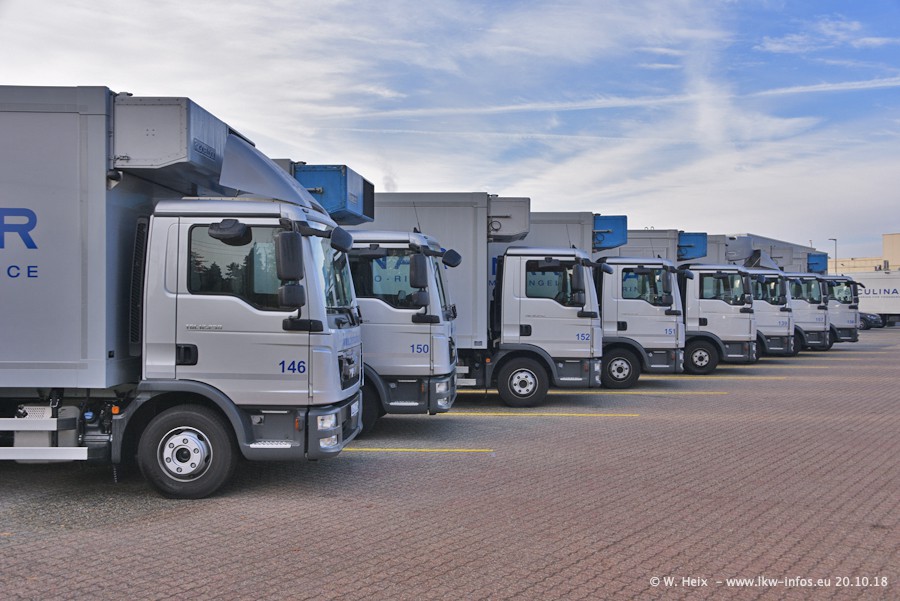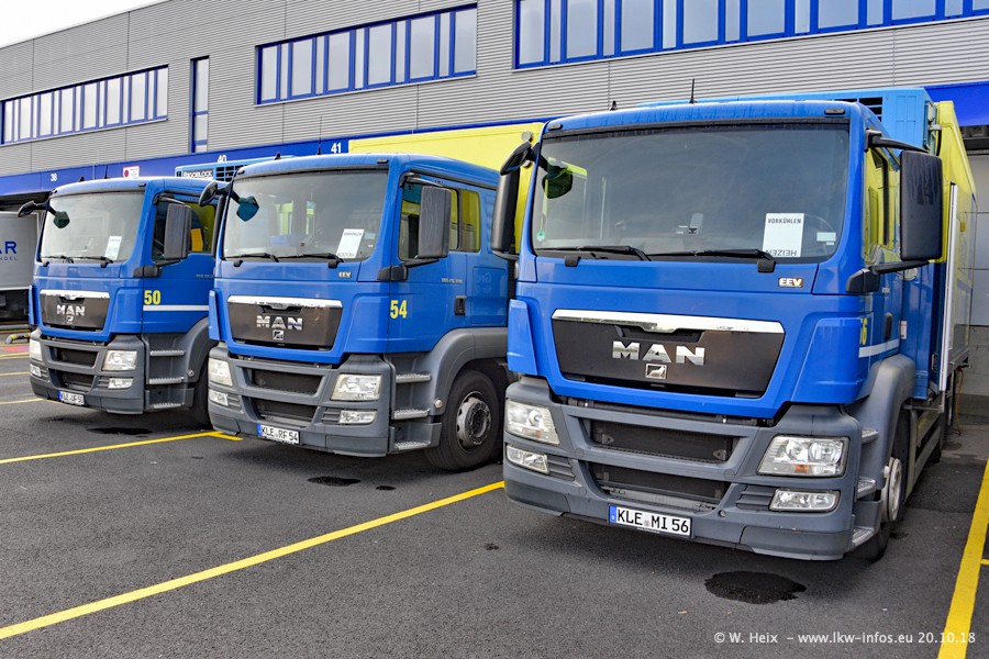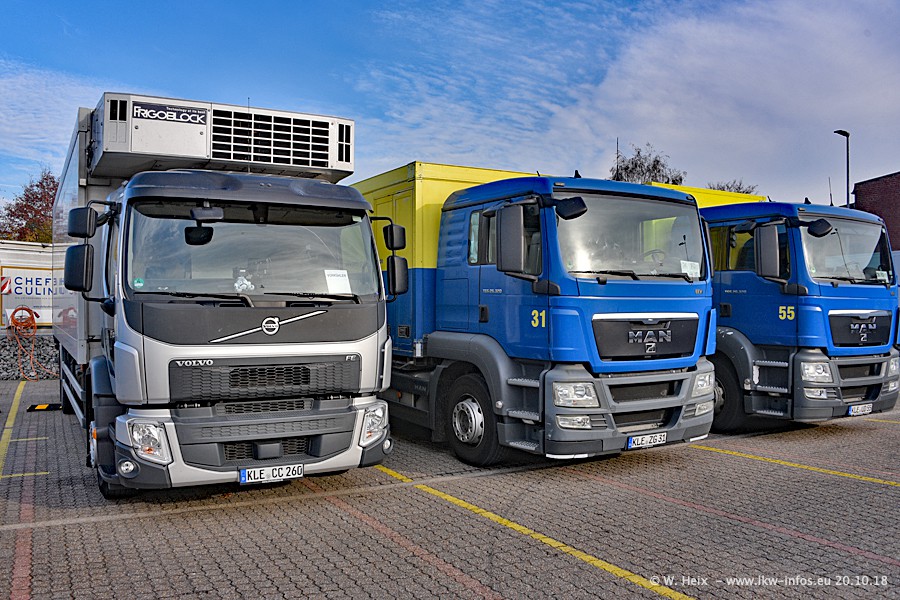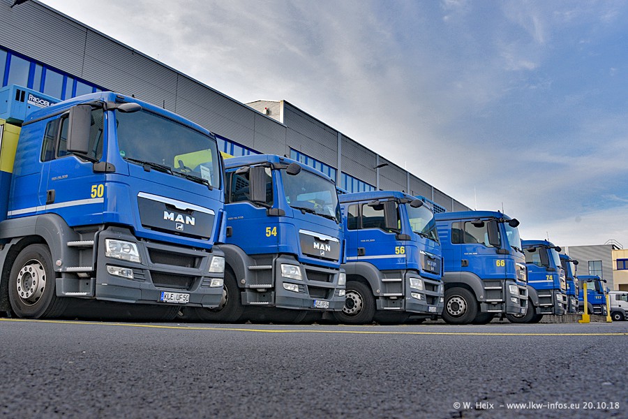 Seit meinem letzten Besuch im Juli 2016 sind schon wieder über zwei Jahre vergangen. Der Fuhrpark in Weeze von 120 auf ca. 140 Fahrzeuge gewachsen. Mittlerweile sind rund 70% der Fahrzeuge im neuen silbernen Design. Nachdem im Jahr 2016 die ersten LKW von VOLVO in den Fuhrpark gekommen sind, wurden in diesem Jahr 10 Mercedes-Benz Antos gekauft. Diese LKW sind erst seit einigen Monaten im Fuhrpark, also so gut wie neu. Im kommenden Jahr sollen weitere LKW von Mercedes-Benz den Fuhrpark modernisieren. Heute waren ca. 120 der 140 LKW "zuhause". Von den neuen Mercedes-Benz Antos waren 6 da. In einem kleinen Fotoshooting konnte ich diese neuen Fahrzeuge dann auch alle nebeneinander fotografieren. Neu sind im Bereich unter 7,49 t sind auch einige IVECO Daily der aktuellen Baureihe.