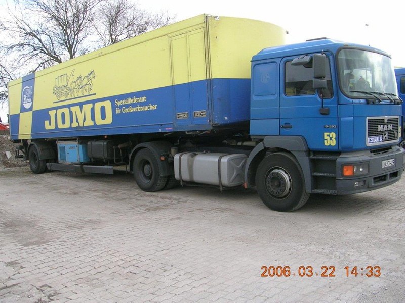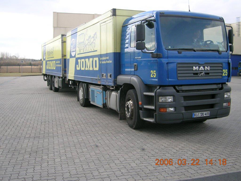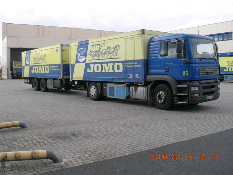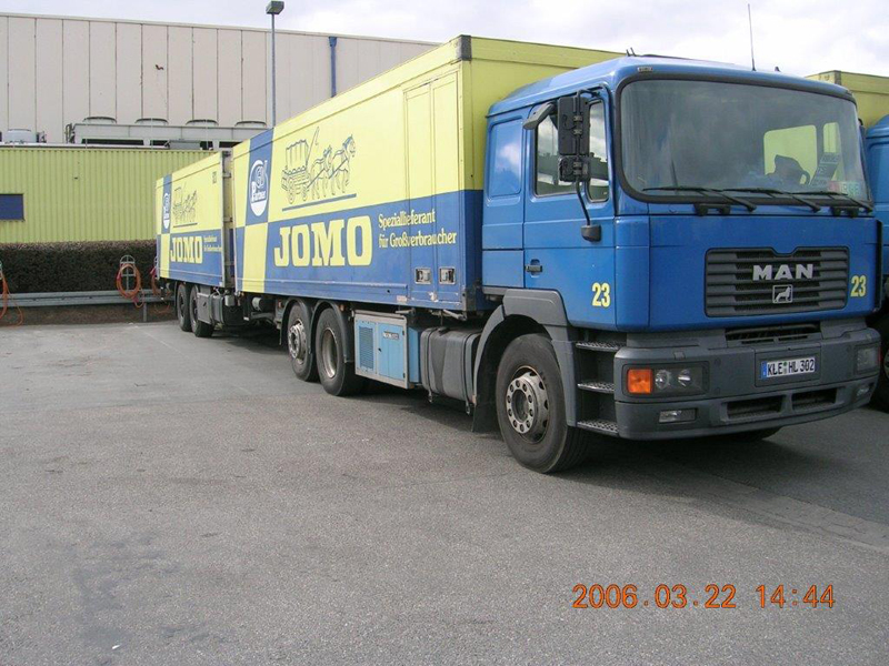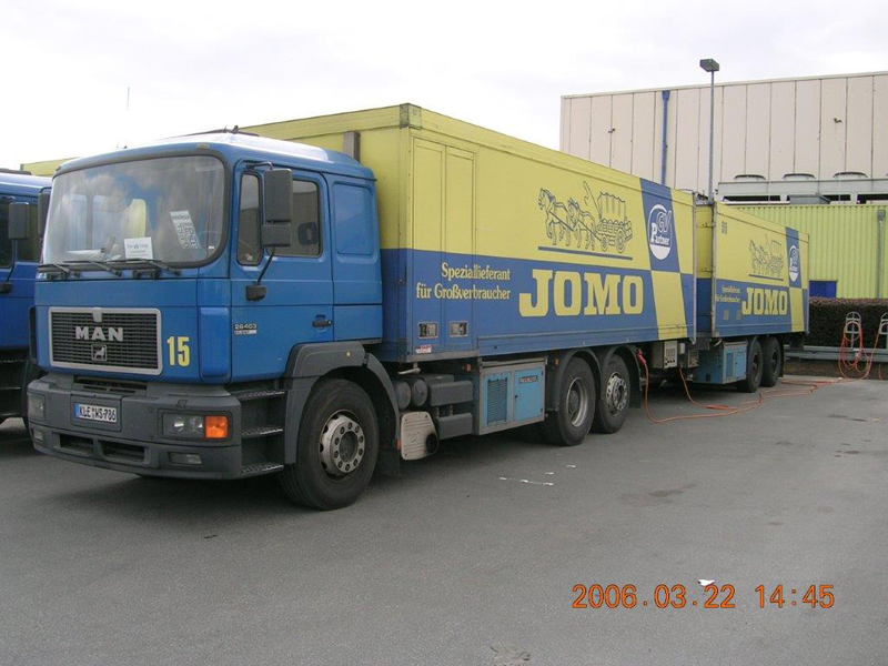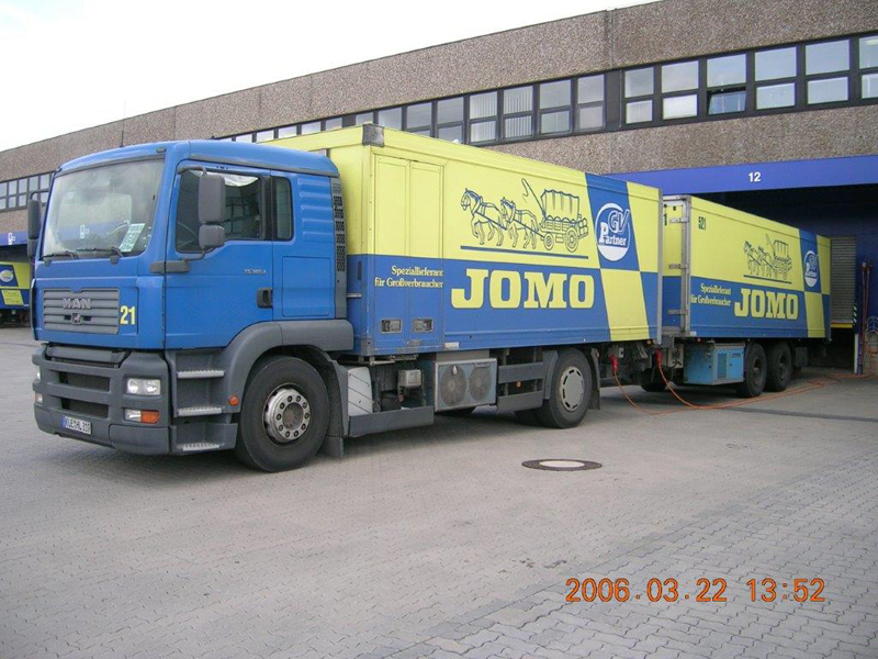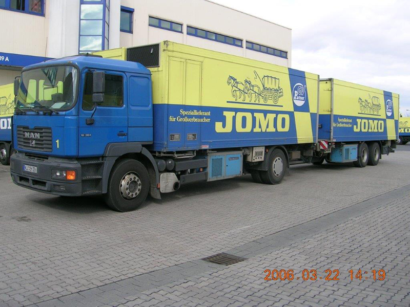 Die Firma CHEFS CULINAR West hieß bis vor einigen Jahren JOMO. Das waren die LKW im alt bekannten blau-gelben Design. Die hier gezeigten Bilder sind aus dem Archiv eines Mitarbeiters von Jomo bzw. jetzt CHEFS CULINAR West. Wie alt die Schwarzweiß-Aufnahmen sind, und wer diese damals gemacht hat, ist nicht bekannt. Ein Teil der Farbfotos ist aus dem Jahr 2006. Ich denke es lohnt sich, auch diese Bilder aus dem Archiv zu zeigen.