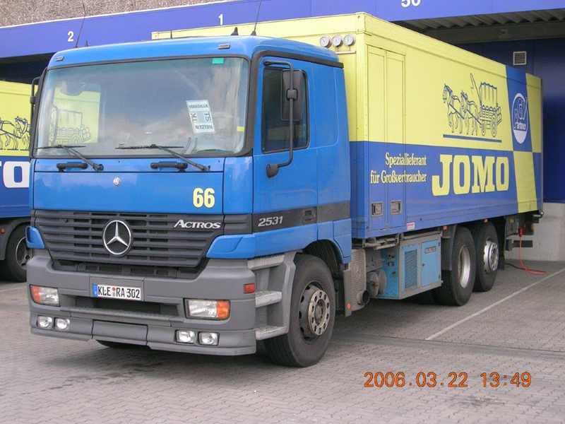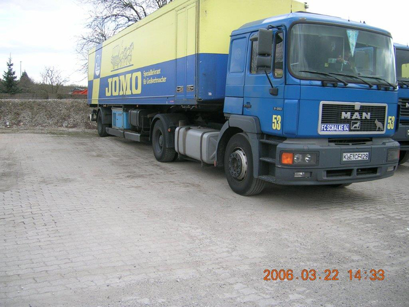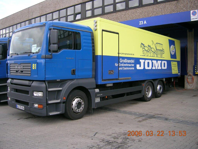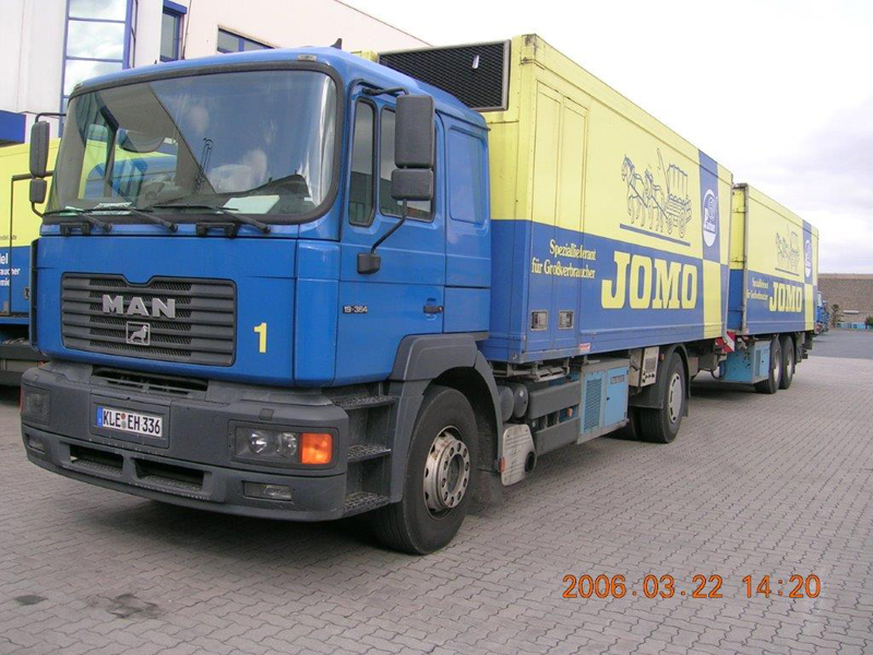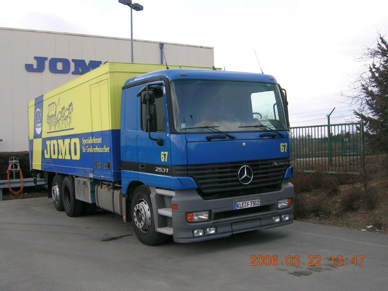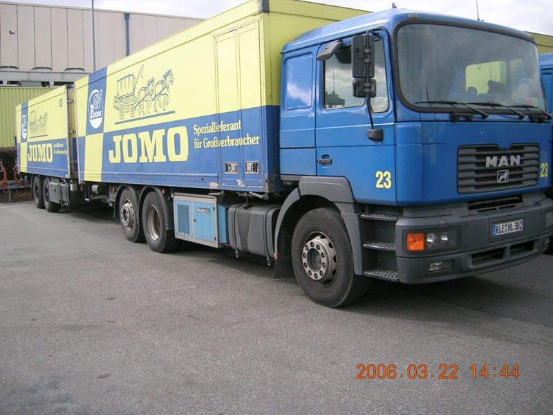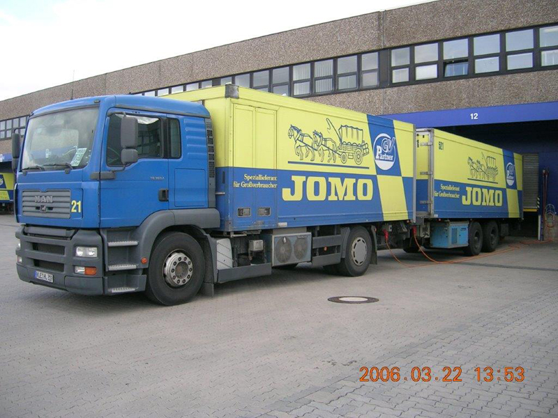 Die Firma CHEFS CULINAR West hieß bis vor einigen Jahren JOMO. Das waren die LKW im alt bekannten blau-gelben Design. Die hier gezeigten Bilder sind aus dem Archiv eines Mitarbeiters von Jomo bzw. jetzt CHEFS CULINAR West. Wie alt die Schwarzweiß-Aufnahmen sind, und wer diese damals gemacht hat, ist nicht bekannt. Ein Teil der Farbfotos ist aus dem Jahr 2006. Ich denke es lohnt sich, auch diese Bilder aus dem Archiv zu zeigen.