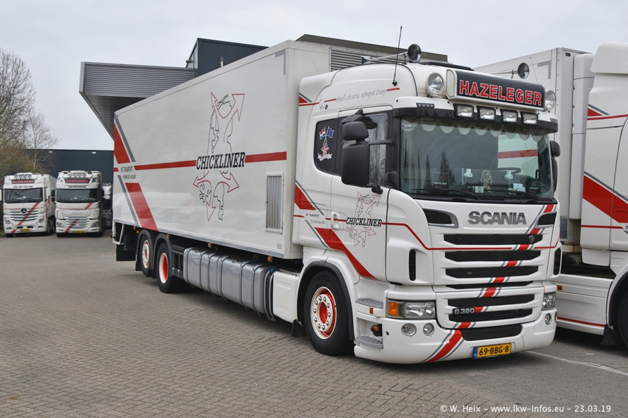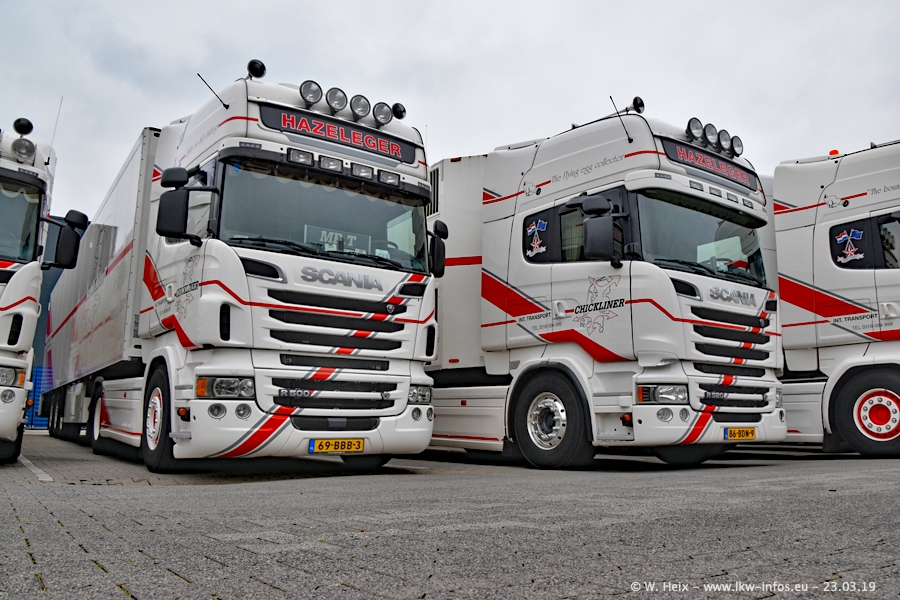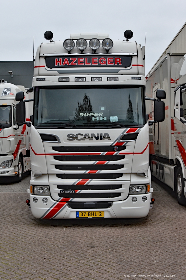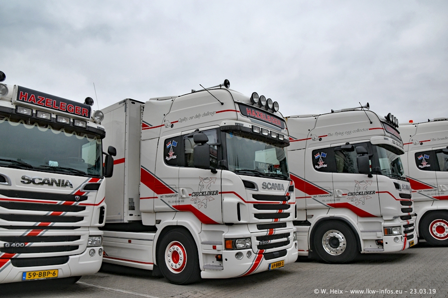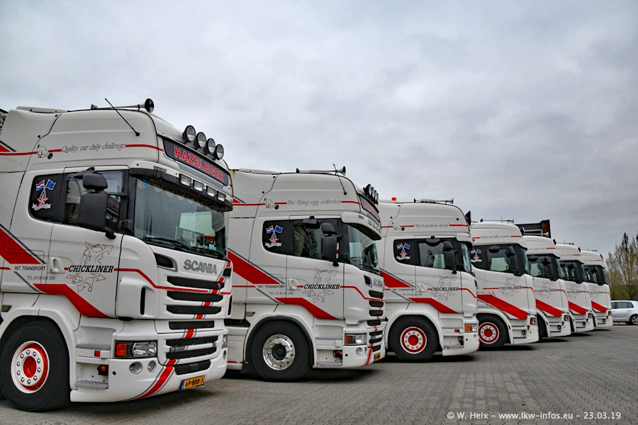 Diesmal waren so gut wie alle LKW zuhause. Ich hatte Glück, weil ich viel später als sonst da war. Fast alle LKW standen in einer Reihe nebeneinander. Und vier der fünf neuen SCANIA S 500 NextGen waren da. Den ersten davon hatte ich im Januar 2017 bei Chickliner fotografiert, die anderen neunen hatte ich bisher nicht gesehen. Diese sind alle im letzten Jahr neu in den Fuhrpark gekommen und haben ältere Fahrzeuge ersetzt, so wie z. B. den Volvo FH 3.
