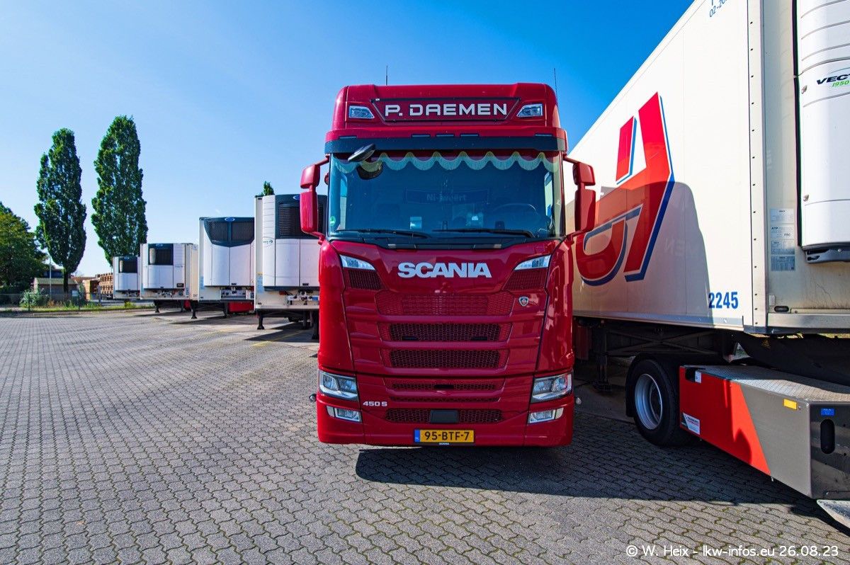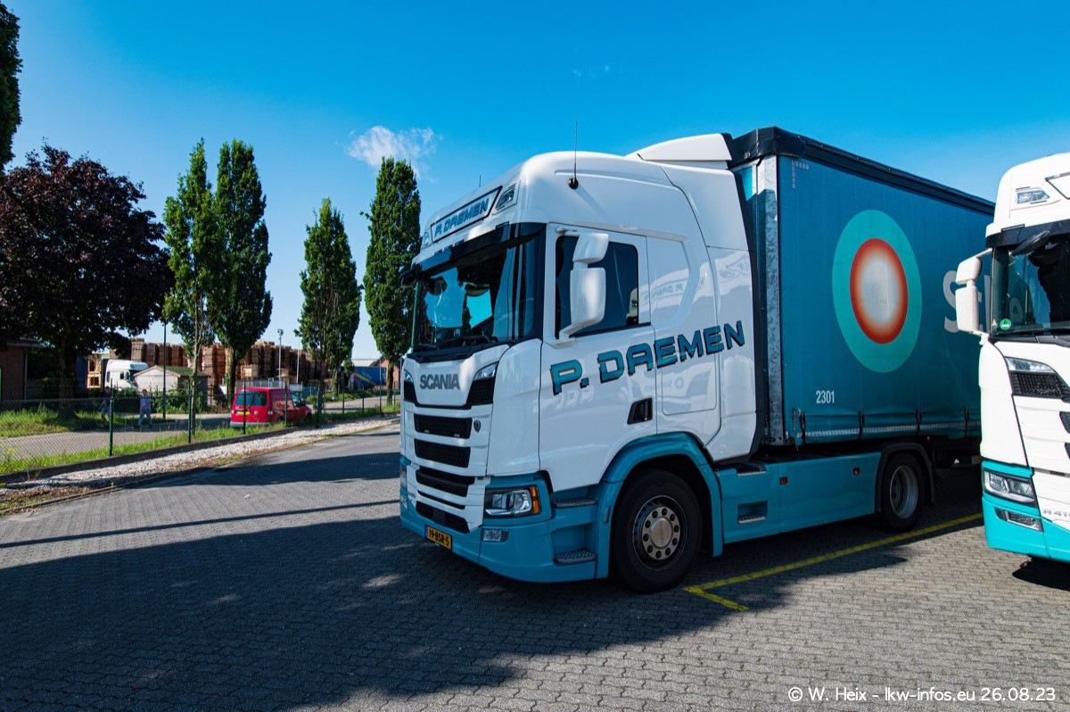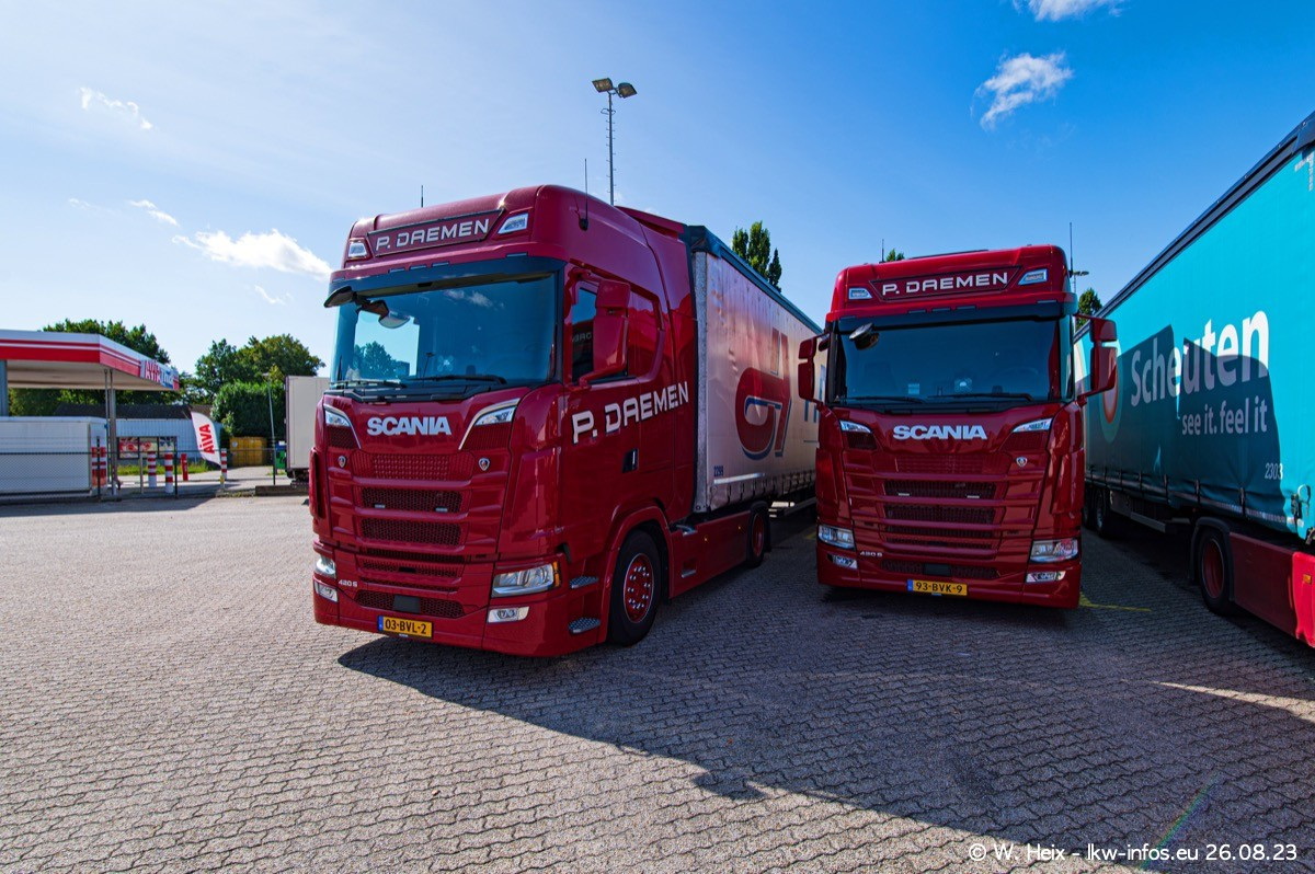 Neu im Fuhrpark sind sechs SCANIA R und S NextGen, zu erkennen an den Buchstabenkombinationen BVK und BVL auf den Kennzeichen. Vier weitere neue SCANIA R und S NextGen stehen bei einem Kunden, die konnte ich leider nicht fotografieren.