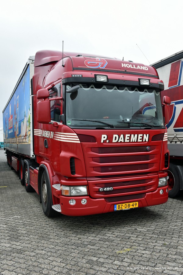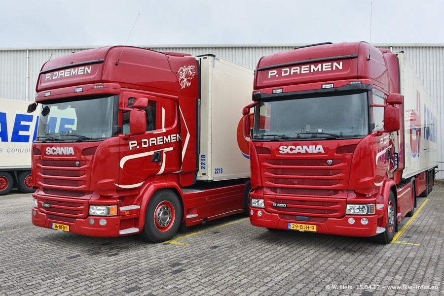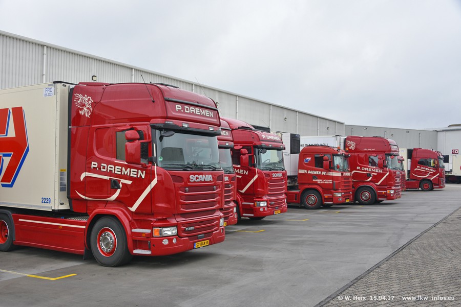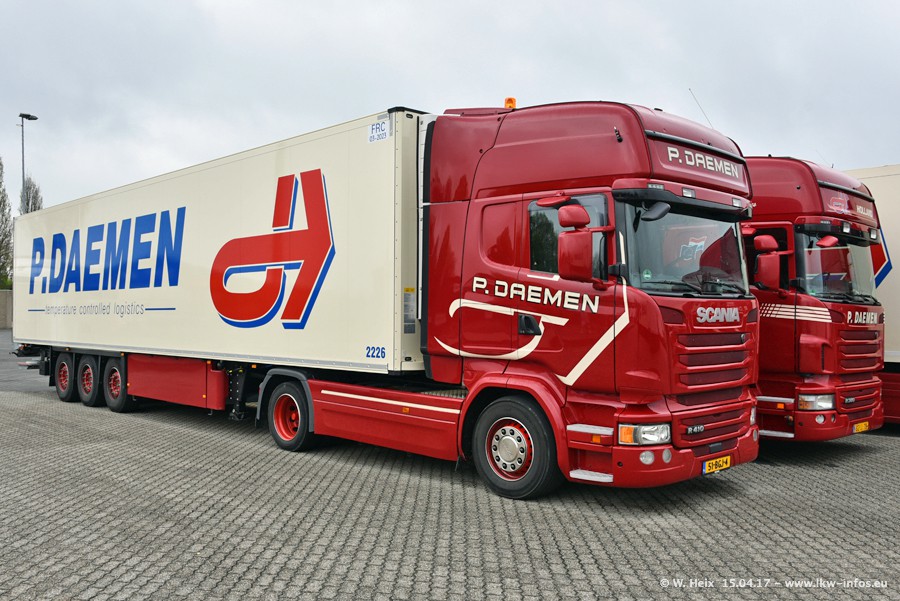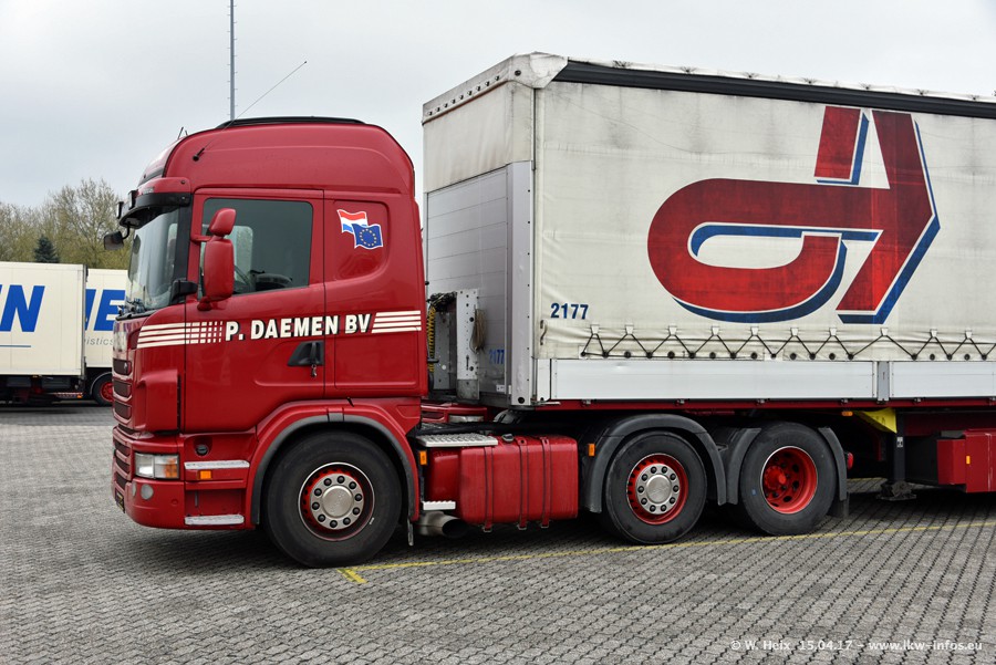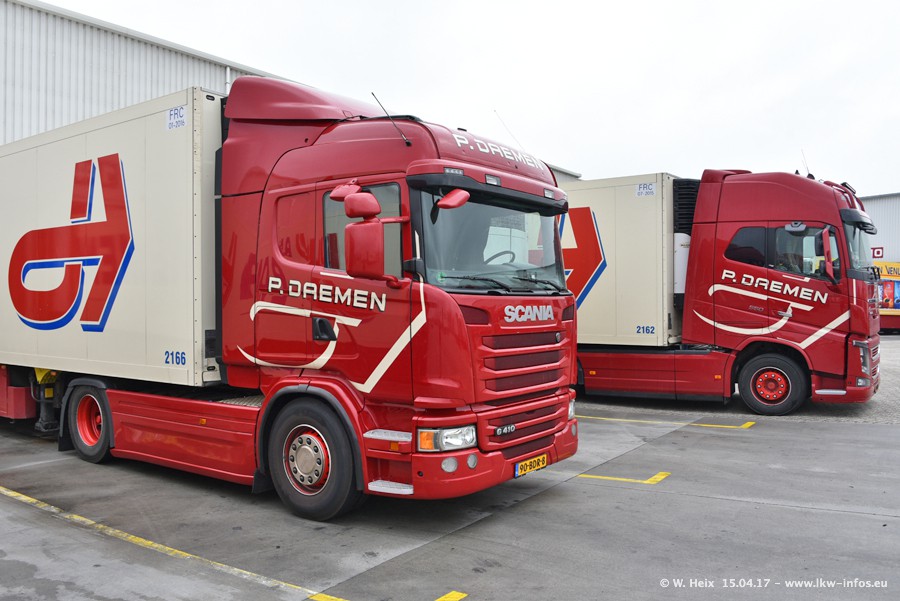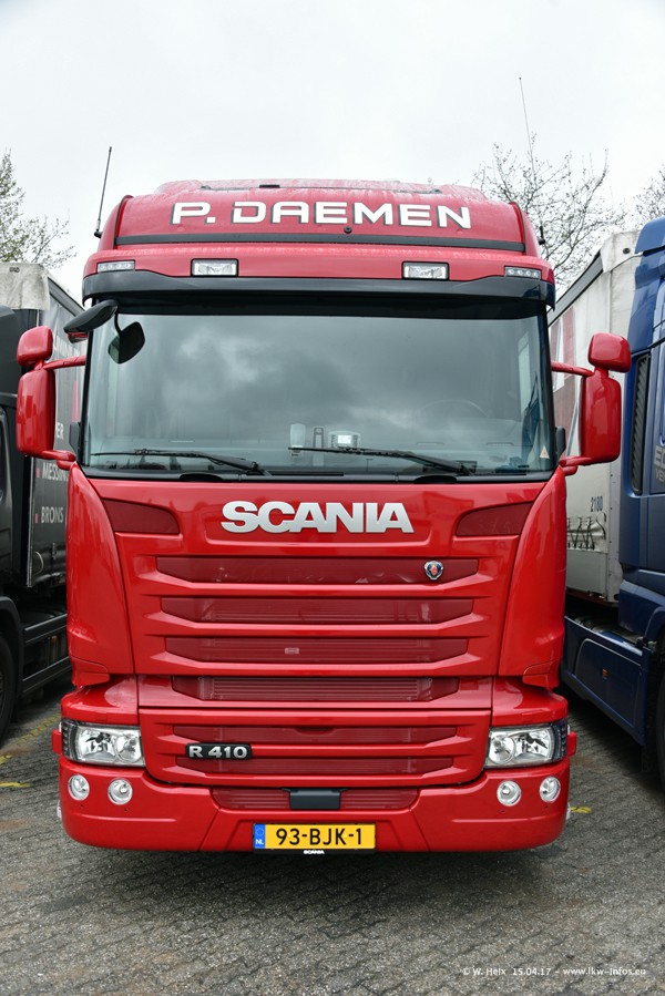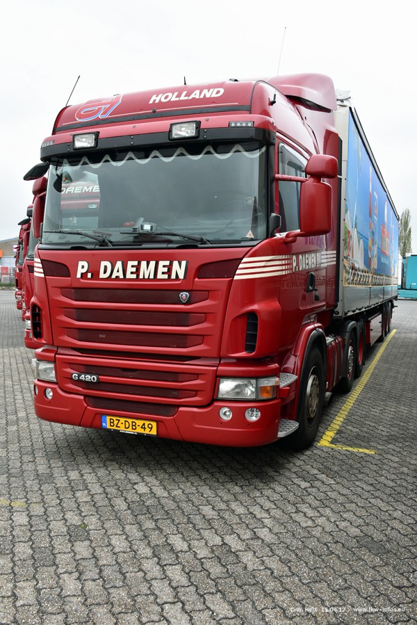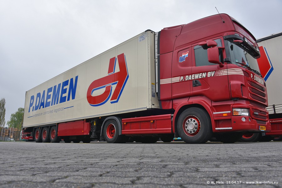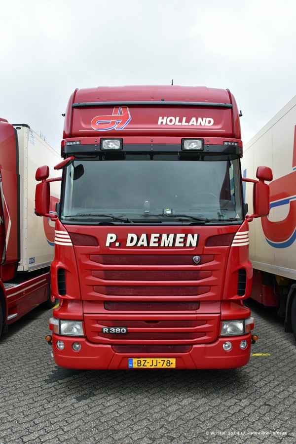 In den letzten Wochen wurde der Furhpark bei Daemen weiter modernisiert. Neu sind zwei DAF XF Euro 6 und mehrere Scania R 410 und R 450 Streamline (alte Baureihe). Und ich konnte einen neuen Auflieger entdecken, der wieder im Design eines Kunden gestaltet ist. Alle neuen Zugmaschinen sind an denn Kennzeichen mit den Buchstabenkombinationen "BJ" zu erkennen.
