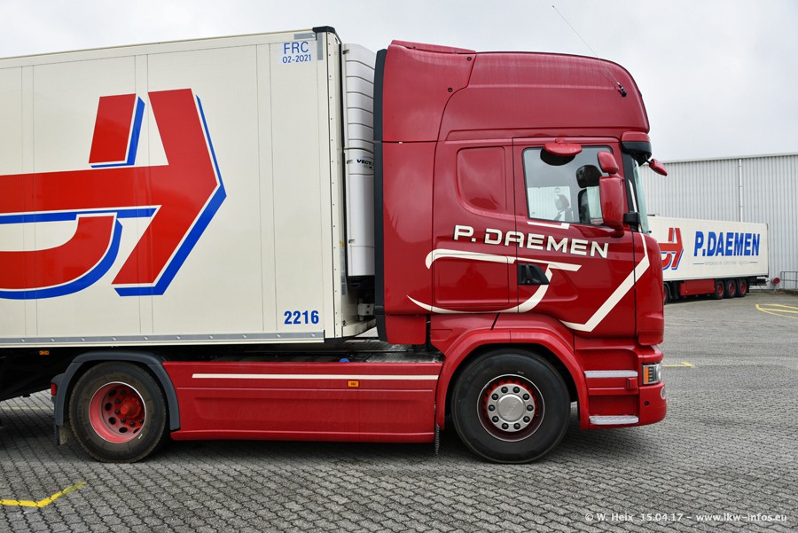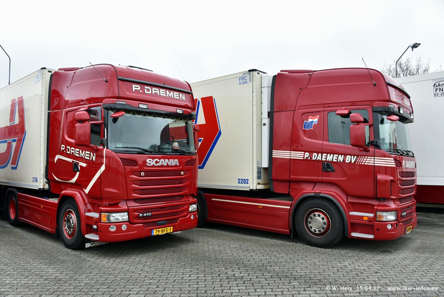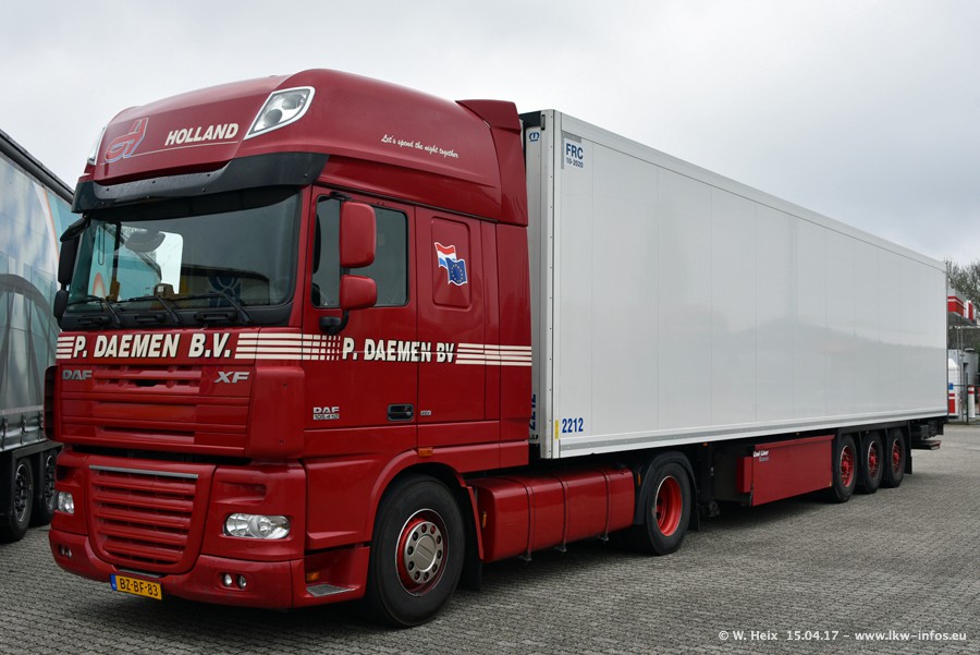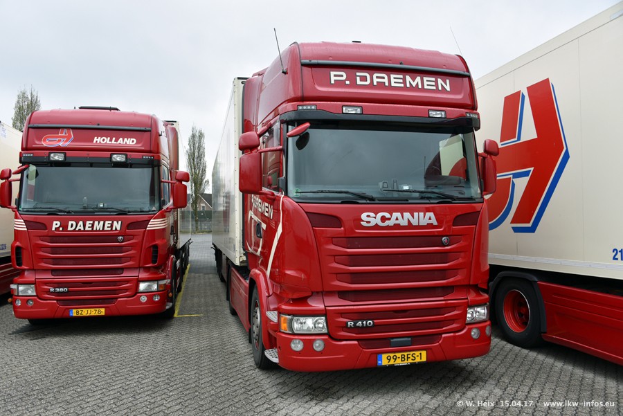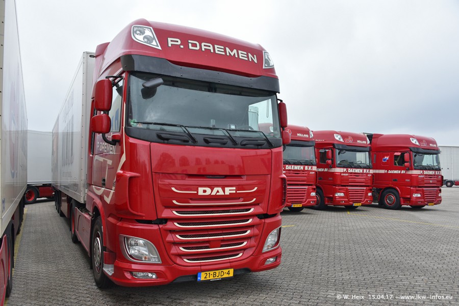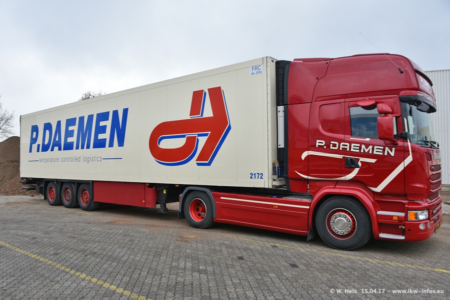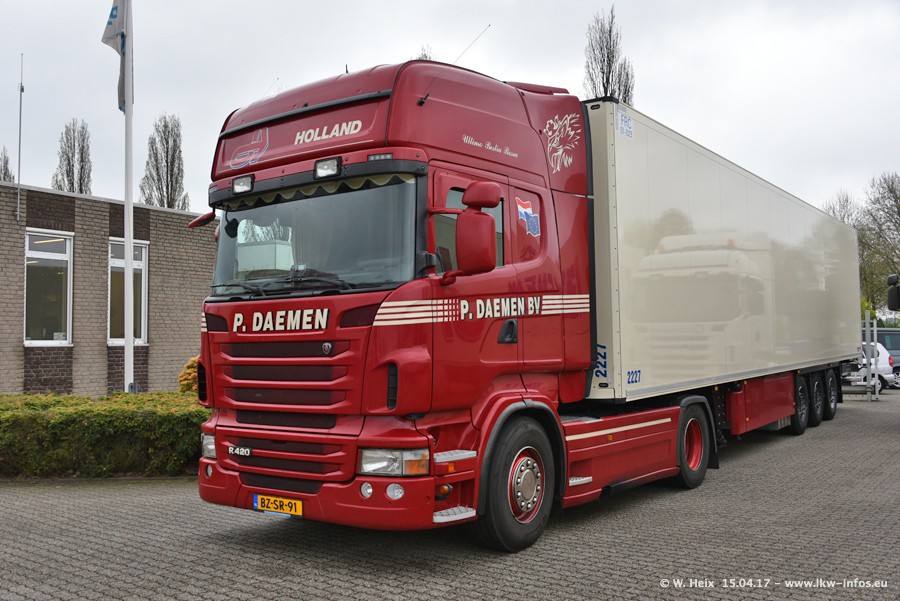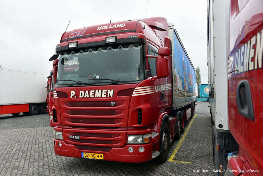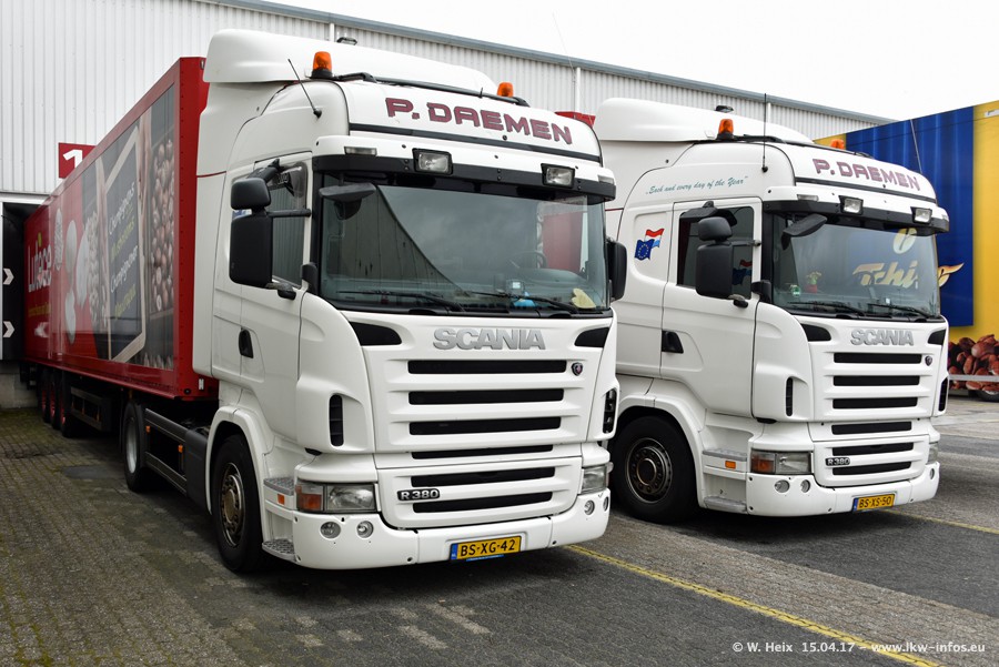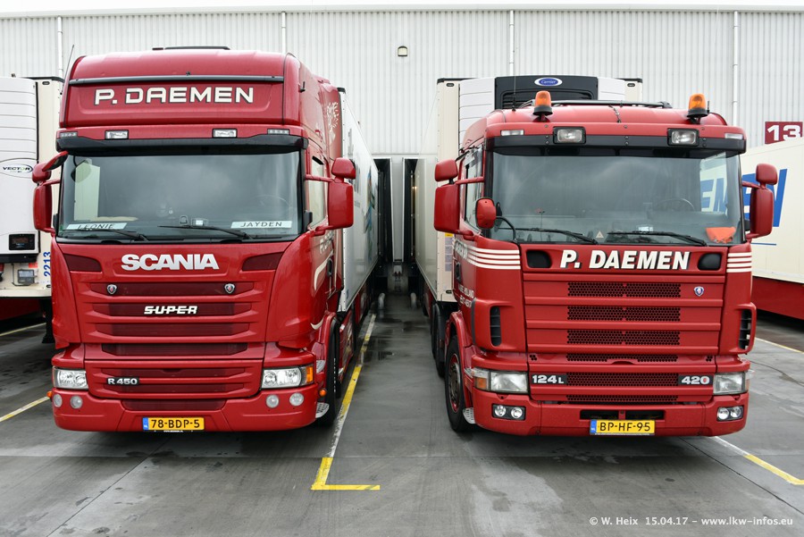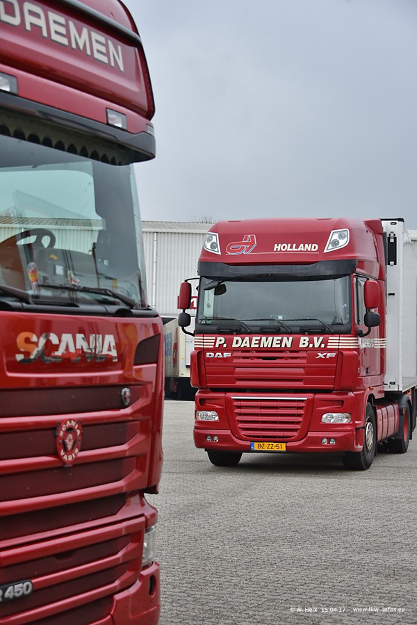 In den letzten Wochen wurde der Furhpark bei Daemen weiter modernisiert. Neu sind zwei DAF XF Euro 6 und mehrere Scania R 410 und R 450 Streamline (alte Baureihe). Und ich konnte einen neuen Auflieger entdecken, der wieder im Design eines Kunden gestaltet ist. Alle neuen Zugmaschinen sind an denn Kennzeichen mit den Buchstabenkombinationen "BJ" zu erkennen.