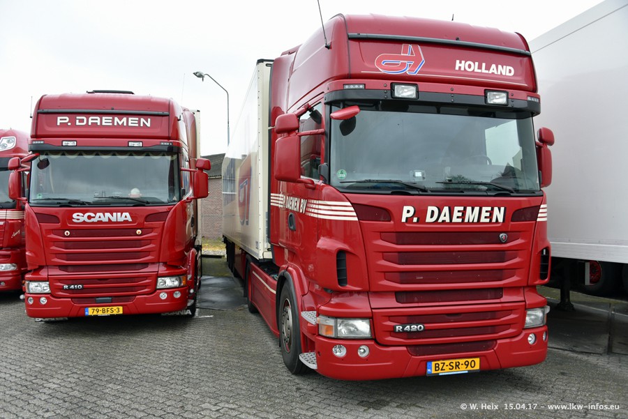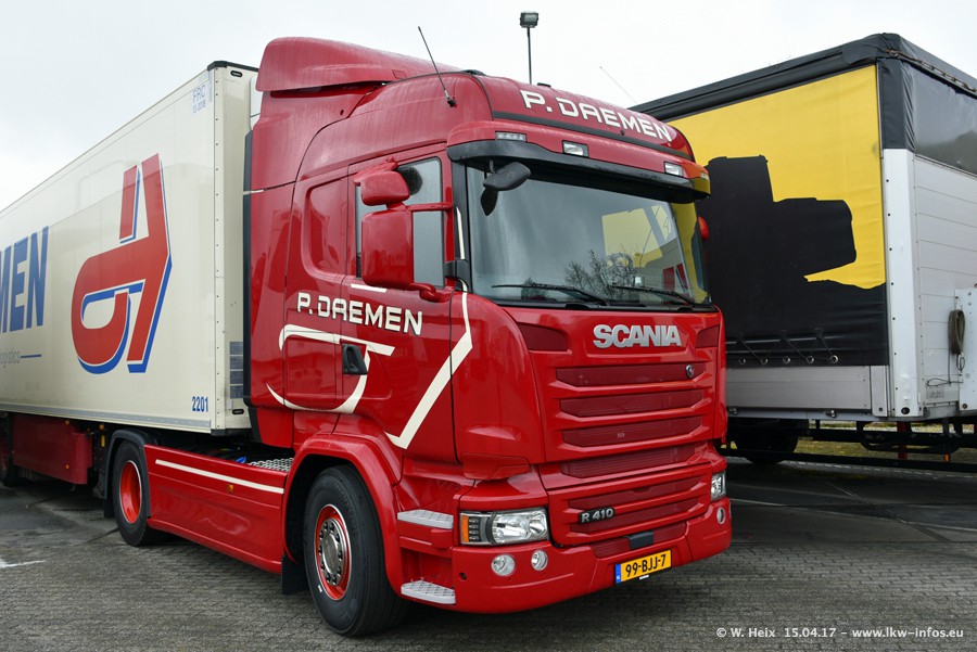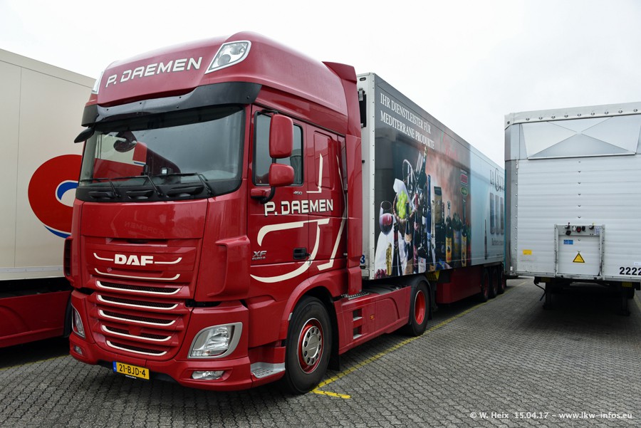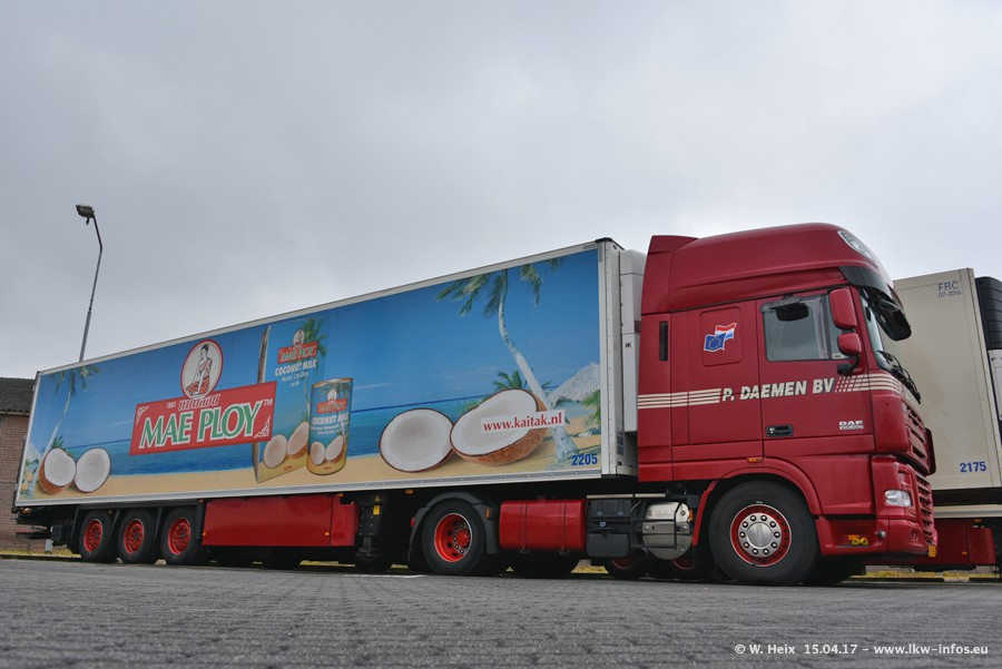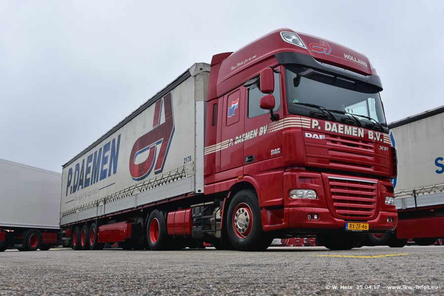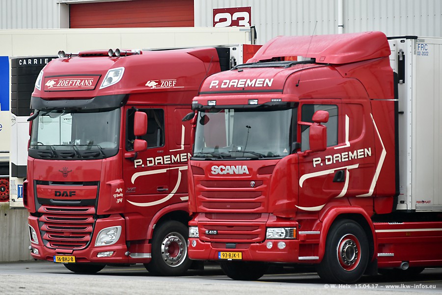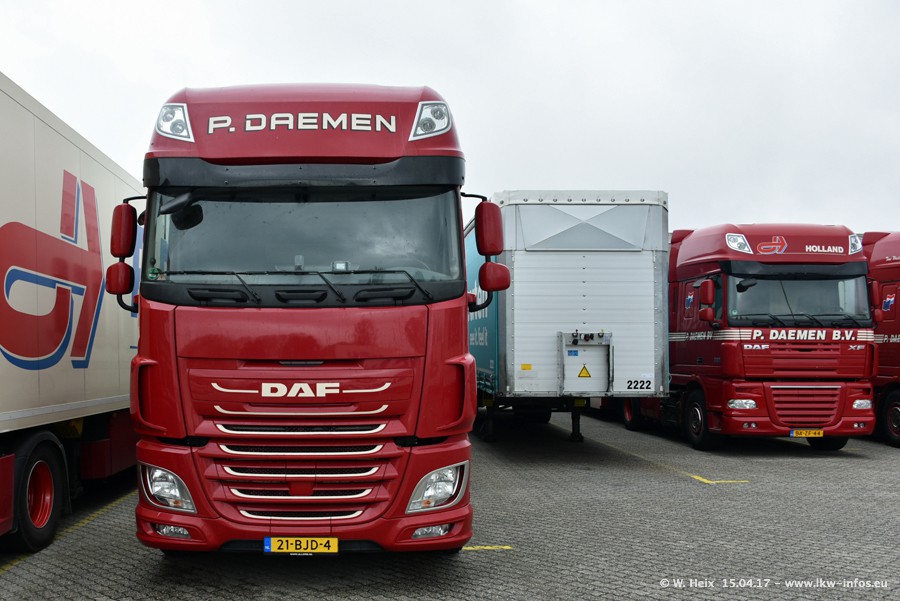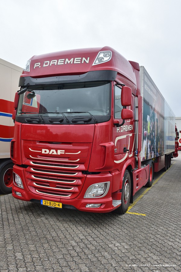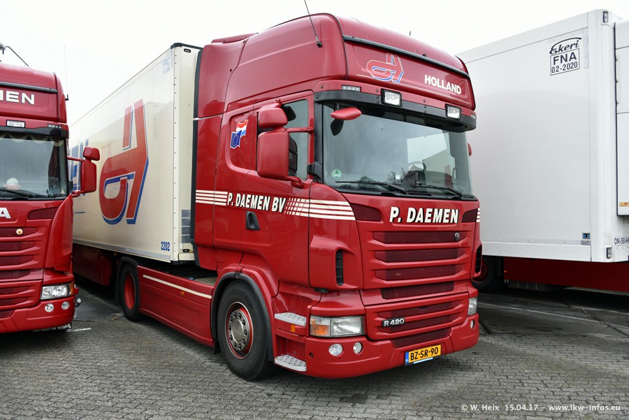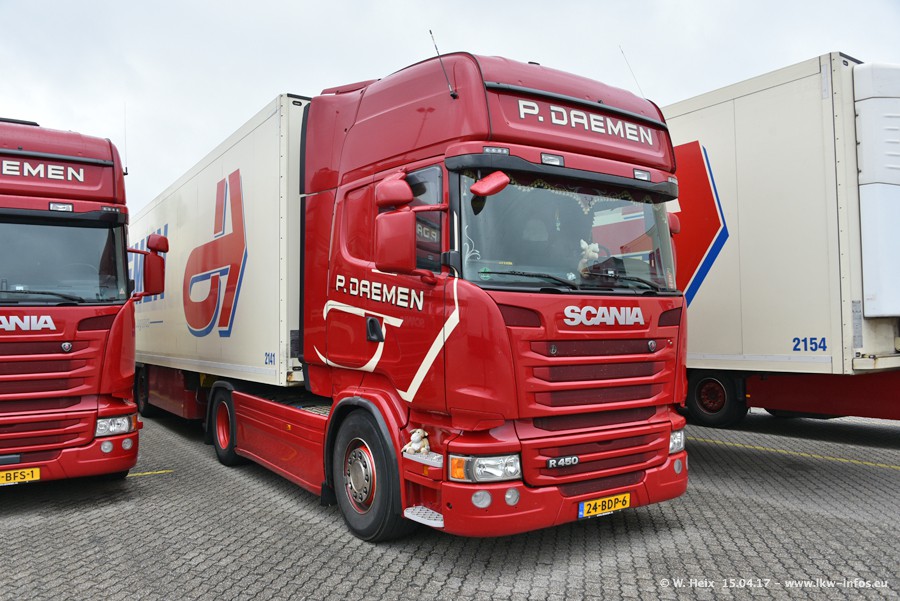 In den letzten Wochen wurde der Furhpark bei Daemen weiter modernisiert. Neu sind zwei DAF XF Euro 6 und mehrere Scania R 410 und R 450 Streamline (alte Baureihe). Und ich konnte einen neuen Auflieger entdecken, der wieder im Design eines Kunden gestaltet ist. Alle neuen Zugmaschinen sind an denn Kennzeichen mit den Buchstabenkombinationen "BJ" zu erkennen.
