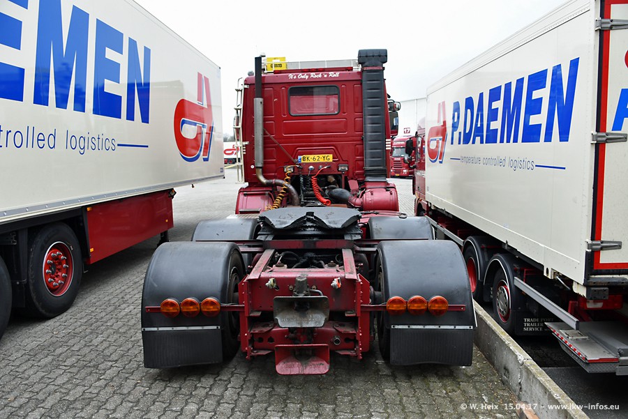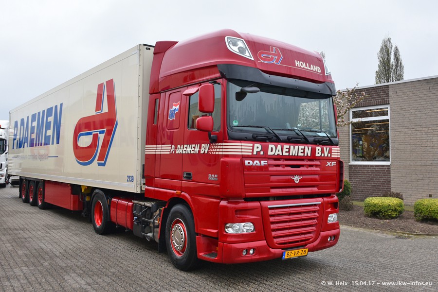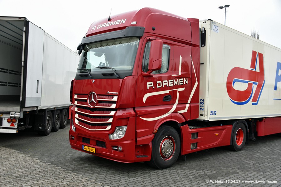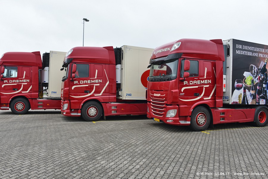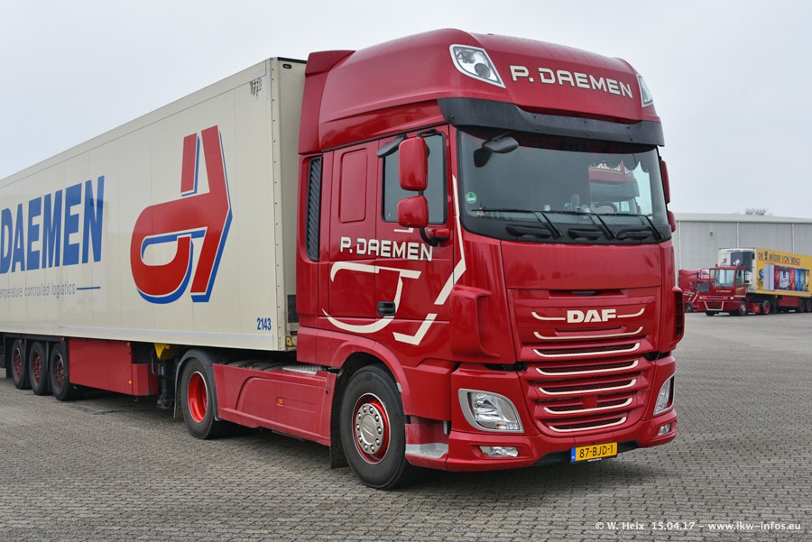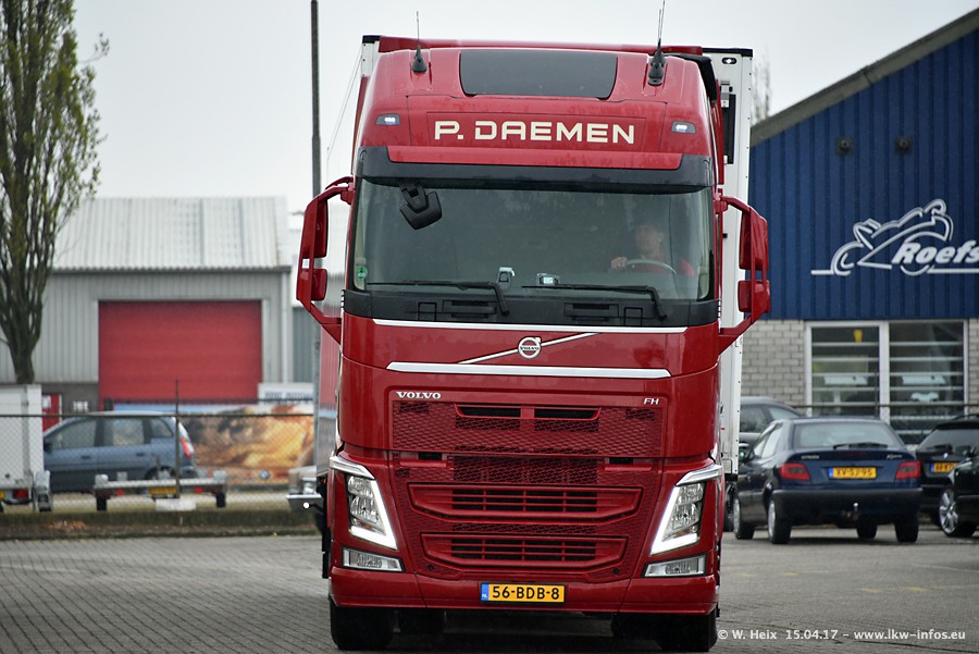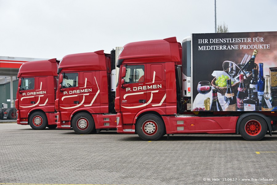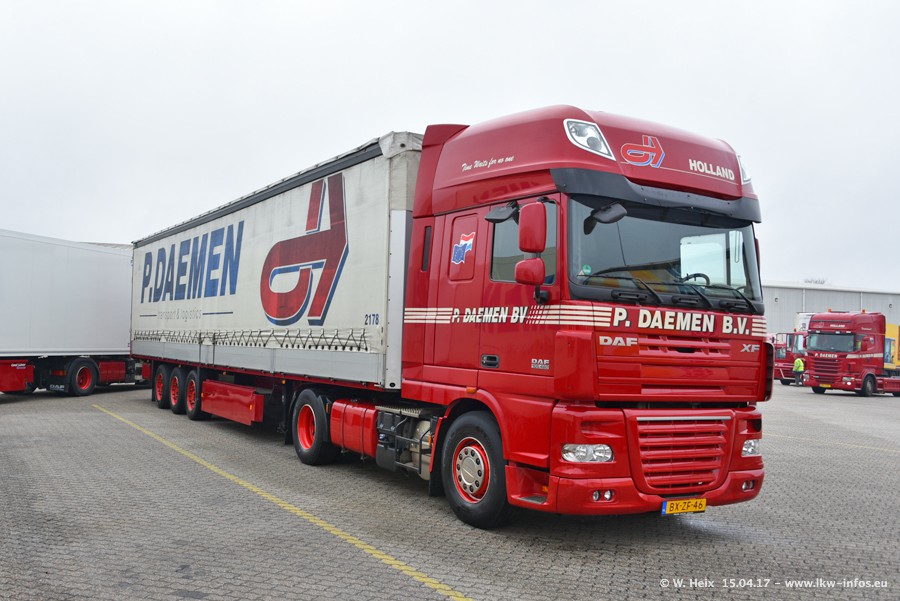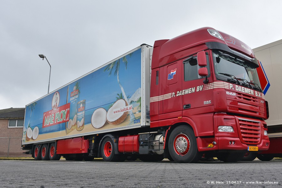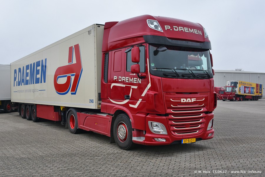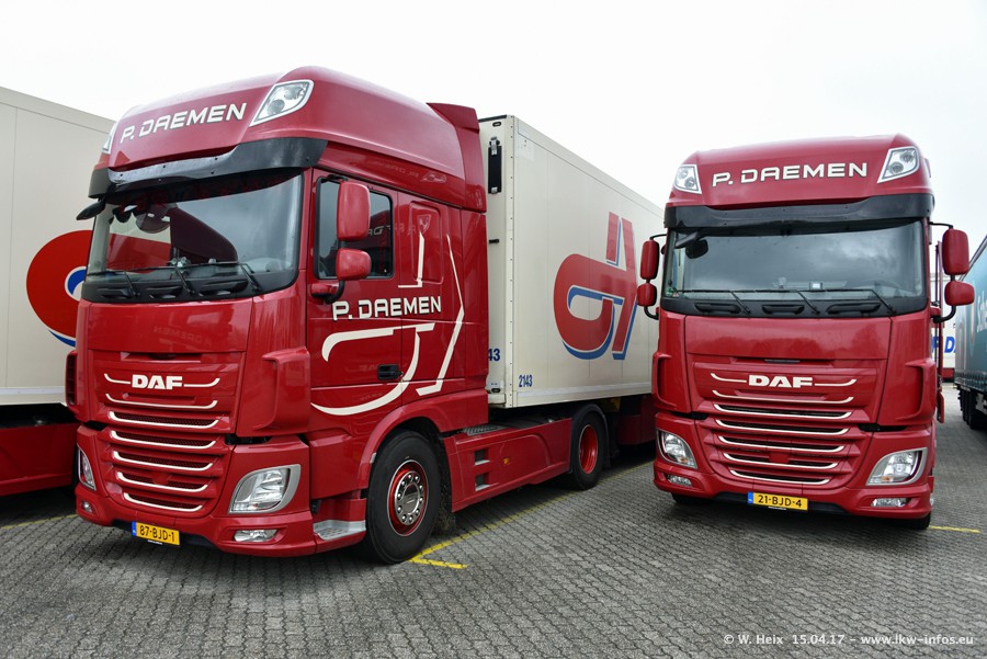 In den letzten Wochen wurde der Furhpark bei Daemen weiter modernisiert. Neu sind zwei DAF XF Euro 6 und mehrere Scania R 410 und R 450 Streamline (alte Baureihe). Und ich konnte einen neuen Auflieger entdecken, der wieder im Design eines Kunden gestaltet ist. Alle neuen Zugmaschinen sind an denn Kennzeichen mit den Buchstabenkombinationen "BJ" zu erkennen.