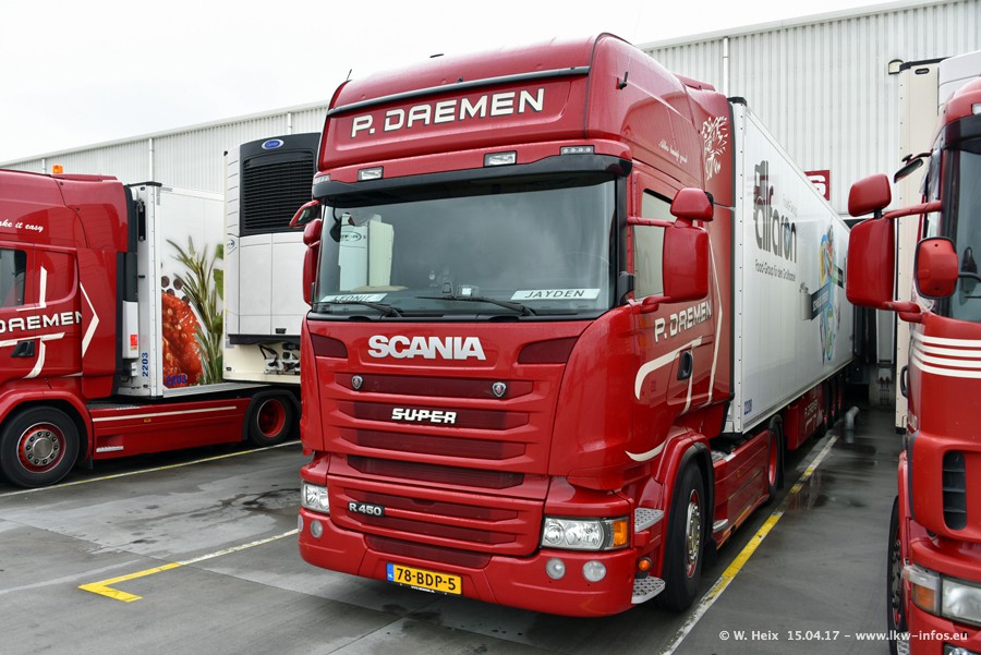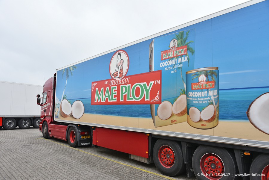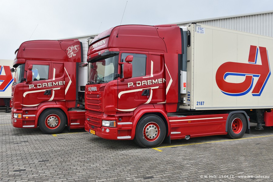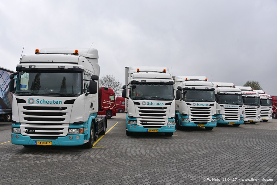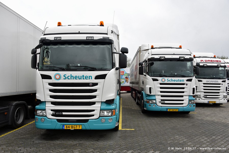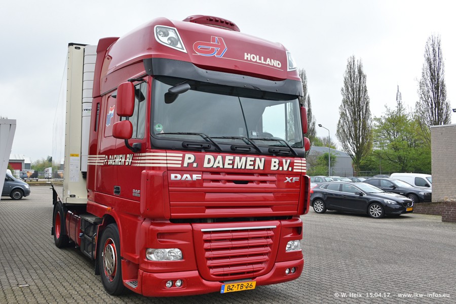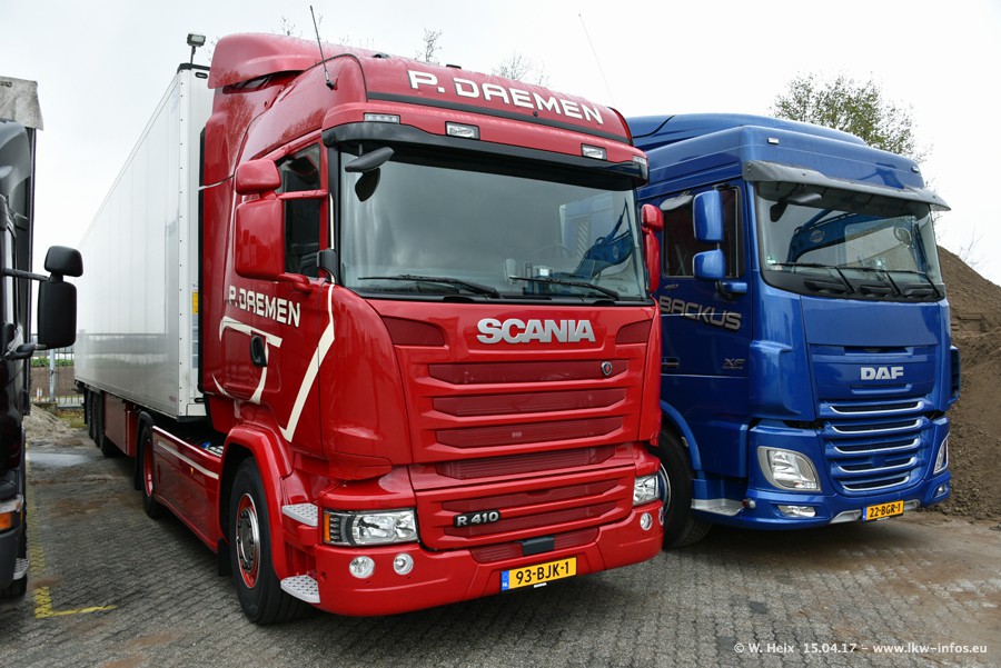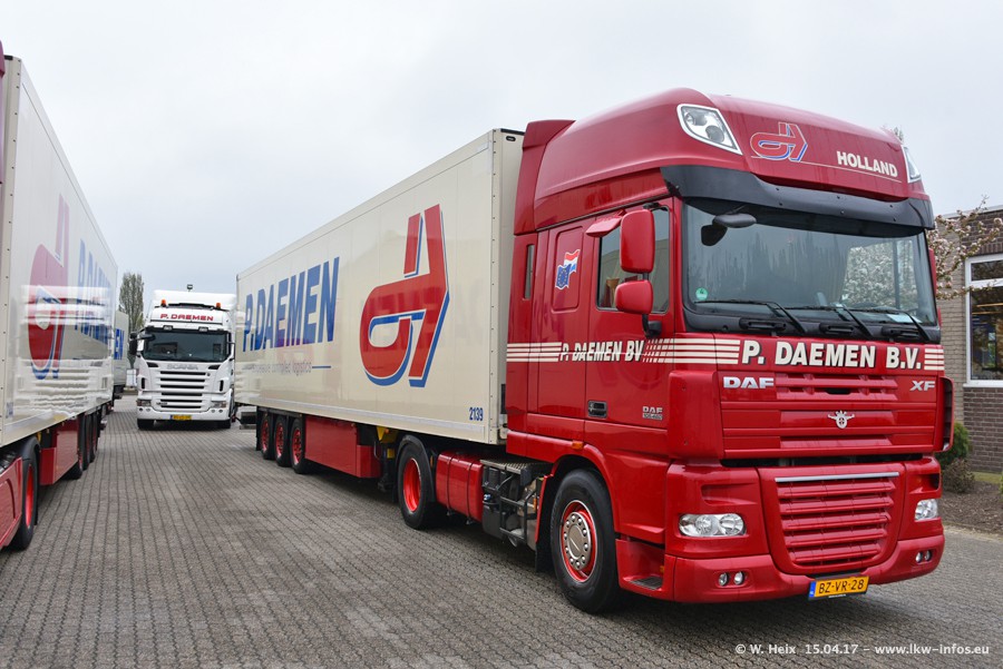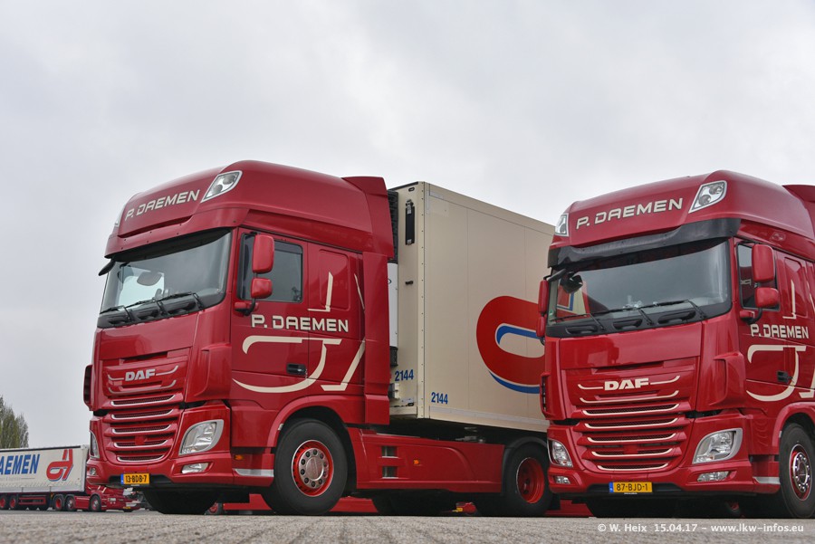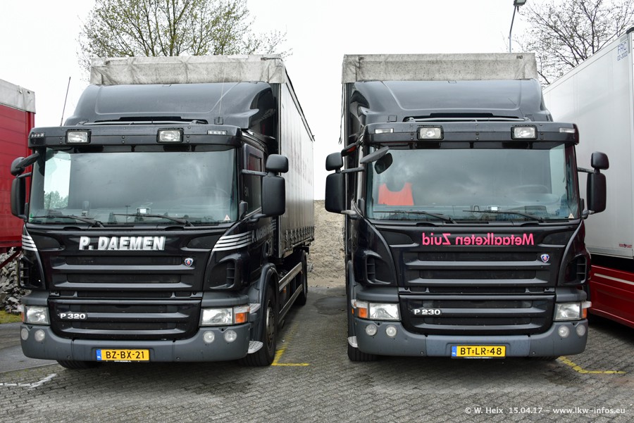 In den letzten Wochen wurde der Furhpark bei Daemen weiter modernisiert. Neu sind zwei DAF XF Euro 6 und mehrere Scania R 410 und R 450 Streamline (alte Baureihe). Und ich konnte einen neuen Auflieger entdecken, der wieder im Design eines Kunden gestaltet ist. Alle neuen Zugmaschinen sind an denn Kennzeichen mit den Buchstabenkombinationen "BJ" zu erkennen.
