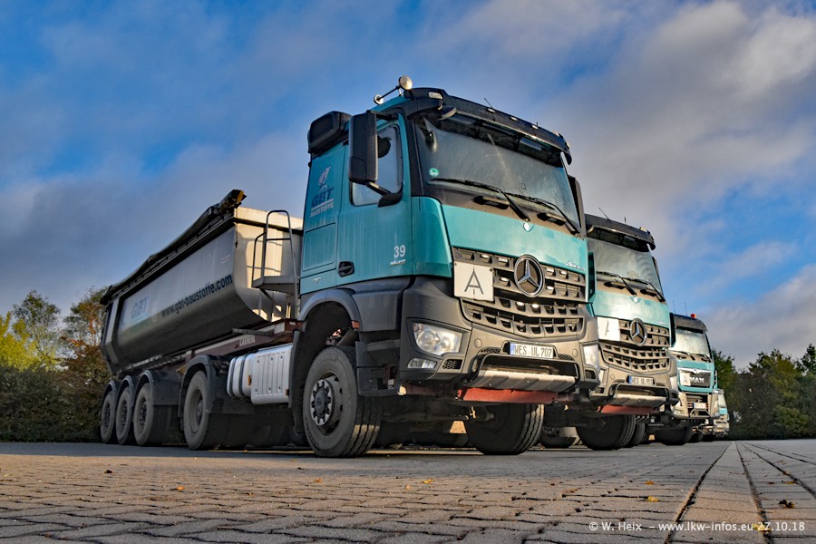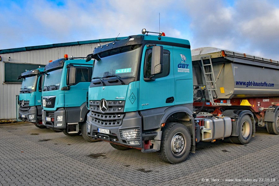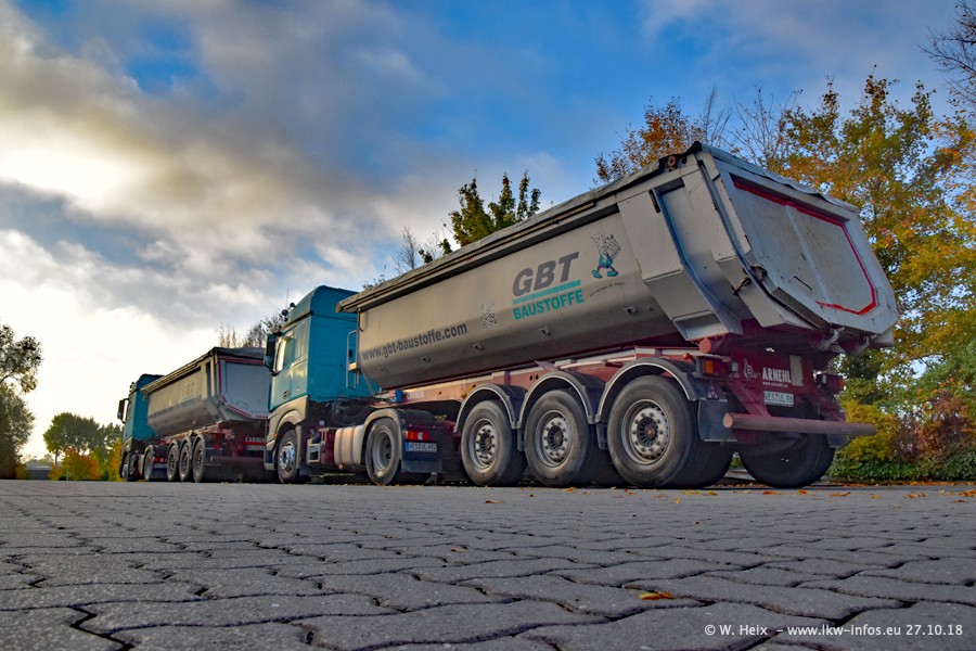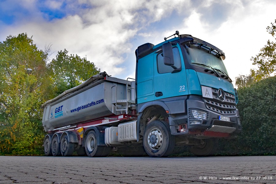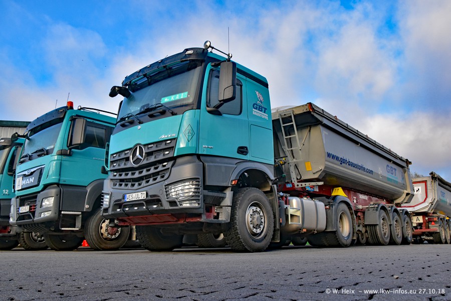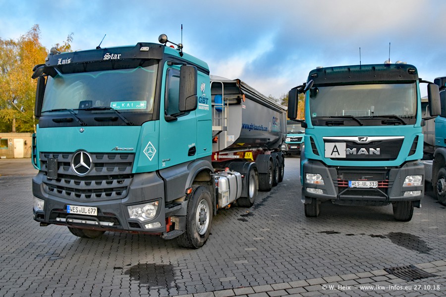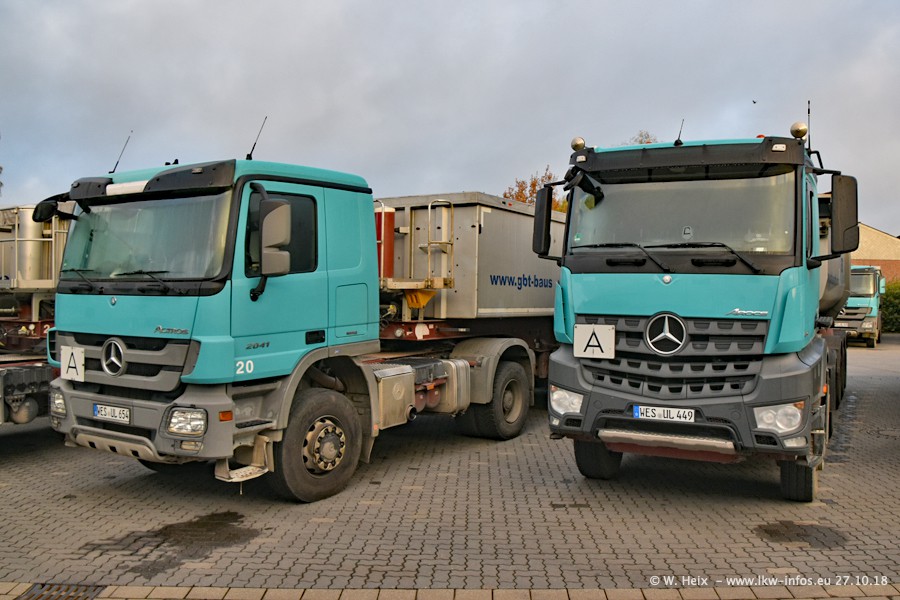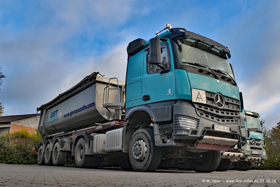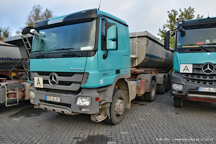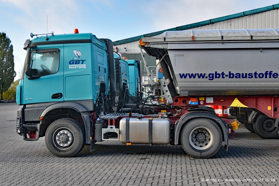 Seit meinem letzten Besuch bei GBT vor knapp 2 Jahren hat sich viel getan. Mehr als 2/3 der LKW wurden durch neue ersetzt. Es gibt jetzt mehrere Mercedes-Benz Arocs und auch Zugmaschinen von MAN. Die letztem Mercedes-Benz Actros 3 werden bald auch den Fuhrpark "verlassen". Rund 40 LKW sind am Standort Dinslaken, fast alle waren zuhause.