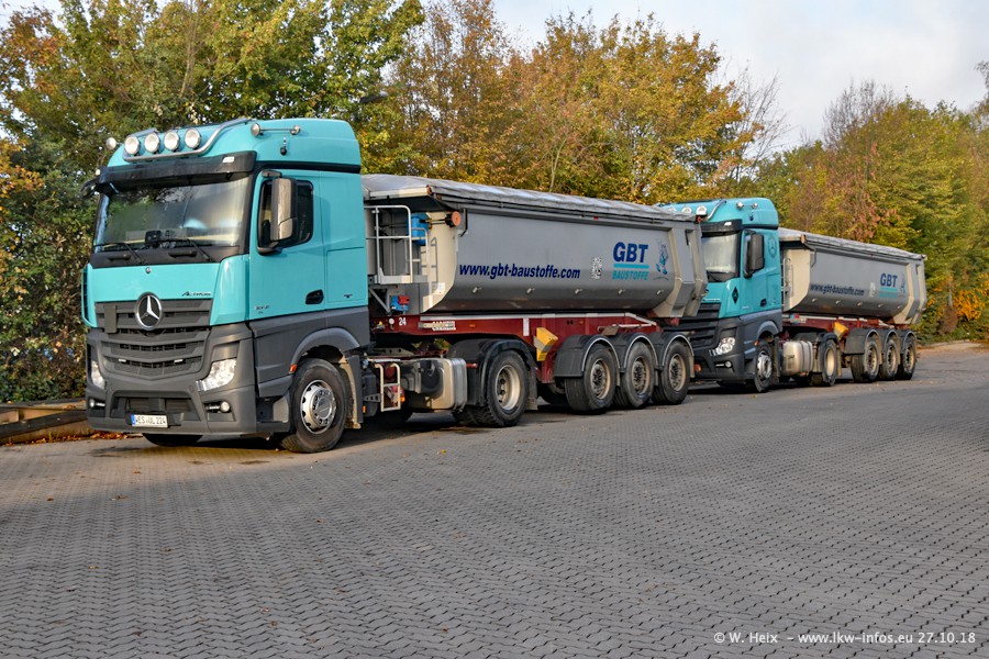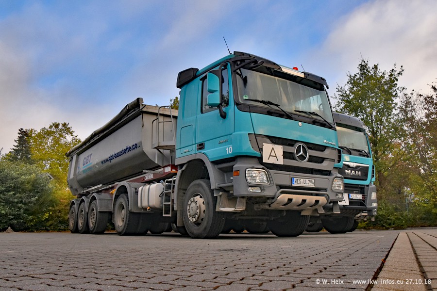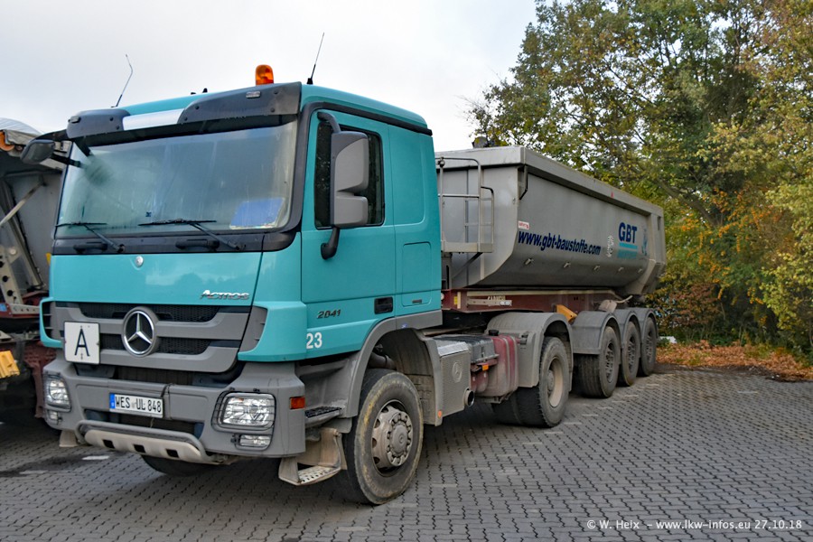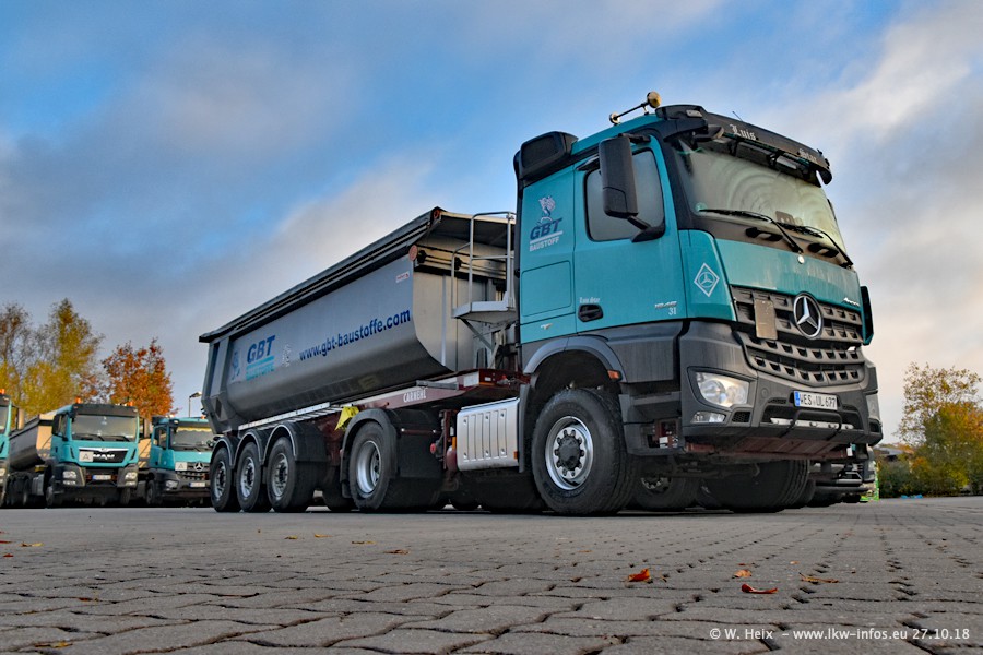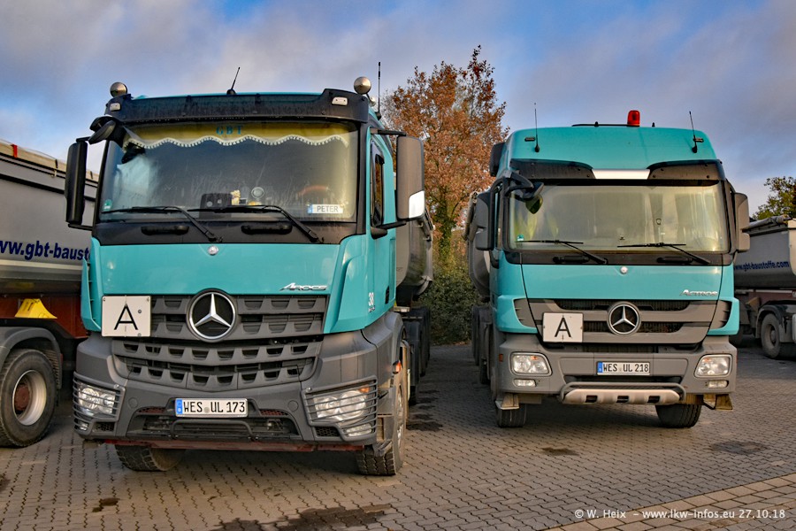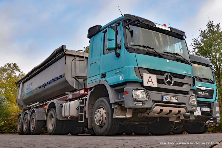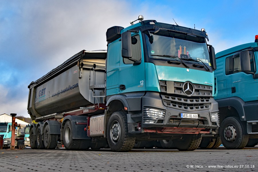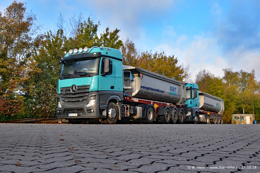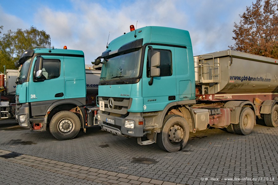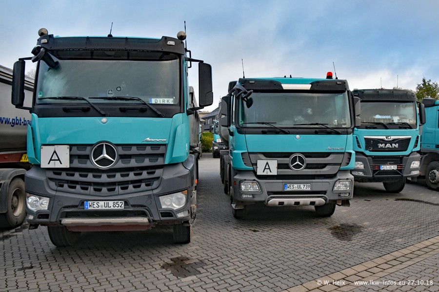 Seit meinem letzten Besuch bei GBT vor knapp 2 Jahren hat sich viel getan. Mehr als 2/3 der LKW wurden durch neue ersetzt. Es gibt jetzt mehrere Mercedes-Benz Arocs und auch Zugmaschinen von MAN. Die letztem Mercedes-Benz Actros 3 werden bald auch den Fuhrpark "verlassen". Rund 40 LKW sind am Standort Dinslaken, fast alle waren zuhause.