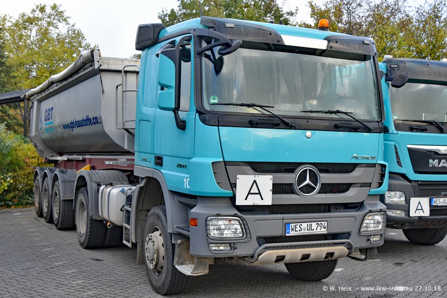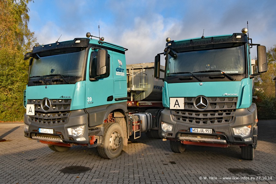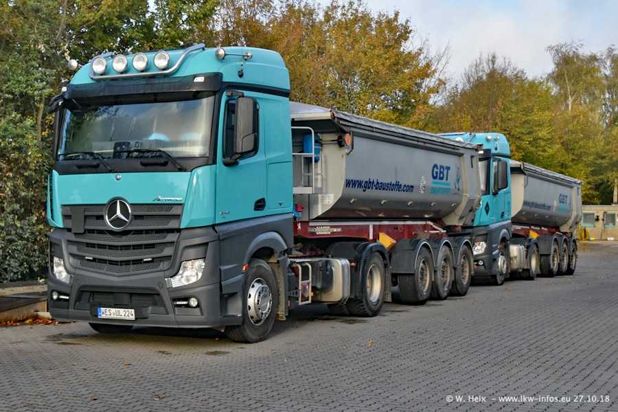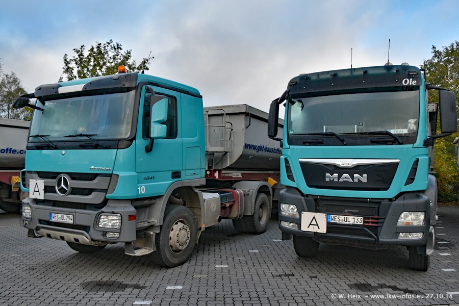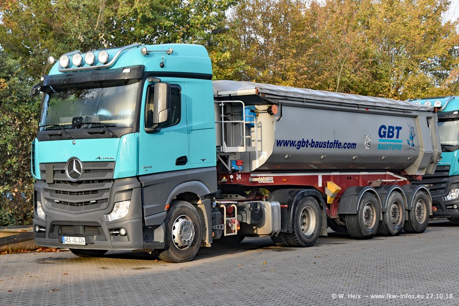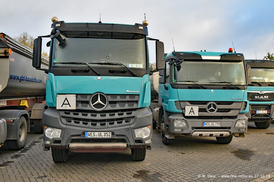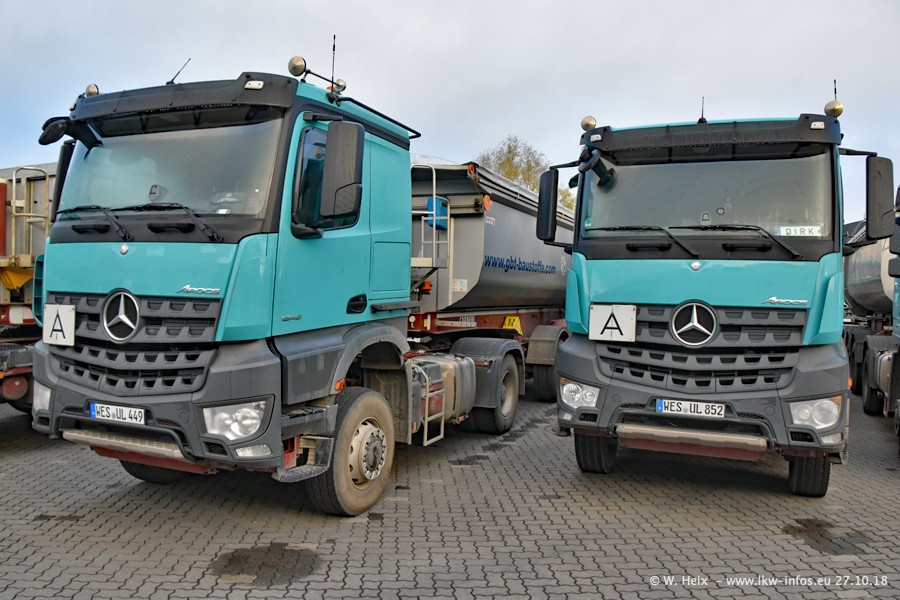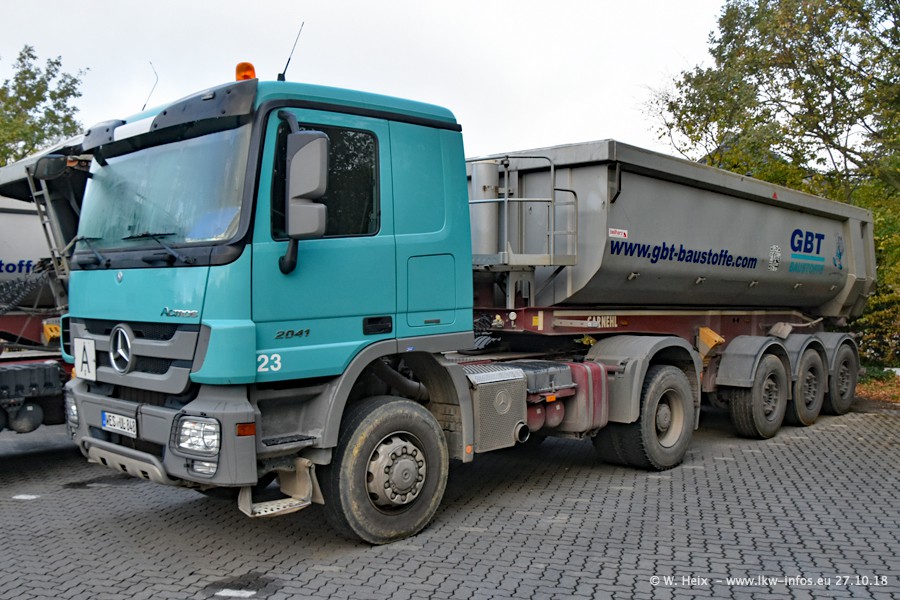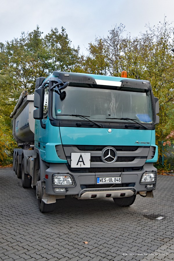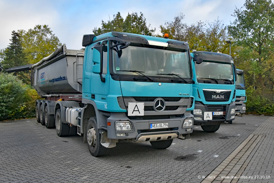 Seit meinem letzten Besuch bei GBT vor knapp 2 Jahren hat sich viel getan. Mehr als 2/3 der LKW wurden durch neue ersetzt. Es gibt jetzt mehrere Mercedes-Benz Arocs und auch Zugmaschinen von MAN. Die letztem Mercedes-Benz Actros 3 werden bald auch den Fuhrpark "verlassen". Rund 40 LKW sind am Standort Dinslaken, fast alle waren zuhause.