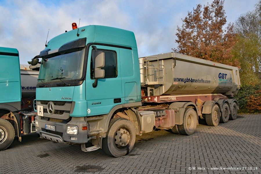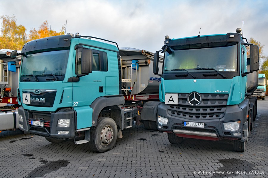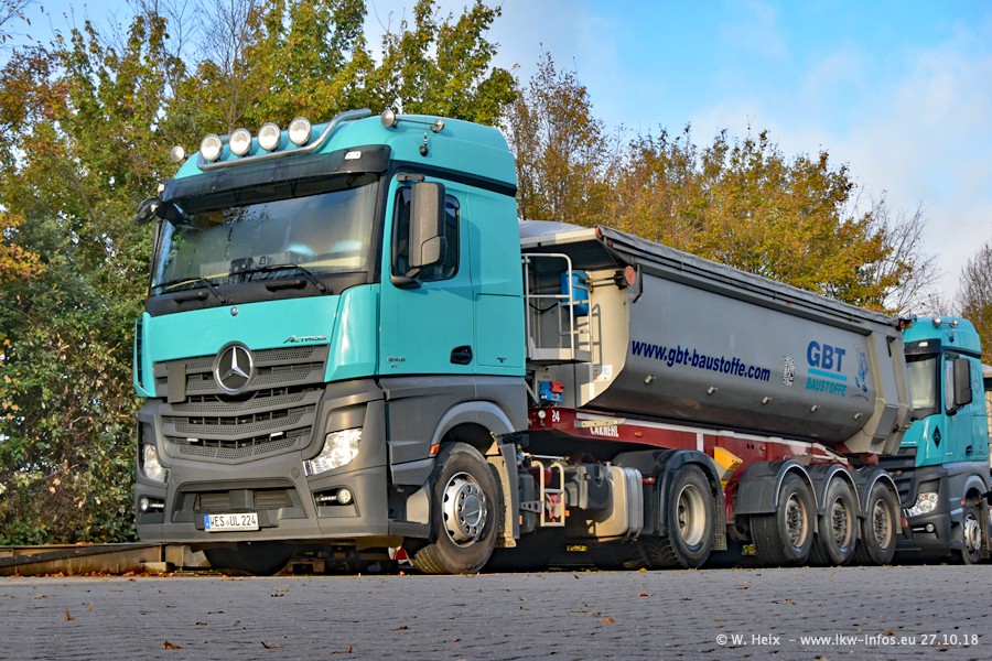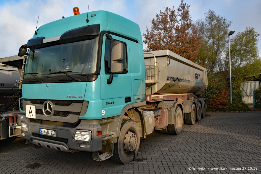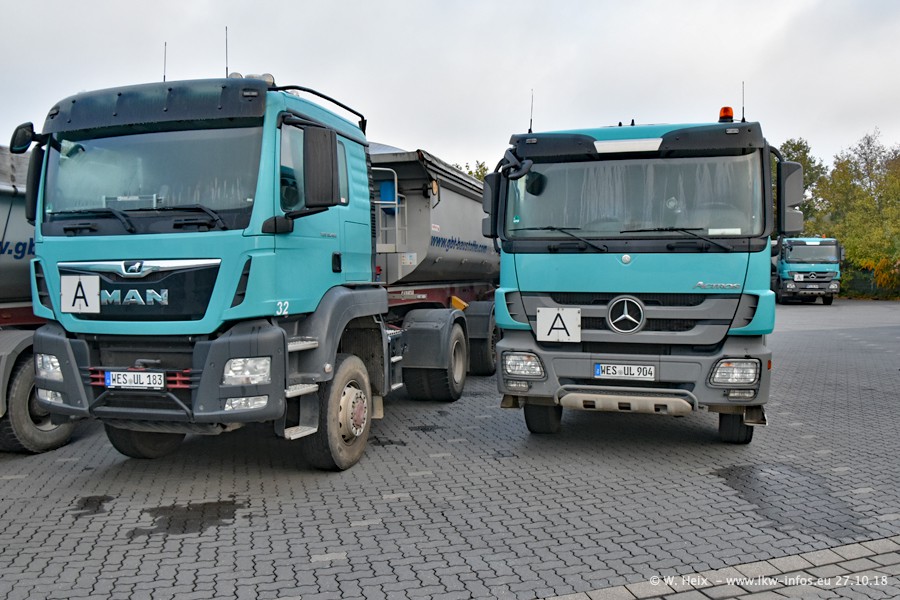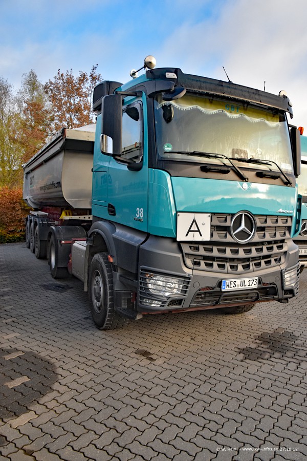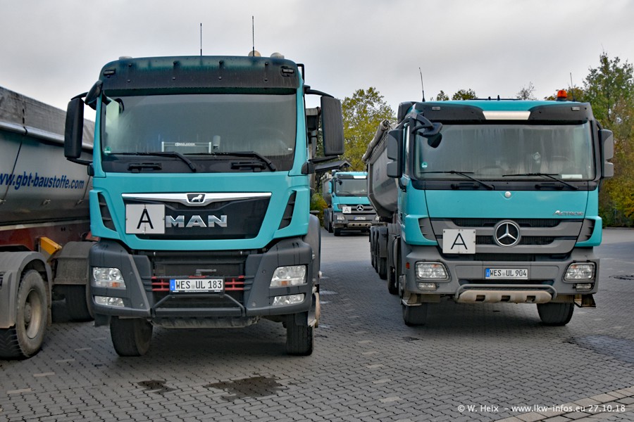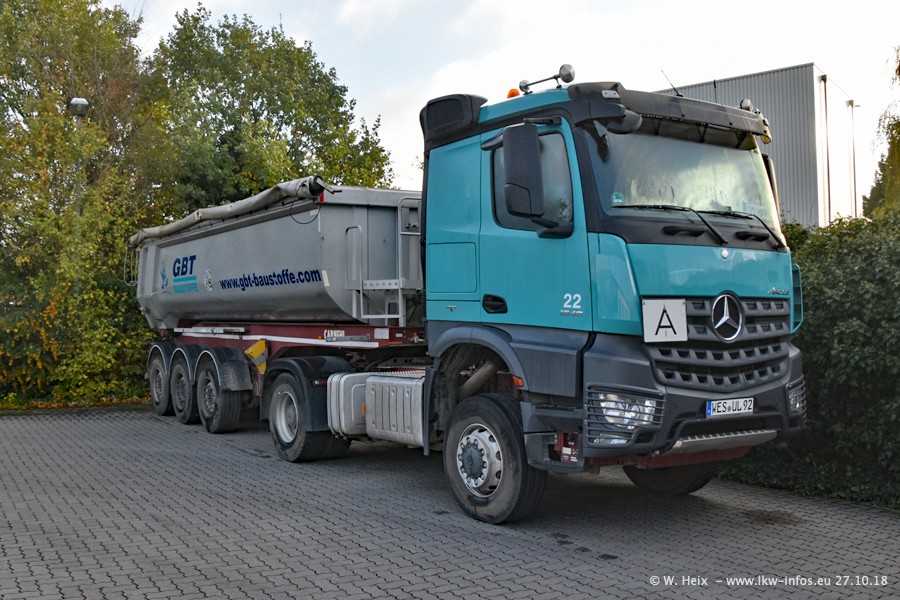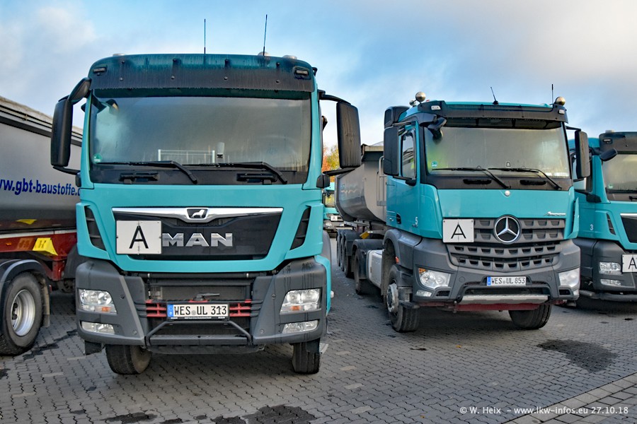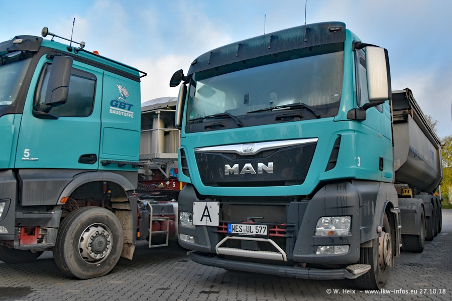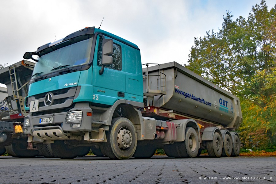 Seit meinem letzten Besuch bei GBT vor knapp 2 Jahren hat sich viel getan. Mehr als 2/3 der LKW wurden durch neue ersetzt. Es gibt jetzt mehrere Mercedes-Benz Arocs und auch Zugmaschinen von MAN. Die letztem Mercedes-Benz Actros 3 werden bald auch den Fuhrpark "verlassen". Rund 40 LKW sind am Standort Dinslaken, fast alle waren zuhause.