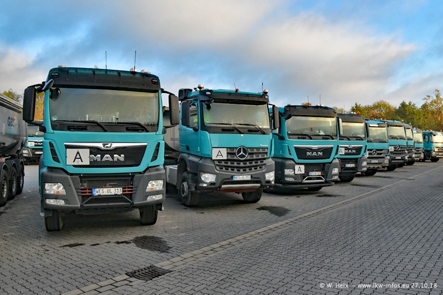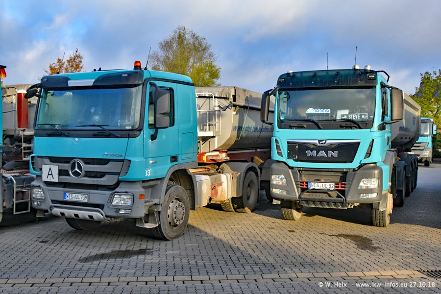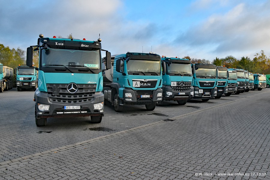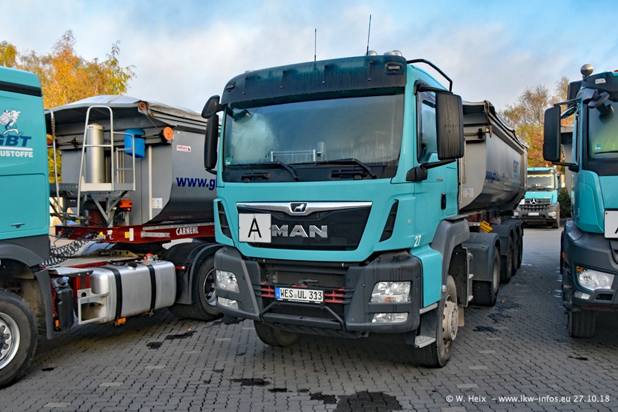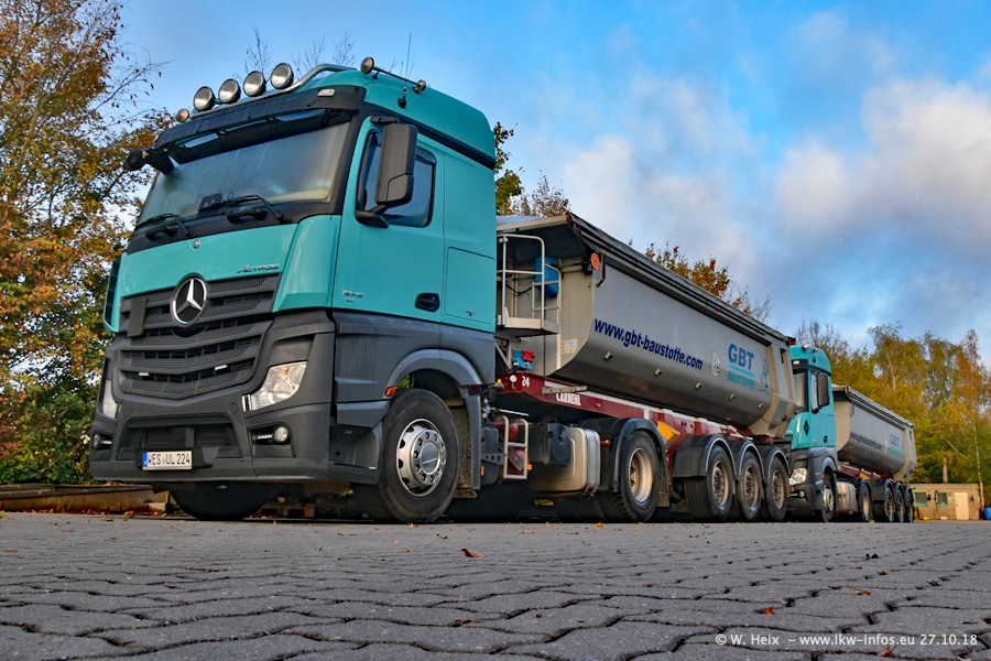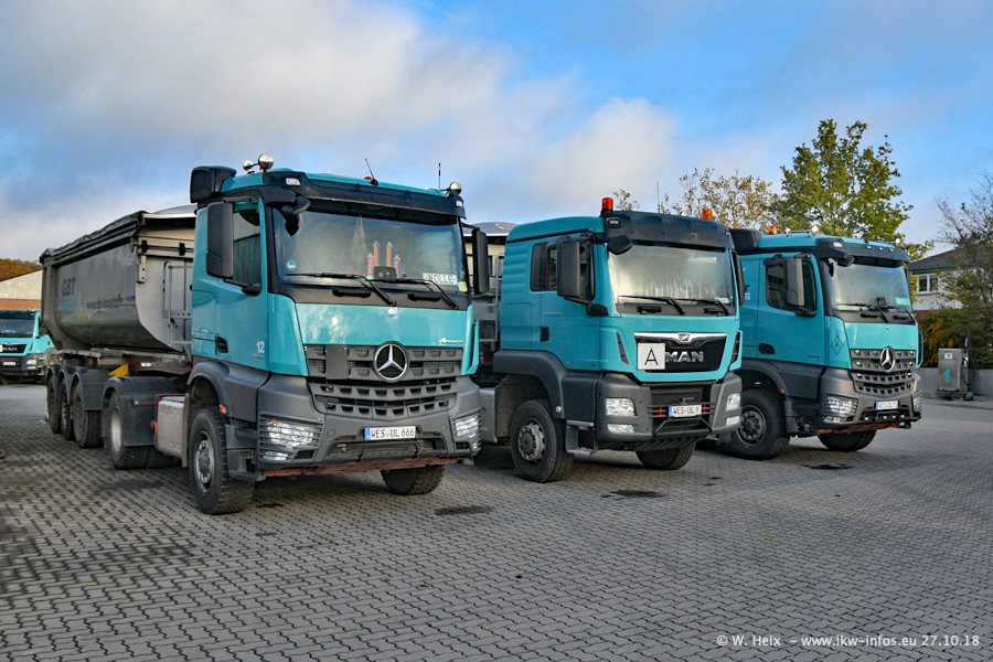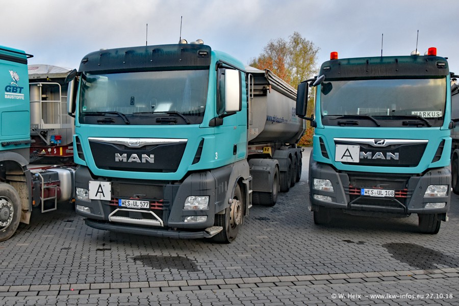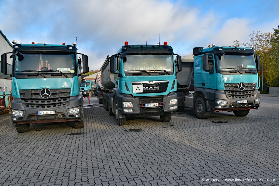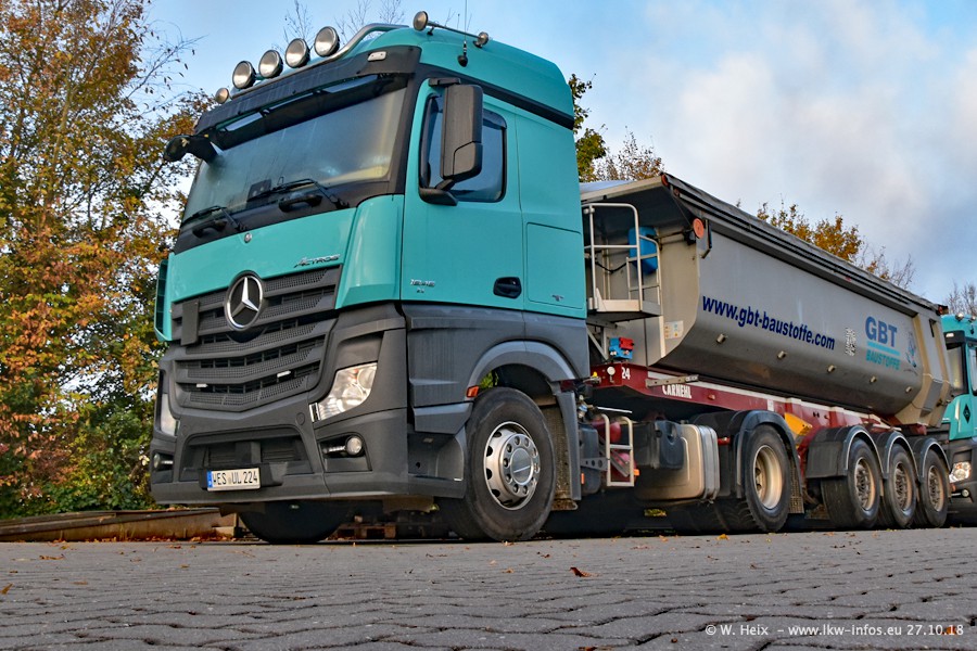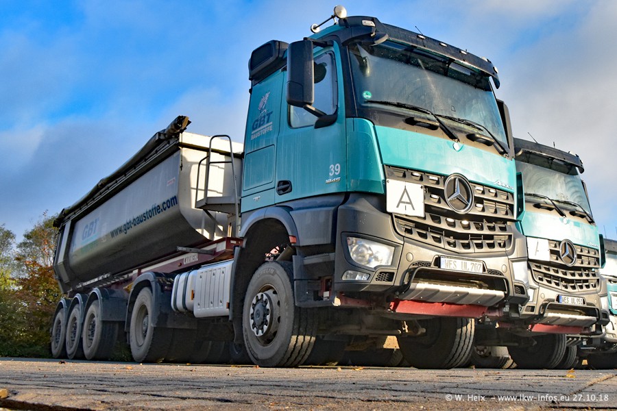 Seit meinem letzten Besuch bei GBT vor knapp 2 Jahren hat sich viel getan. Mehr als 2/3 der LKW wurden durch neue ersetzt. Es gibt jetzt mehrere Mercedes-Benz Arocs und auch Zugmaschinen von MAN. Die letztem Mercedes-Benz Actros 3 werden bald auch den Fuhrpark "verlassen". Rund 40 LKW sind am Standort Dinslaken, fast alle waren zuhause.