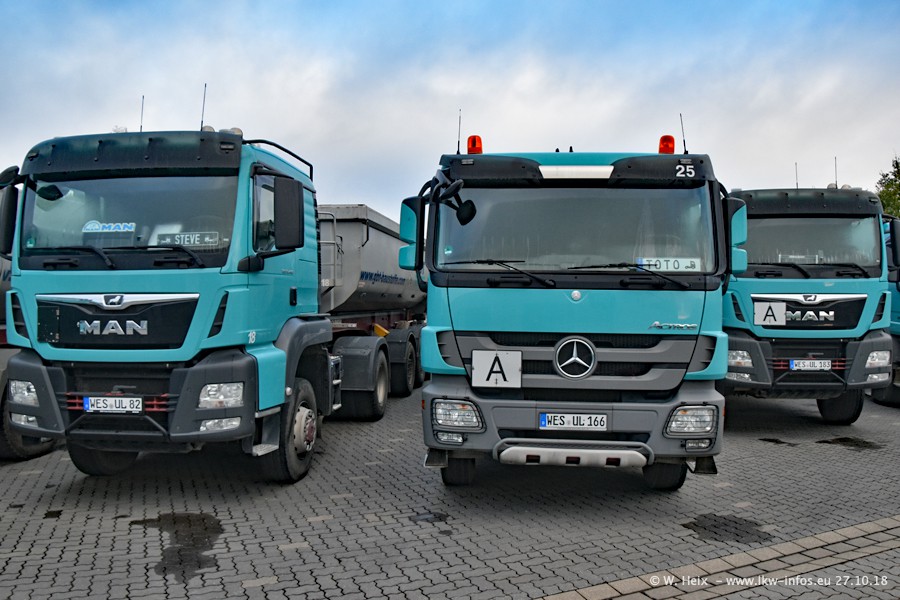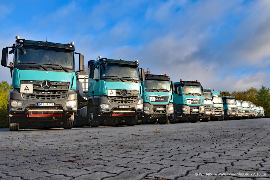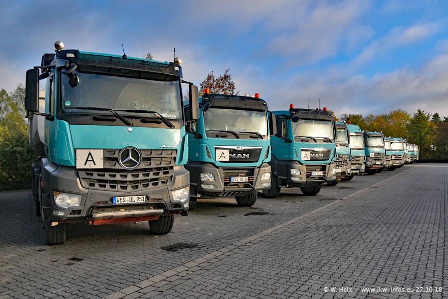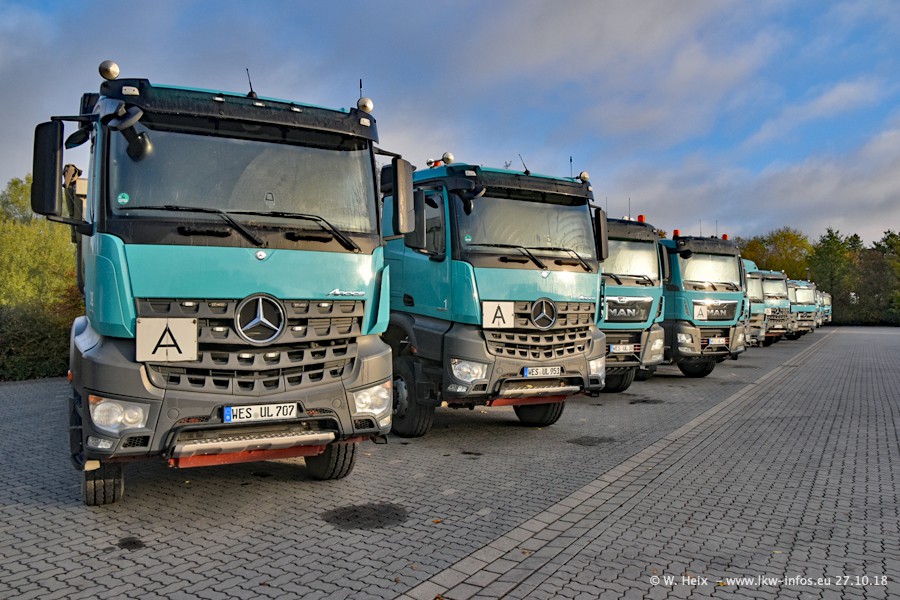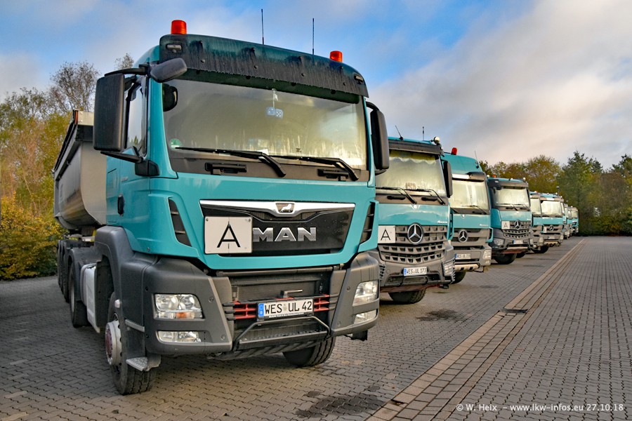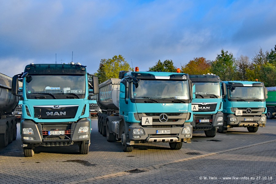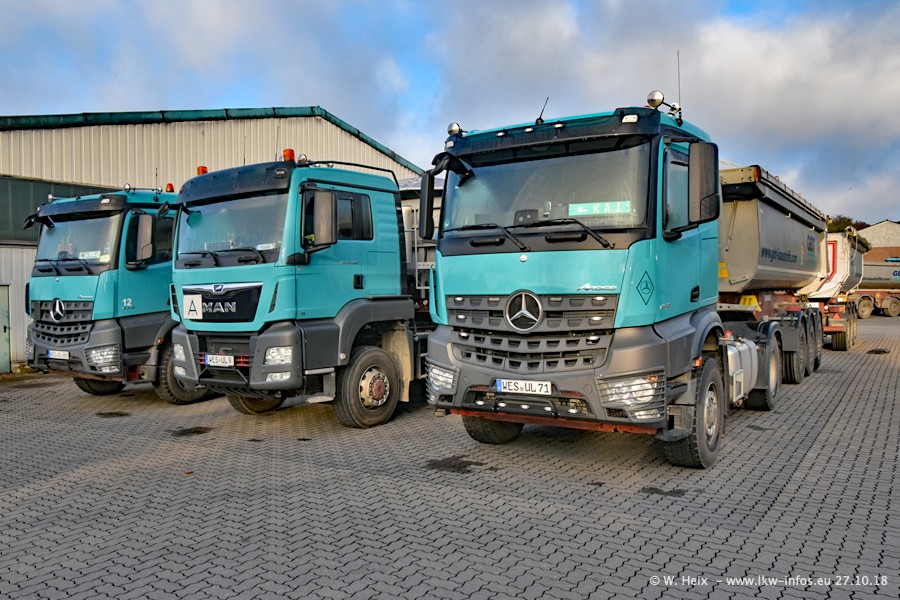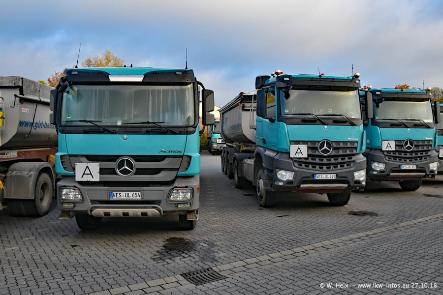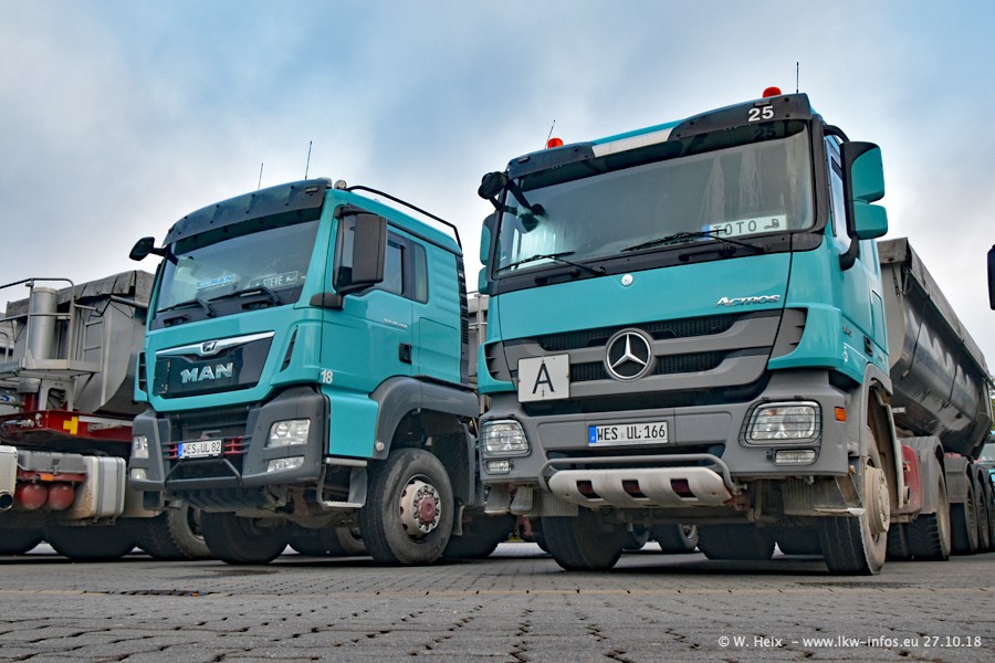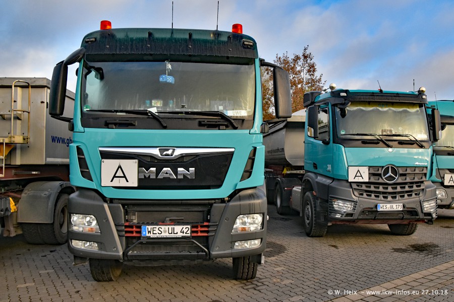 Seit meinem letzten Besuch bei GBT vor knapp 2 Jahren hat sich viel getan. Mehr als 2/3 der LKW wurden durch neue ersetzt. Es gibt jetzt mehrere Mercedes-Benz Arocs und auch Zugmaschinen von MAN. Die letztem Mercedes-Benz Actros 3 werden bald auch den Fuhrpark "verlassen". Rund 40 LKW sind am Standort Dinslaken, fast alle waren zuhause.