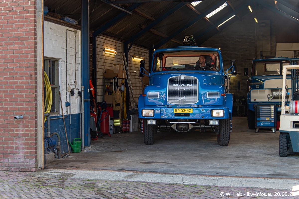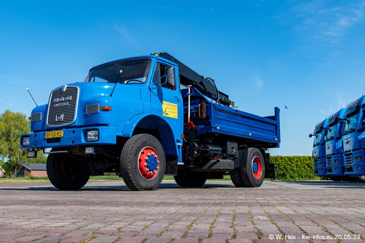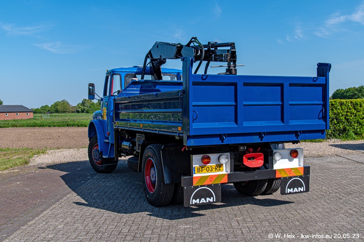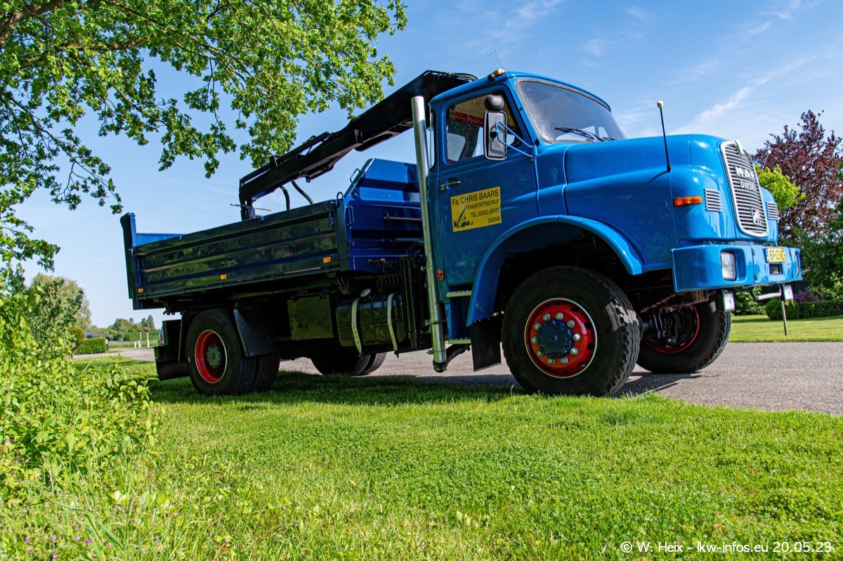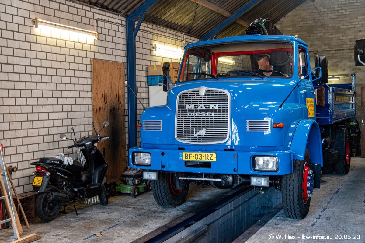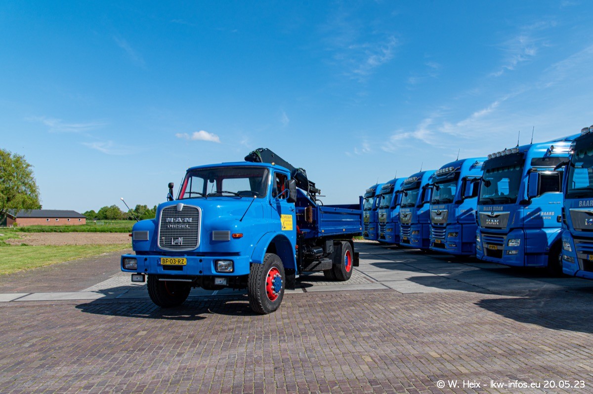 Der Fuhrpark von Baars besteht aus neun MAN, das sind vier MAN der neuen Baureihe und fünf der alten Baureihe. Die Firma ist überwiegend im Bereich Containertransport tätig. Es gibt aber auch noch zwei schöne Oldtimer. Das ist ein MAN 16.168 HAK, Baujahr 1982. Der wurde vor drei Jahren gekauft und in den eigenen Firmenfarben lackiert. Der stand auch gleich für ein kleines Fotoshooting bereit. Der zweite Oldtimer ist ein Hanomag-Henschel H 261 Allrad-Hauber. Der LKW ist von 1970 und wurde damals vom heutigen Senior-Chef neu gekauft und ist bis heute im Familienbesitz. Aktuell ist das Fahrzeug allerdings nicht fahrbereit, darum gibt es "nur" Bilder aus der Garage/Werkstatt.