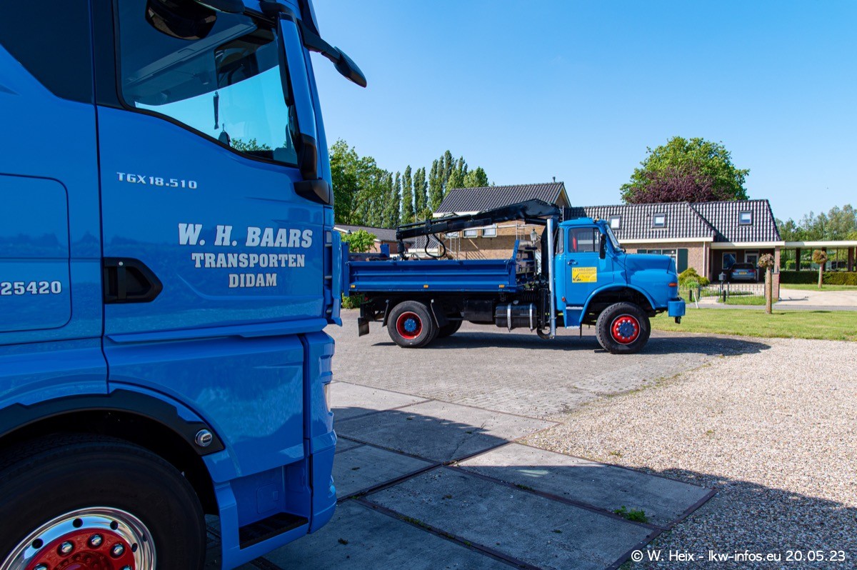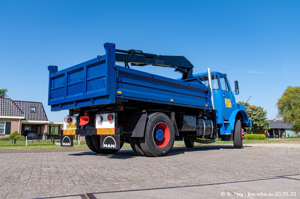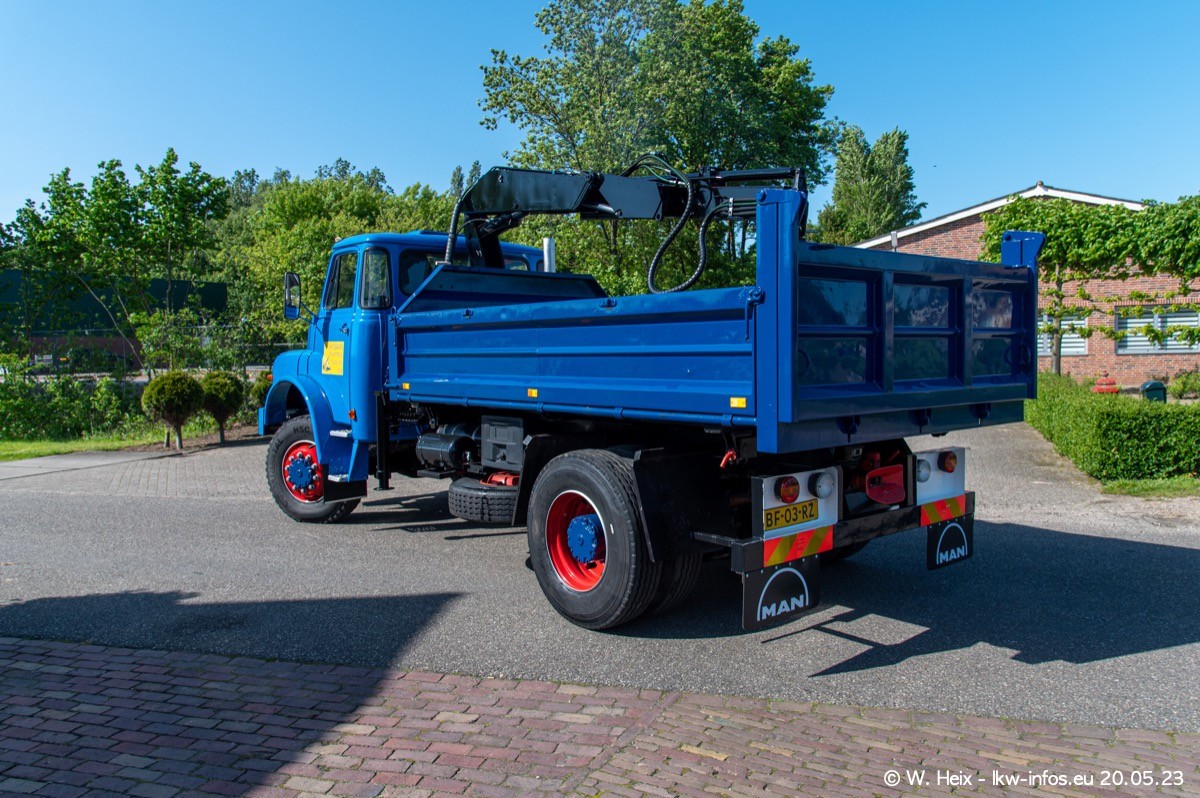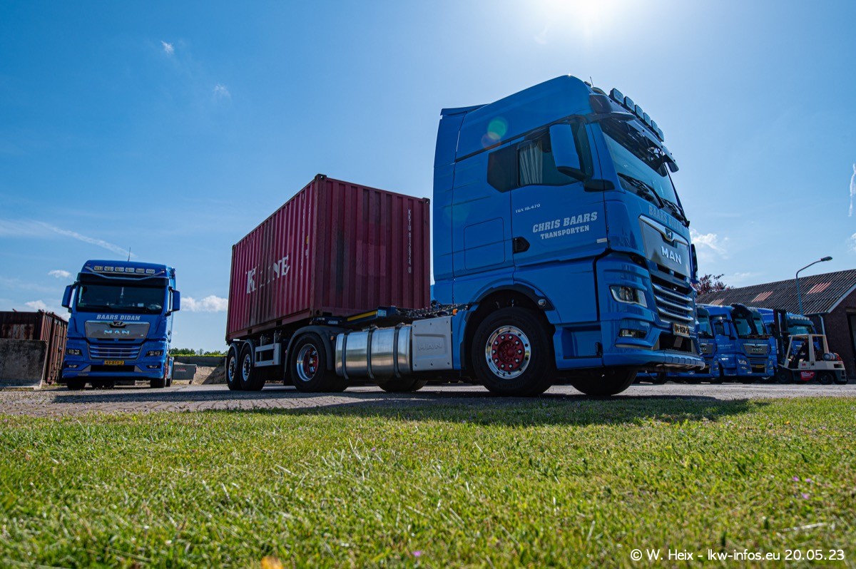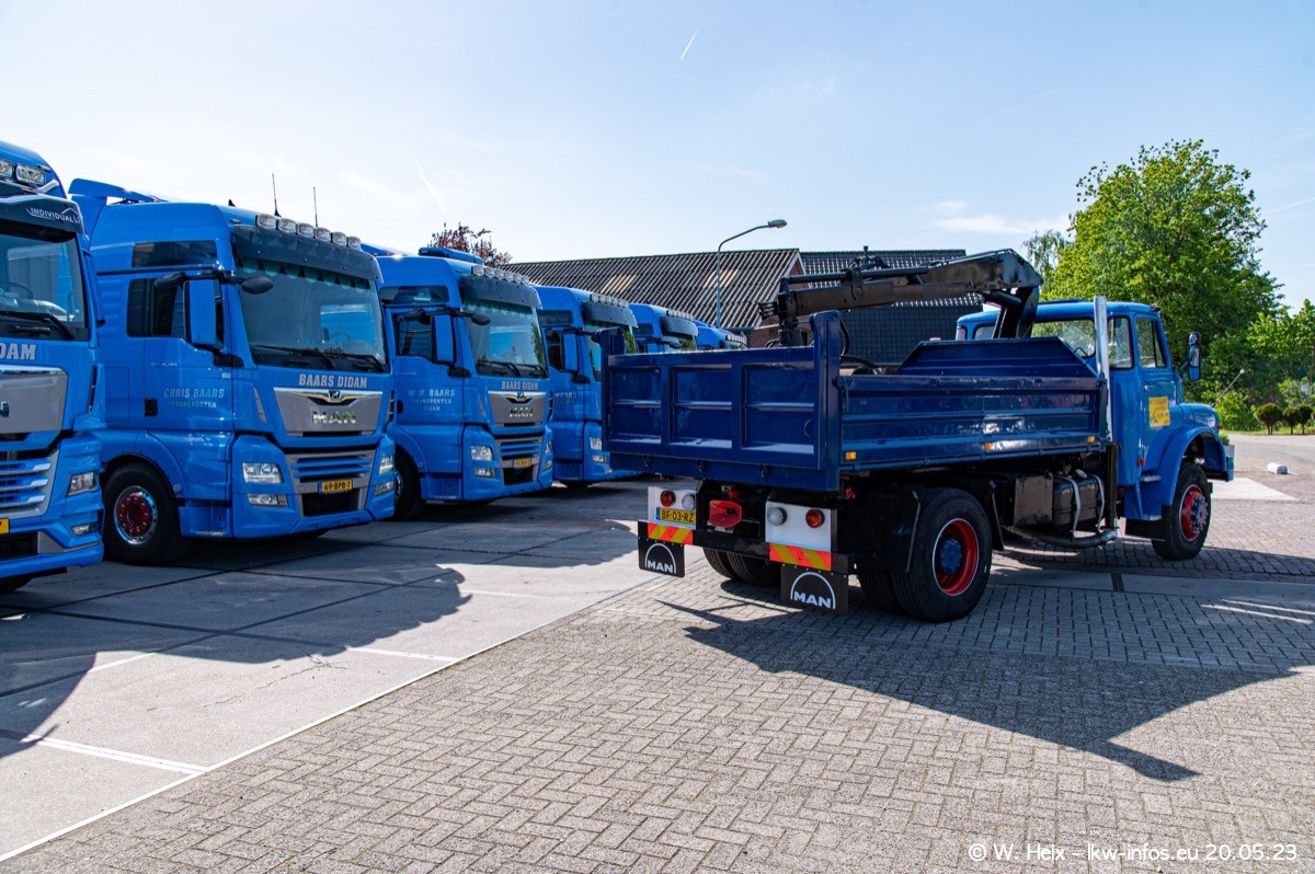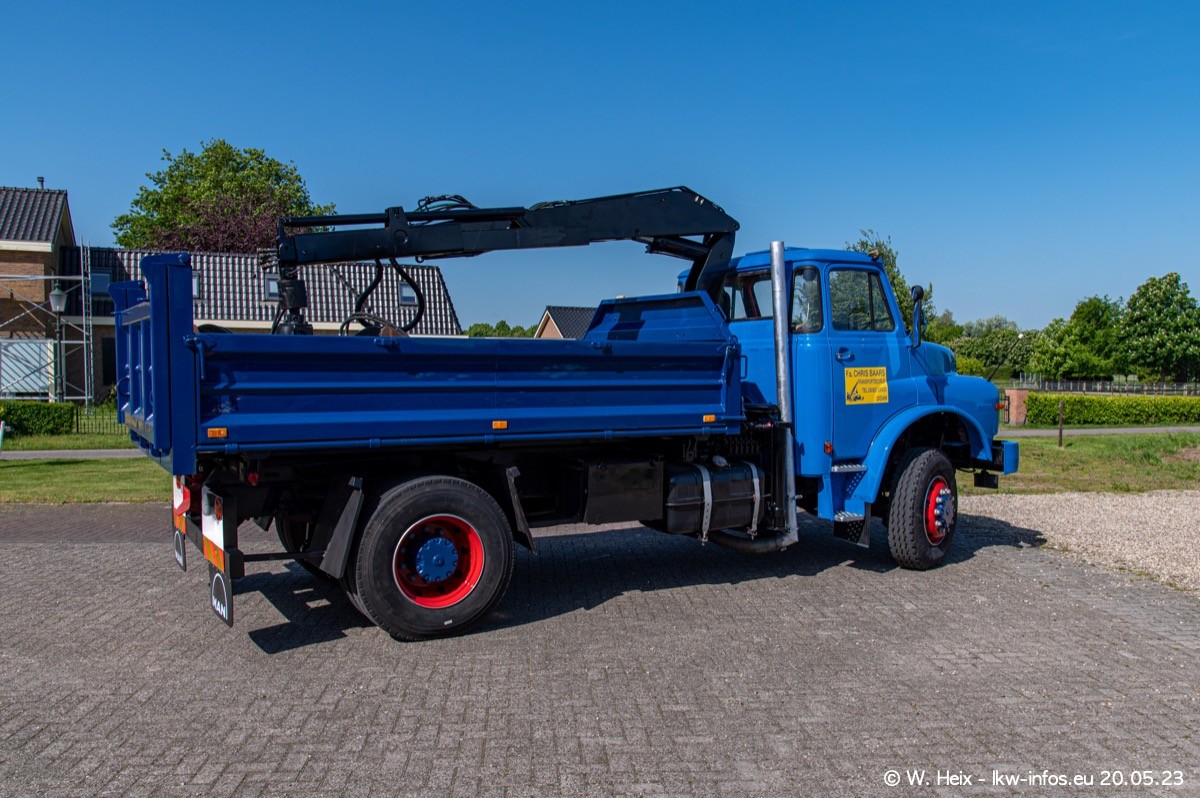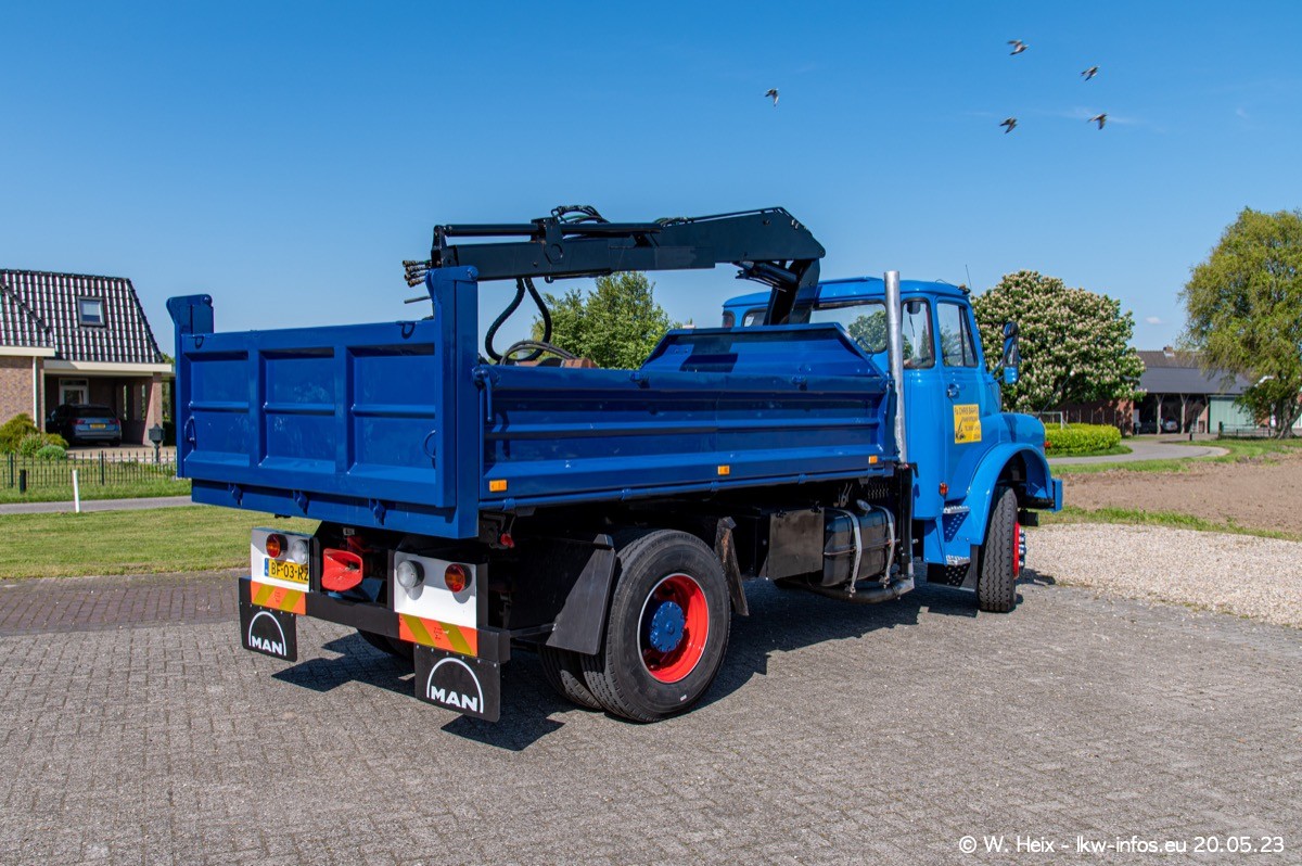 Der Fuhrpark von Baars besteht aus neun MAN, das sind vier MAN der neuen Baureihe und fünf der alten Baureihe. Die Firma ist überwiegend im Bereich Containertransport tätig. Es gibt aber auch noch zwei schöne Oldtimer. Das ist ein MAN 16.168 HAK, Baujahr 1982. Der wurde vor drei Jahren gekauft und in den eigenen Firmenfarben lackiert. Der stand auch gleich für ein kleines Fotoshooting bereit. Der zweite Oldtimer ist ein Hanomag-Henschel H 261 Allrad-Hauber. Der LKW ist von 1970 und wurde damals vom heutigen Senior-Chef neu gekauft und ist bis heute im Familienbesitz. Aktuell ist das Fahrzeug allerdings nicht fahrbereit, darum gibt es "nur" Bilder aus der Garage/Werkstatt.