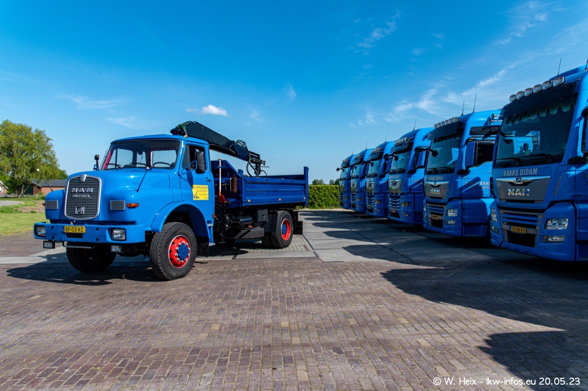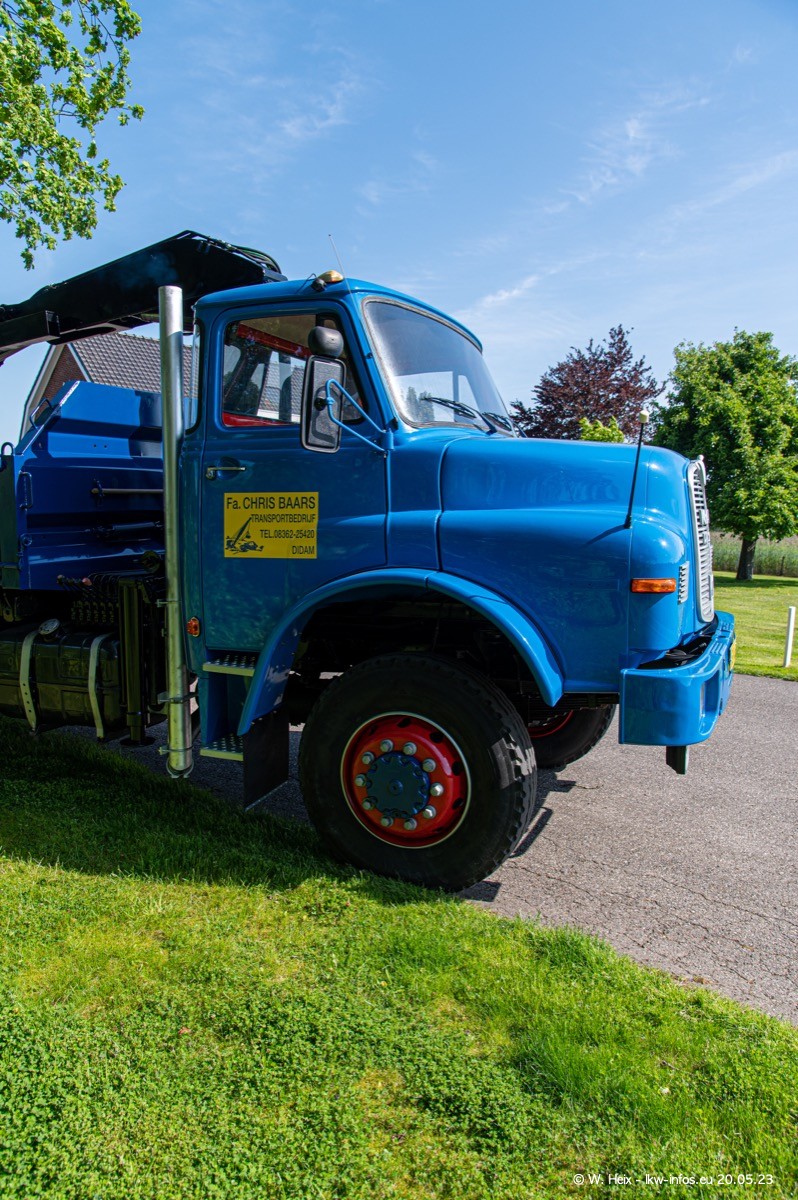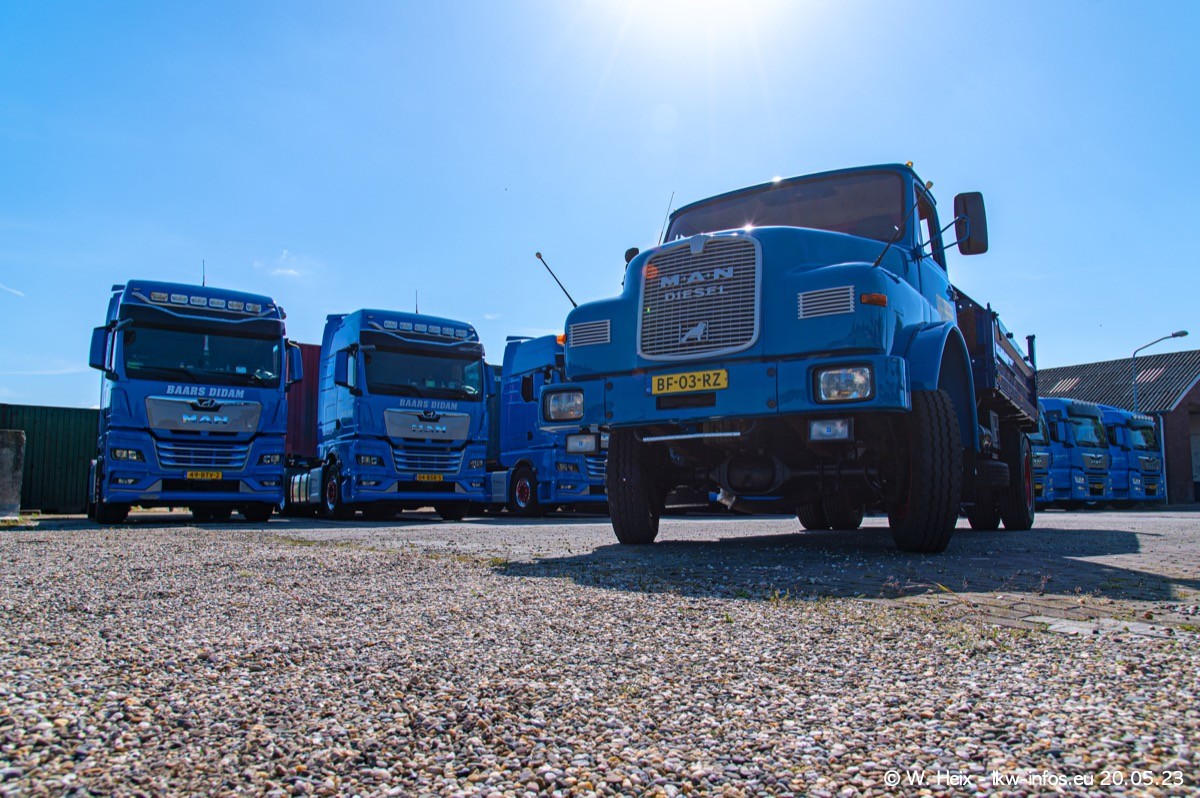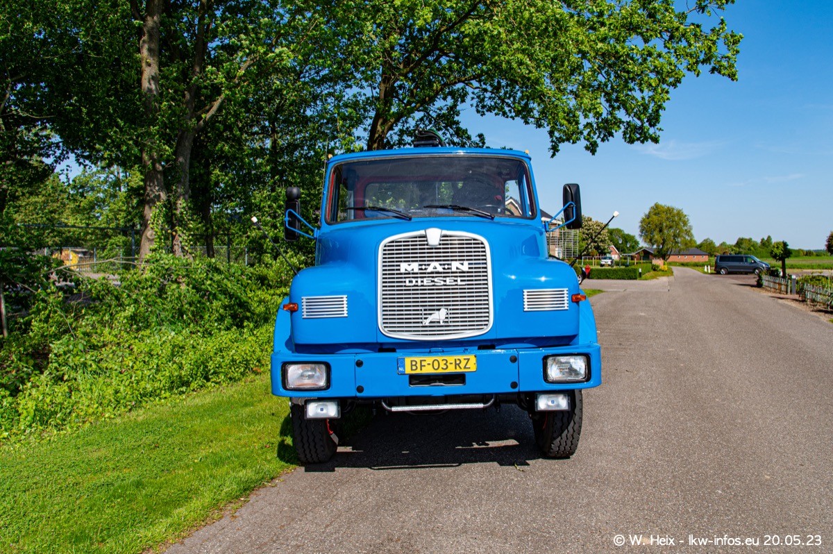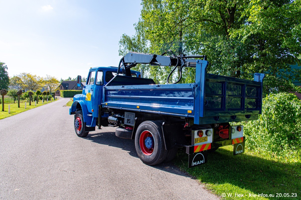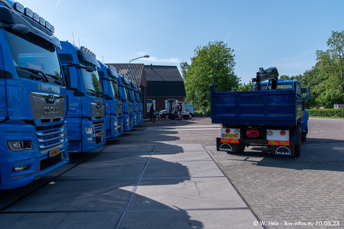 Der Fuhrpark von Baars besteht aus neun MAN, das sind vier MAN der neuen Baureihe und fünf der alten Baureihe. Die Firma ist überwiegend im Bereich Containertransport tätig. Es gibt aber auch noch zwei schöne Oldtimer. Das ist ein MAN 16.168 HAK, Baujahr 1982. Der wurde vor drei Jahren gekauft und in den eigenen Firmenfarben lackiert. Der stand auch gleich für ein kleines Fotoshooting bereit. Der zweite Oldtimer ist ein Hanomag-Henschel H 261 Allrad-Hauber. Der LKW ist von 1970 und wurde damals vom heutigen Senior-Chef neu gekauft und ist bis heute im Familienbesitz. Aktuell ist das Fahrzeug allerdings nicht fahrbereit, darum gibt es "nur" Bilder aus der Garage/Werkstatt.