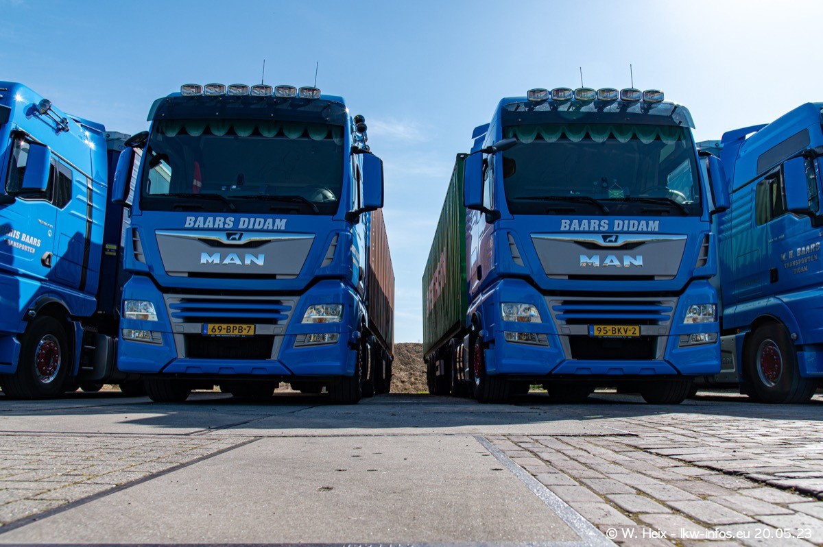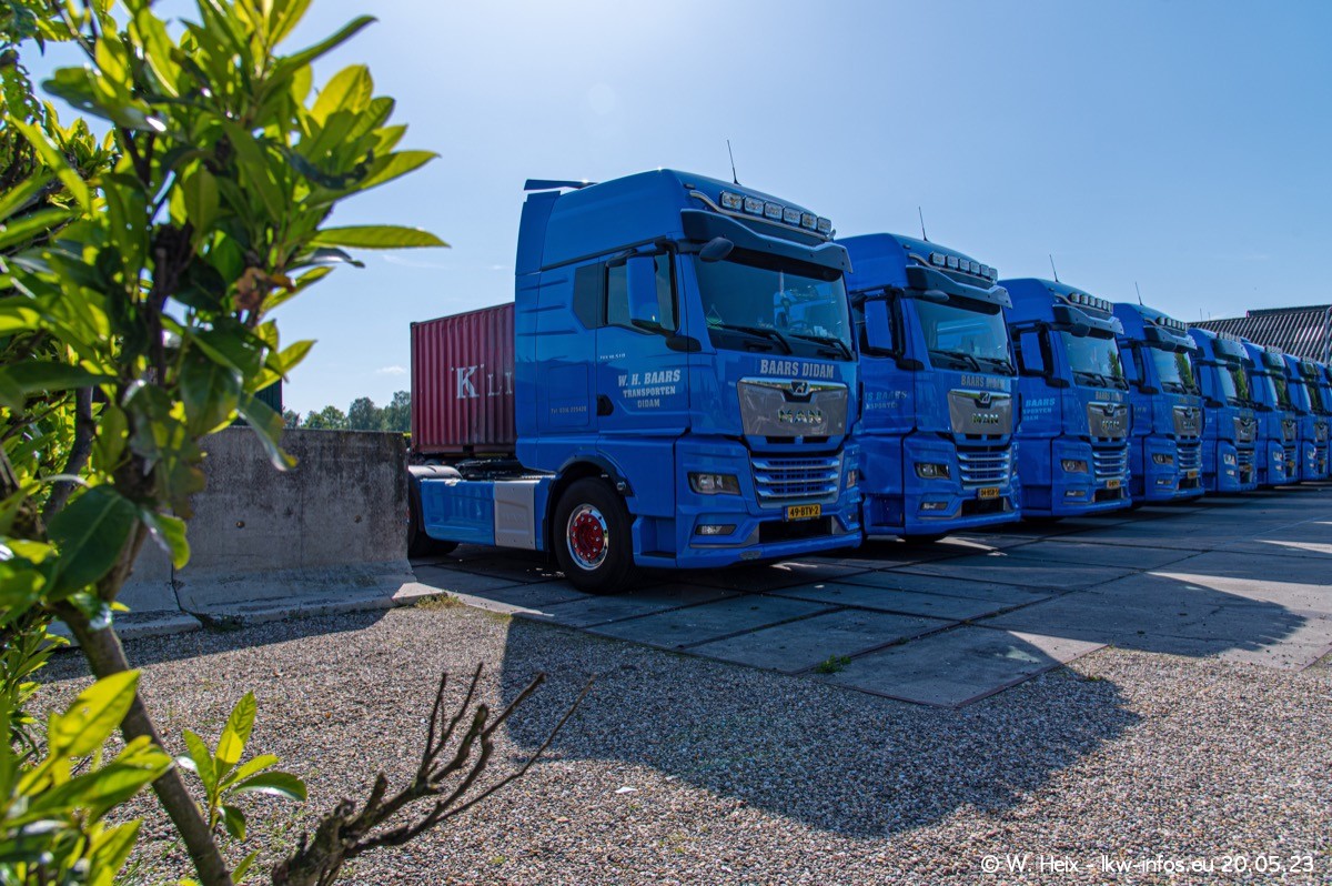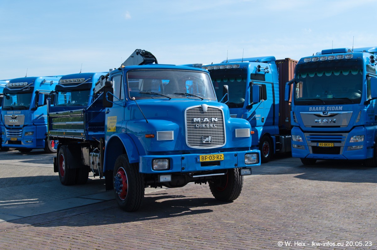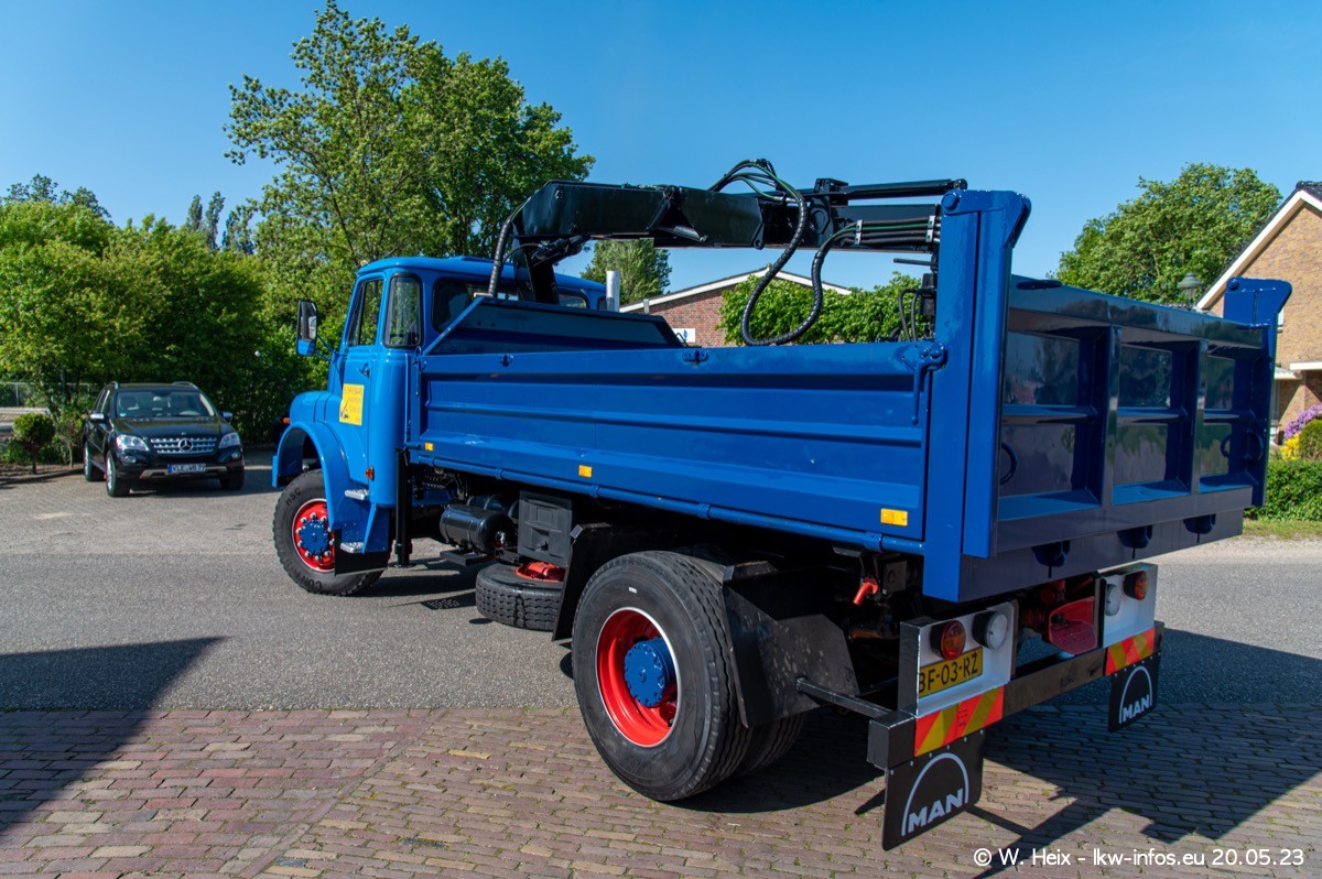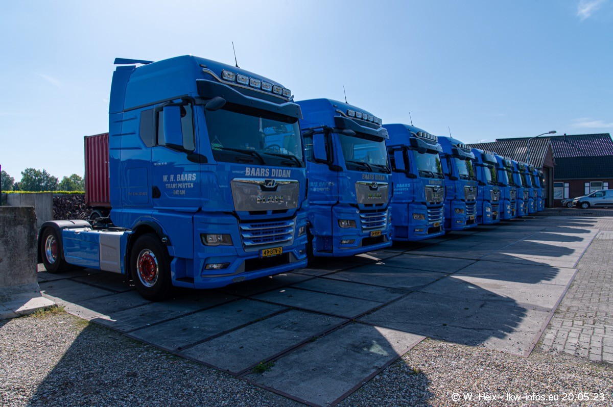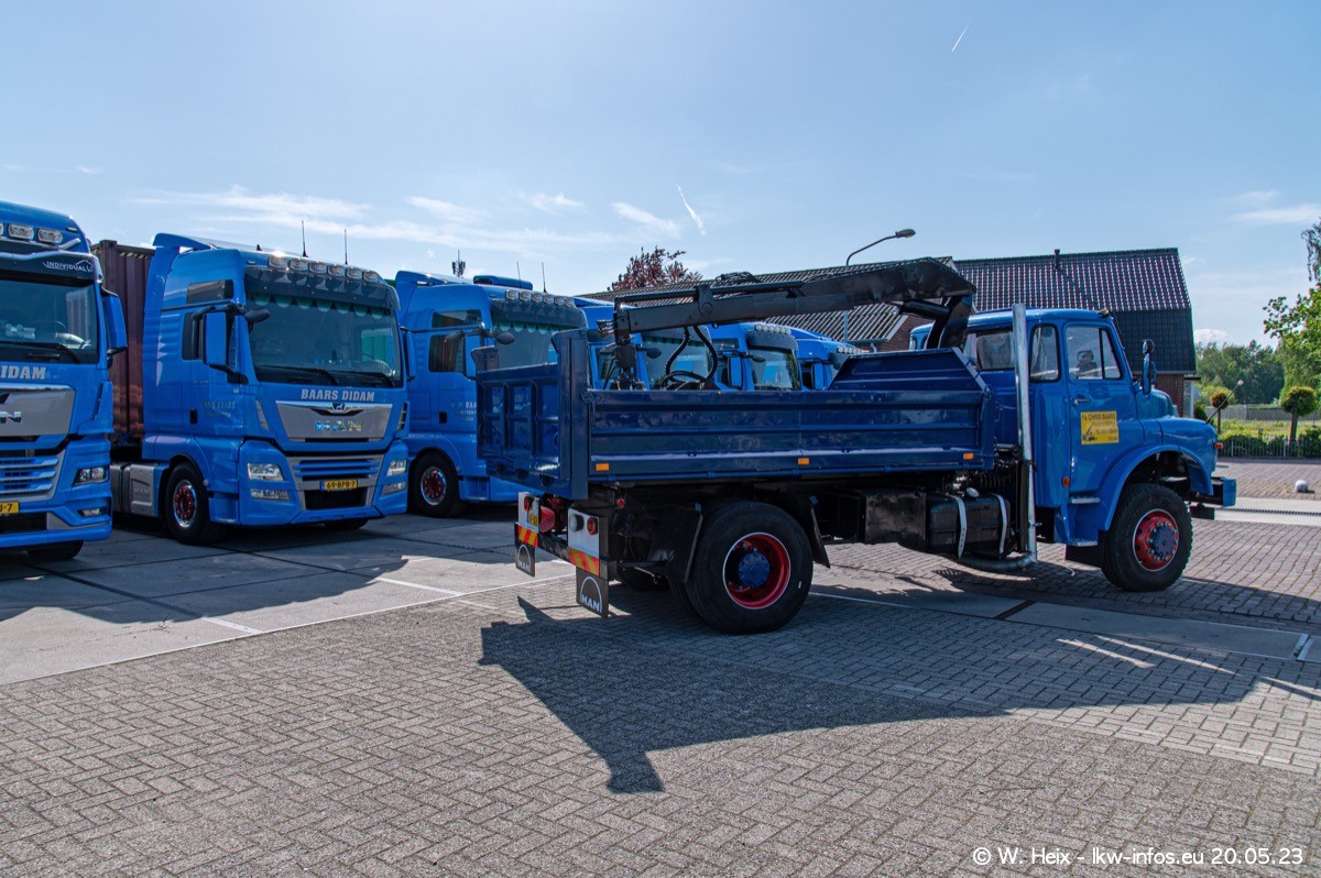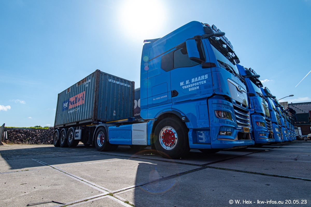 Der Fuhrpark von Baars besteht aus neun MAN, das sind vier MAN der neuen Baureihe und fünf der alten Baureihe. Die Firma ist überwiegend im Bereich Containertransport tätig. Es gibt aber auch noch zwei schöne Oldtimer. Das ist ein MAN 16.168 HAK, Baujahr 1982. Der wurde vor drei Jahren gekauft und in den eigenen Firmenfarben lackiert. Der stand auch gleich für ein kleines Fotoshooting bereit. Der zweite Oldtimer ist ein Hanomag-Henschel H 261 Allrad-Hauber. Der LKW ist von 1970 und wurde damals vom heutigen Senior-Chef neu gekauft und ist bis heute im Familienbesitz. Aktuell ist das Fahrzeug allerdings nicht fahrbereit, darum gibt es "nur" Bilder aus der Garage/Werkstatt.