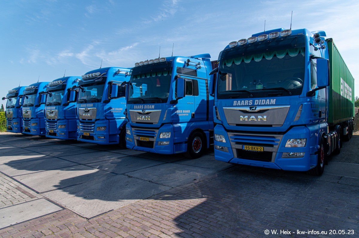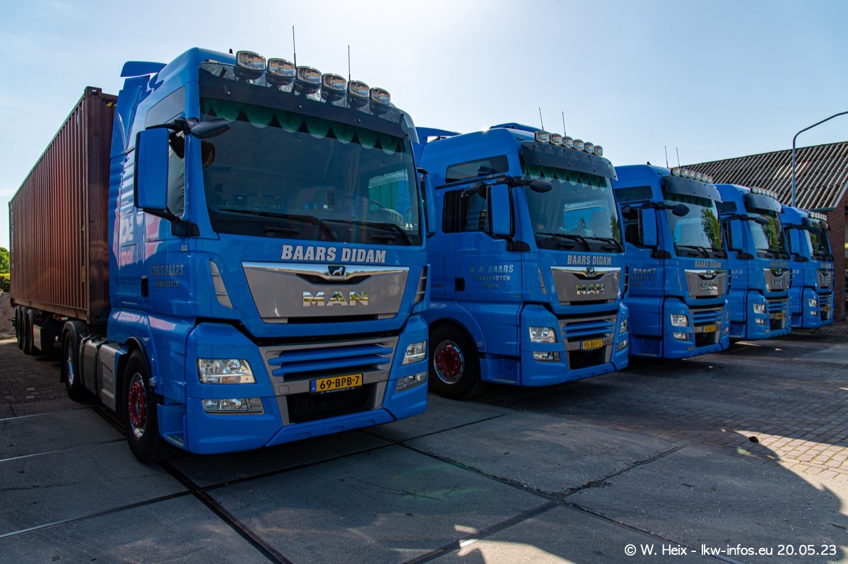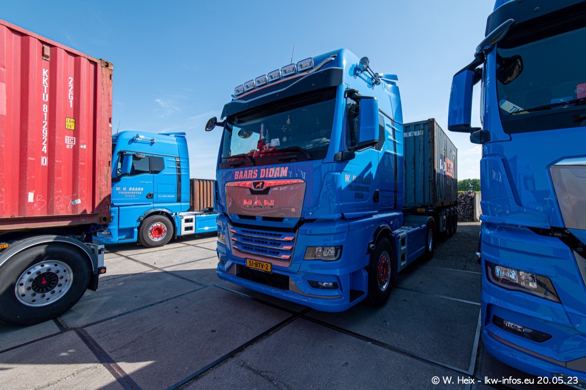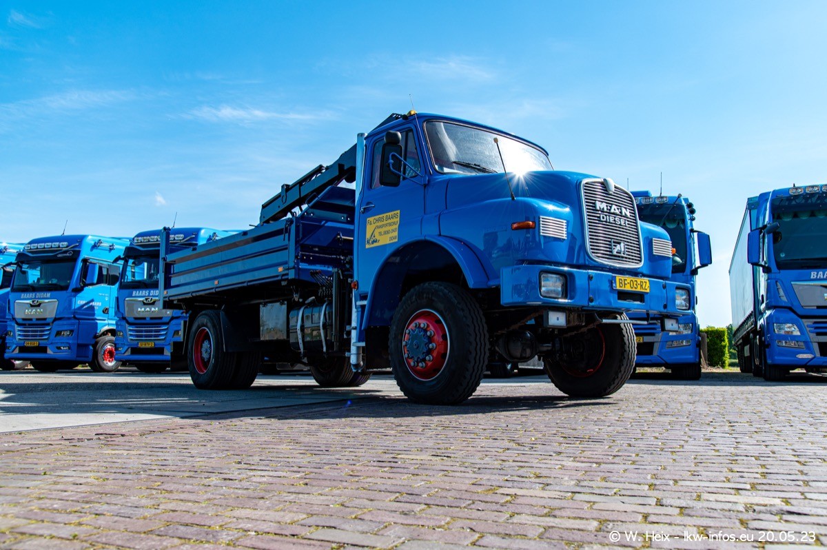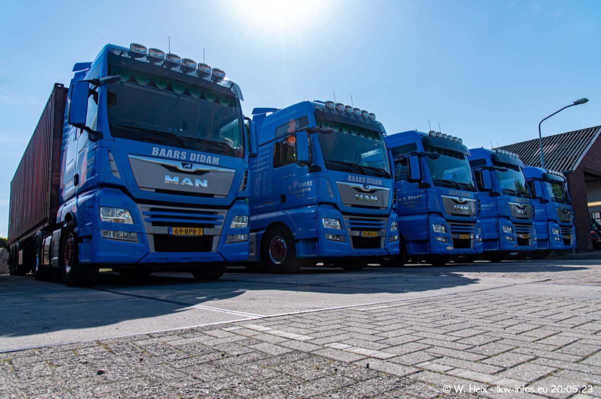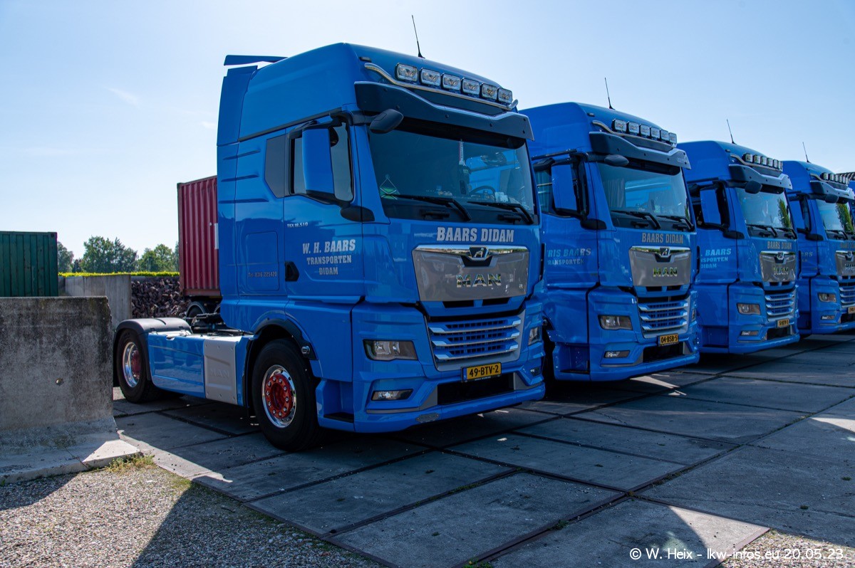 Der Fuhrpark von Baars besteht aus neun MAN, das sind vier MAN der neuen Baureihe und fünf der alten Baureihe. Die Firma ist überwiegend im Bereich Containertransport tätig. Es gibt aber auch noch zwei schöne Oldtimer. Das ist ein MAN 16.168 HAK, Baujahr 1982. Der wurde vor drei Jahren gekauft und in den eigenen Firmenfarben lackiert. Der stand auch gleich für ein kleines Fotoshooting bereit. Der zweite Oldtimer ist ein Hanomag-Henschel H 261 Allrad-Hauber. Der LKW ist von 1970 und wurde damals vom heutigen Senior-Chef neu gekauft und ist bis heute im Familienbesitz. Aktuell ist das Fahrzeug allerdings nicht fahrbereit, darum gibt es "nur" Bilder aus der Garage/Werkstatt.