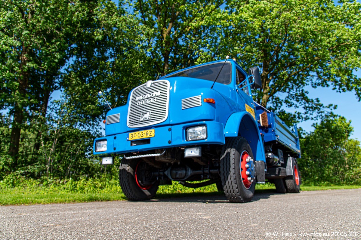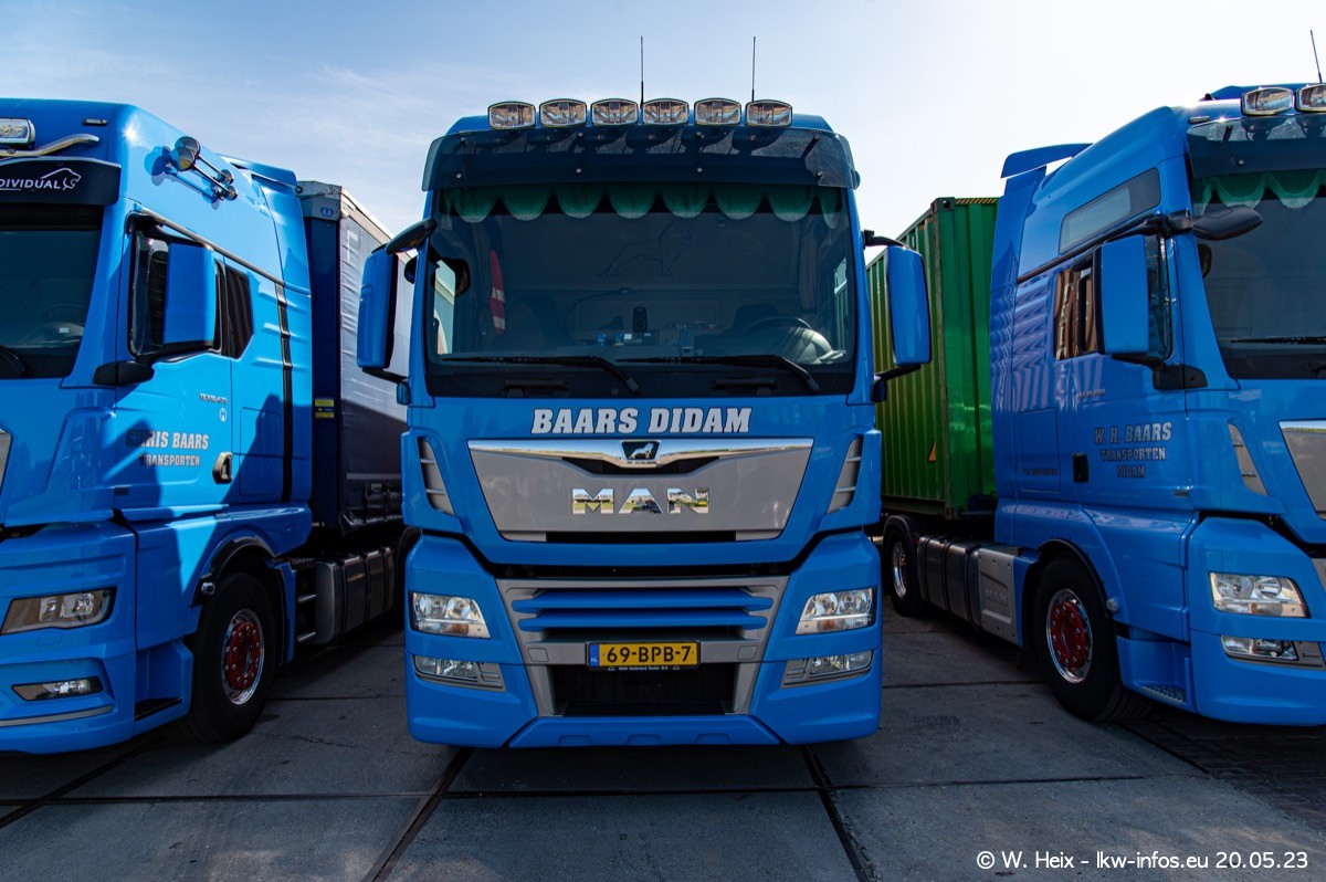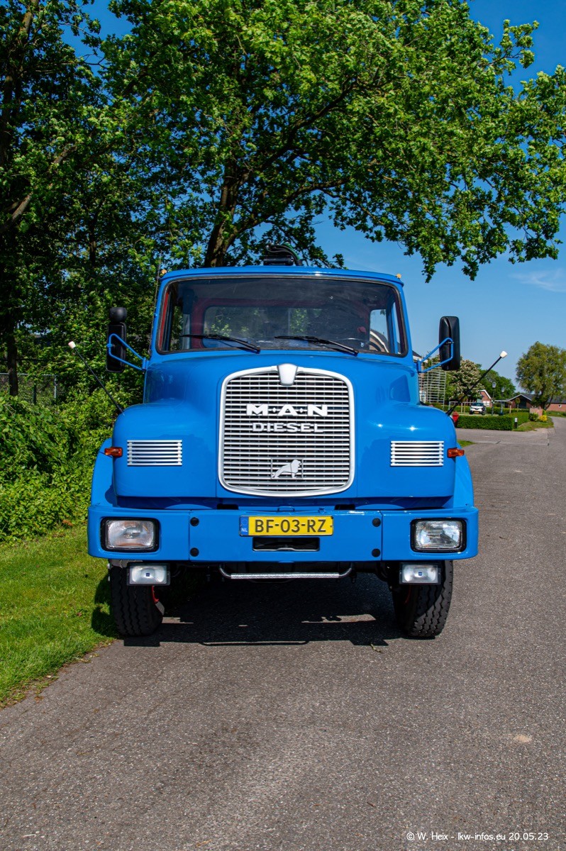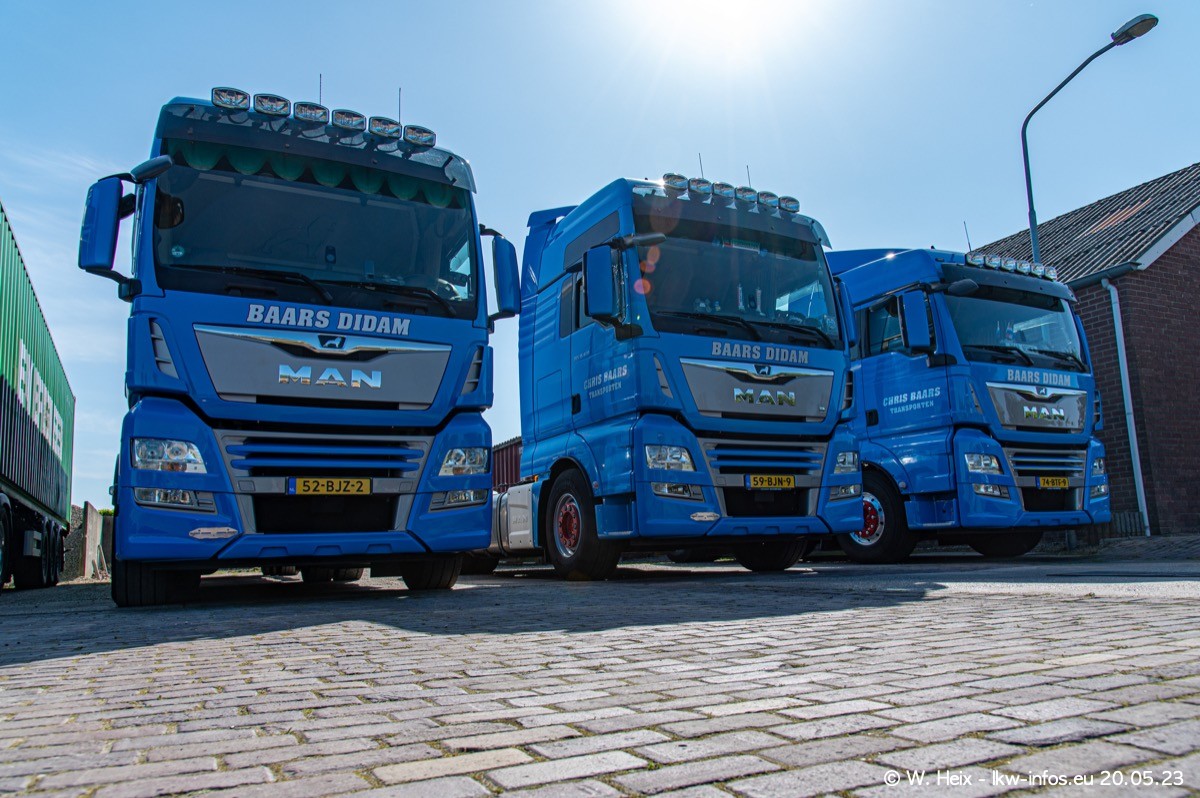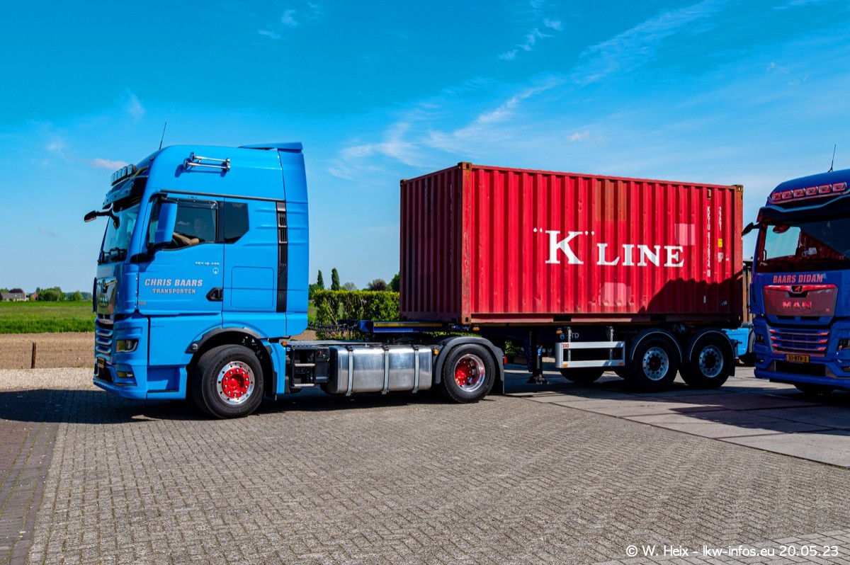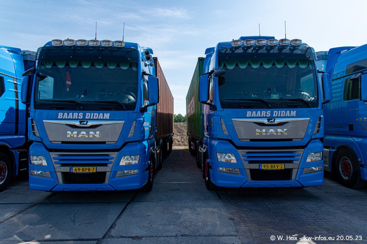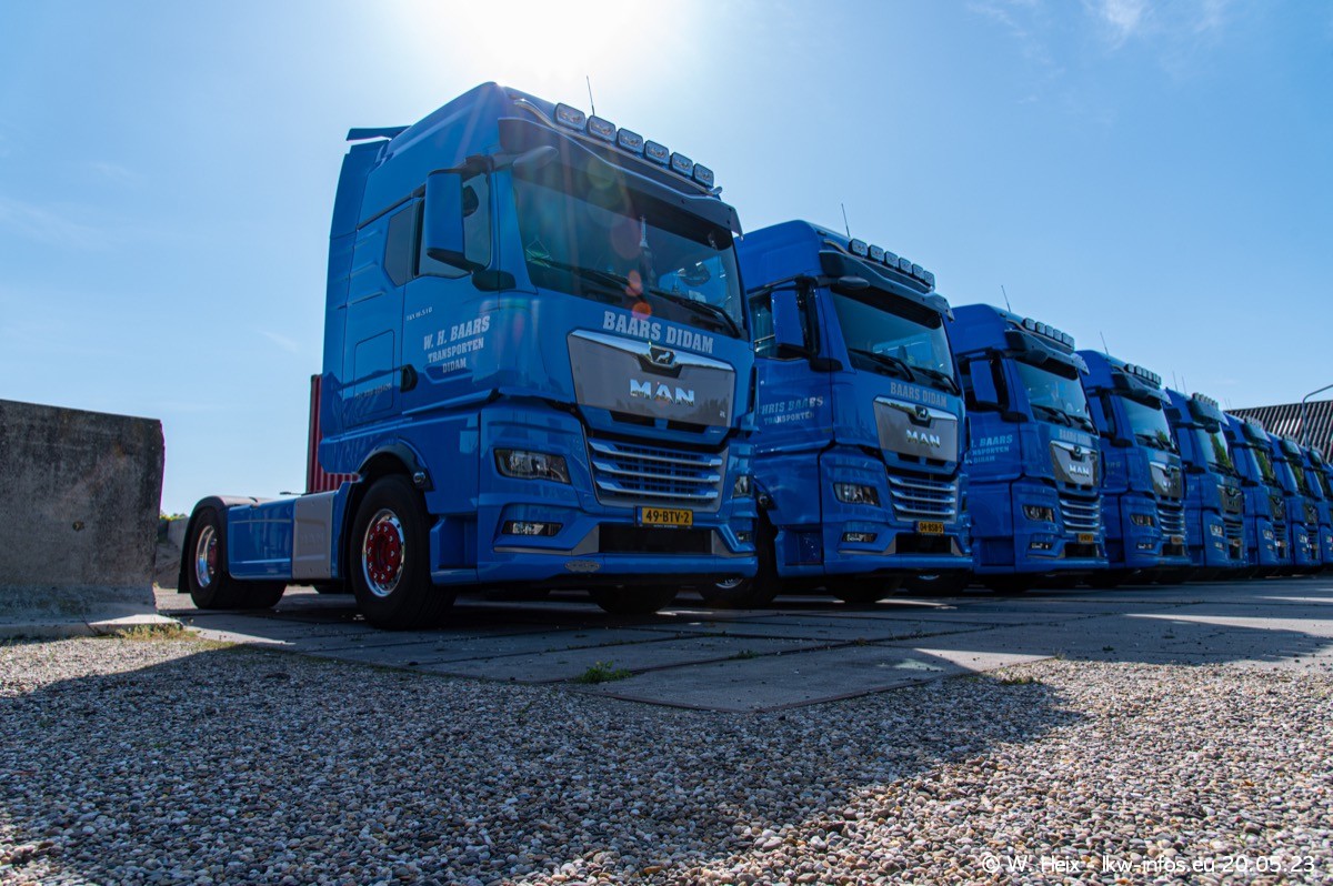 Der Fuhrpark von Baars besteht aus neun MAN, das sind vier MAN der neuen Baureihe und fünf der alten Baureihe. Die Firma ist überwiegend im Bereich Containertransport tätig. Es gibt aber auch noch zwei schöne Oldtimer. Das ist ein MAN 16.168 HAK, Baujahr 1982. Der wurde vor drei Jahren gekauft und in den eigenen Firmenfarben lackiert. Der stand auch gleich für ein kleines Fotoshooting bereit. Der zweite Oldtimer ist ein Hanomag-Henschel H 261 Allrad-Hauber. Der LKW ist von 1970 und wurde damals vom heutigen Senior-Chef neu gekauft und ist bis heute im Familienbesitz. Aktuell ist das Fahrzeug allerdings nicht fahrbereit, darum gibt es "nur" Bilder aus der Garage/Werkstatt.
