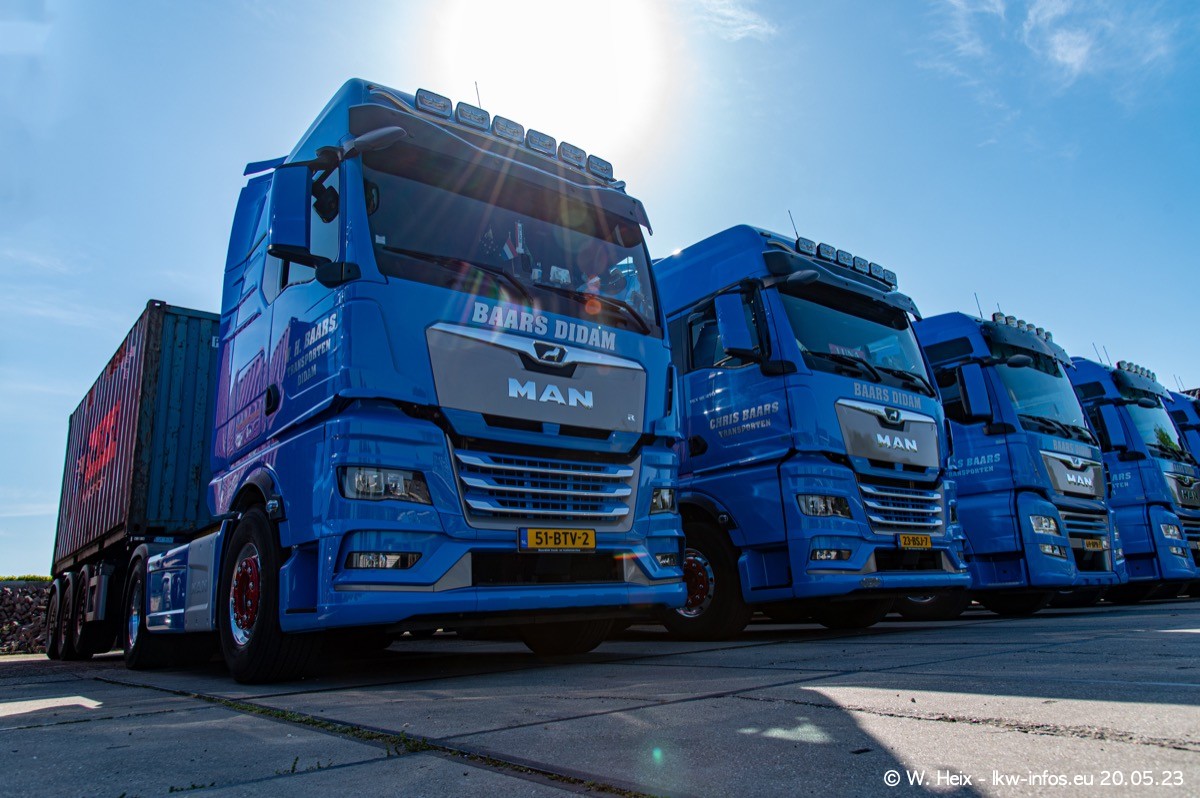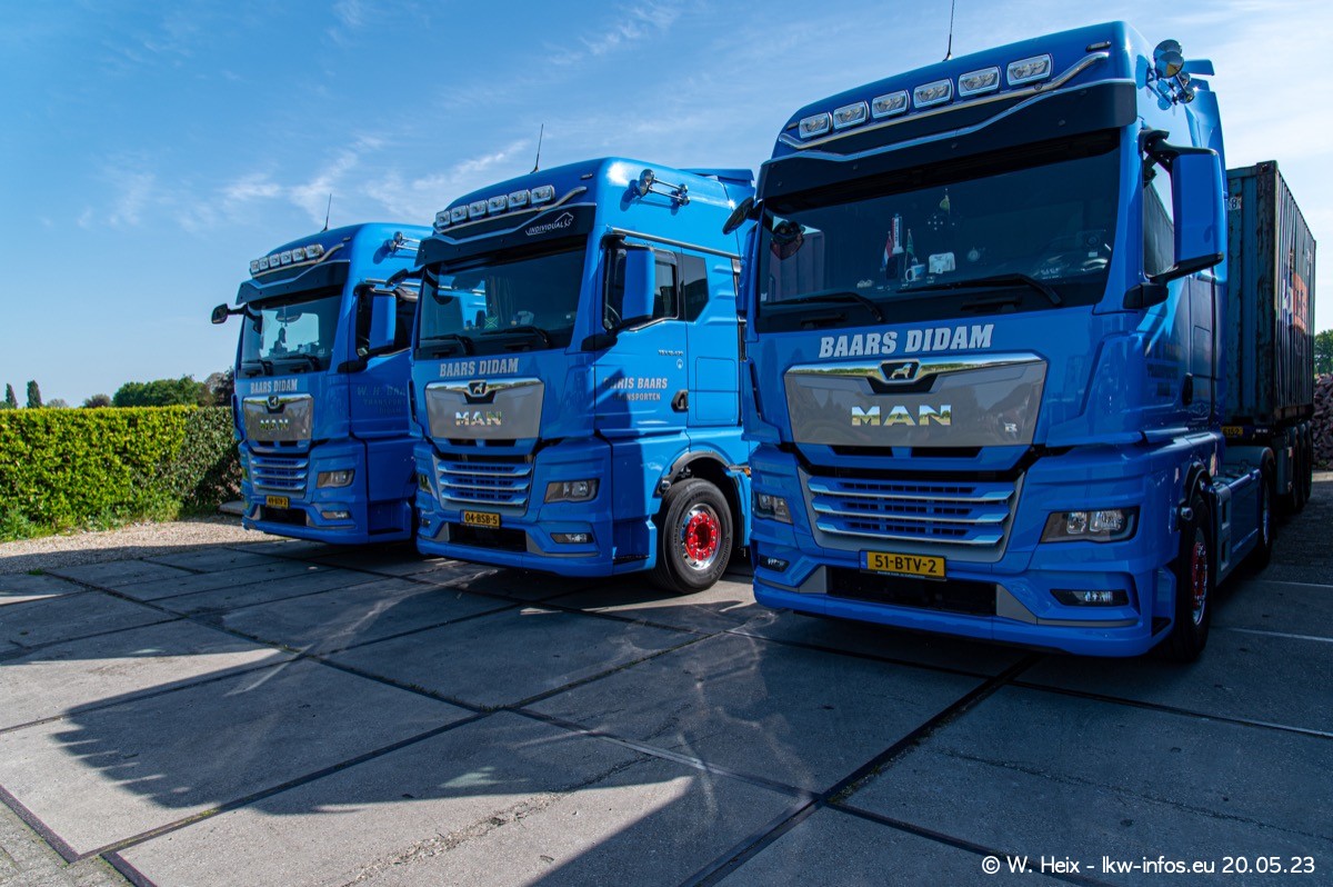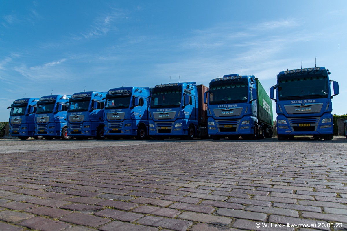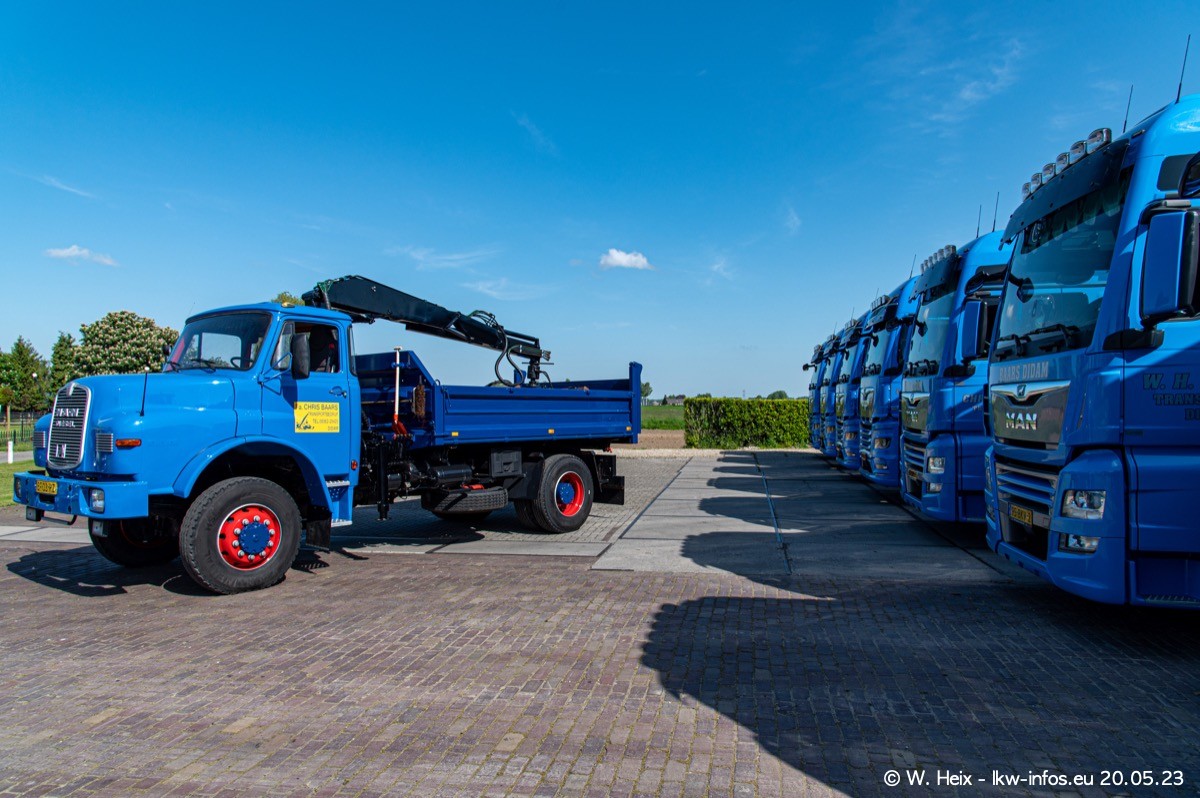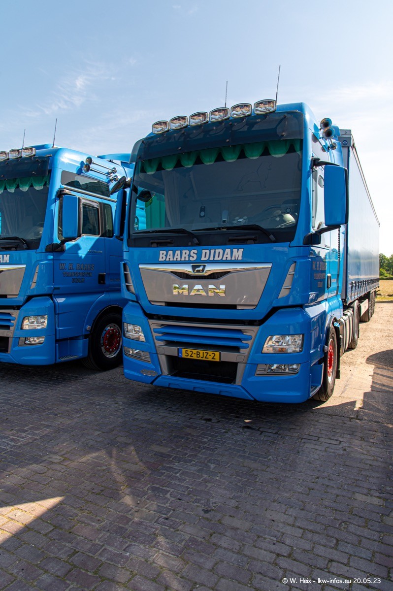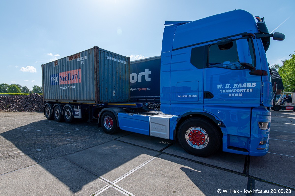 Der Fuhrpark von Baars besteht aus neun MAN, das sind vier MAN der neuen Baureihe und fünf der alten Baureihe. Die Firma ist überwiegend im Bereich Containertransport tätig. Es gibt aber auch noch zwei schöne Oldtimer. Das ist ein MAN 16.168 HAK, Baujahr 1982. Der wurde vor drei Jahren gekauft und in den eigenen Firmenfarben lackiert. Der stand auch gleich für ein kleines Fotoshooting bereit. Der zweite Oldtimer ist ein Hanomag-Henschel H 261 Allrad-Hauber. Der LKW ist von 1970 und wurde damals vom heutigen Senior-Chef neu gekauft und ist bis heute im Familienbesitz. Aktuell ist das Fahrzeug allerdings nicht fahrbereit, darum gibt es "nur" Bilder aus der Garage/Werkstatt.