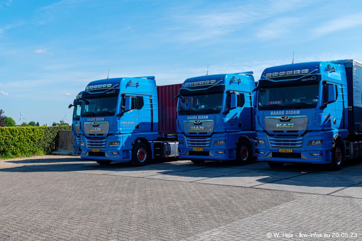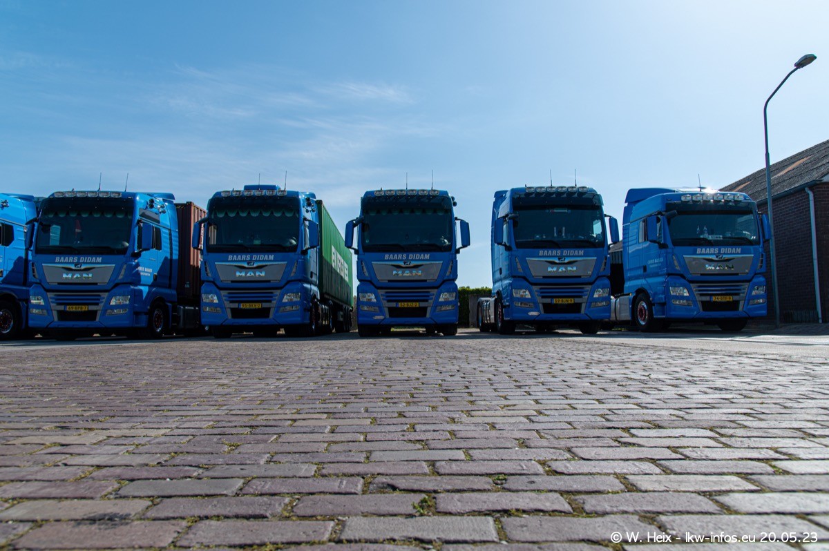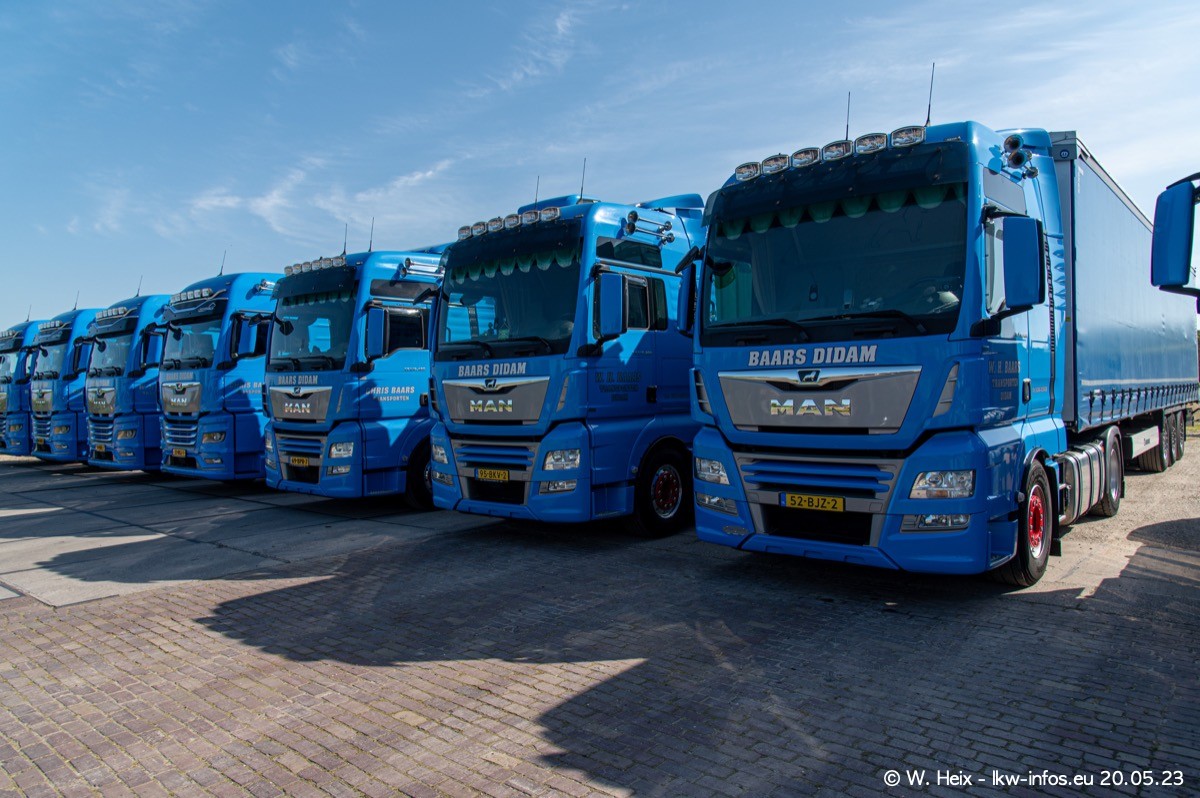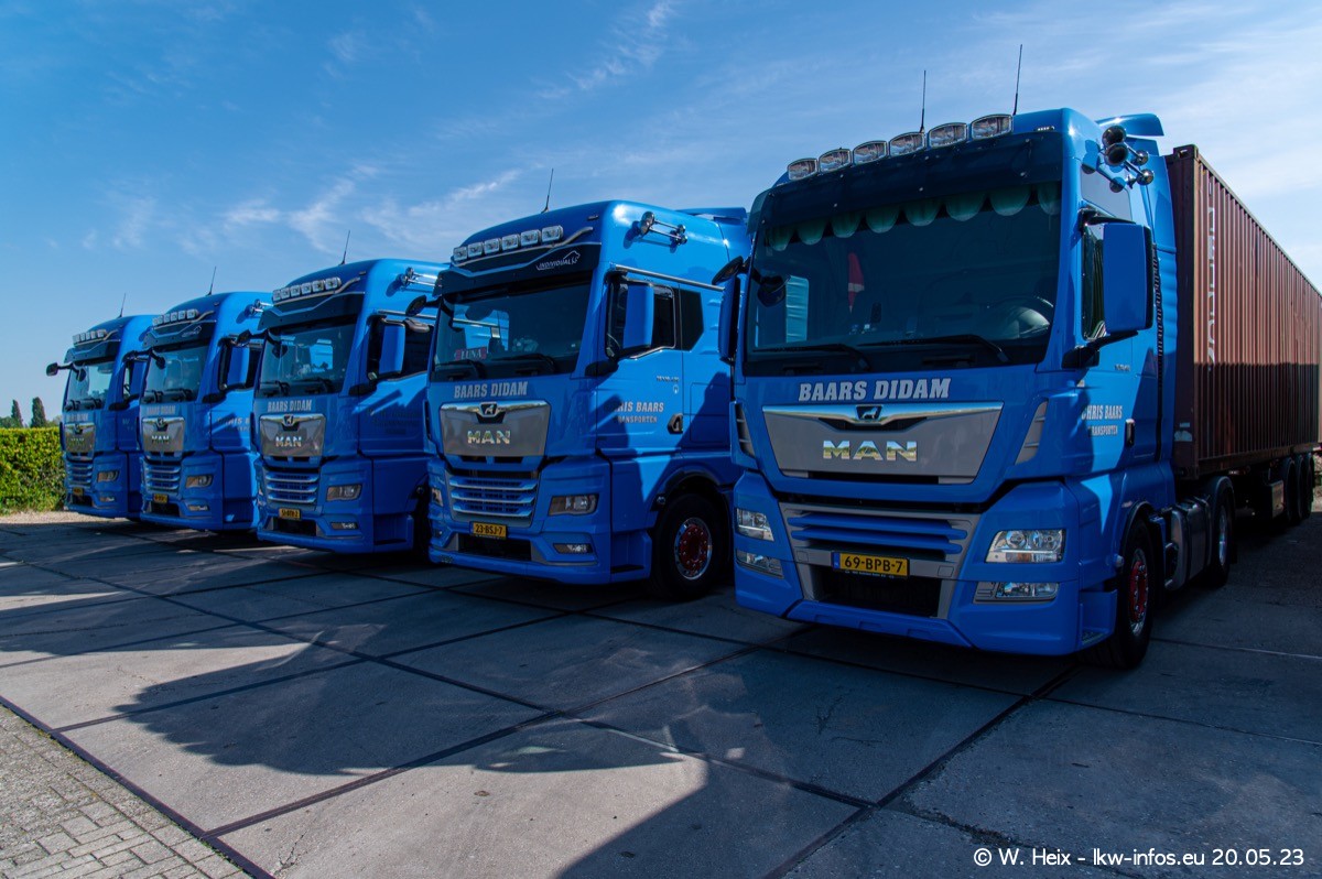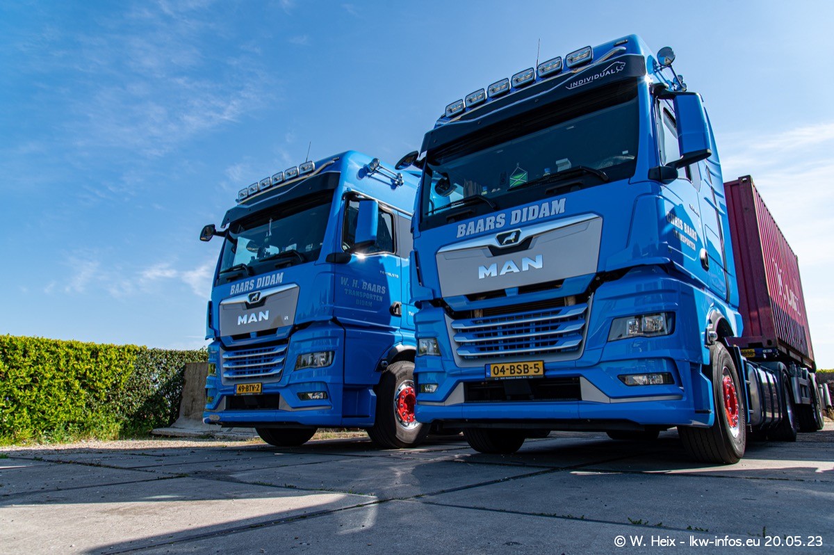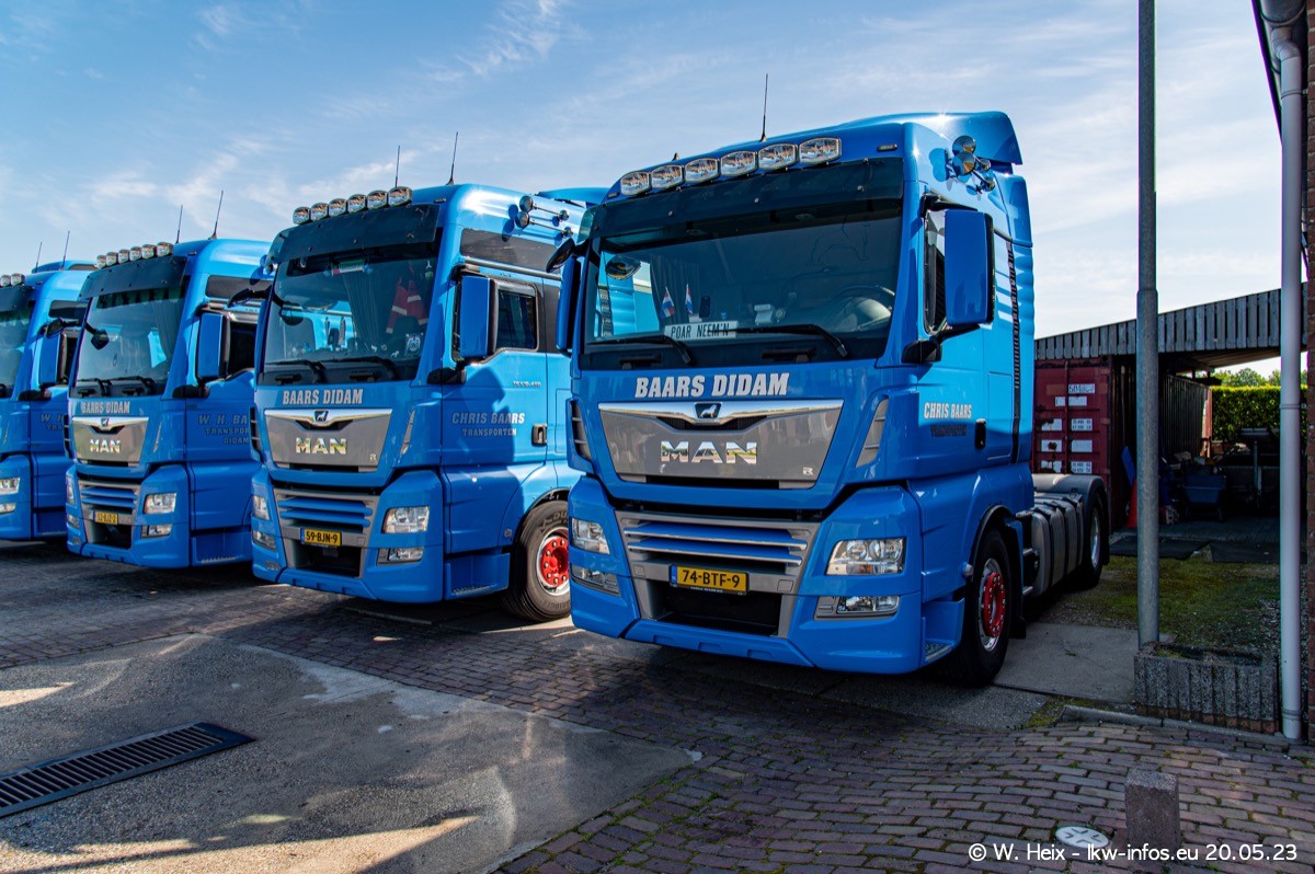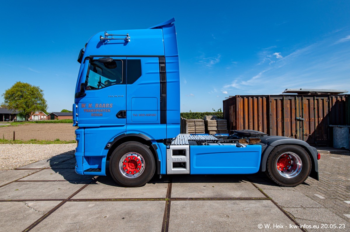 Der Fuhrpark von Baars besteht aus neun MAN, das sind vier MAN der neuen Baureihe und fünf der alten Baureihe. Die Firma ist überwiegend im Bereich Containertransport tätig. Es gibt aber auch noch zwei schöne Oldtimer. Das ist ein MAN 16.168 HAK, Baujahr 1982. Der wurde vor drei Jahren gekauft und in den eigenen Firmenfarben lackiert. Der stand auch gleich für ein kleines Fotoshooting bereit. Der zweite Oldtimer ist ein Hanomag-Henschel H 261 Allrad-Hauber. Der LKW ist von 1970 und wurde damals vom heutigen Senior-Chef neu gekauft und ist bis heute im Familienbesitz. Aktuell ist das Fahrzeug allerdings nicht fahrbereit, darum gibt es "nur" Bilder aus der Garage/Werkstatt.