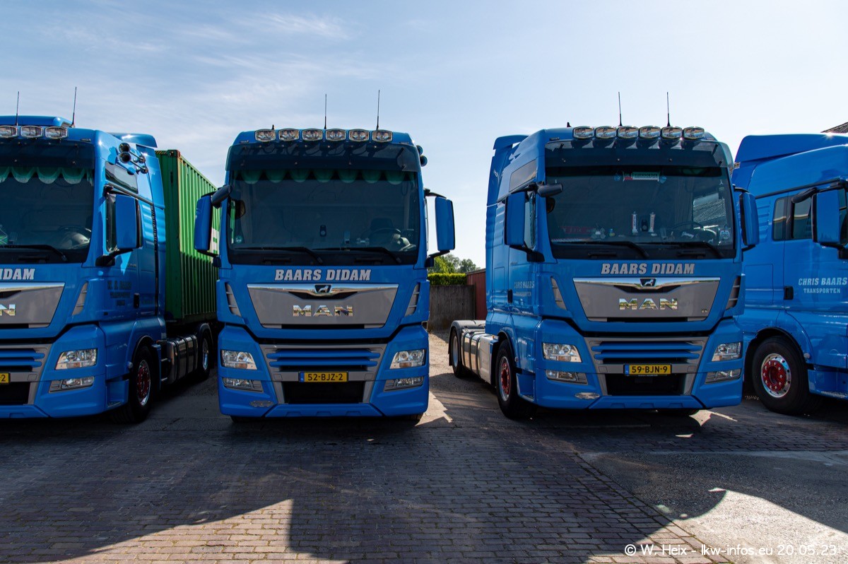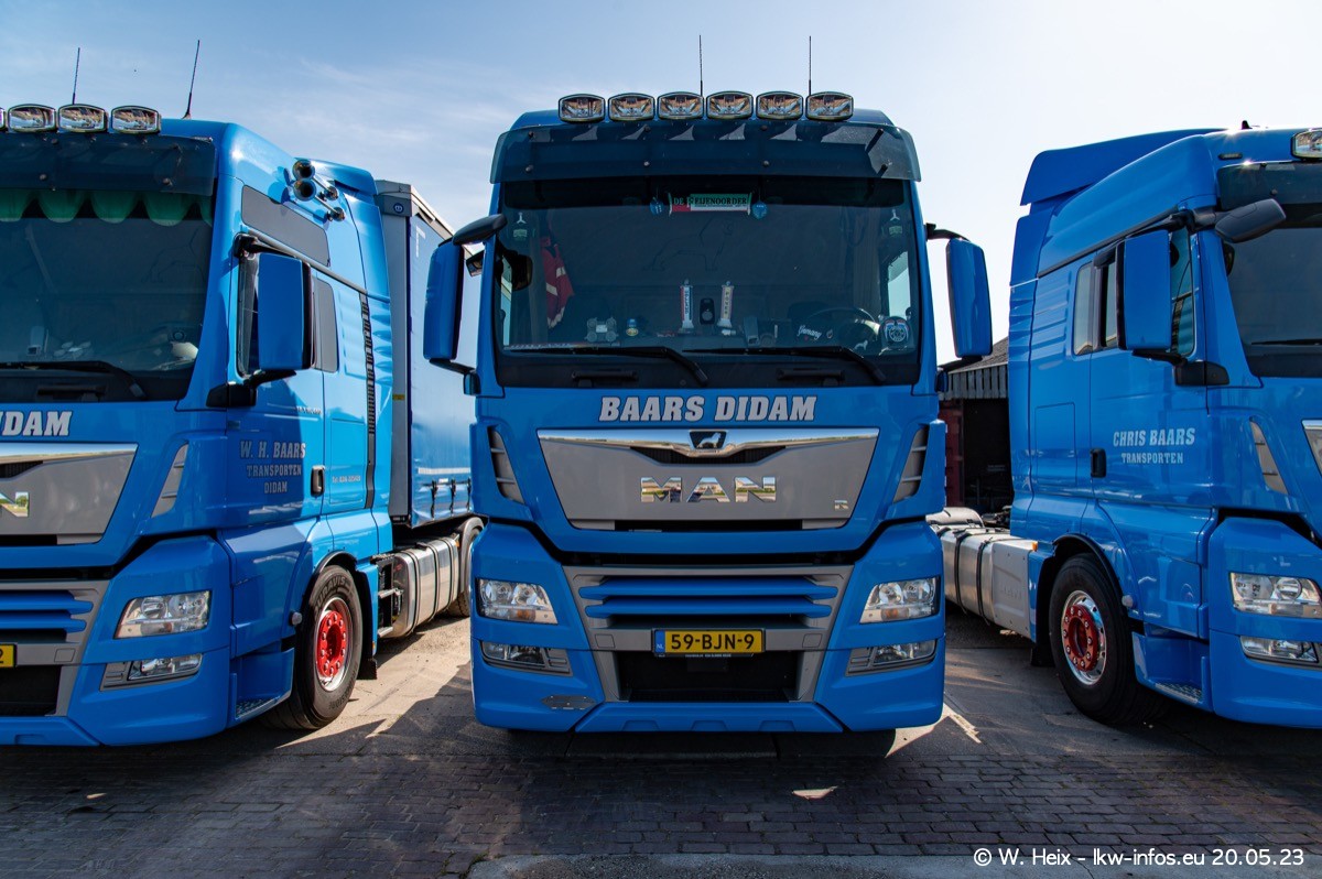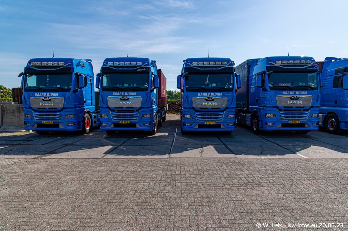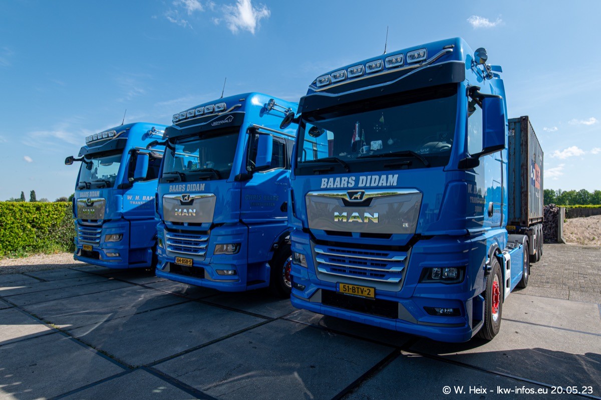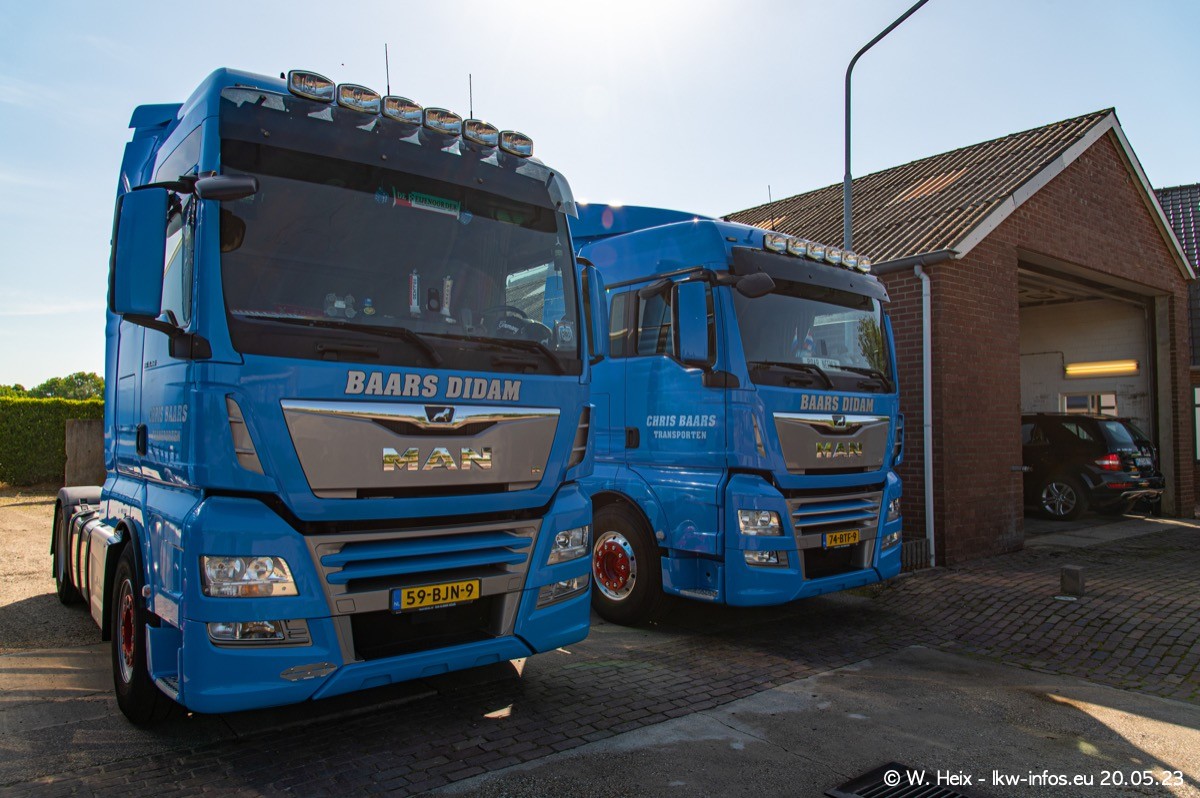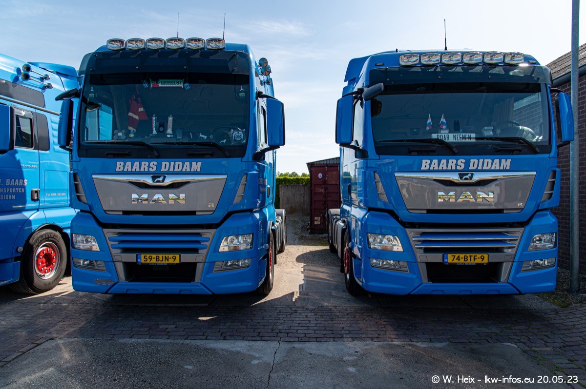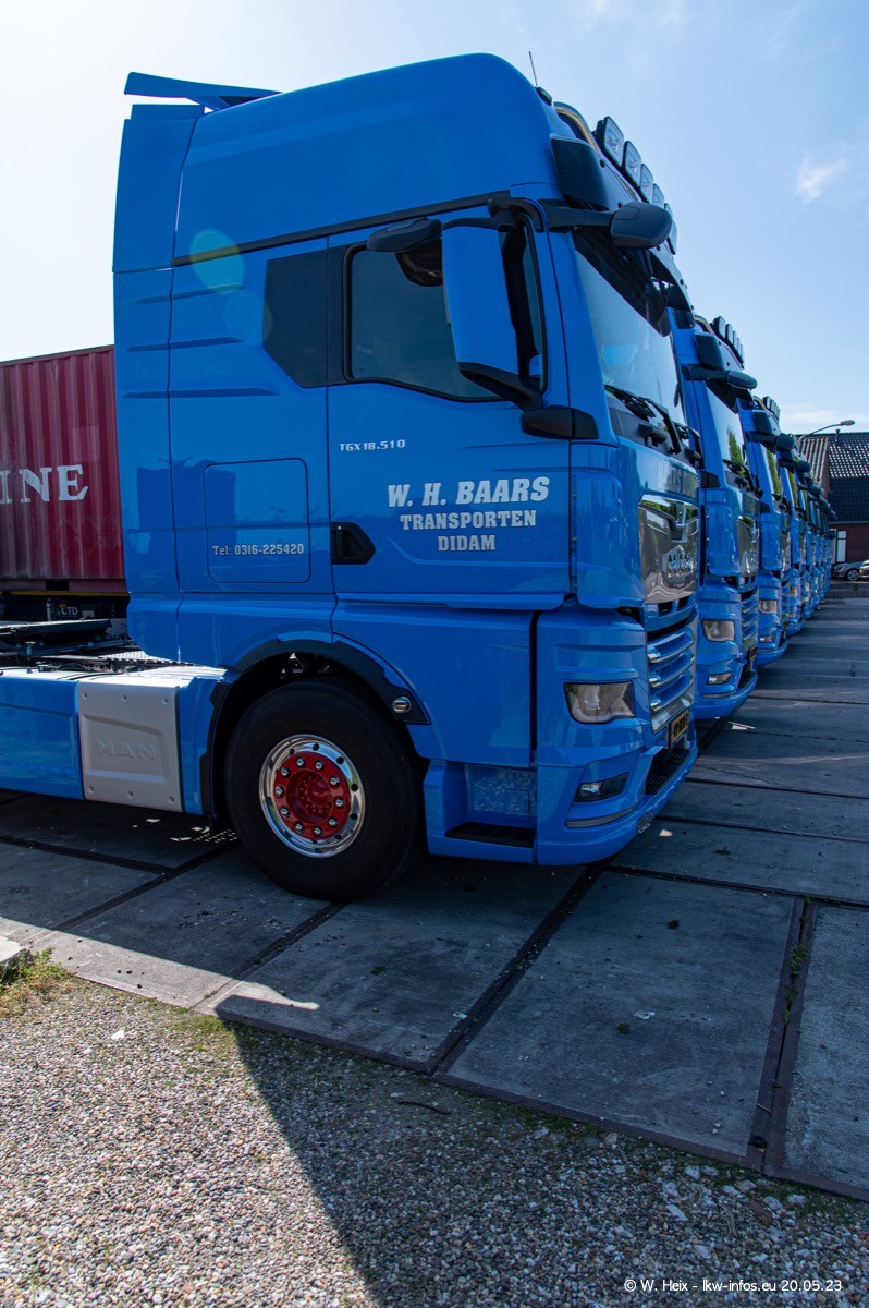 Der Fuhrpark von Baars besteht aus neun MAN, das sind vier MAN der neuen Baureihe und fünf der alten Baureihe. Die Firma ist überwiegend im Bereich Containertransport tätig. Es gibt aber auch noch zwei schöne Oldtimer. Das ist ein MAN 16.168 HAK, Baujahr 1982. Der wurde vor drei Jahren gekauft und in den eigenen Firmenfarben lackiert. Der stand auch gleich für ein kleines Fotoshooting bereit. Der zweite Oldtimer ist ein Hanomag-Henschel H 261 Allrad-Hauber. Der LKW ist von 1970 und wurde damals vom heutigen Senior-Chef neu gekauft und ist bis heute im Familienbesitz. Aktuell ist das Fahrzeug allerdings nicht fahrbereit, darum gibt es "nur" Bilder aus der Garage/Werkstatt.