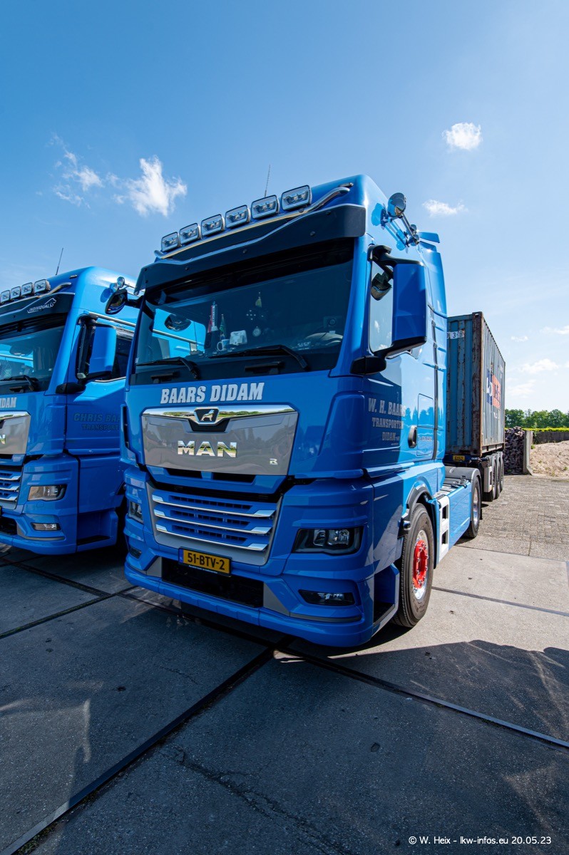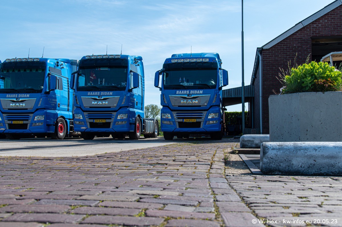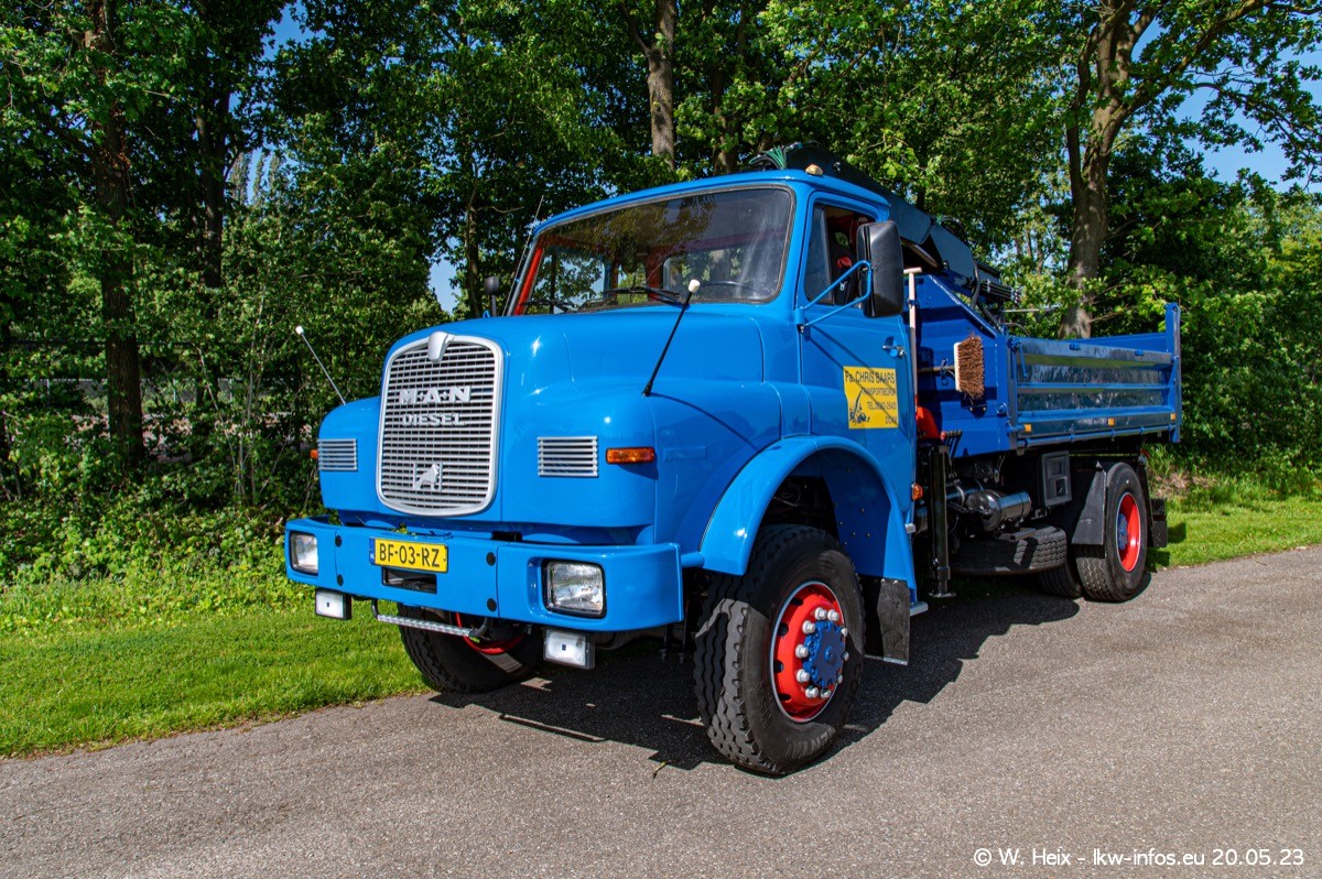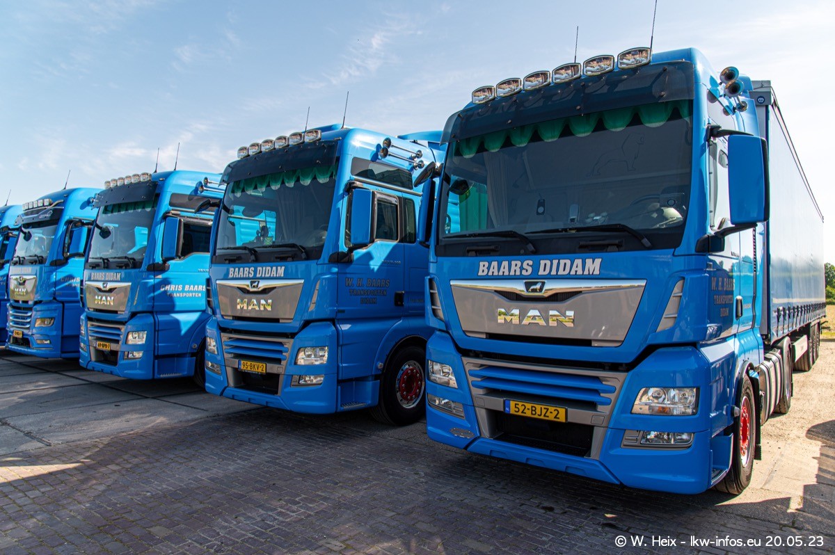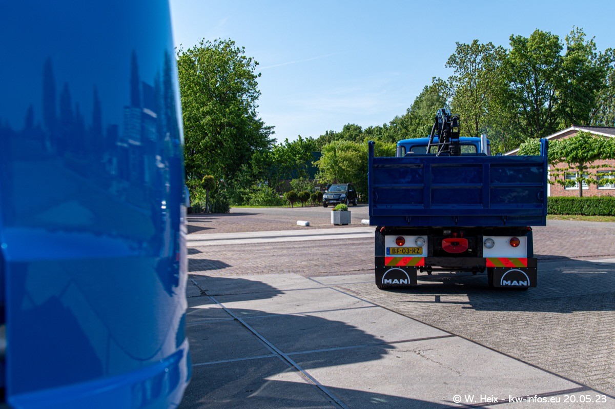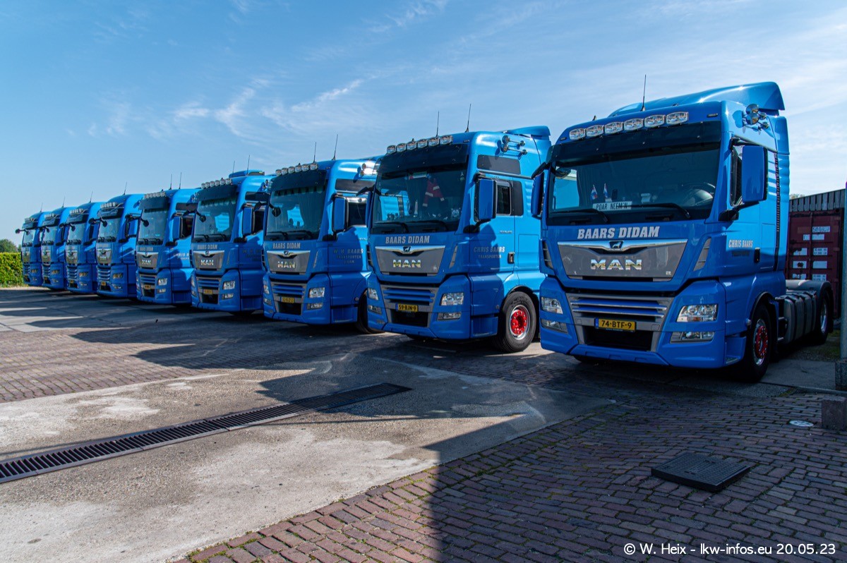 Der Fuhrpark von Baars besteht aus neun MAN, das sind vier MAN der neuen Baureihe und fünf der alten Baureihe. Die Firma ist überwiegend im Bereich Containertransport tätig. Es gibt aber auch noch zwei schöne Oldtimer. Das ist ein MAN 16.168 HAK, Baujahr 1982. Der wurde vor drei Jahren gekauft und in den eigenen Firmenfarben lackiert. Der stand auch gleich für ein kleines Fotoshooting bereit. Der zweite Oldtimer ist ein Hanomag-Henschel H 261 Allrad-Hauber. Der LKW ist von 1970 und wurde damals vom heutigen Senior-Chef neu gekauft und ist bis heute im Familienbesitz. Aktuell ist das Fahrzeug allerdings nicht fahrbereit, darum gibt es "nur" Bilder aus der Garage/Werkstatt.